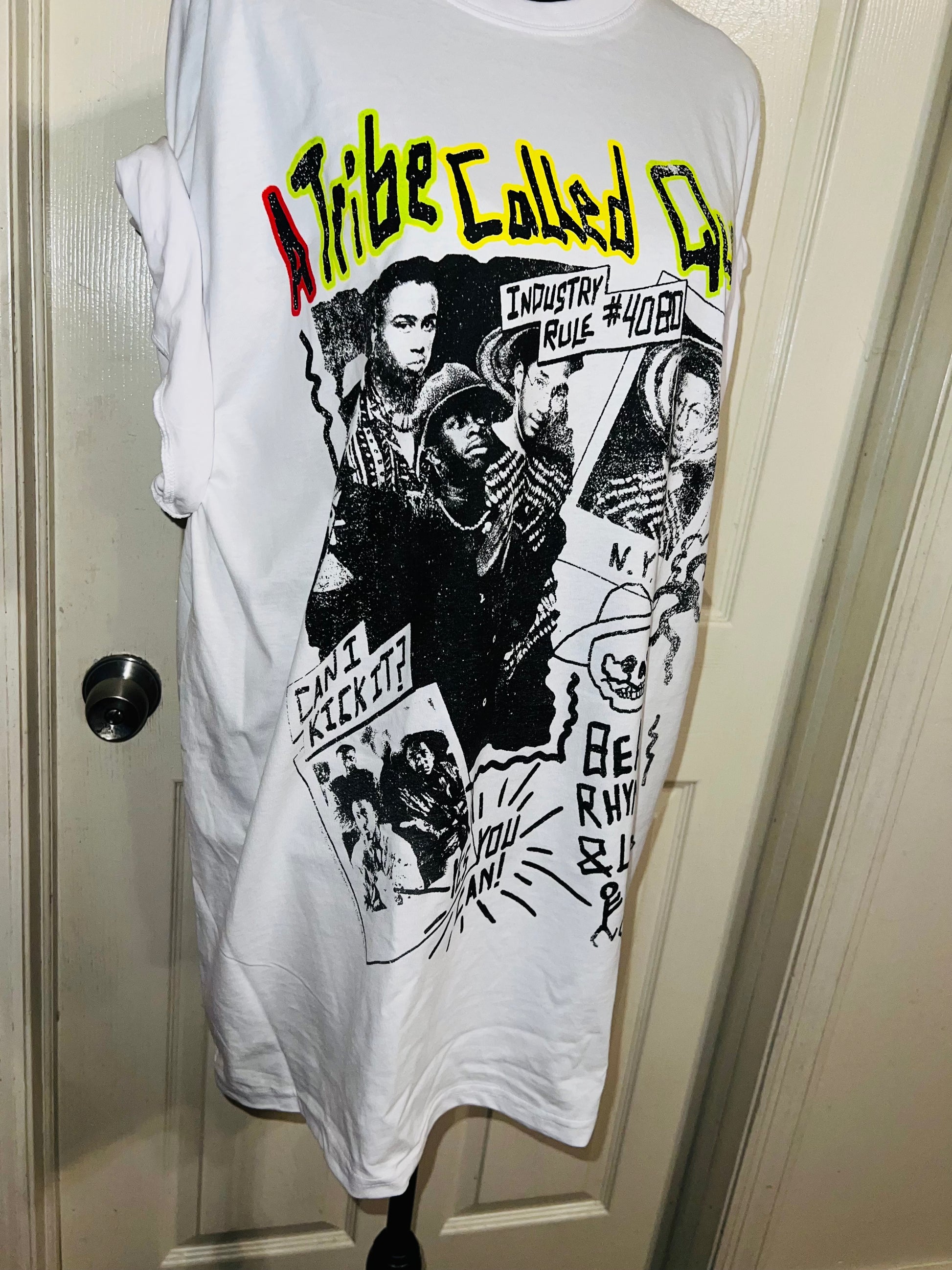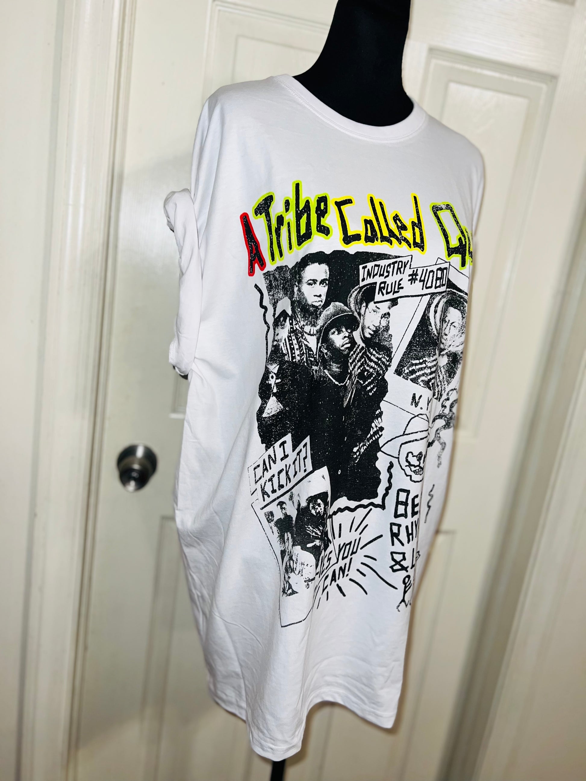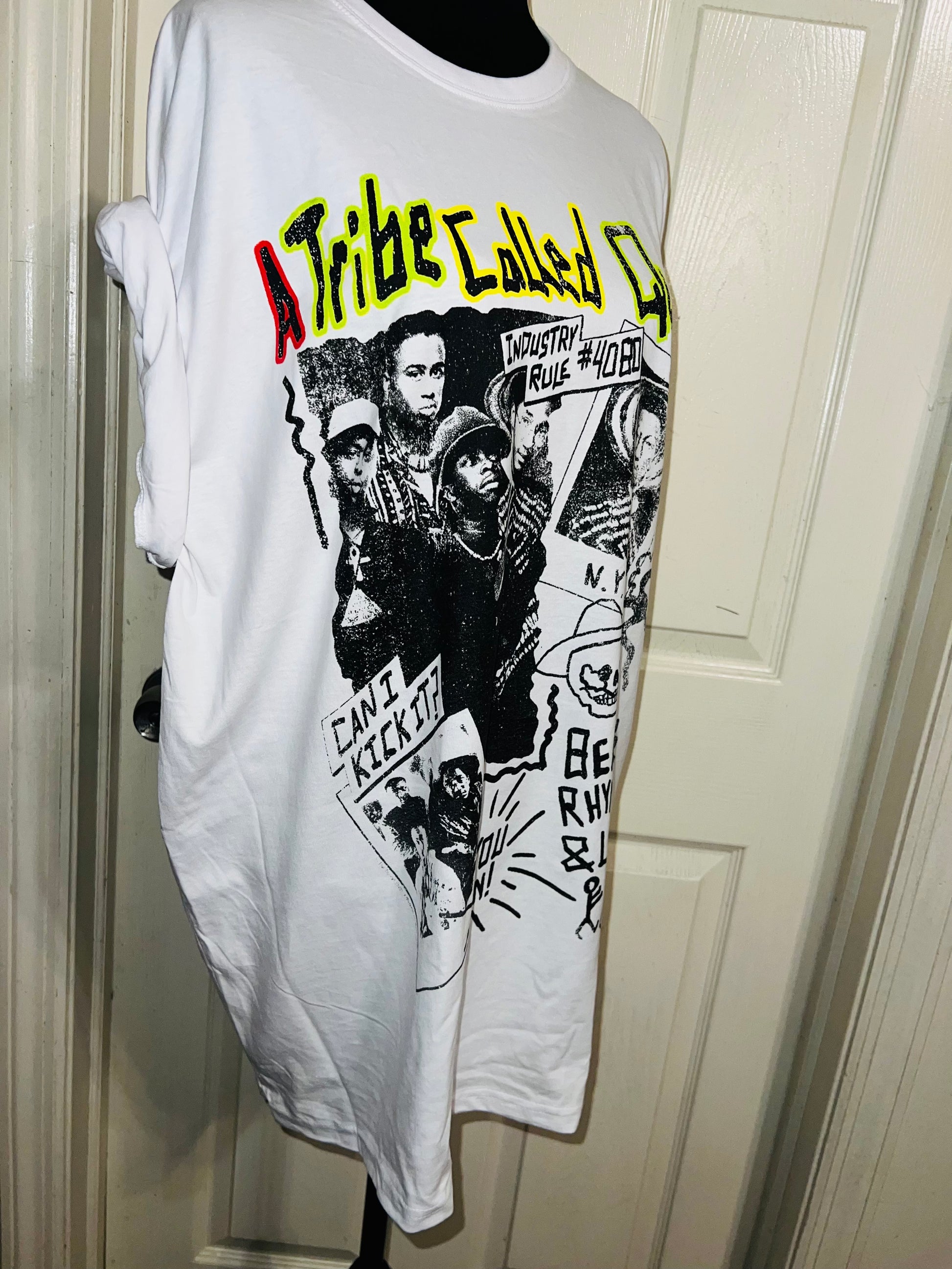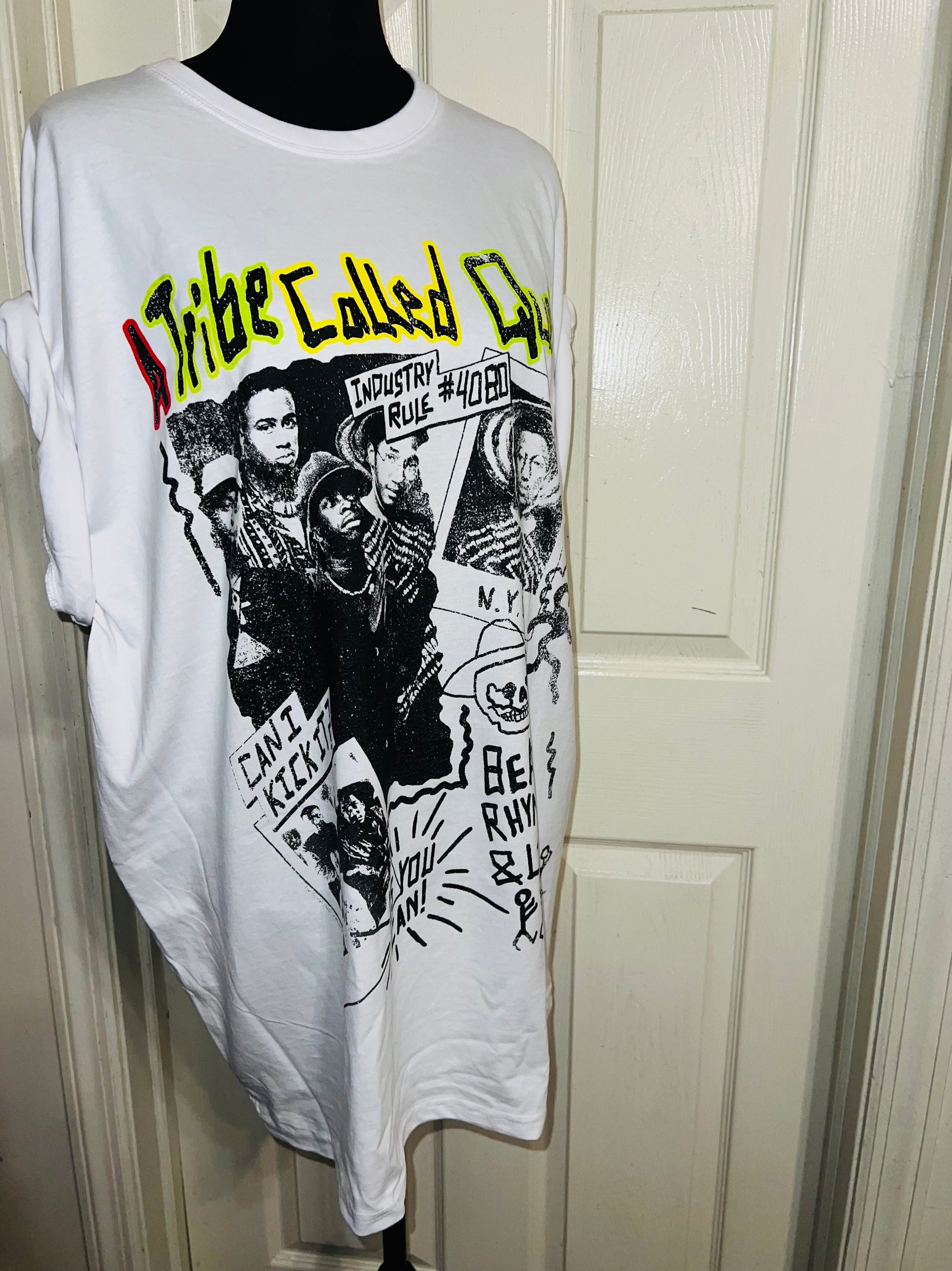 This is now a preorder. A white A Tribe Called Quest tee with all their taglines and lyrics on a cool pop set type tee. Size L/XL, oversized