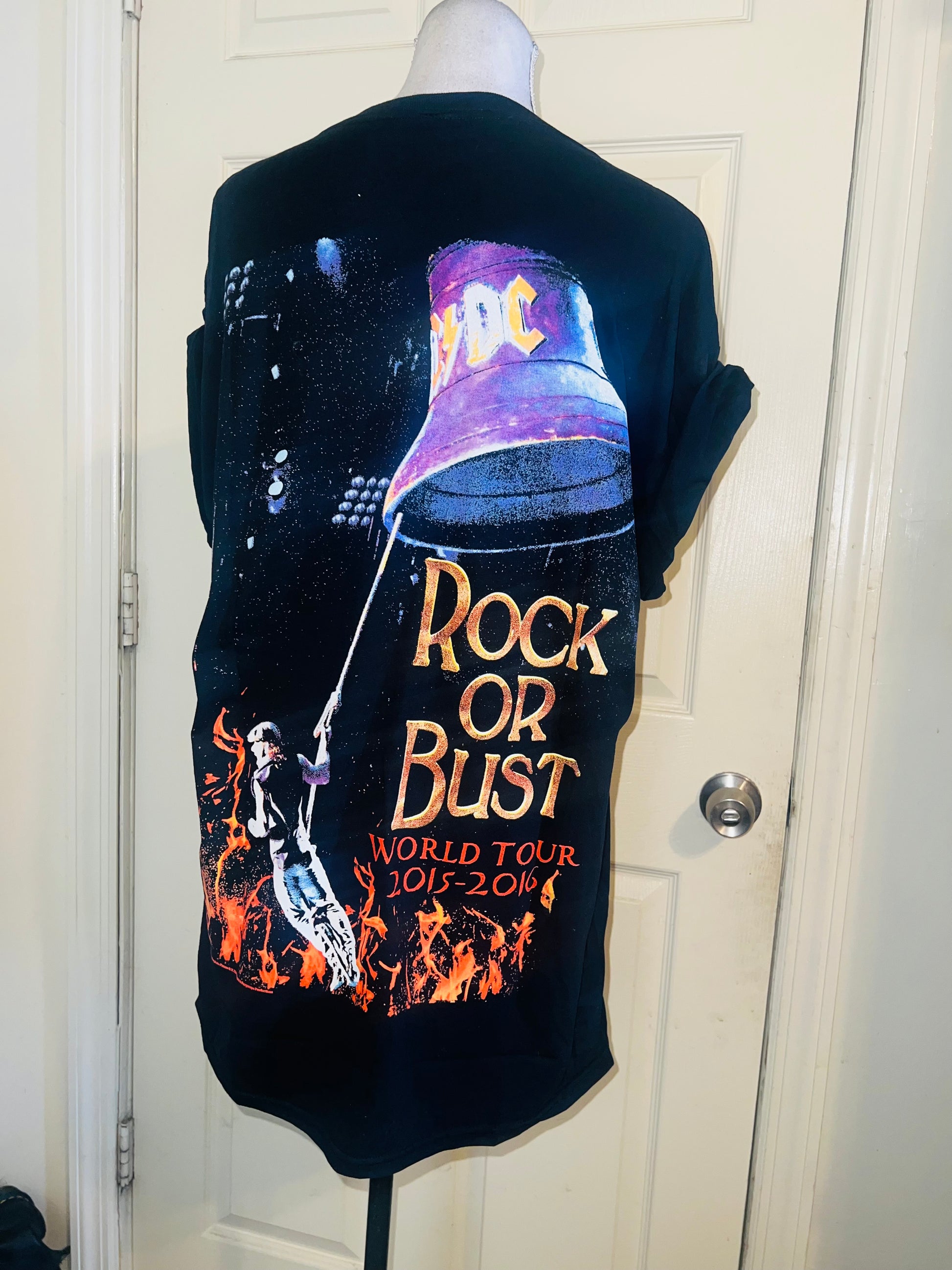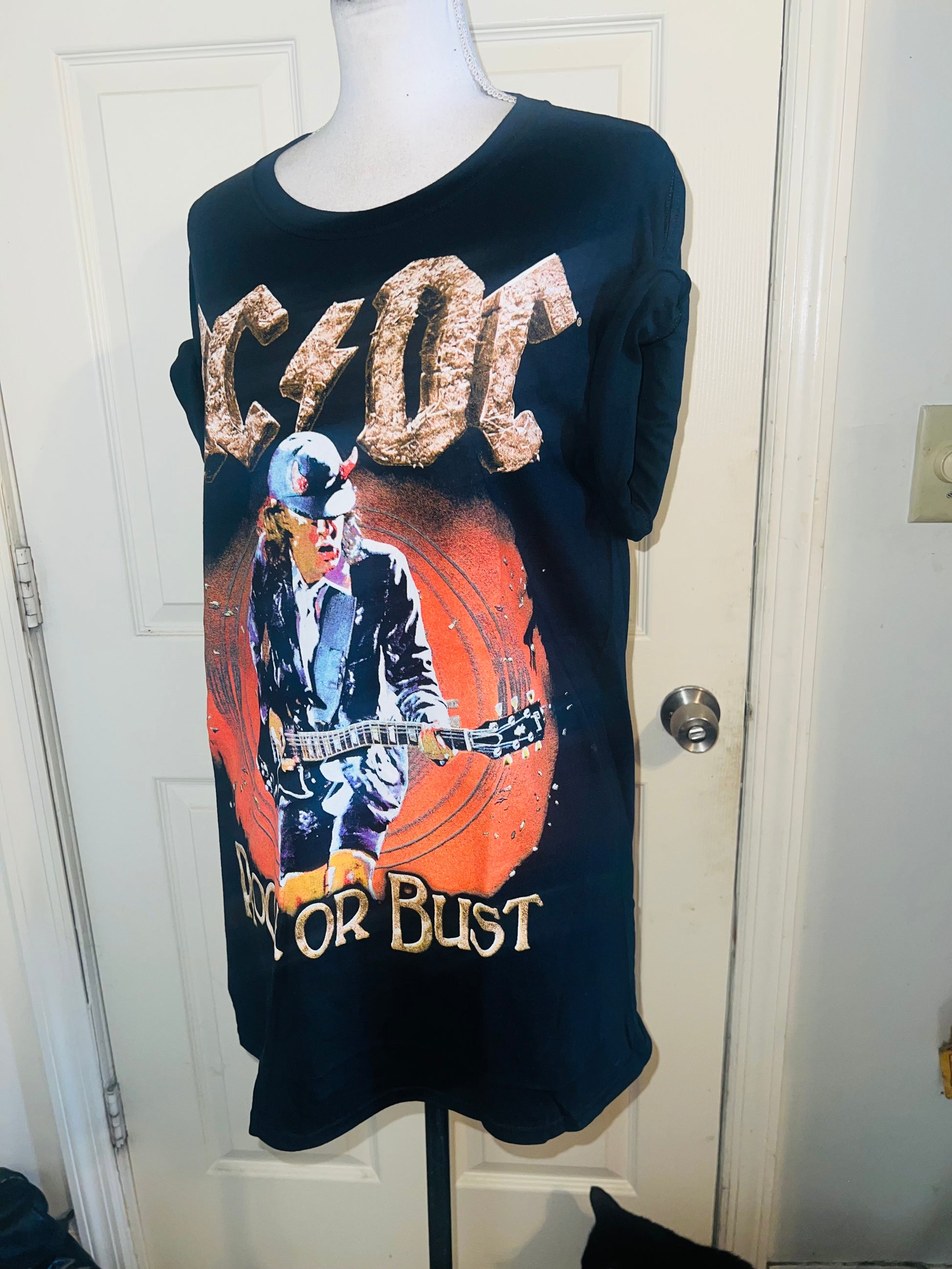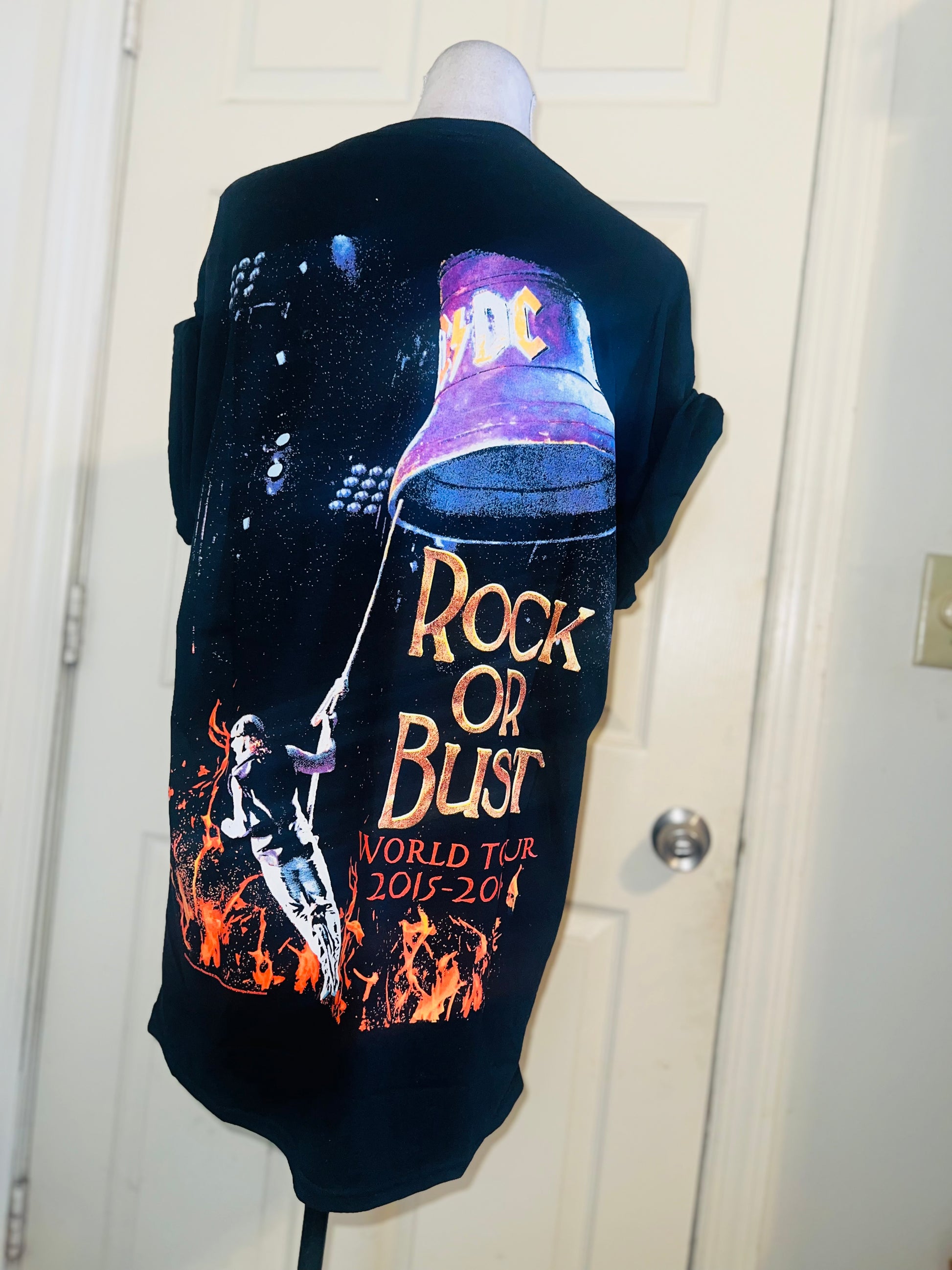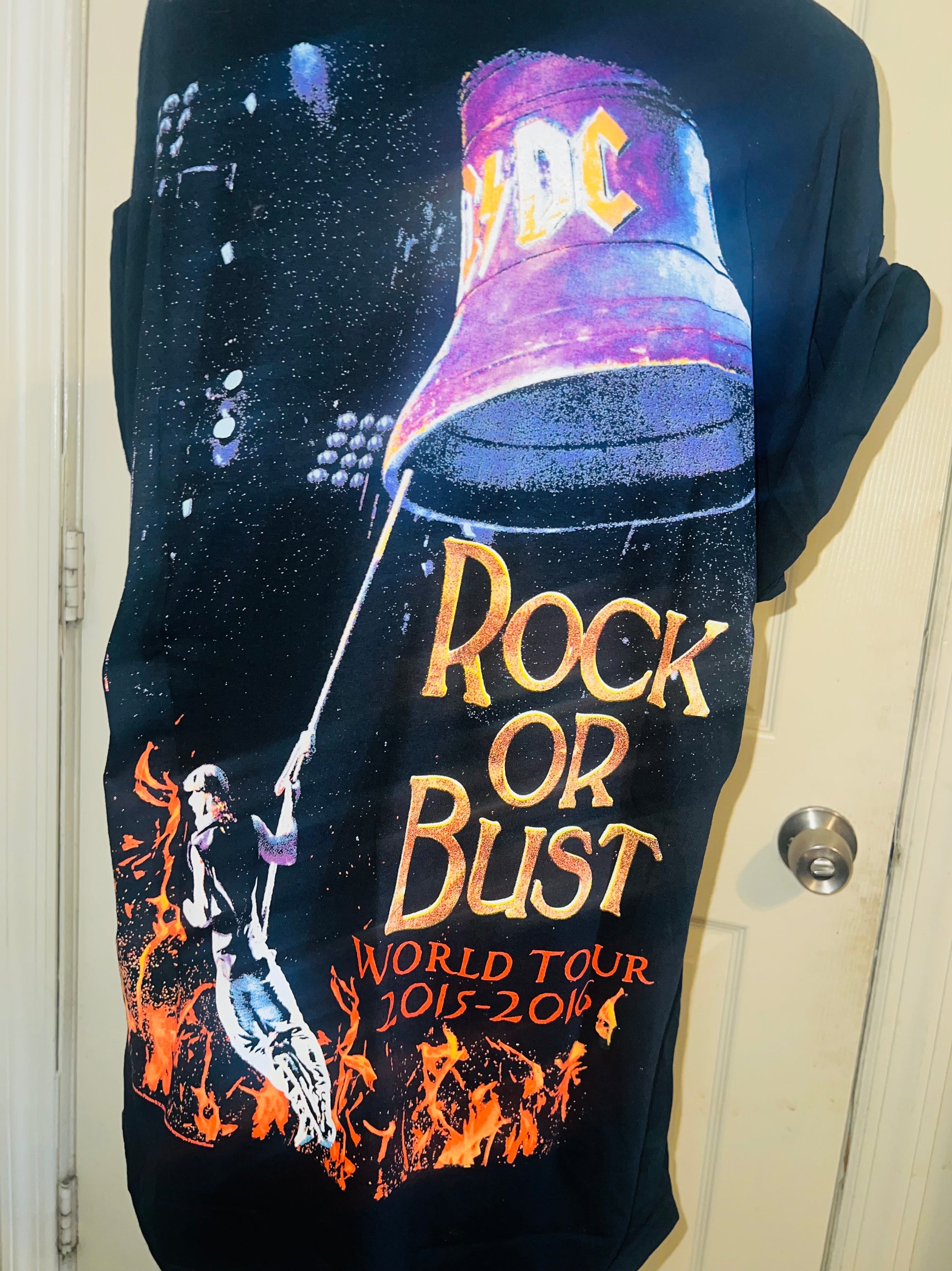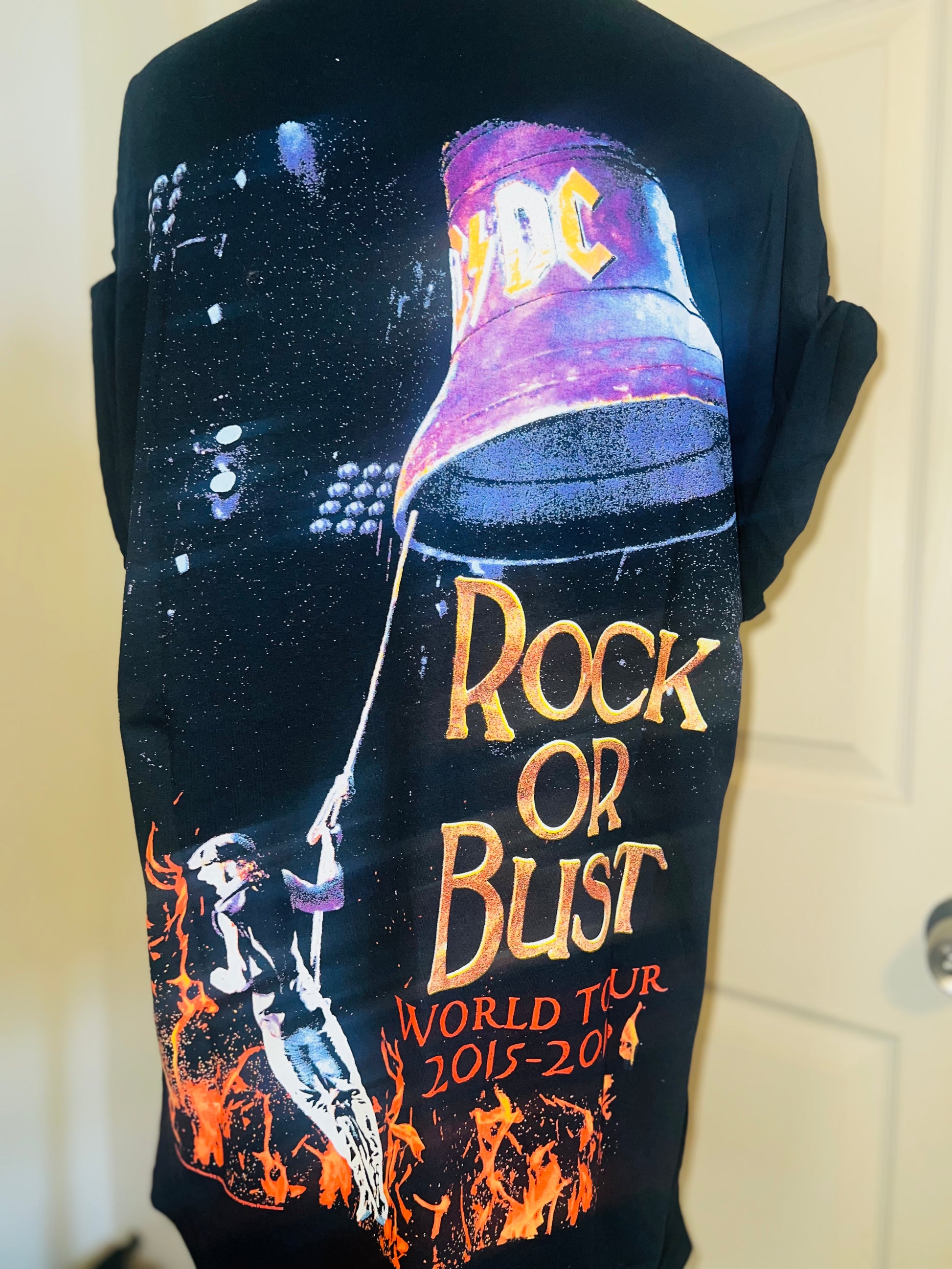 This is now a preorder. Please allow extra processing time. A black AC/DC double sided “Rock or Bust” ‘15-16 tee. Size Large, oversized.