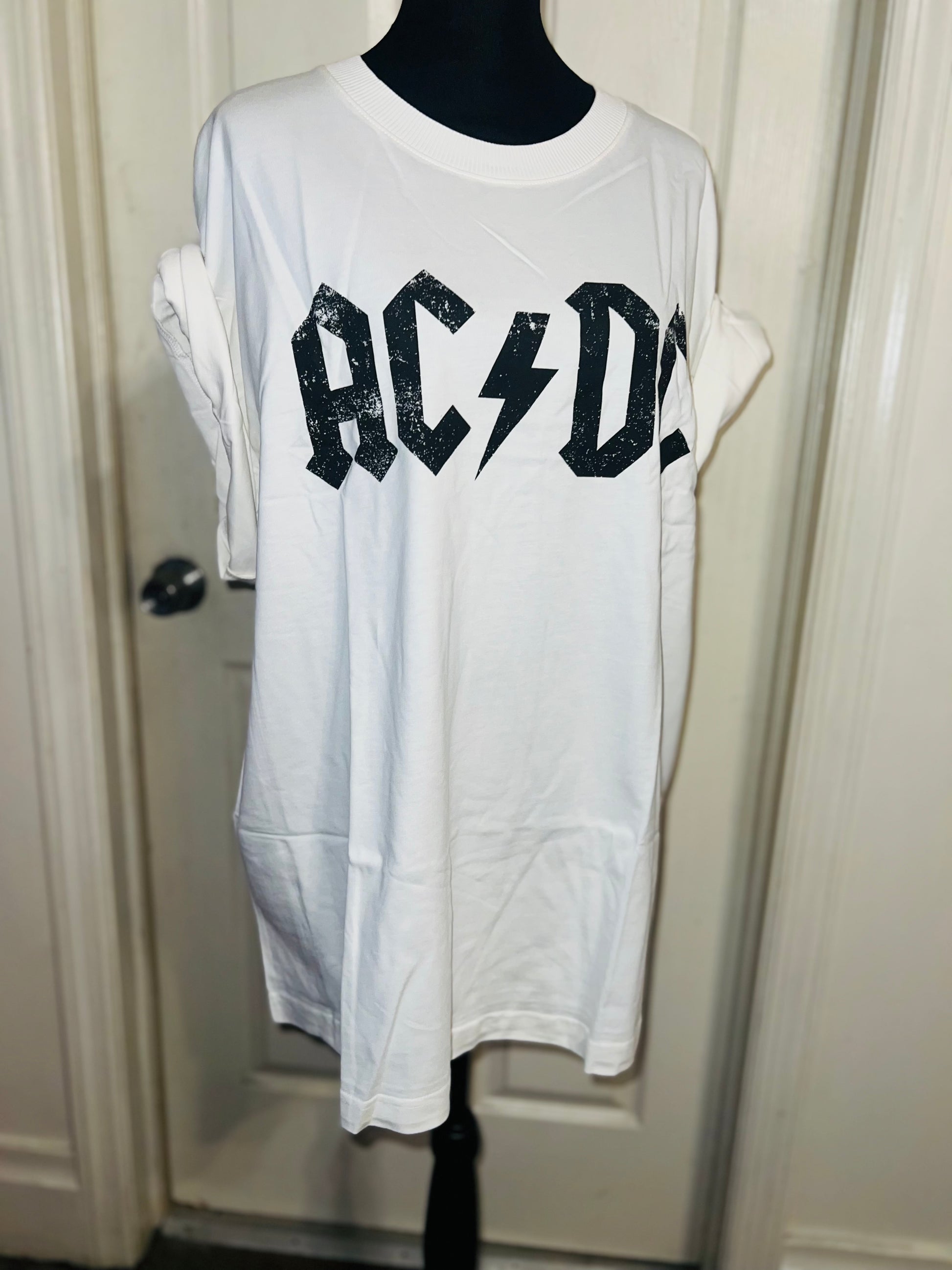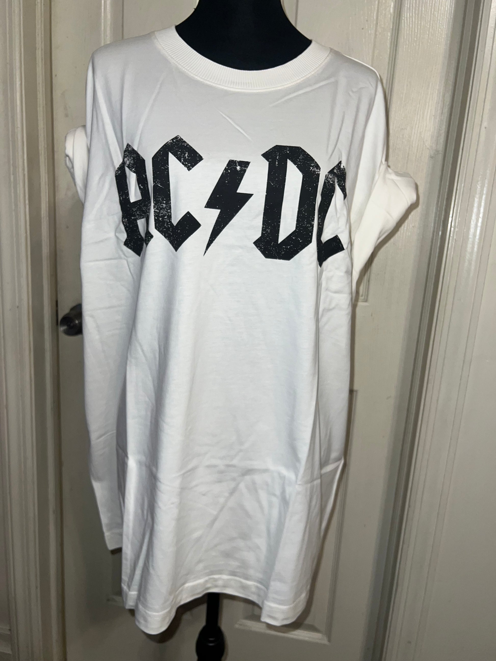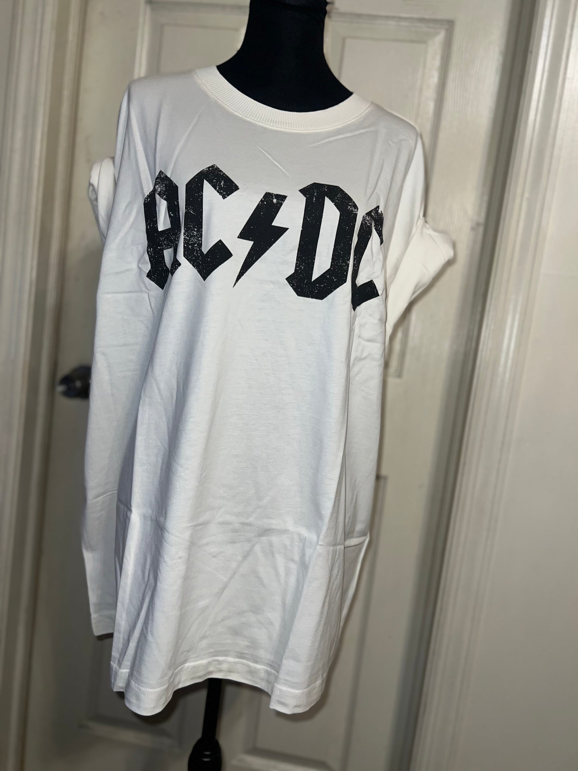 This is now a preorder. Please allow extra processing time. A white AC/DC tee- it’s simple, but perfect for a staple in your collection and perfect for distressing. It’s long (could be like a dress for some) and drop shoulders. Size XL, oversized.