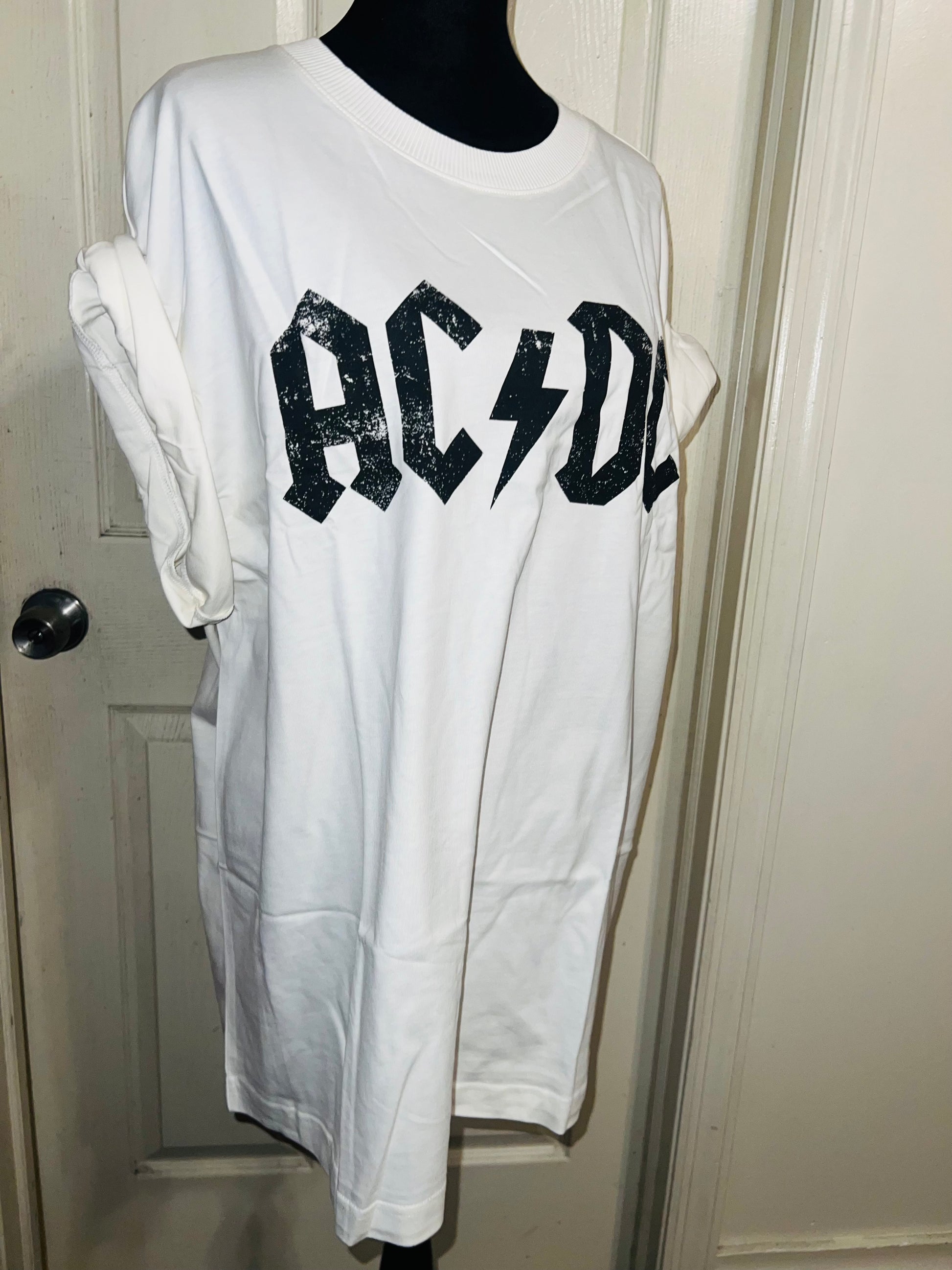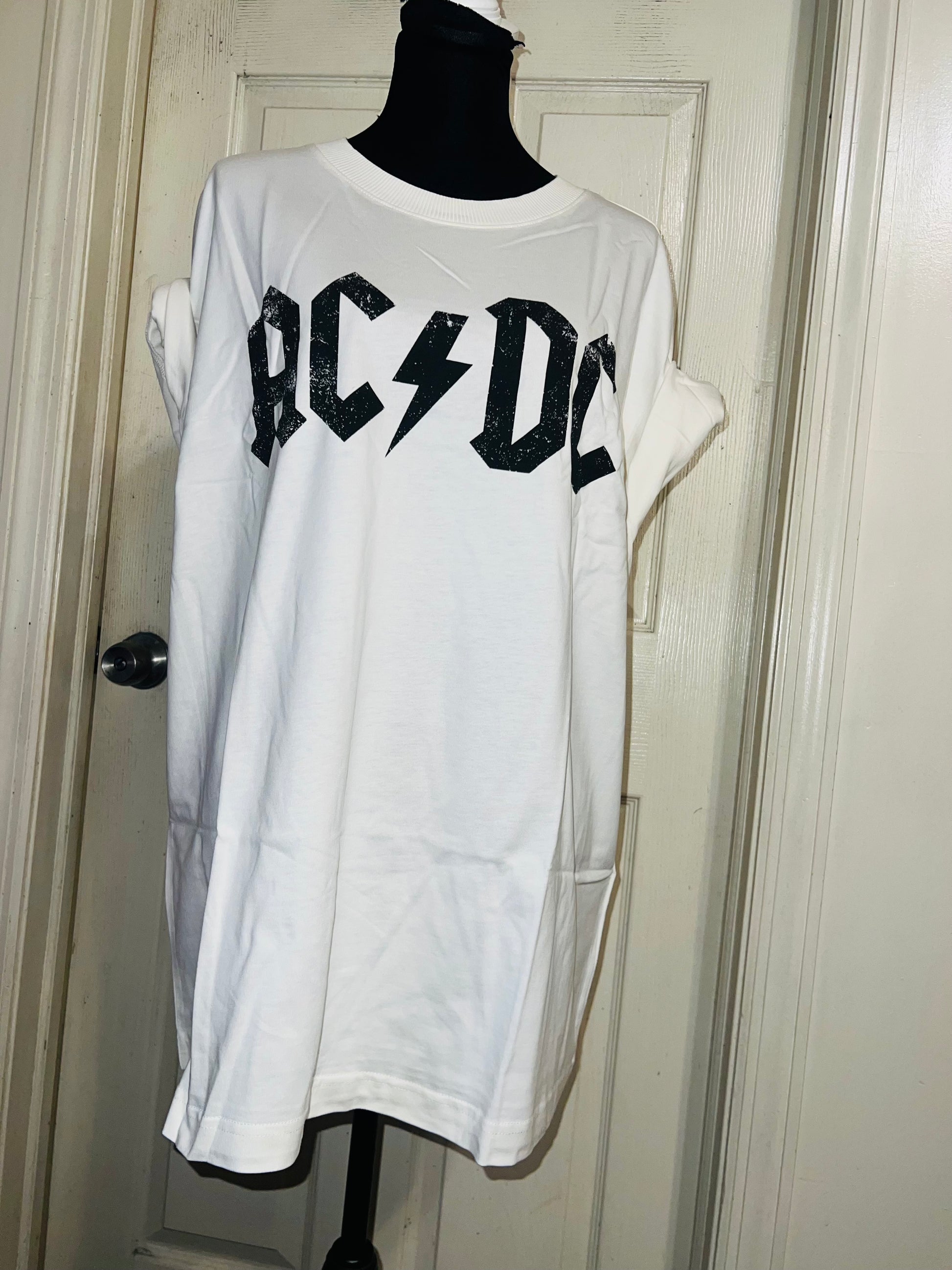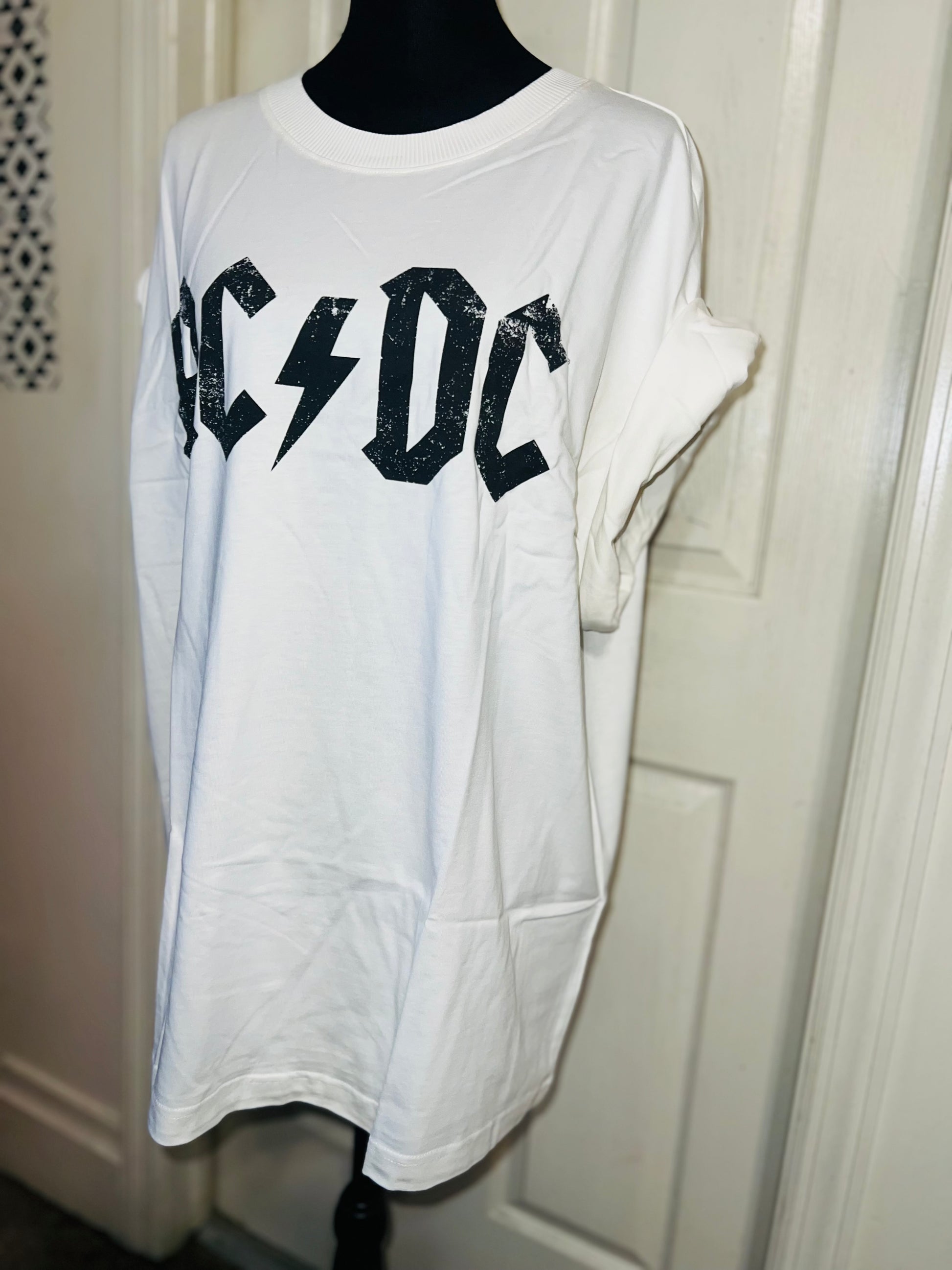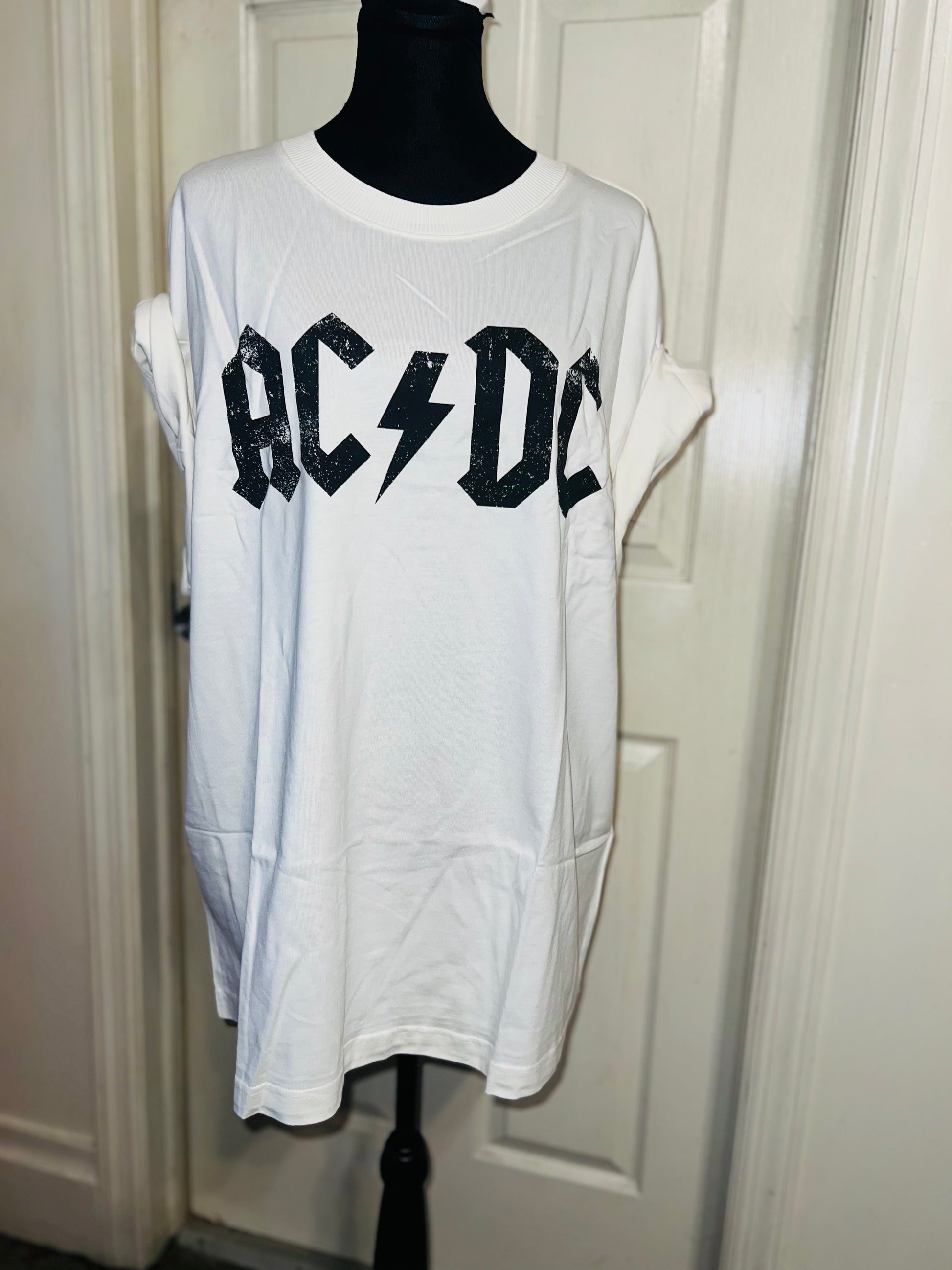 This is now a preorder. Please allow extra processing time. A white AC/DC tee- it’s simple, but perfect for a staple in your collection and perfect for distressing. It’s long (could be like a dress for some) and drop shoulders. Size XL, oversized.