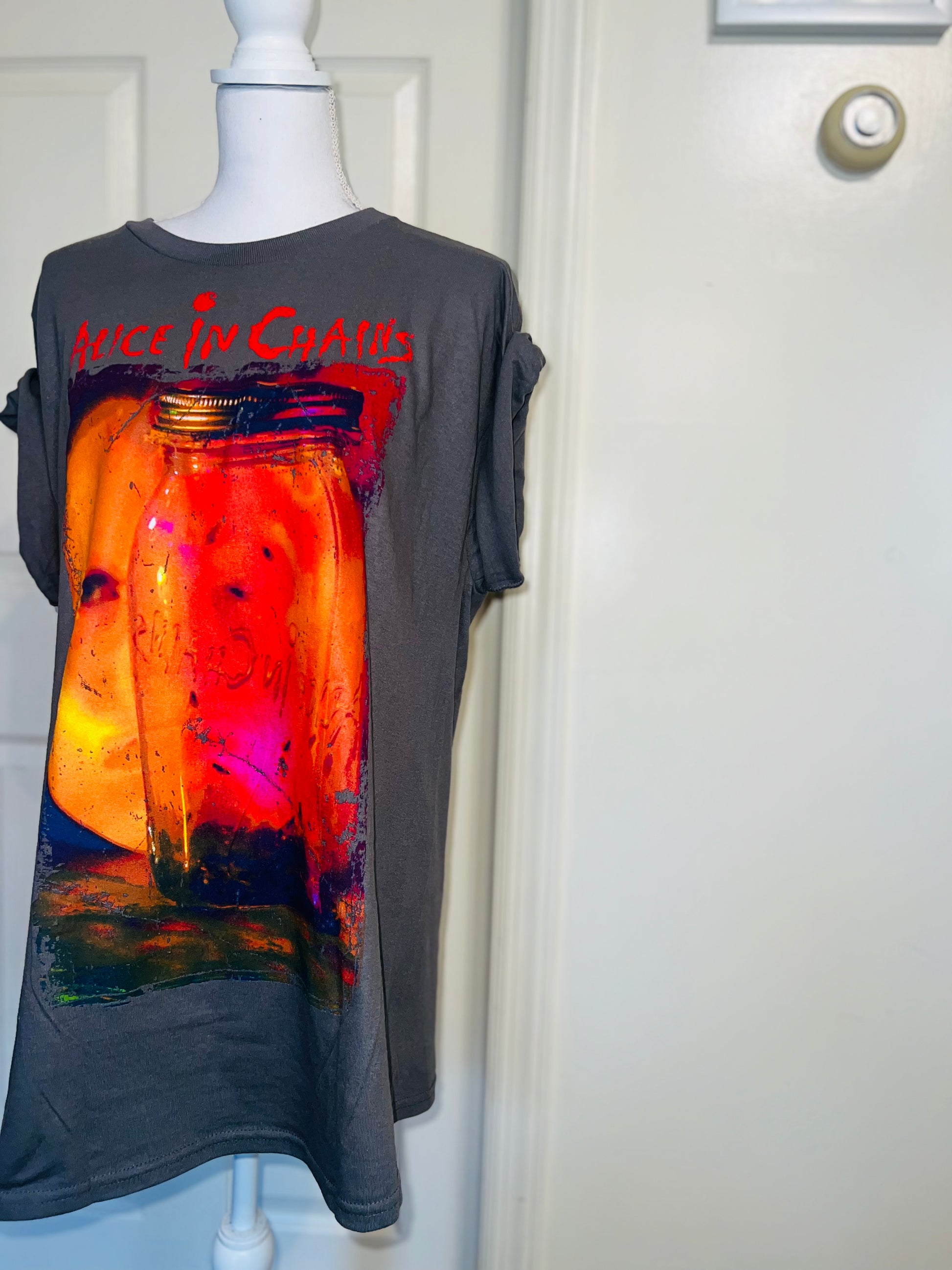 This is now a preorder. Please allow extra processing time. A dark grey Alice In Chains tee with their sick graphic on the front- size L/XL, oversized.