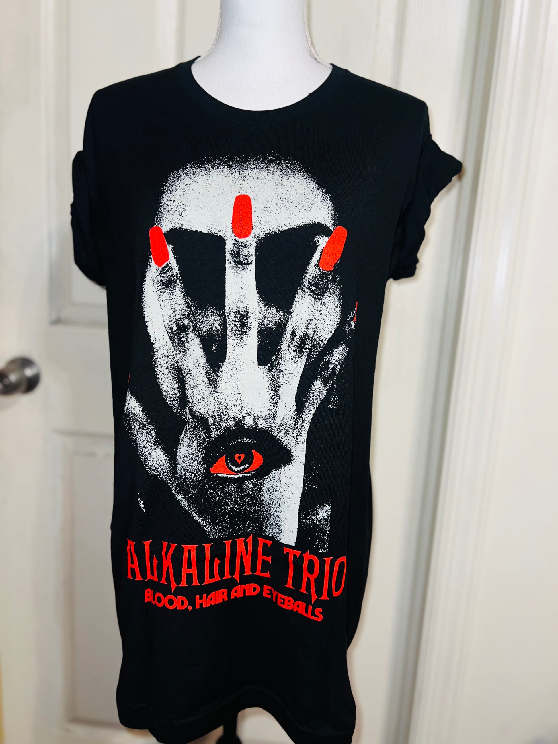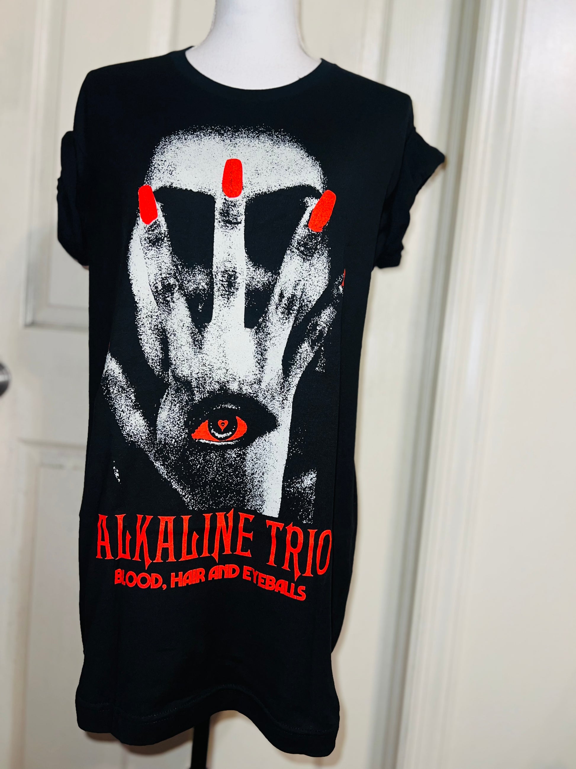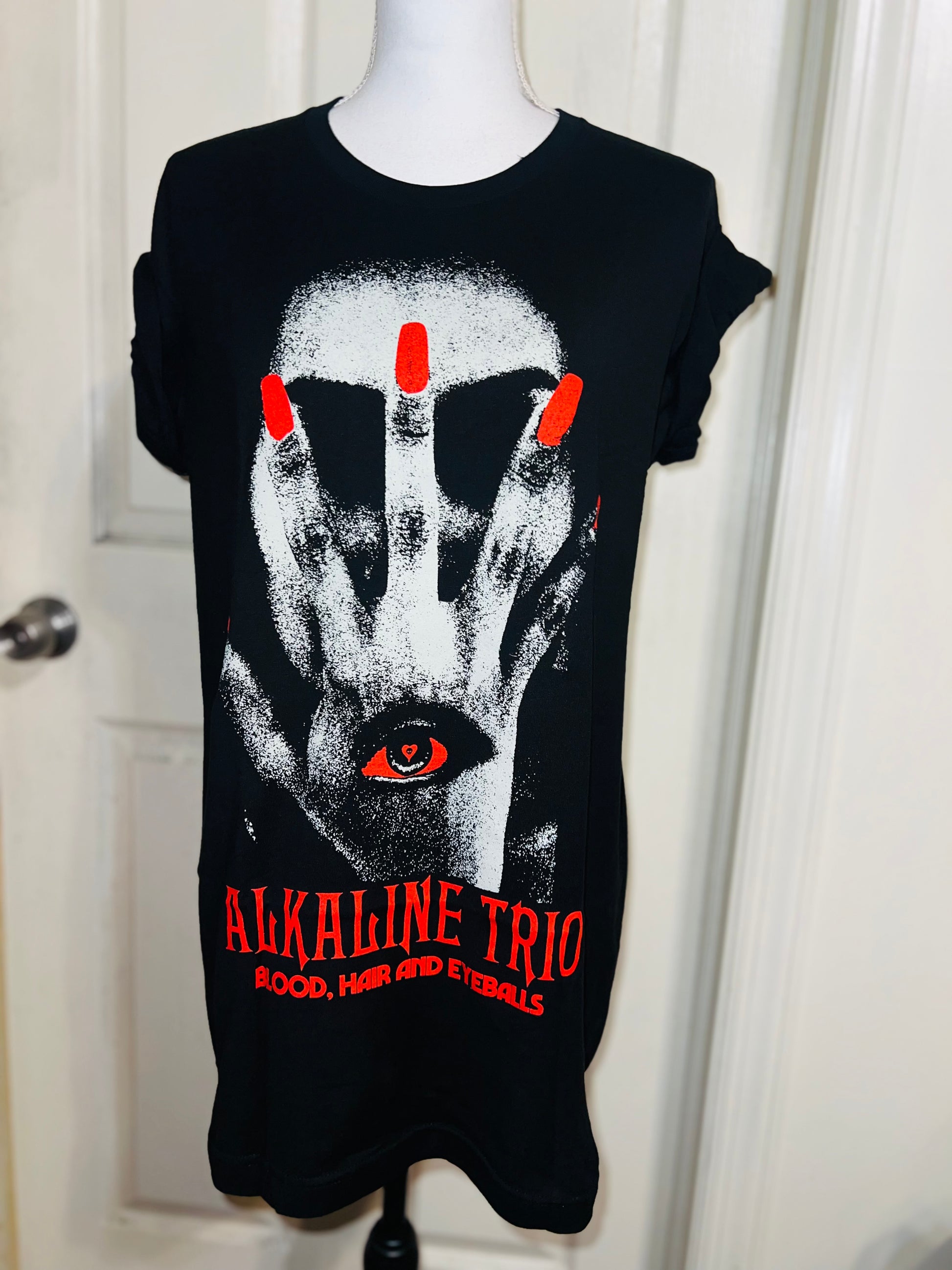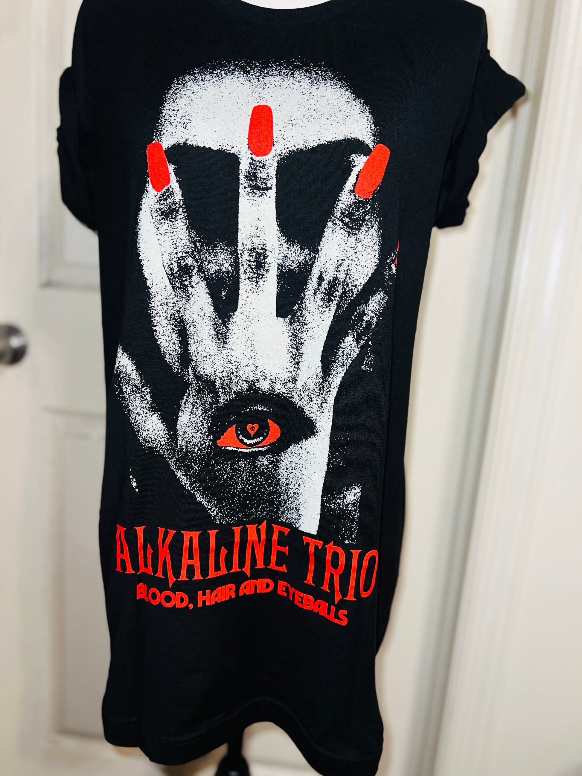 This is now a preorder please allow extra processing time. I’ve gotten requests for this before. A black Alkaline Trio tee with a sick graphic. Size large, oversized.