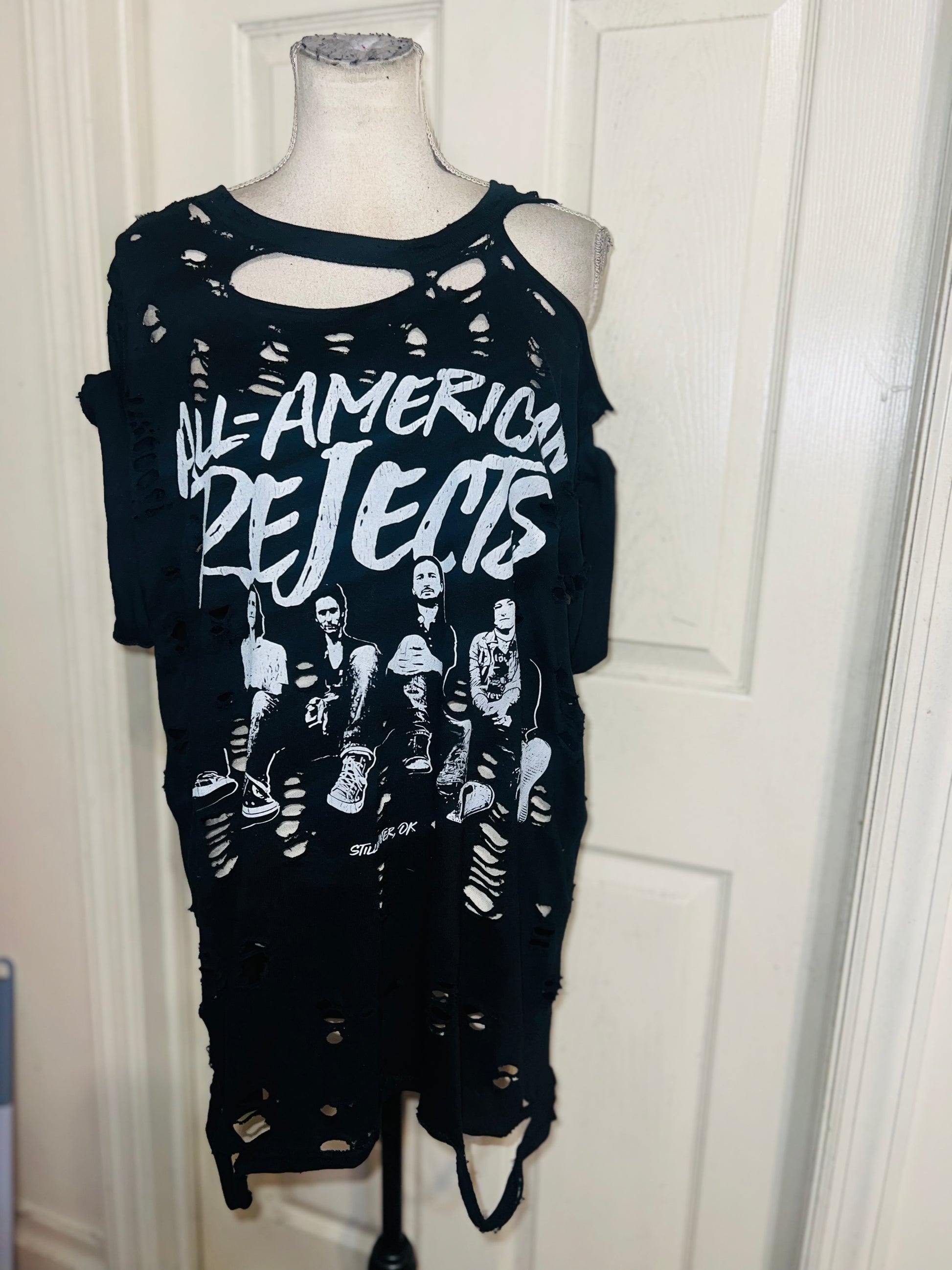 This is not yet distressed. Please choose distressing level. This is now a preorder. A black All American Rejects tee, oversized.
