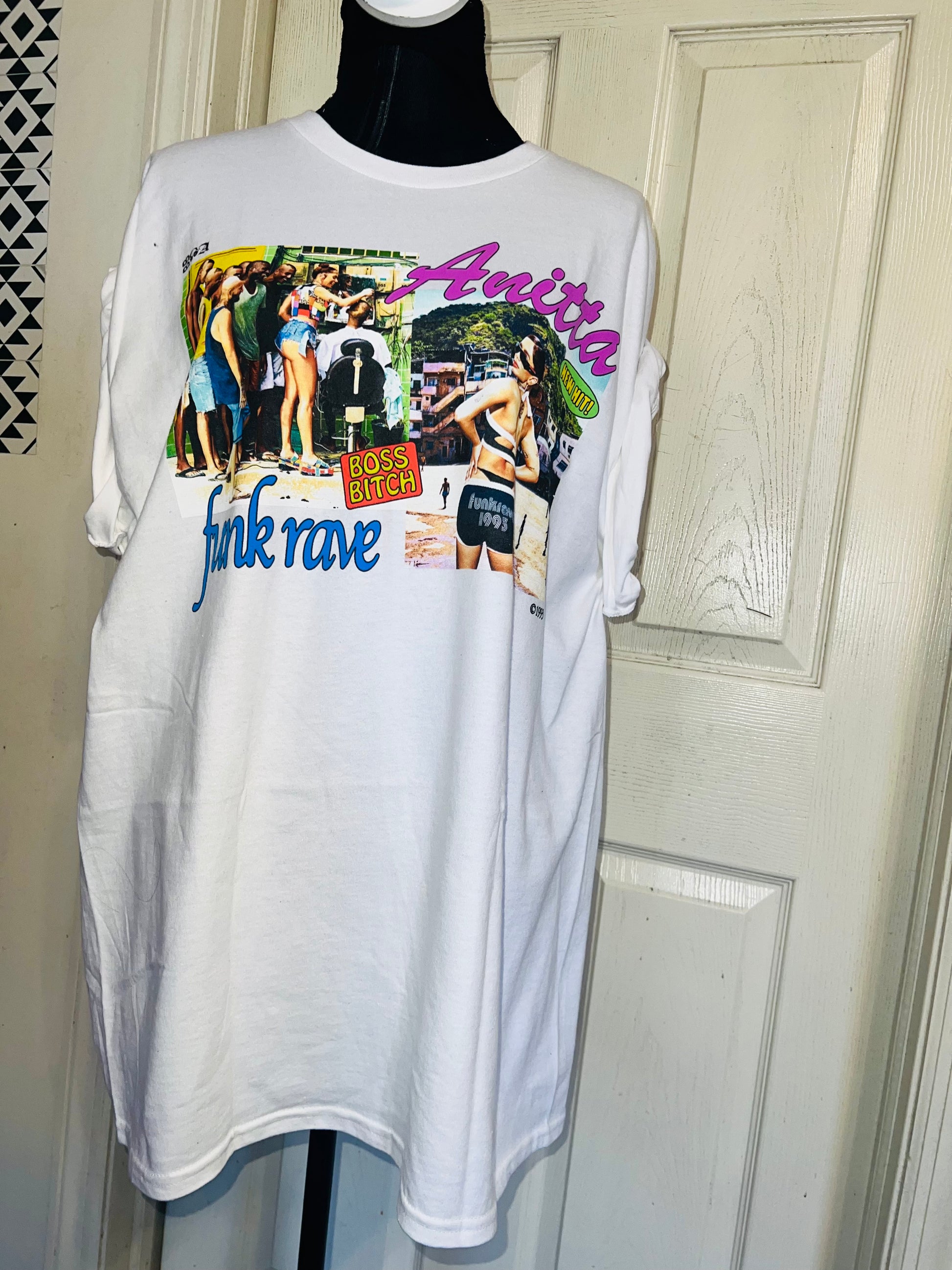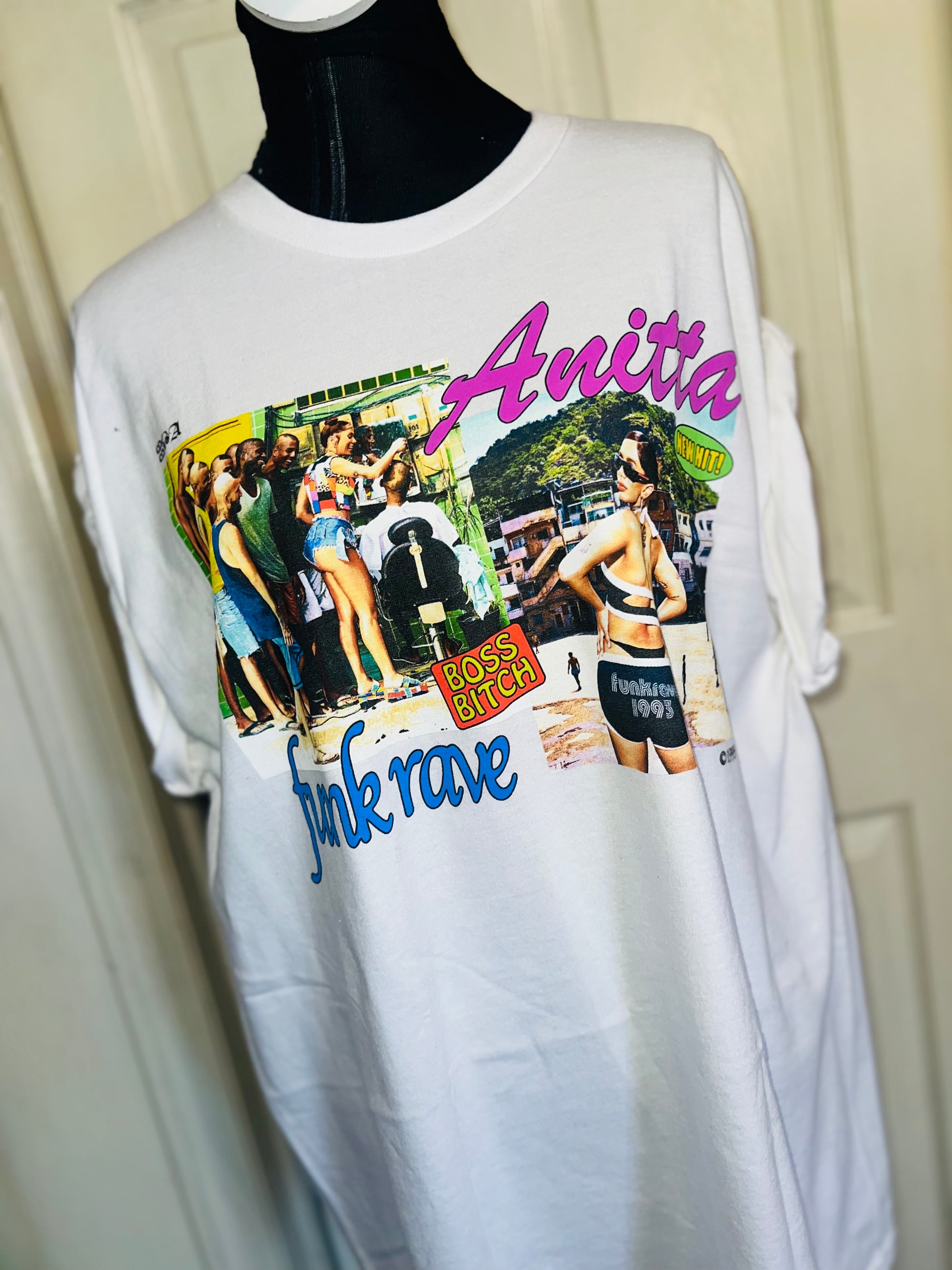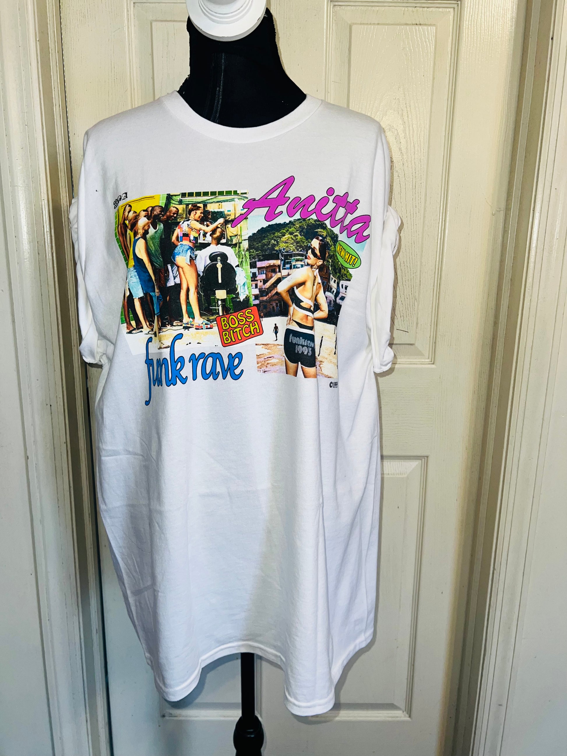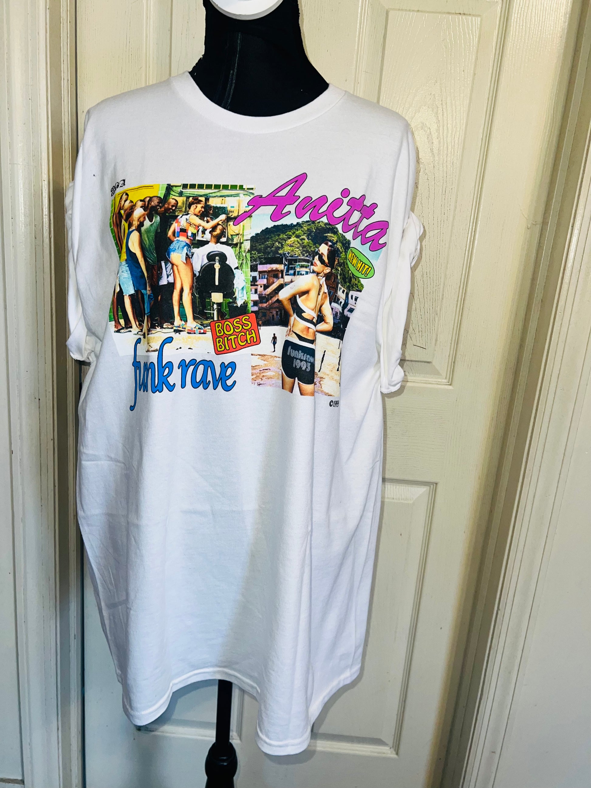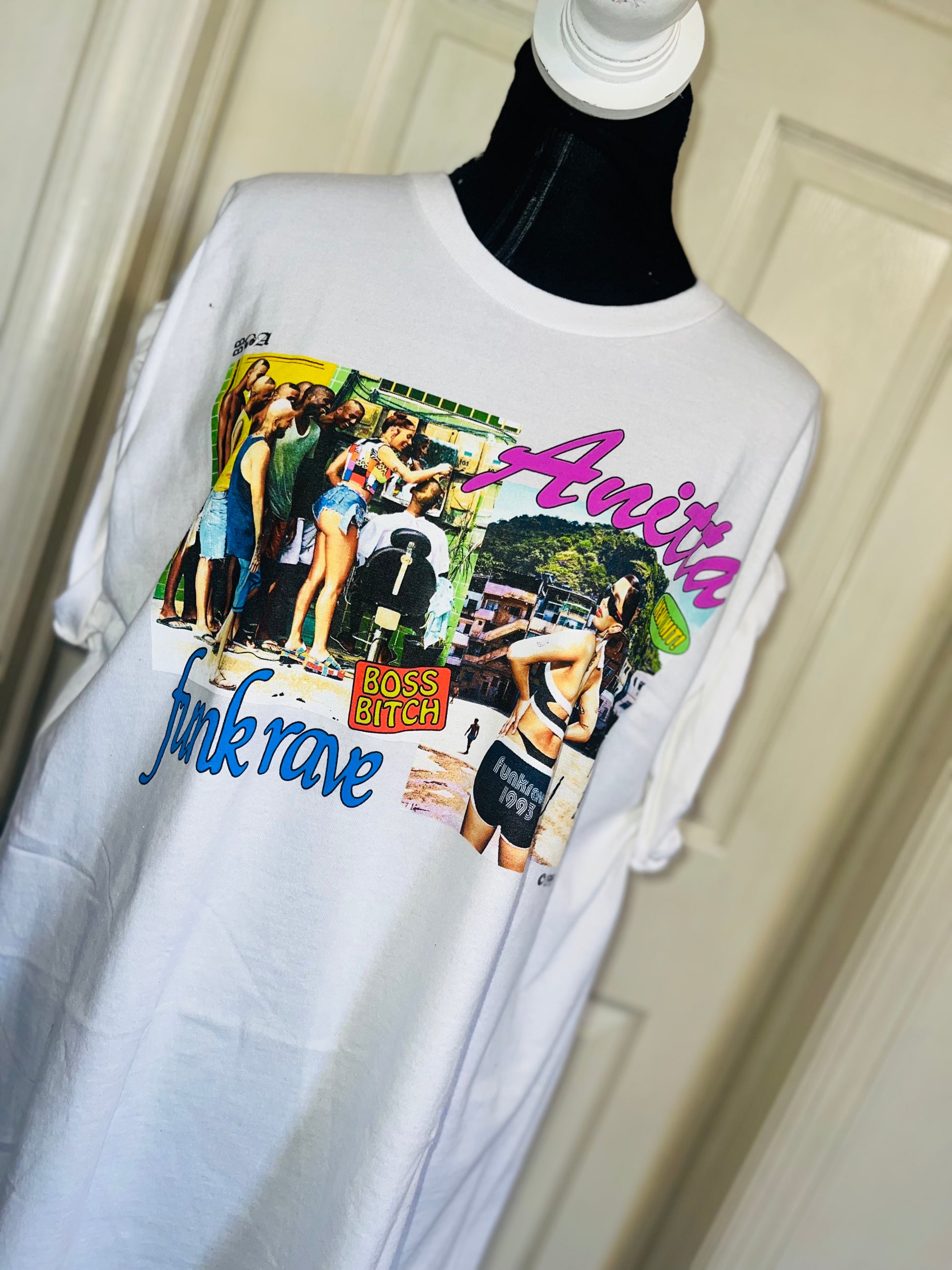 A white Funk Rave Anitta tee with some cool throwback pictures. Size XXL, oversized.