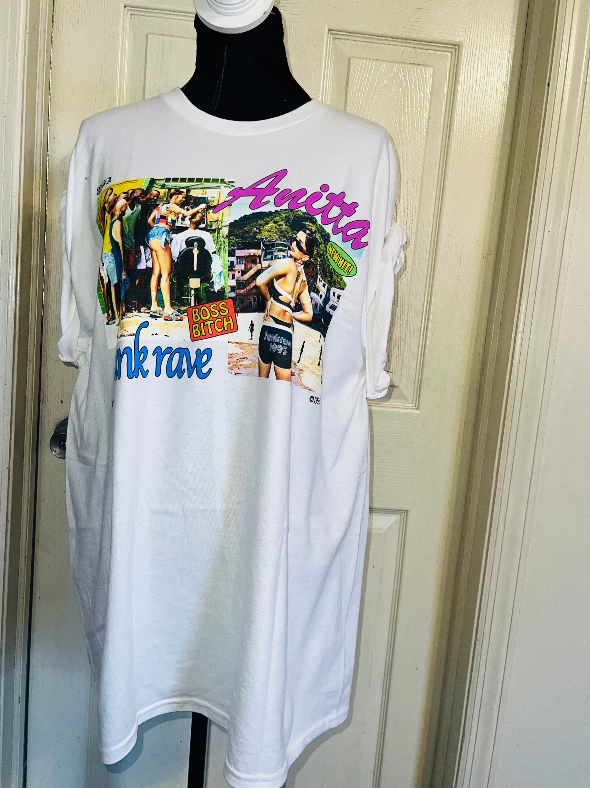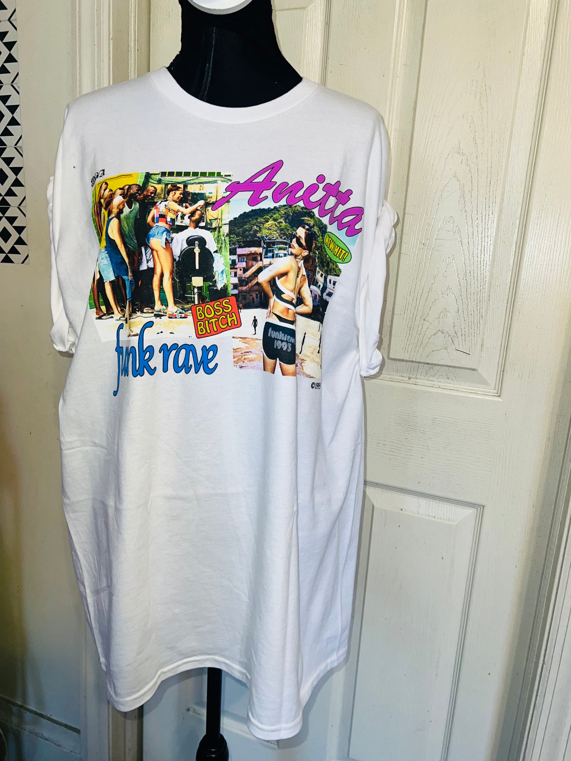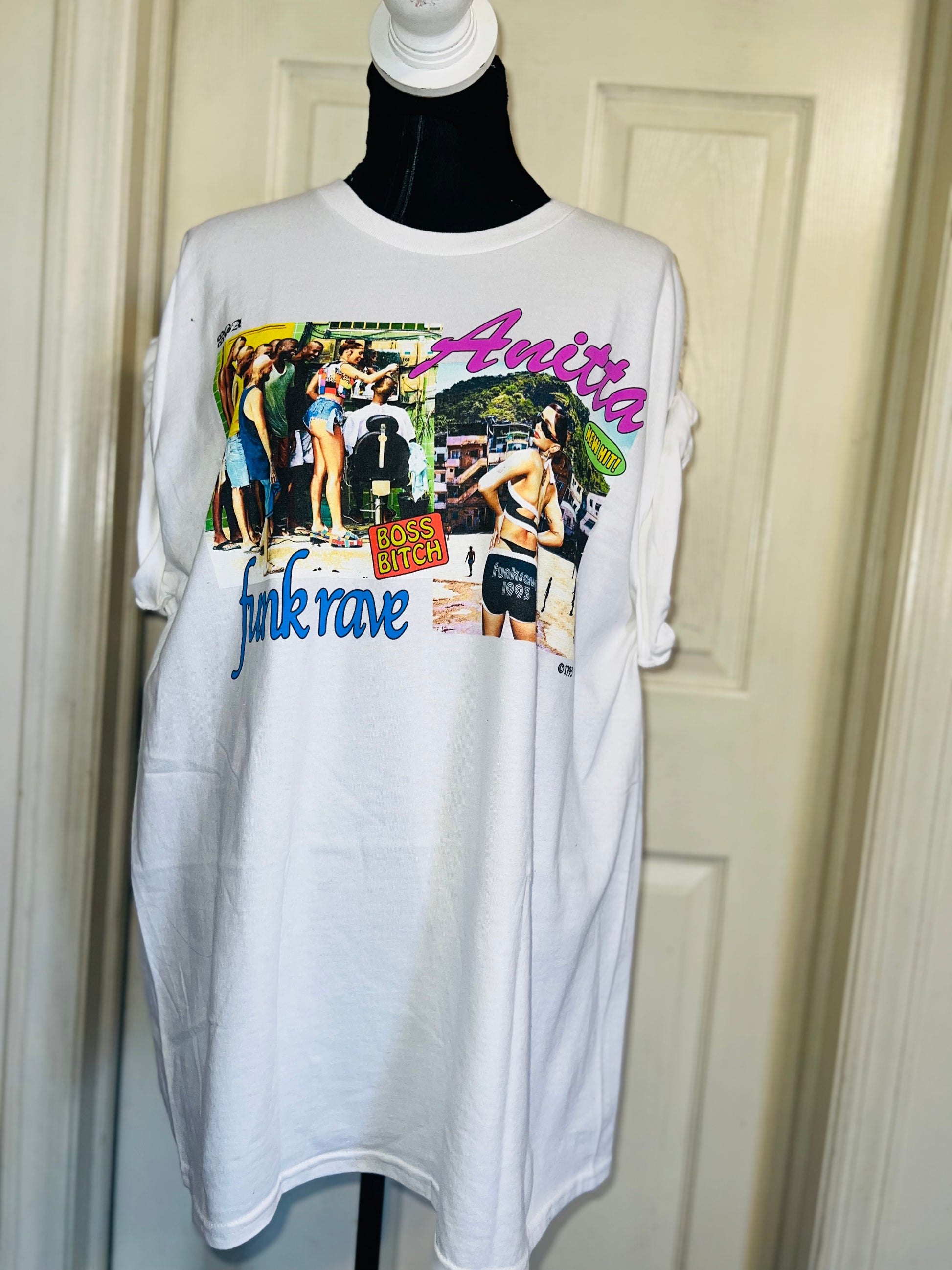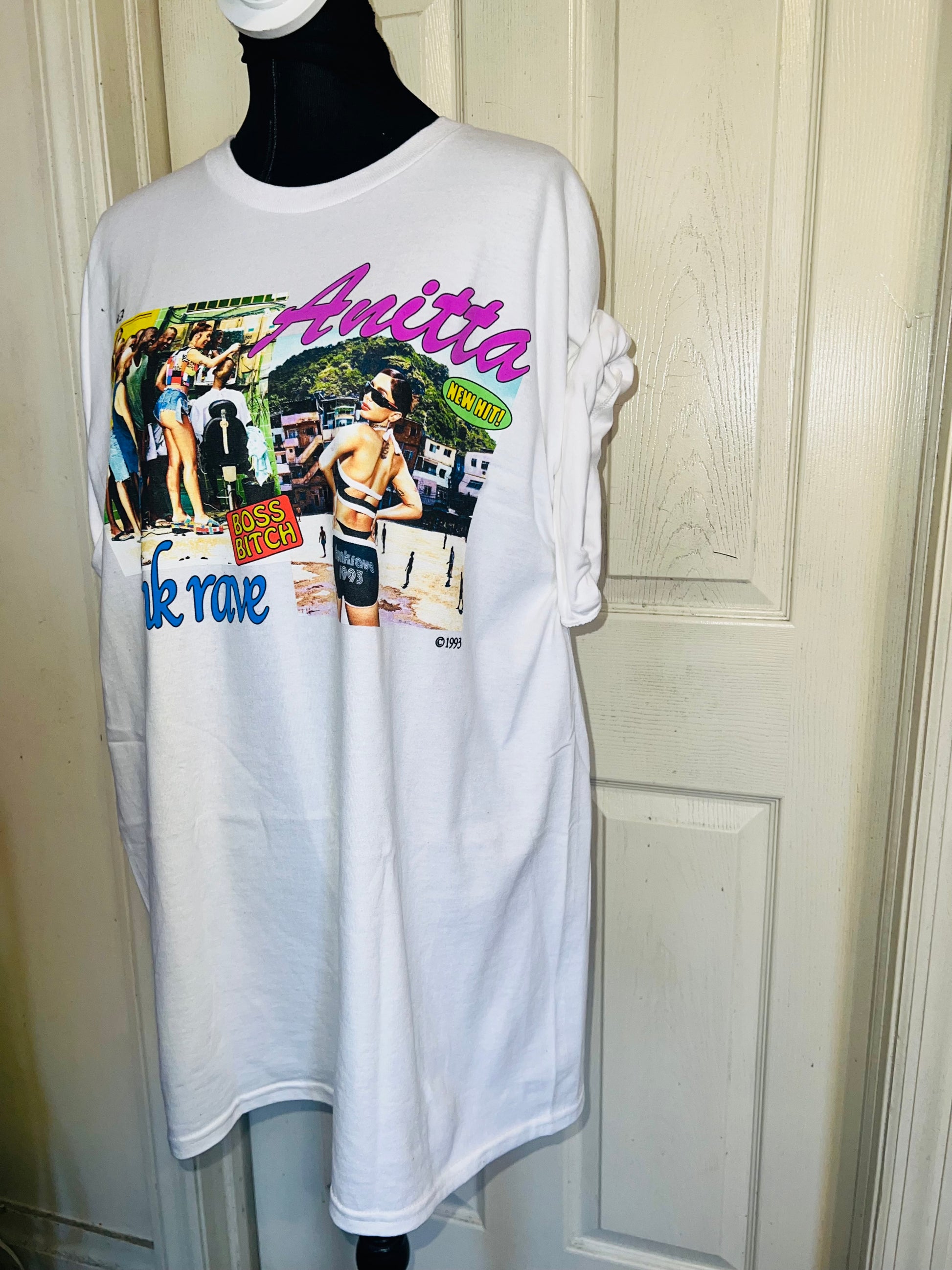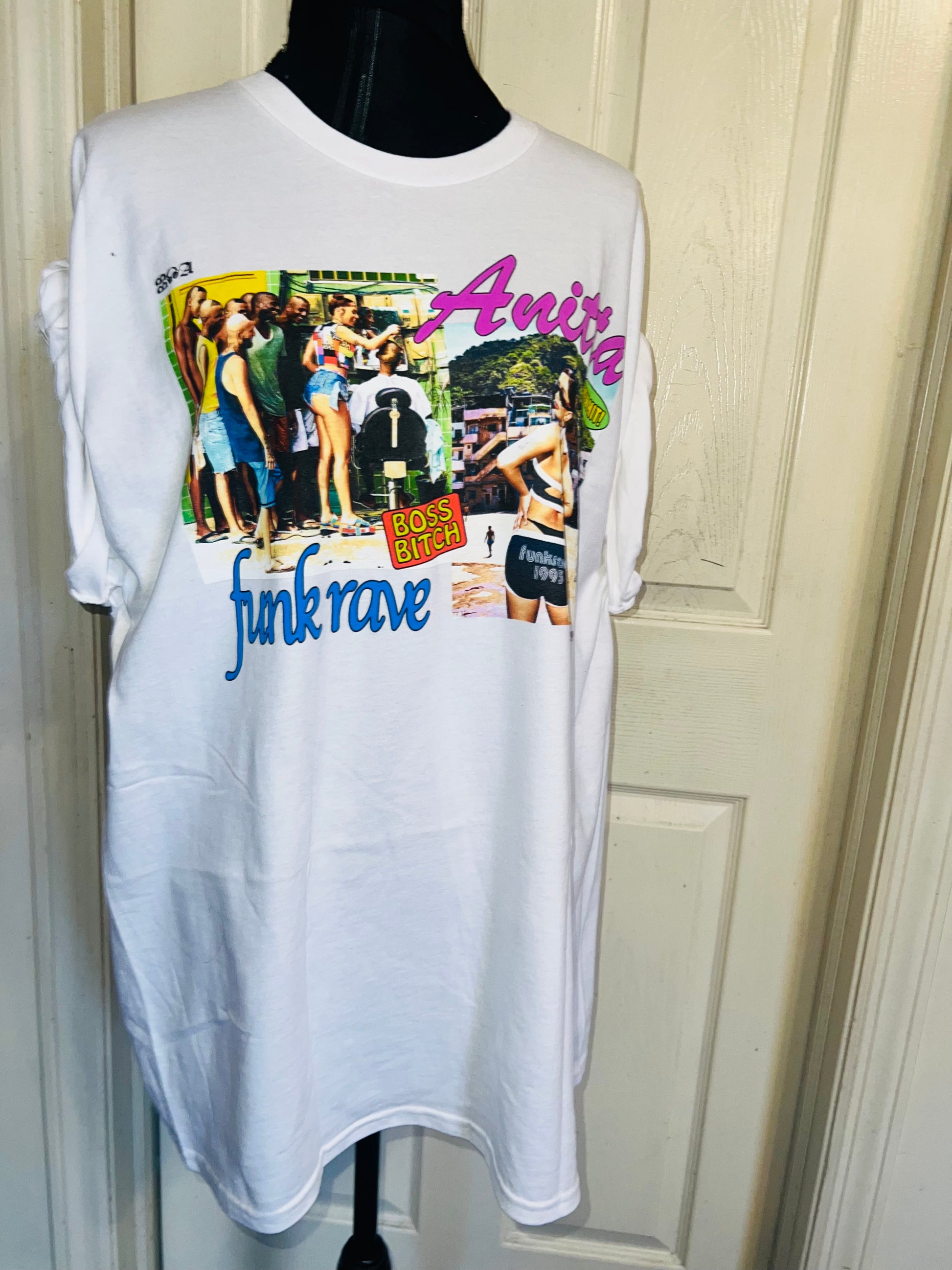 A white Funk Rave Anitta tee with some cool throwback pictures. Size XXL, oversized.