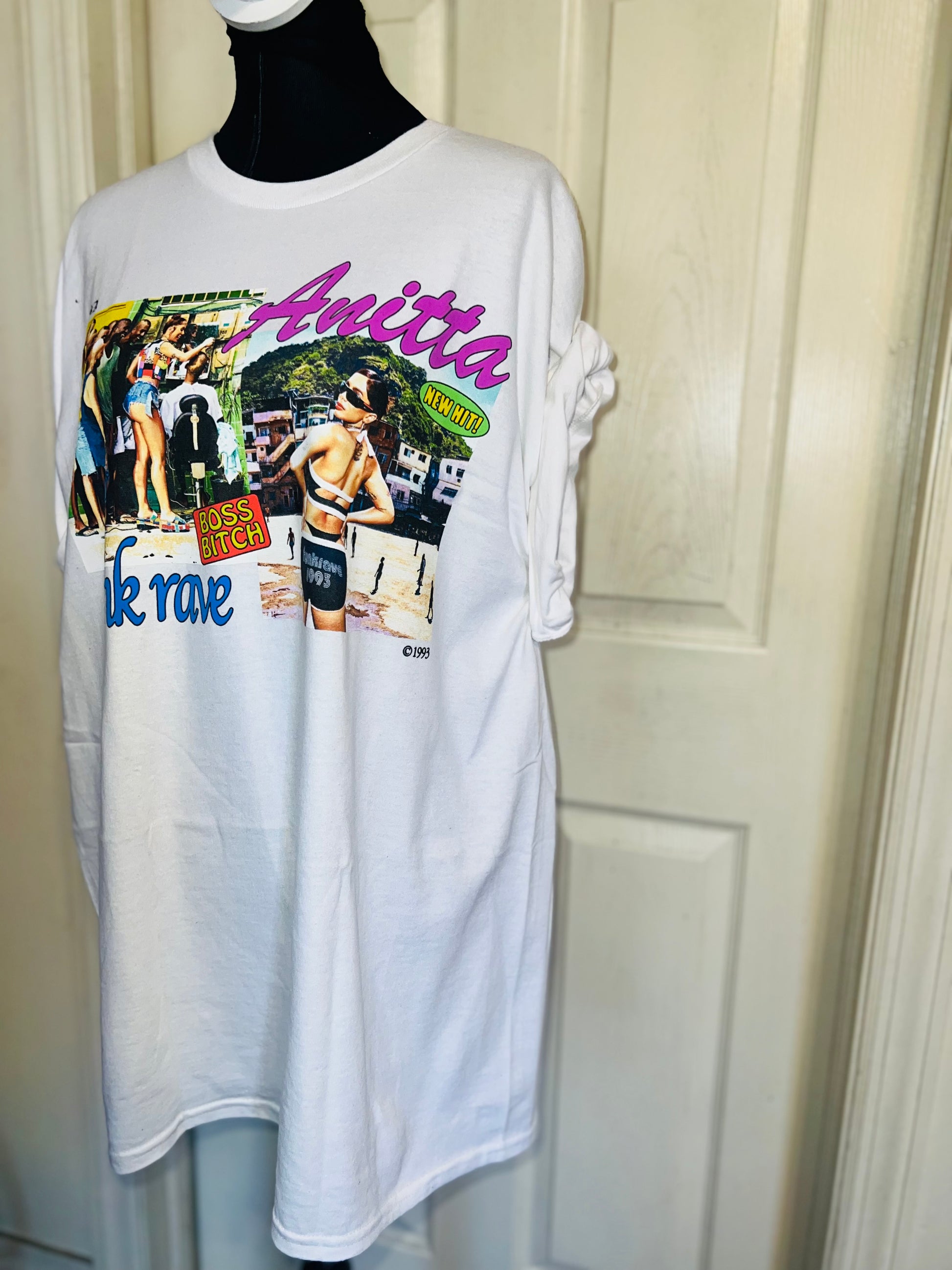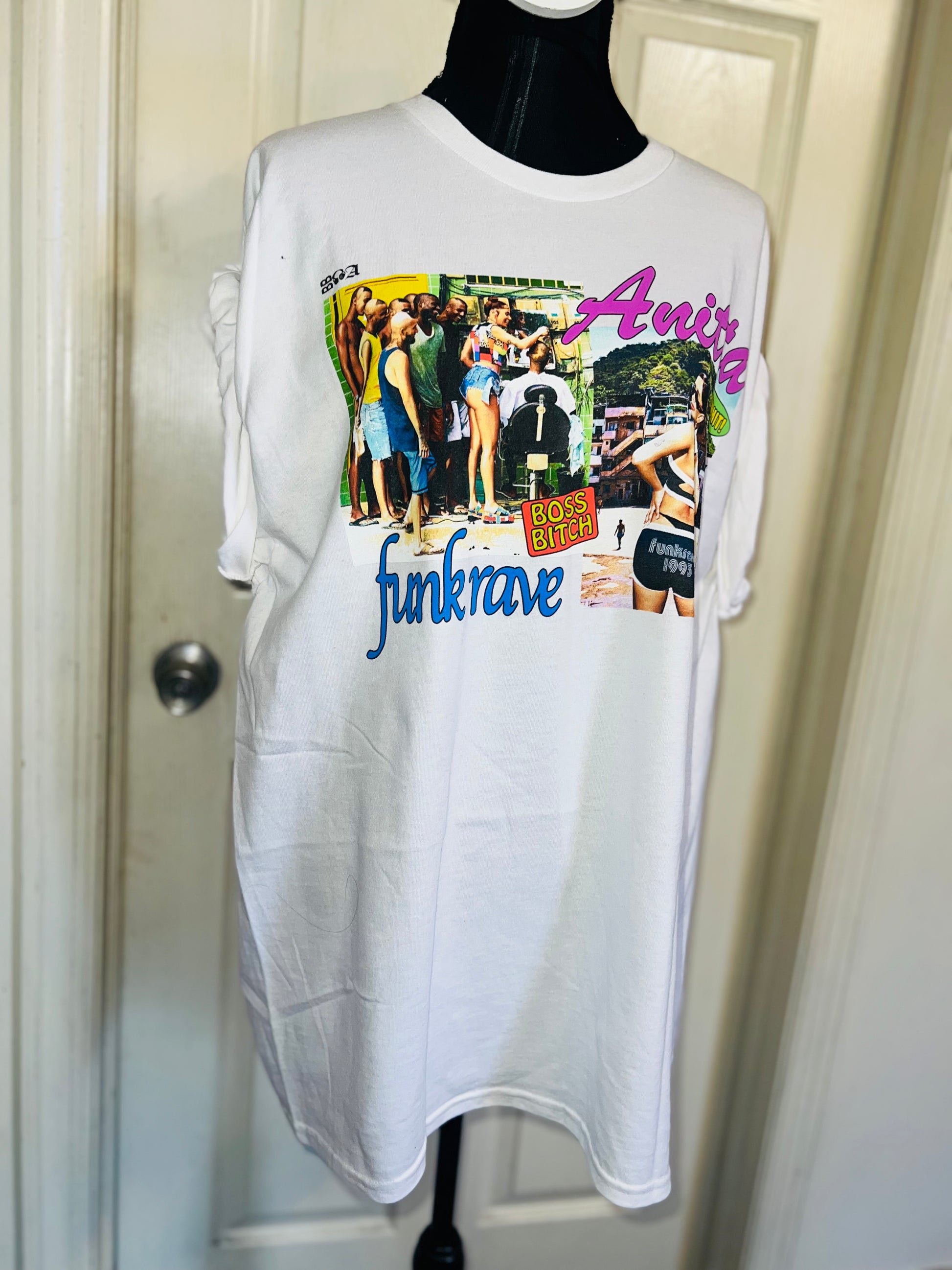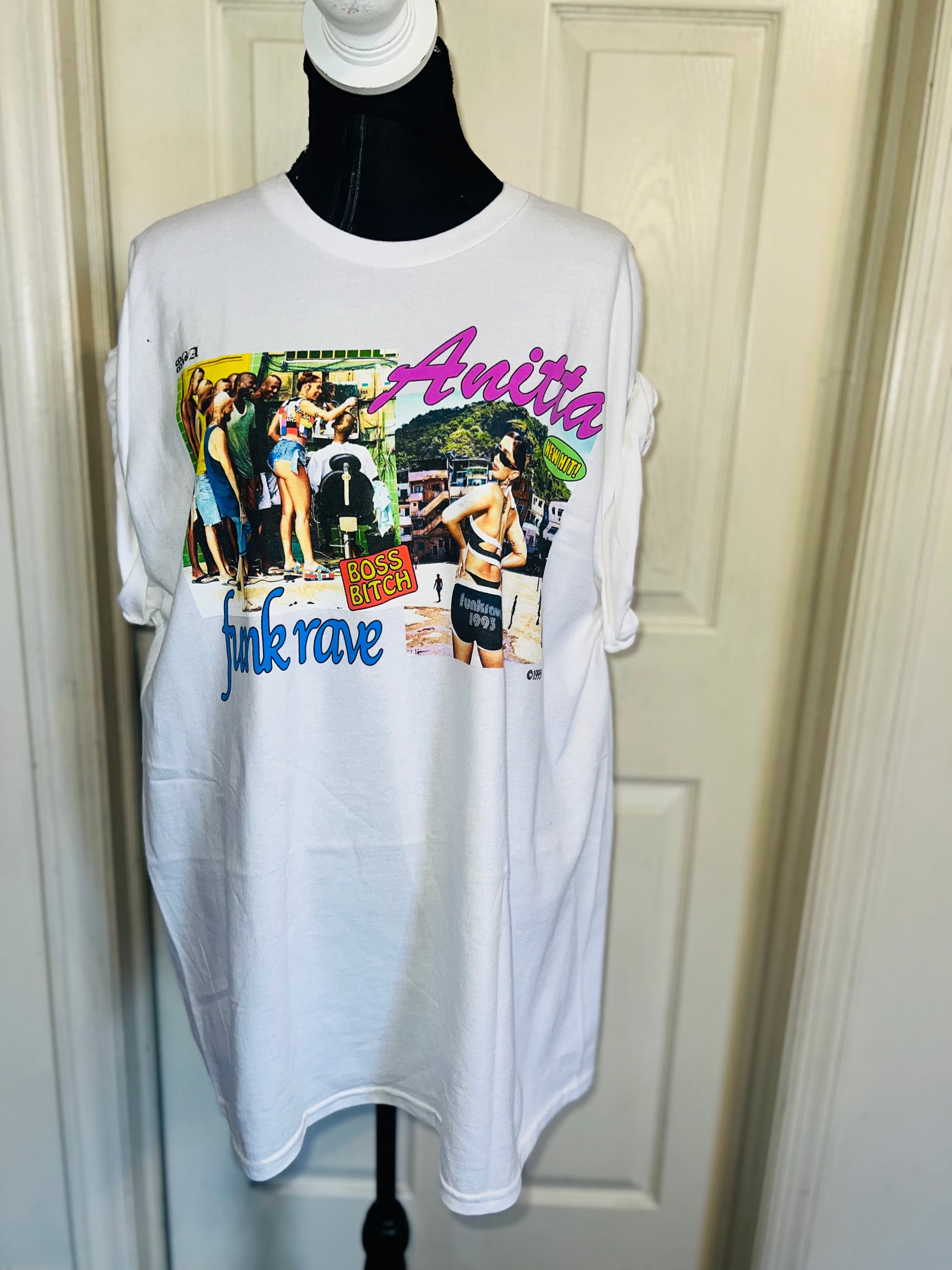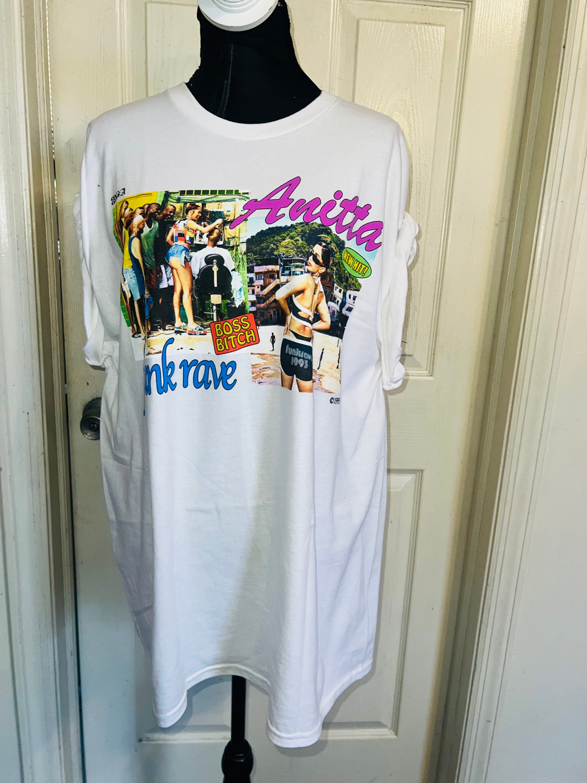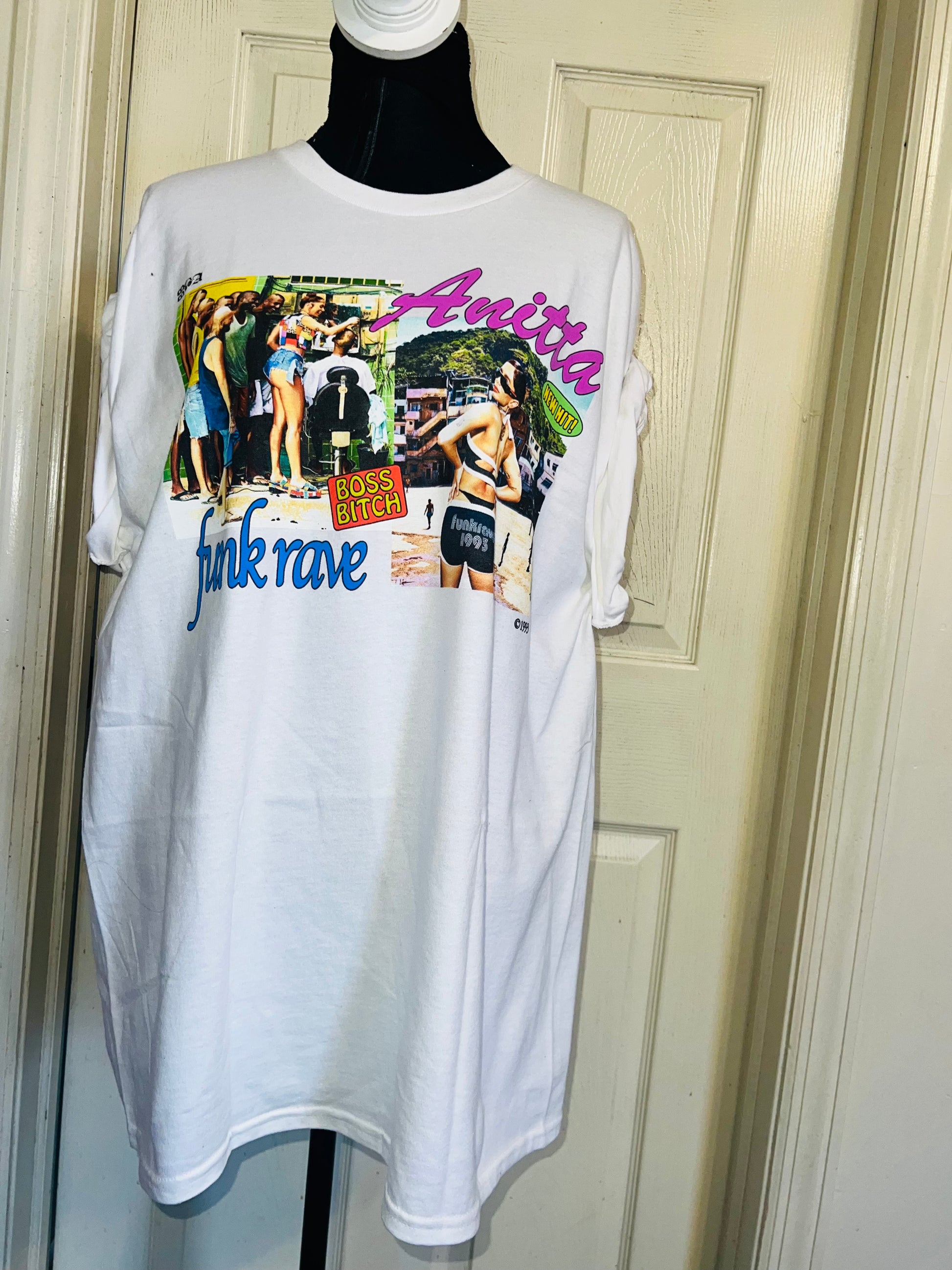 A white Funk Rave Anitta tee with some cool throwback pictures. Size XXL, oversized.