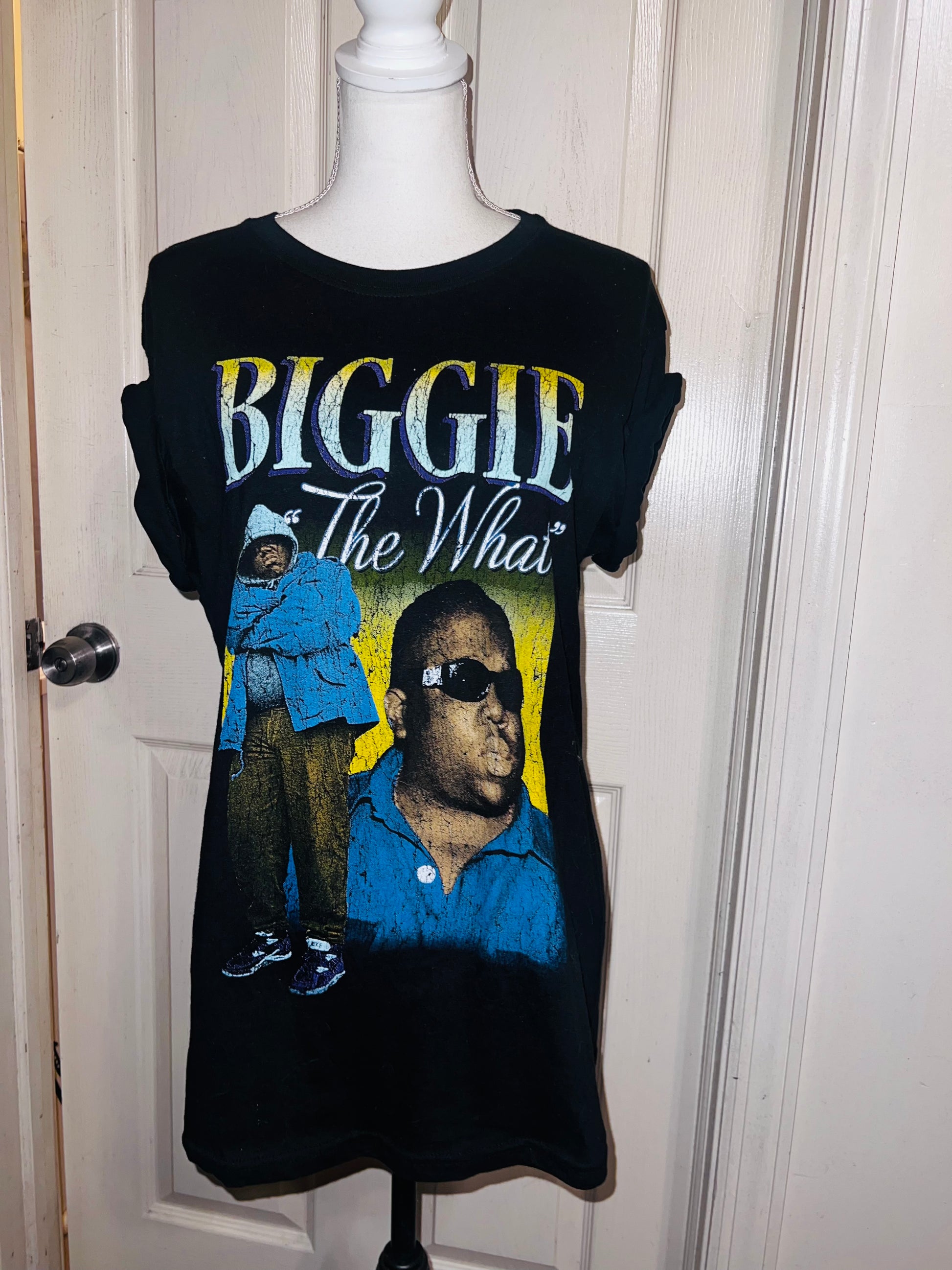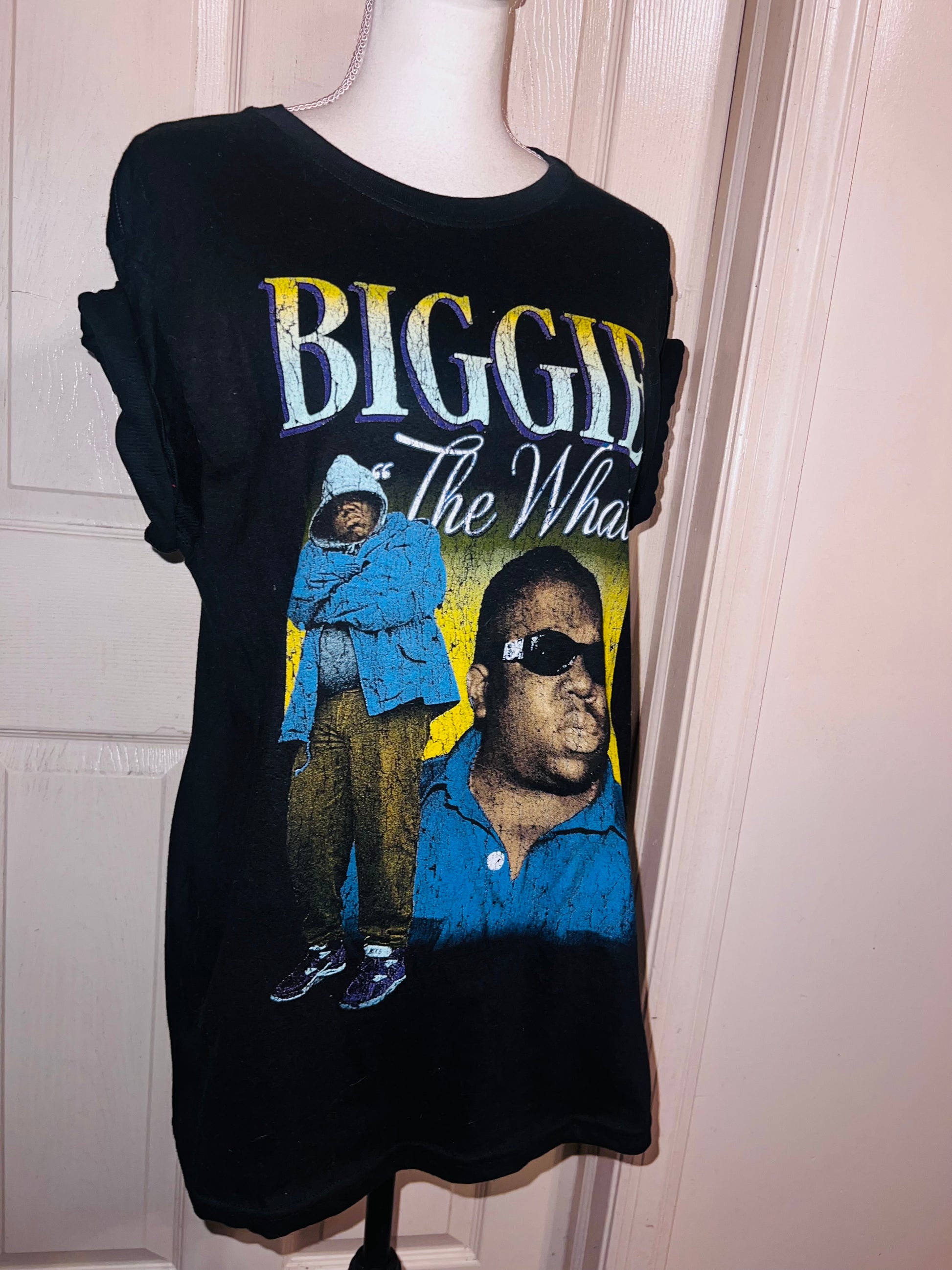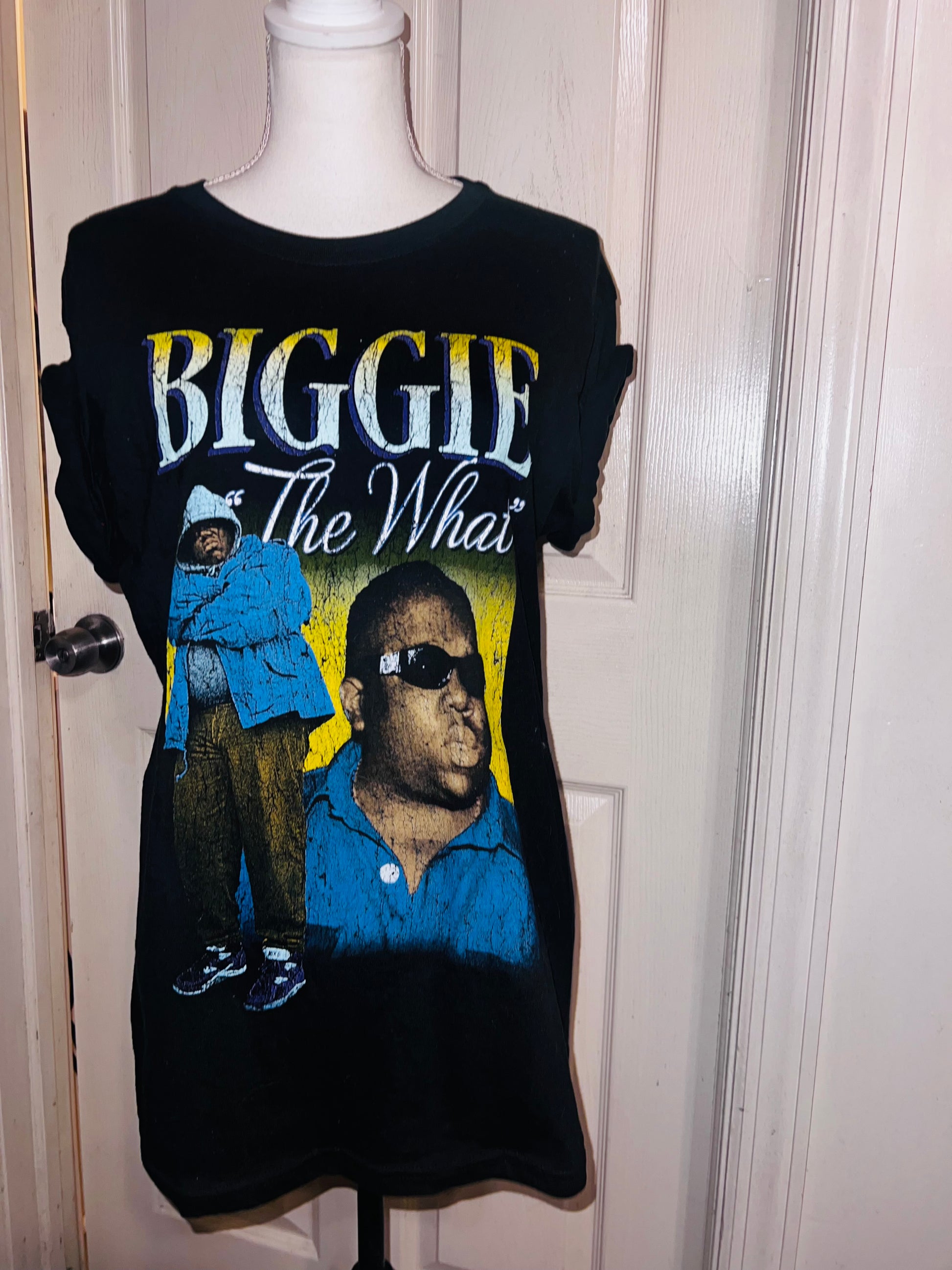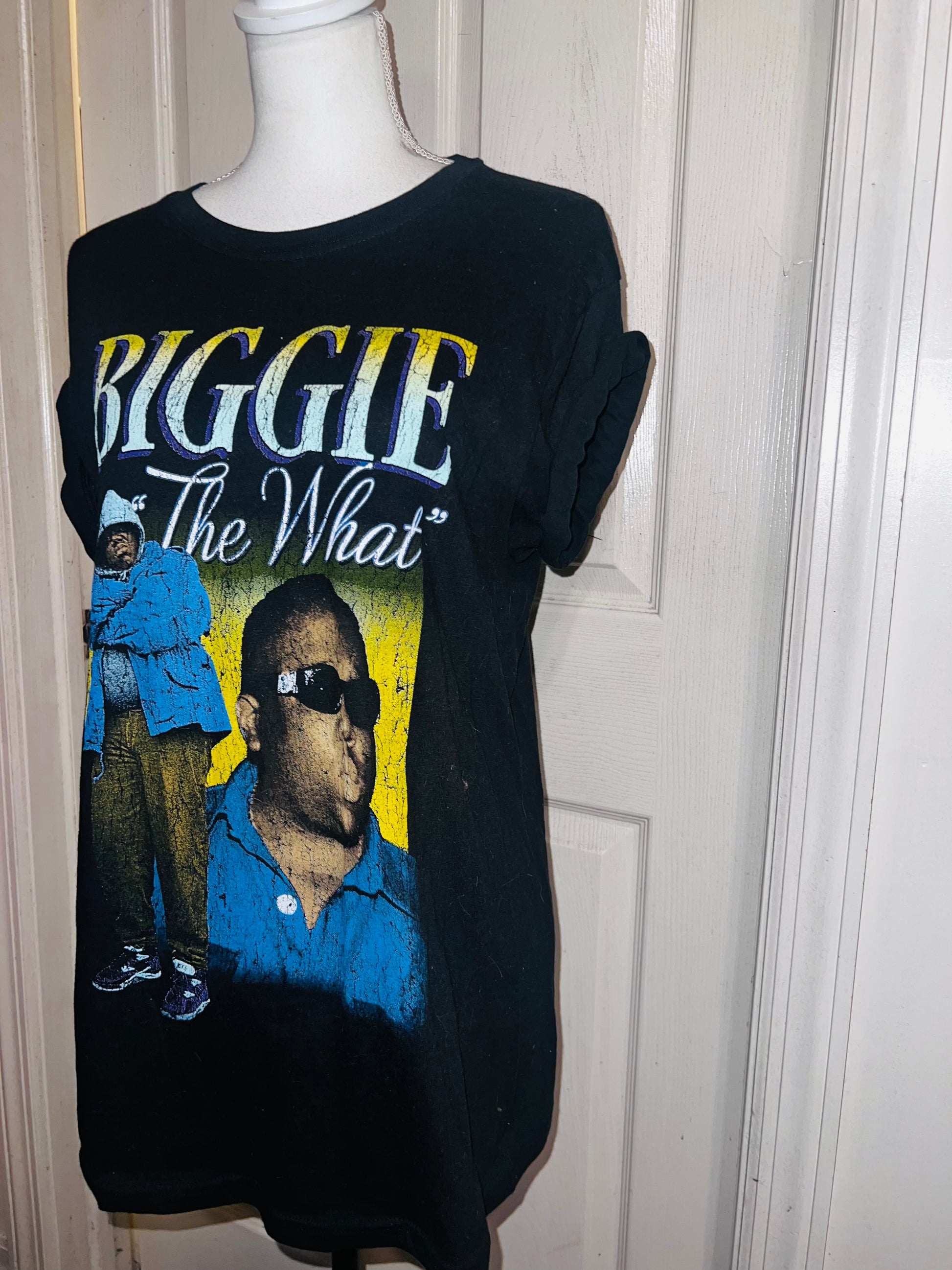 A black Biggie Smalls “The What” tee. It’s marked a medium, but fits like a M/L. Oversized.