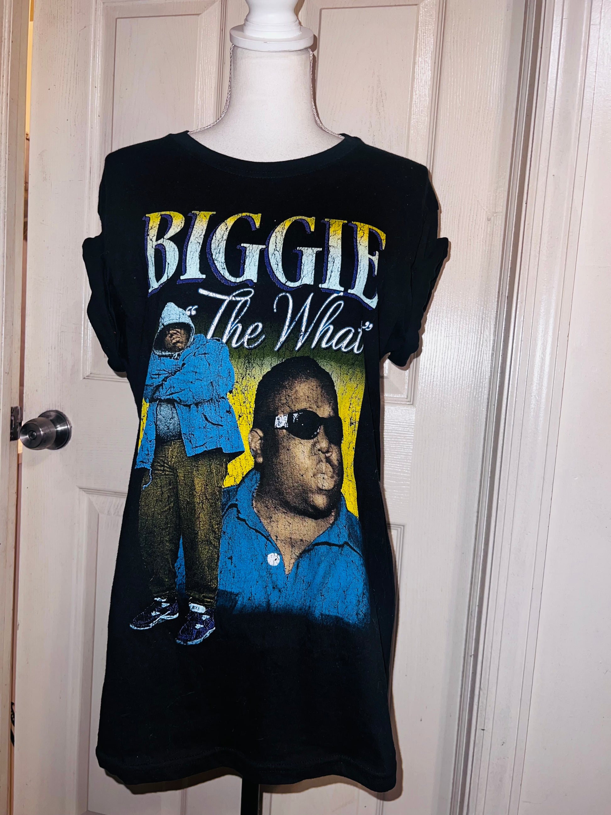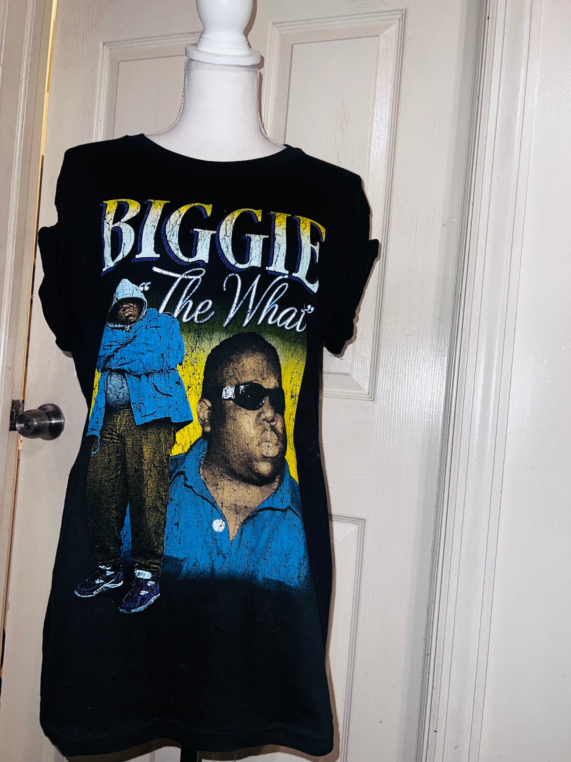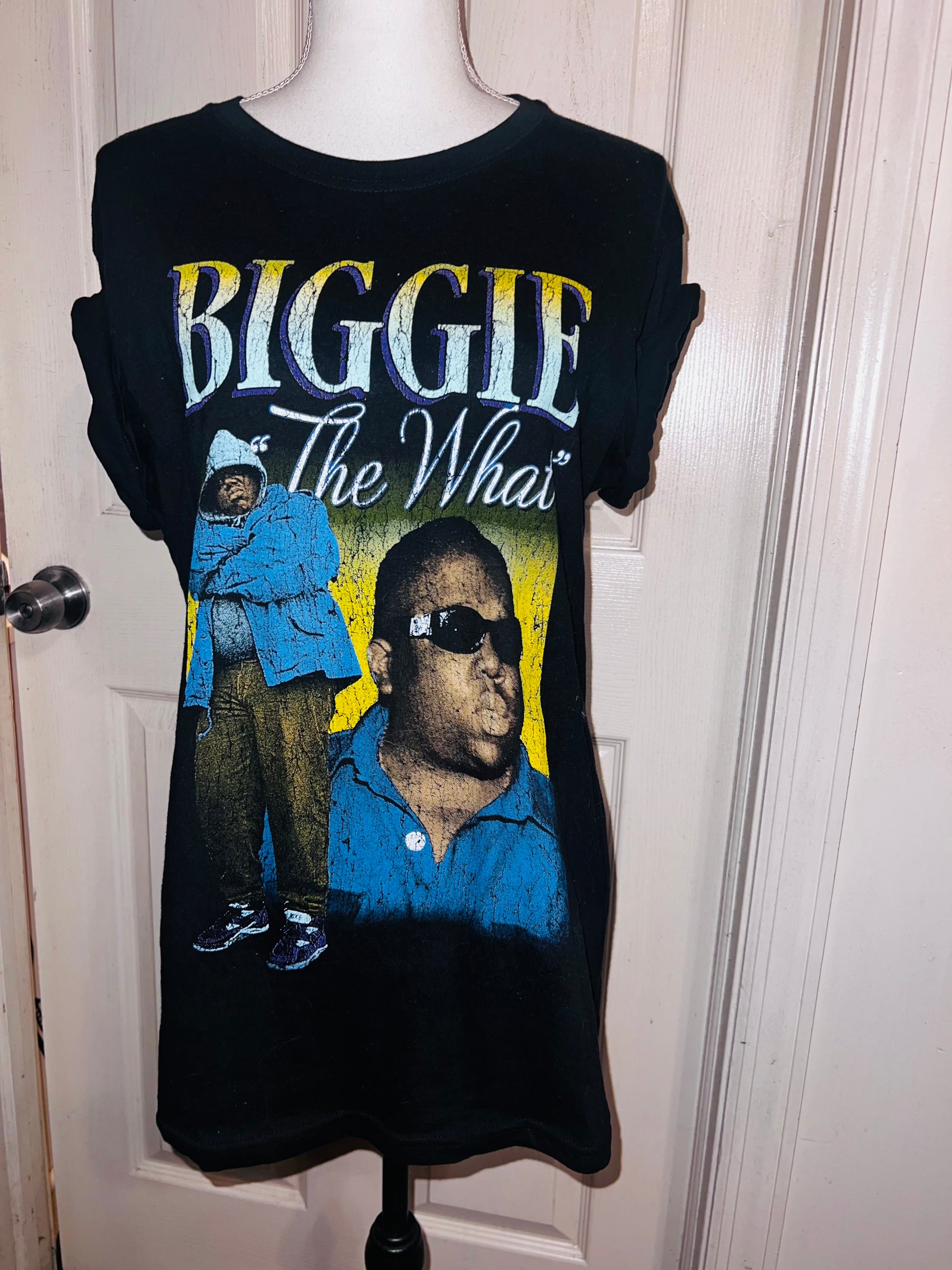 A black Biggie Smalls “The What” tee. It’s marked a medium, but fits like a M/L. Oversized.