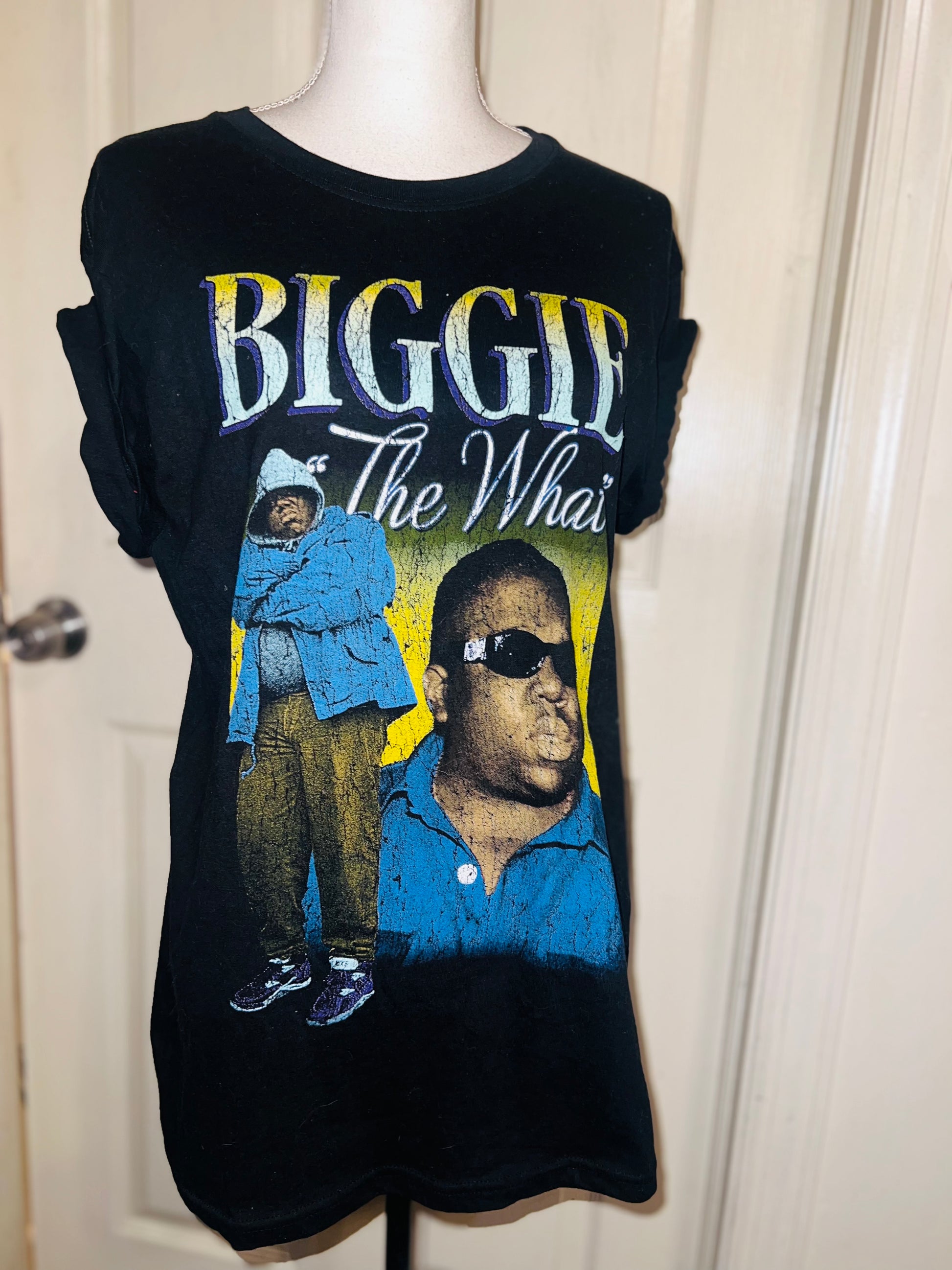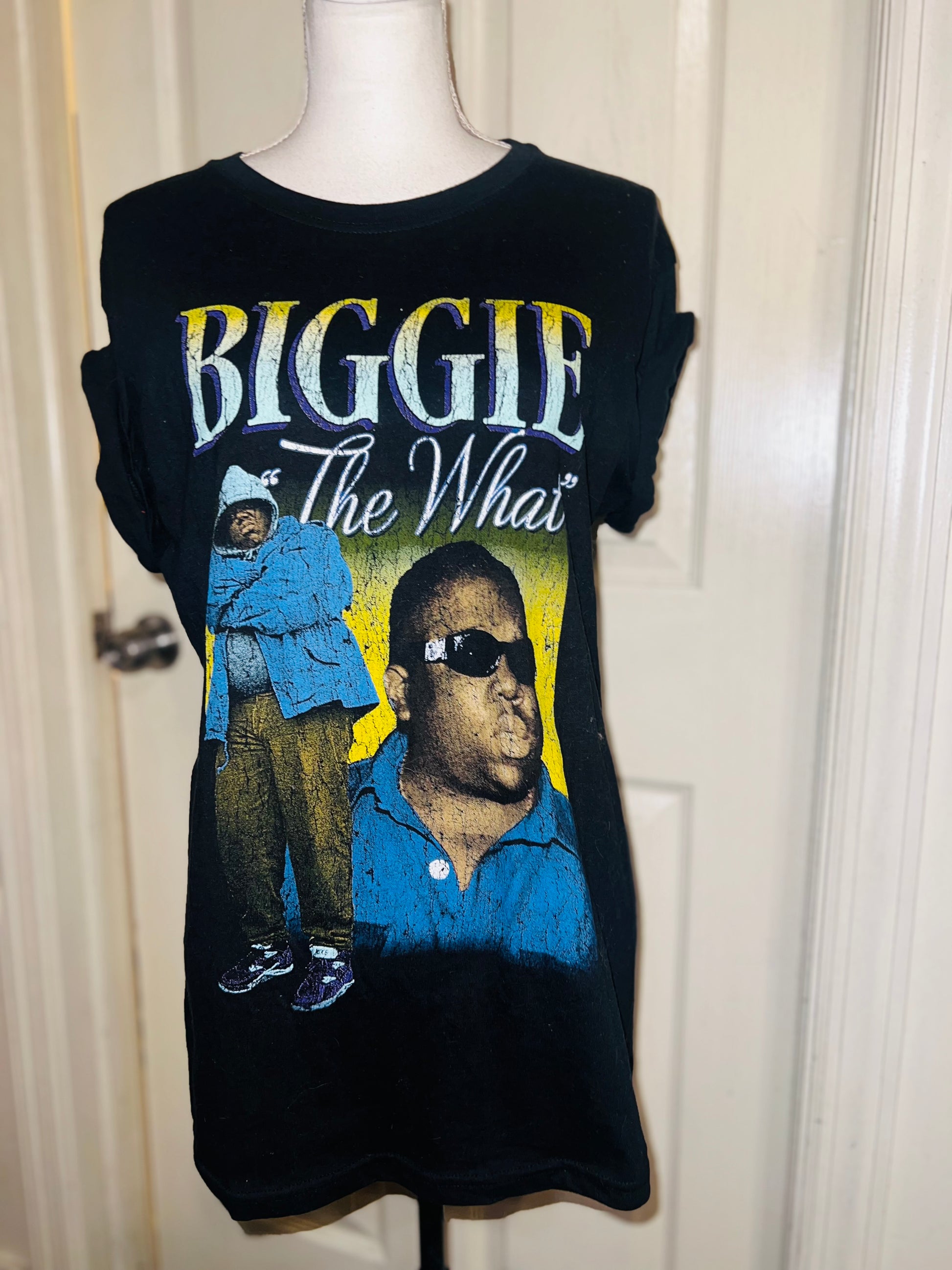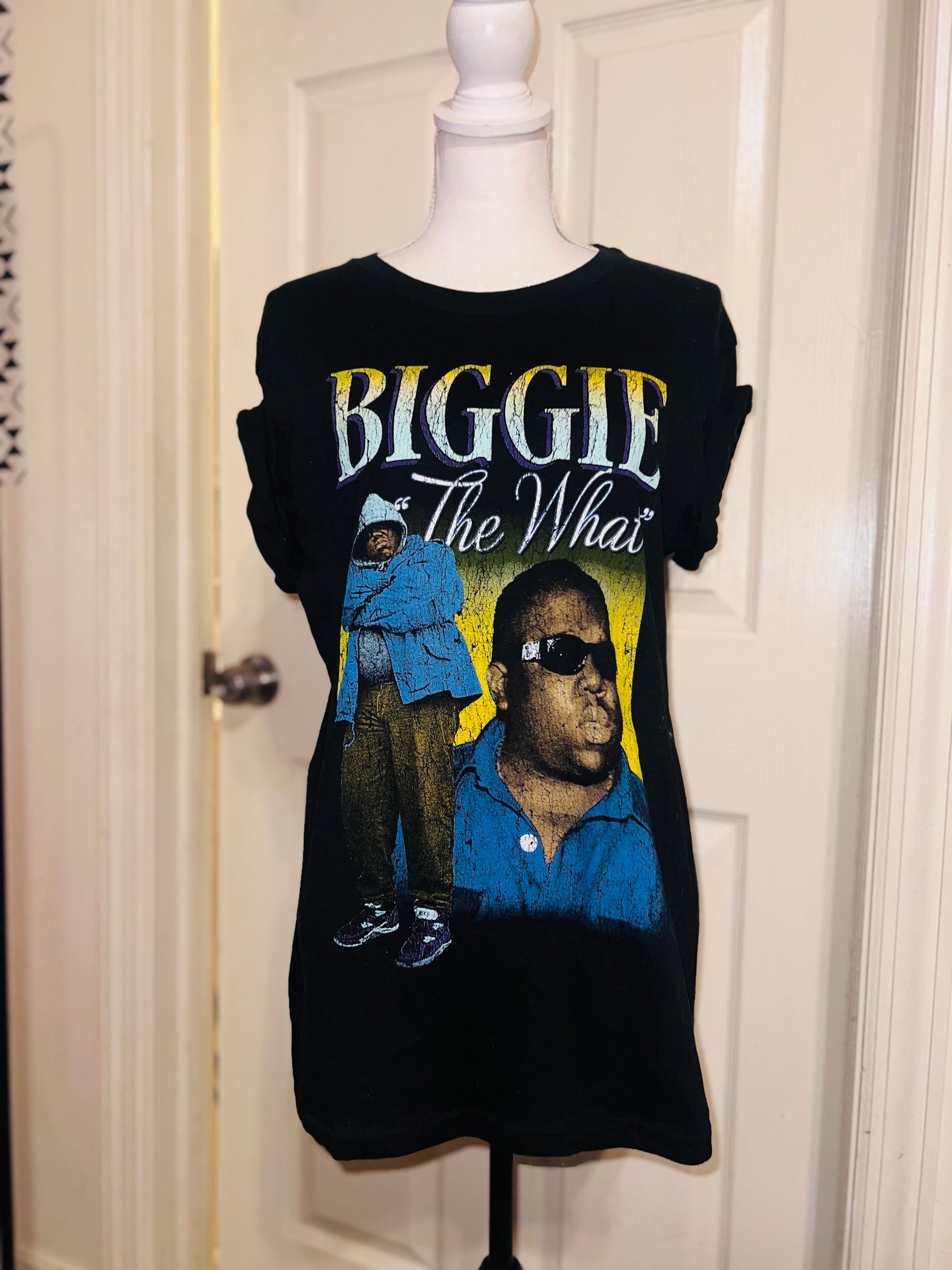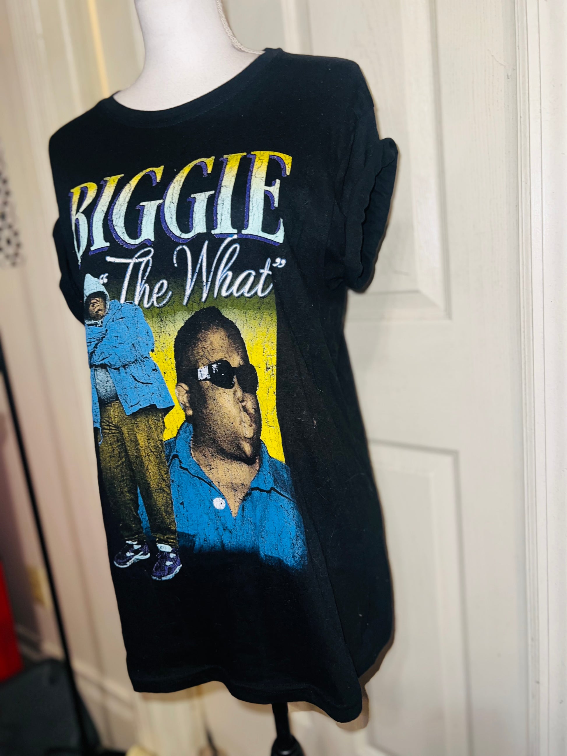 A black Biggie Smalls “The What” tee. It’s marked a medium, but fits like a M/L. Oversized.