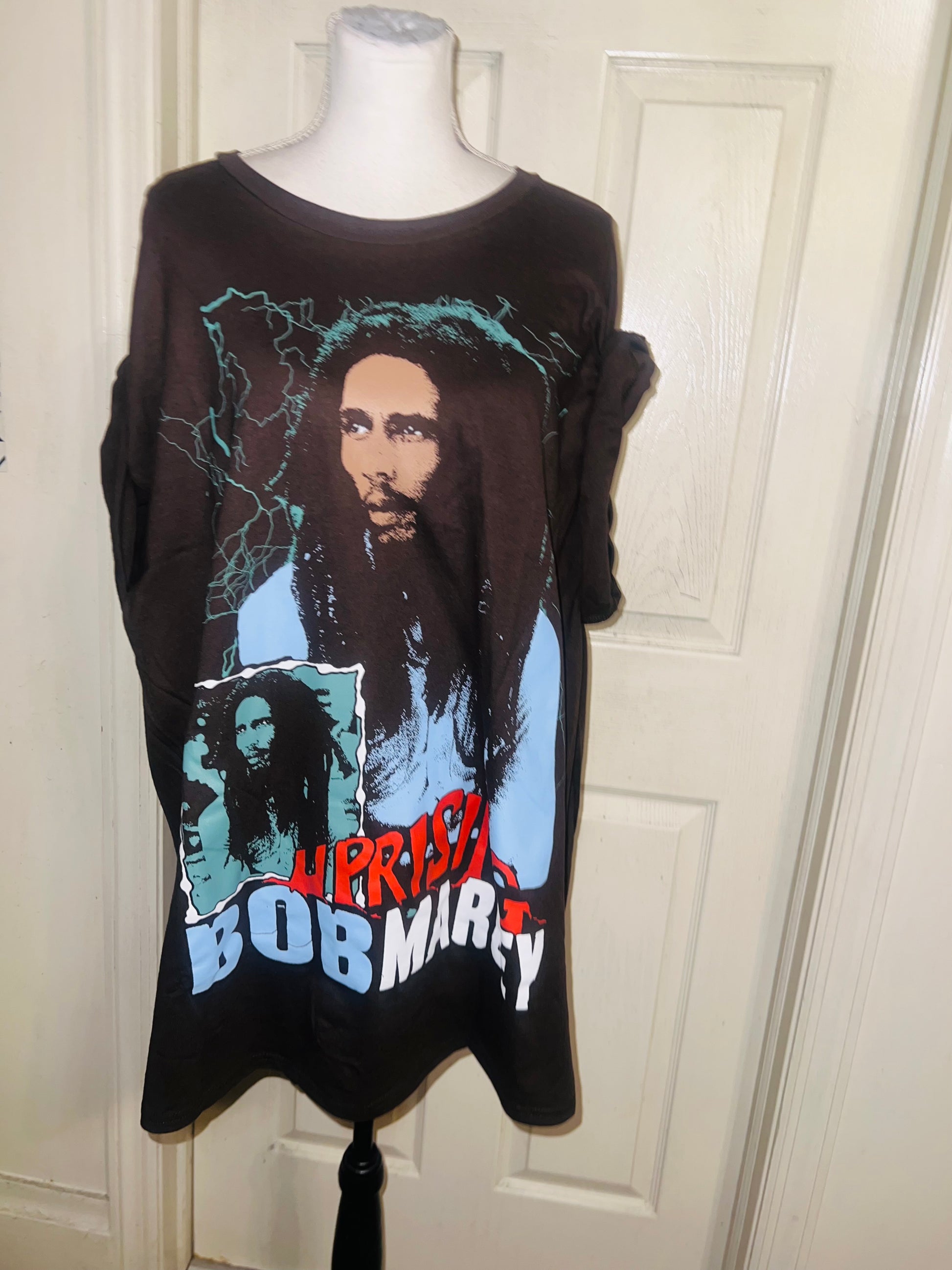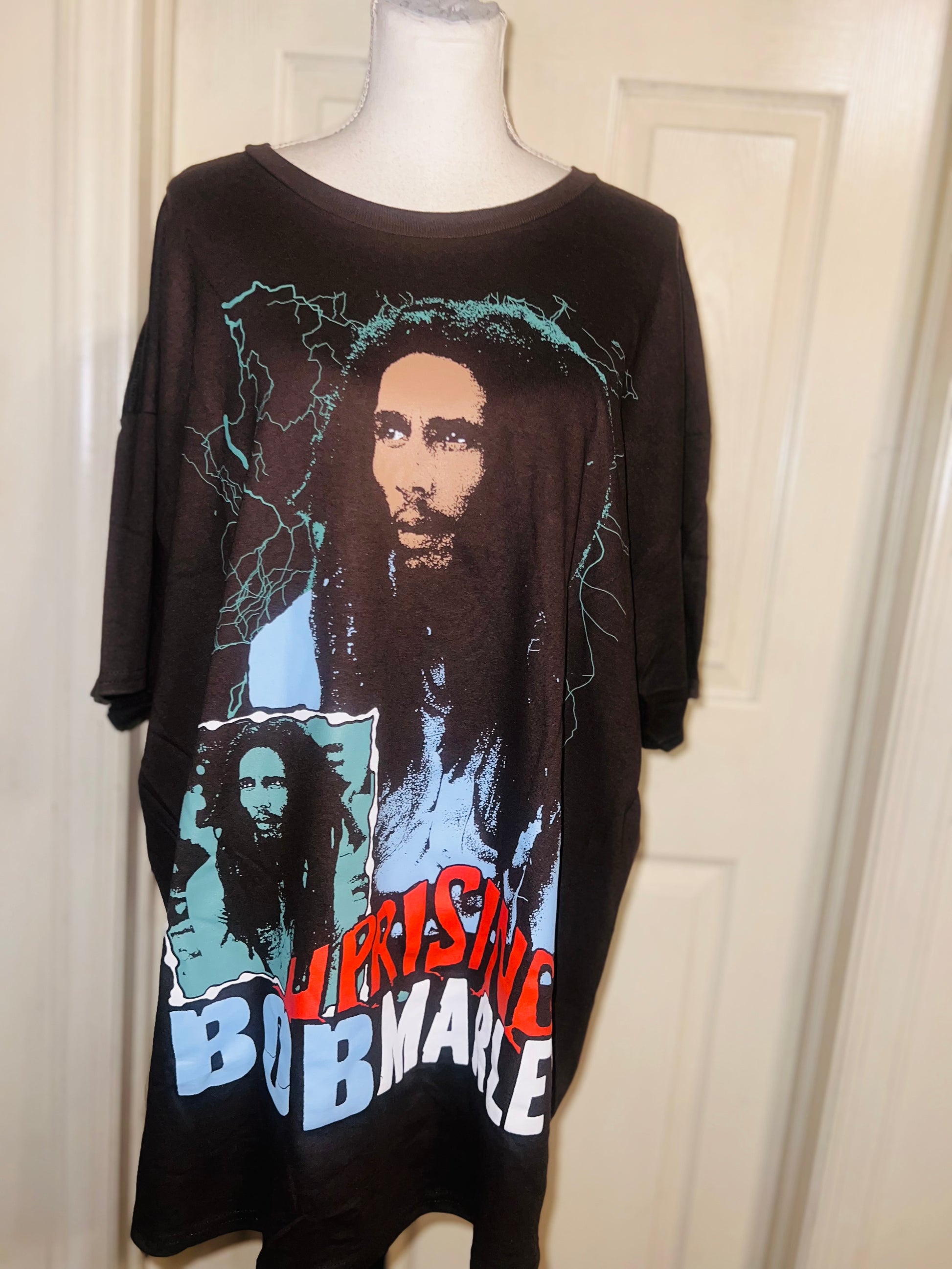 A brown Bob Marley Uprising tee with some cool photos of him. Size L/XL, oversized.