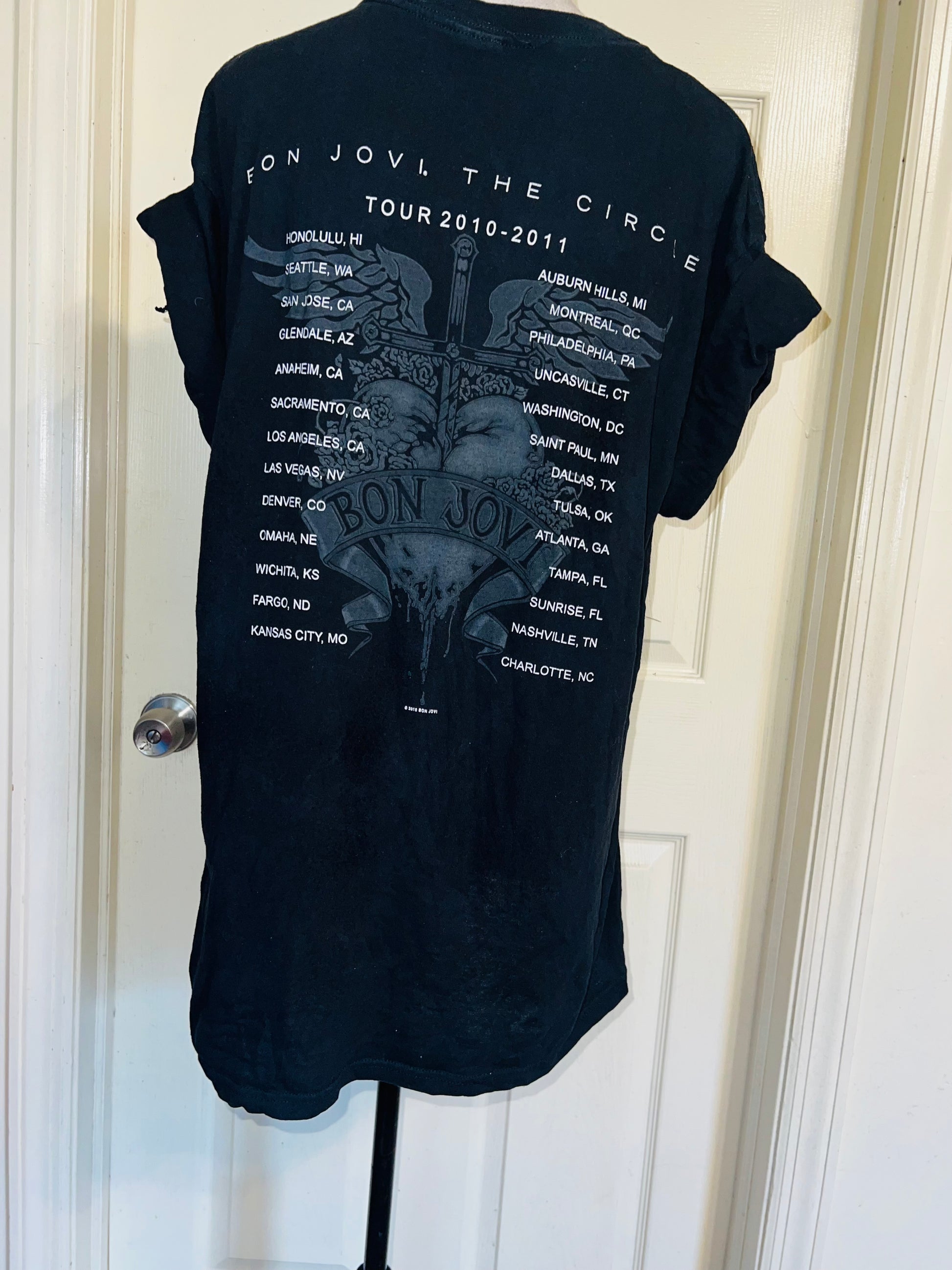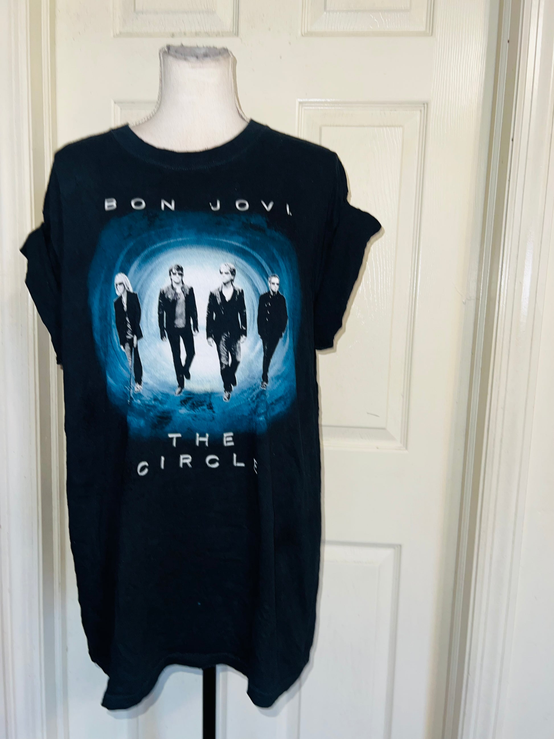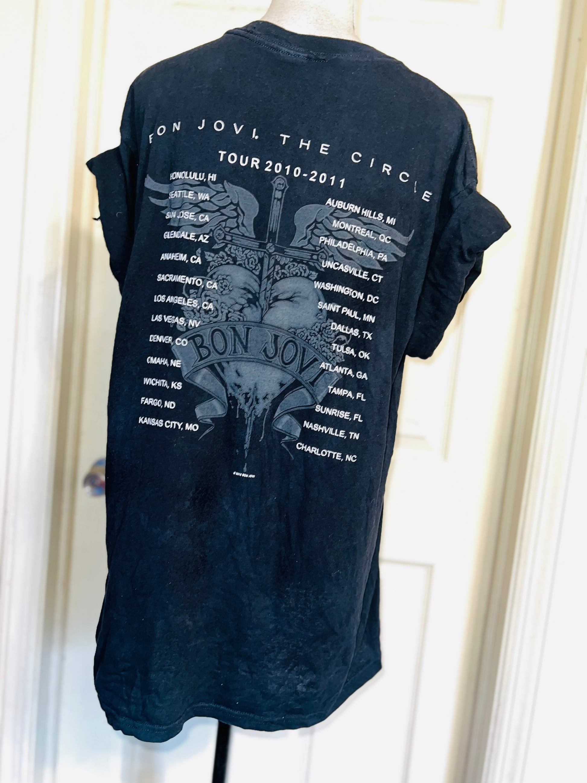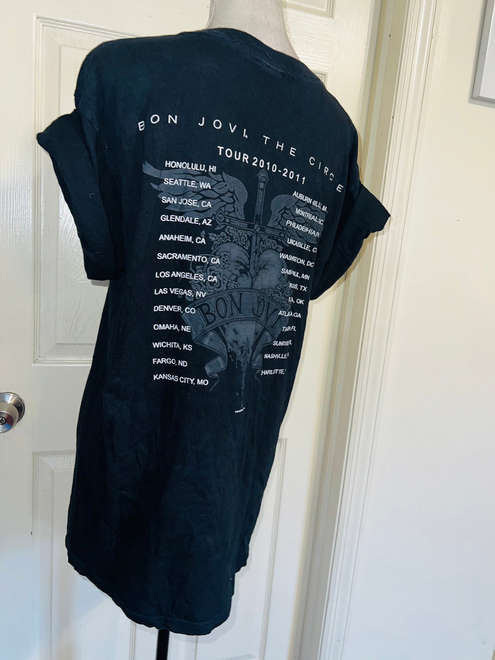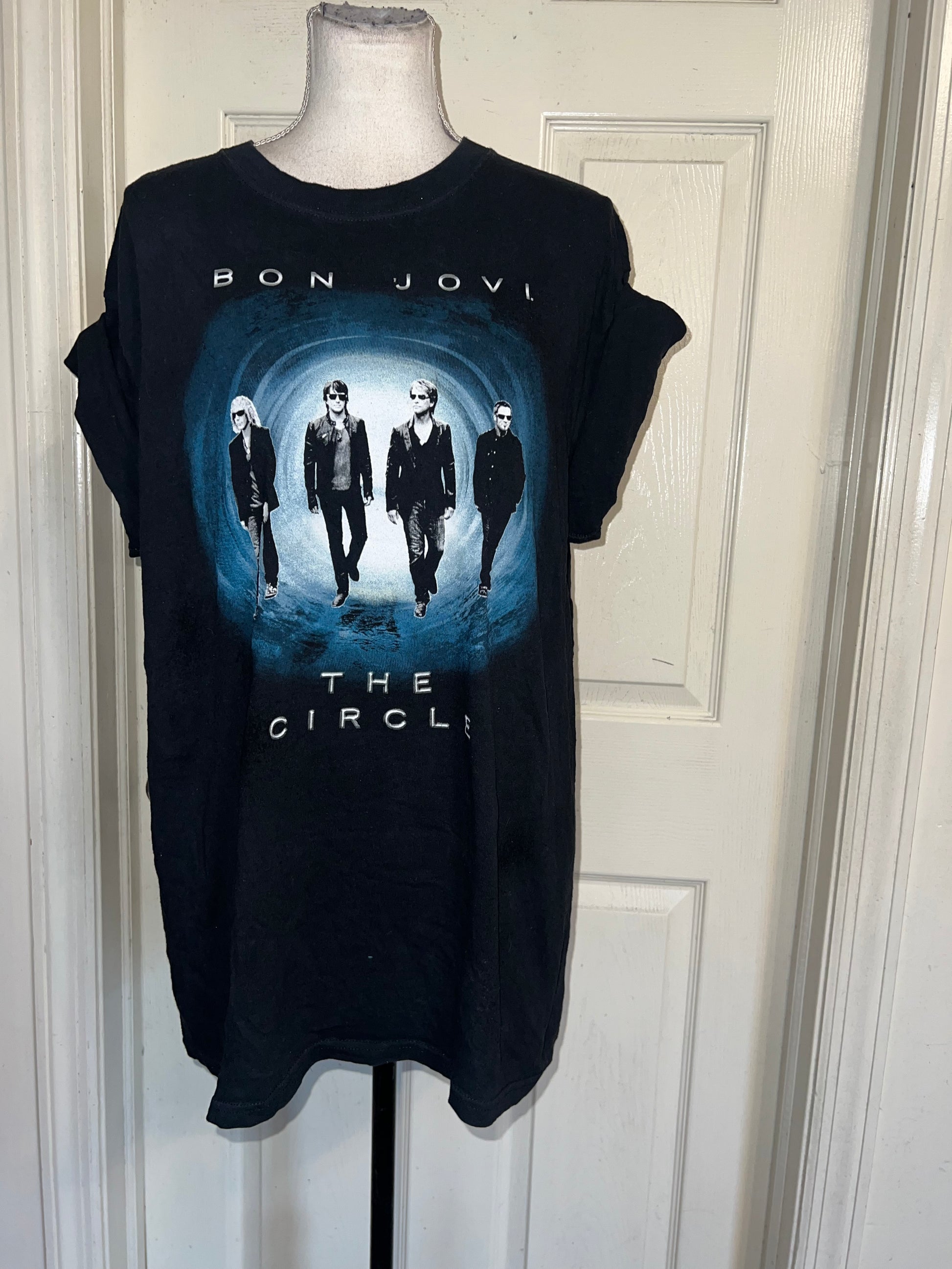 This is now a preorder. Please allow extra processing time. An authentic black Bon Jovi 2011 double sided The Circle tour tee. Size large, oversized.
