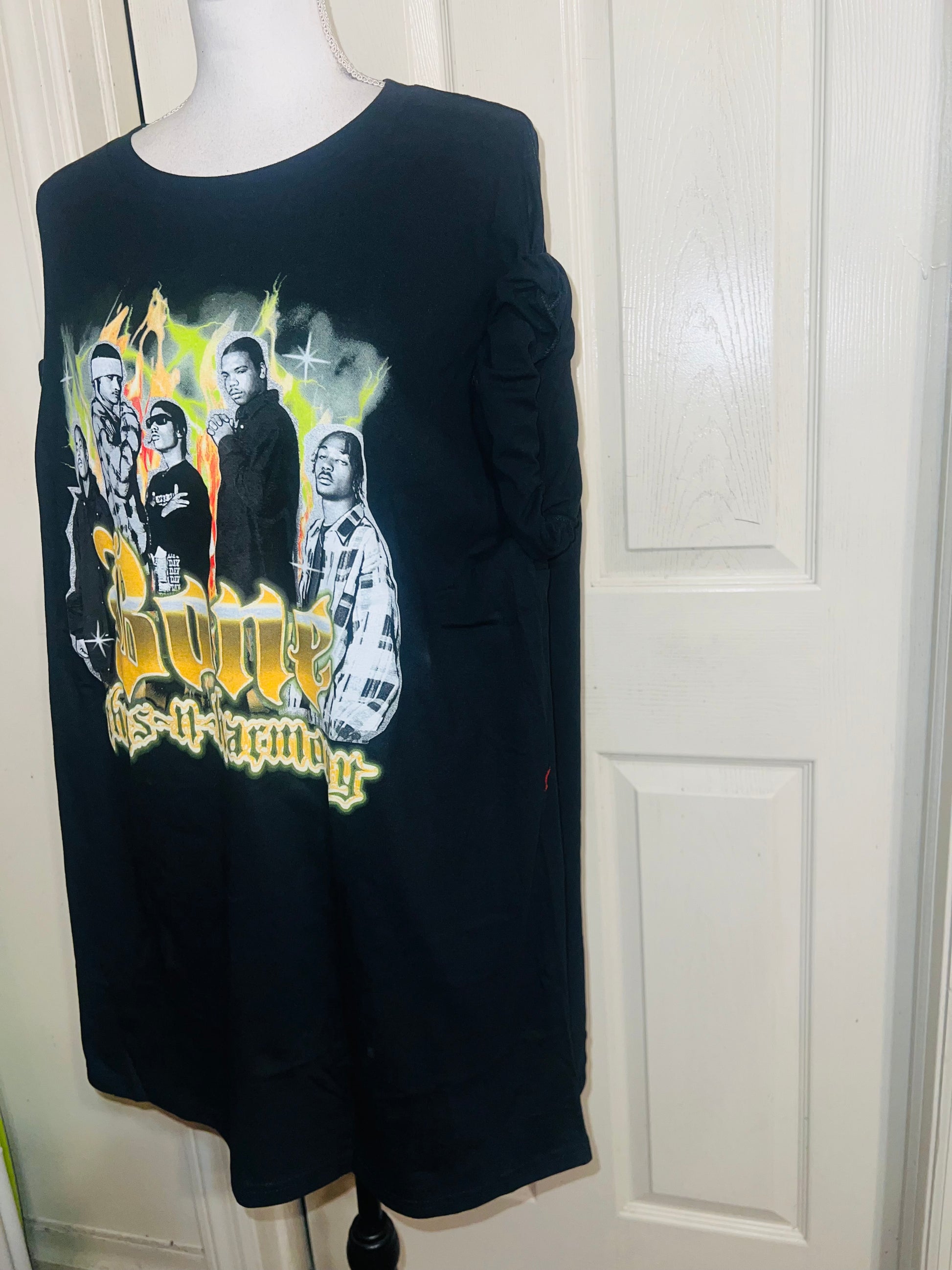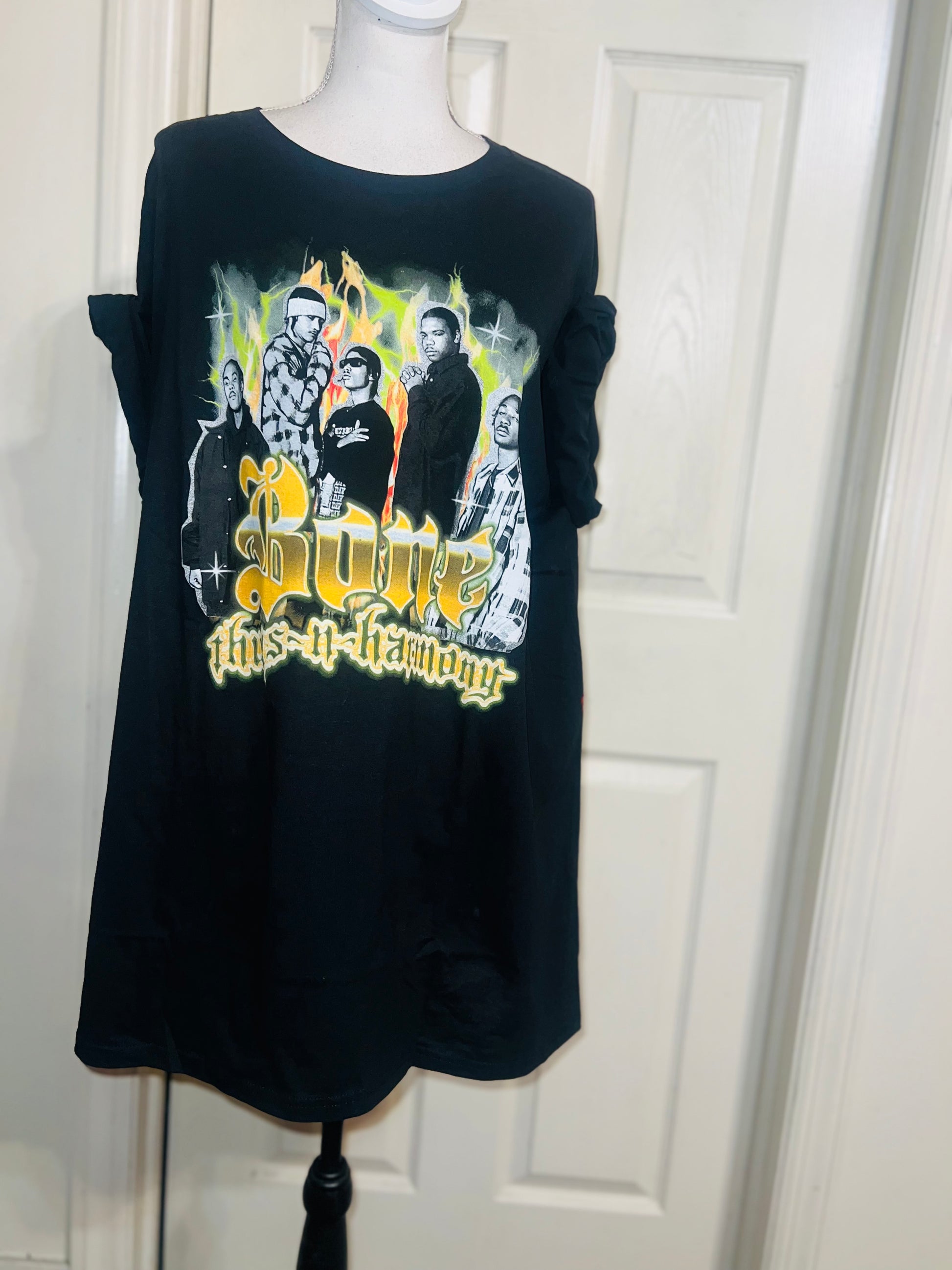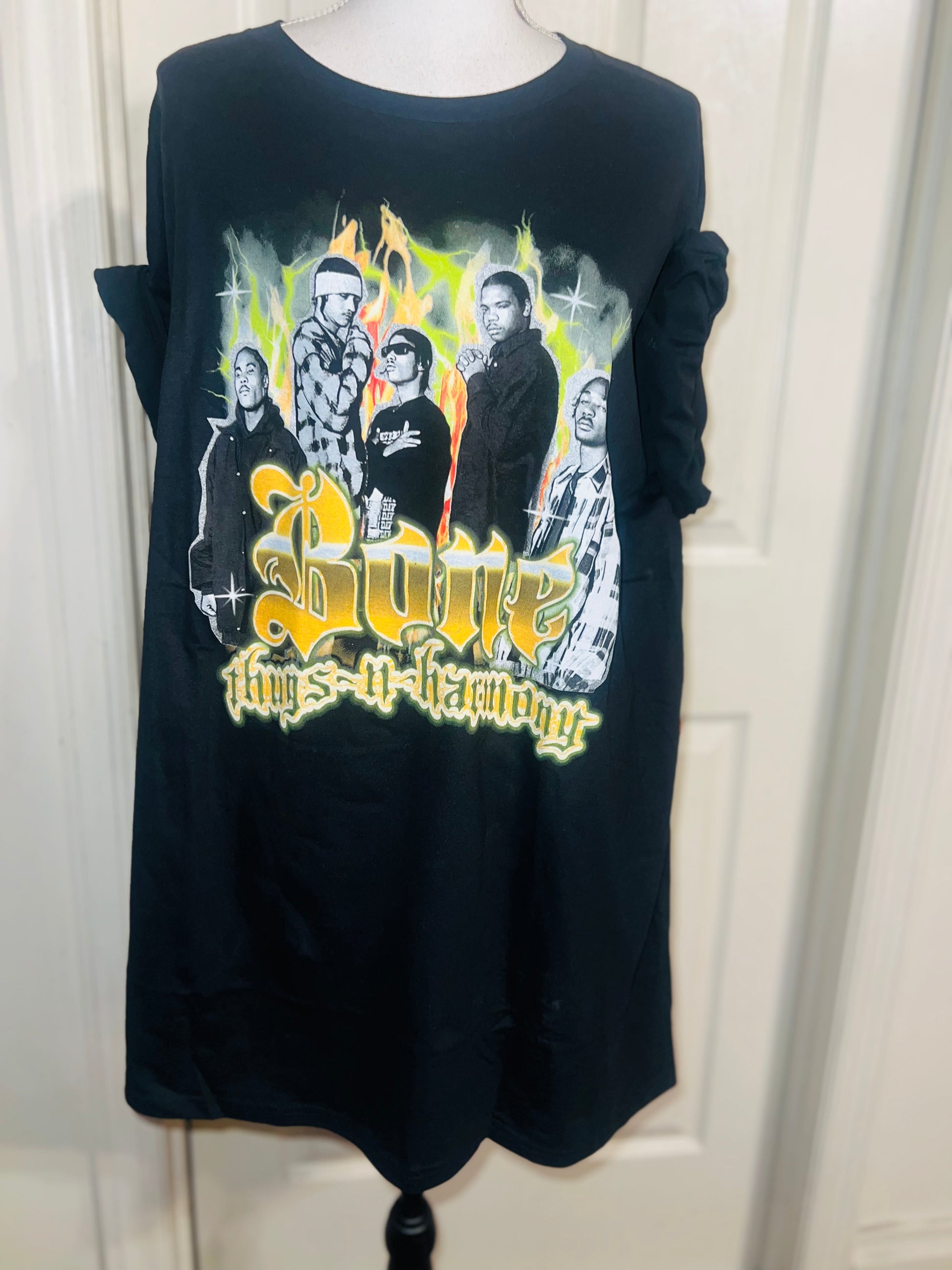 A black Bone Thugs n Harmony tee with a spray paint type graphic. Size XL, oversized.