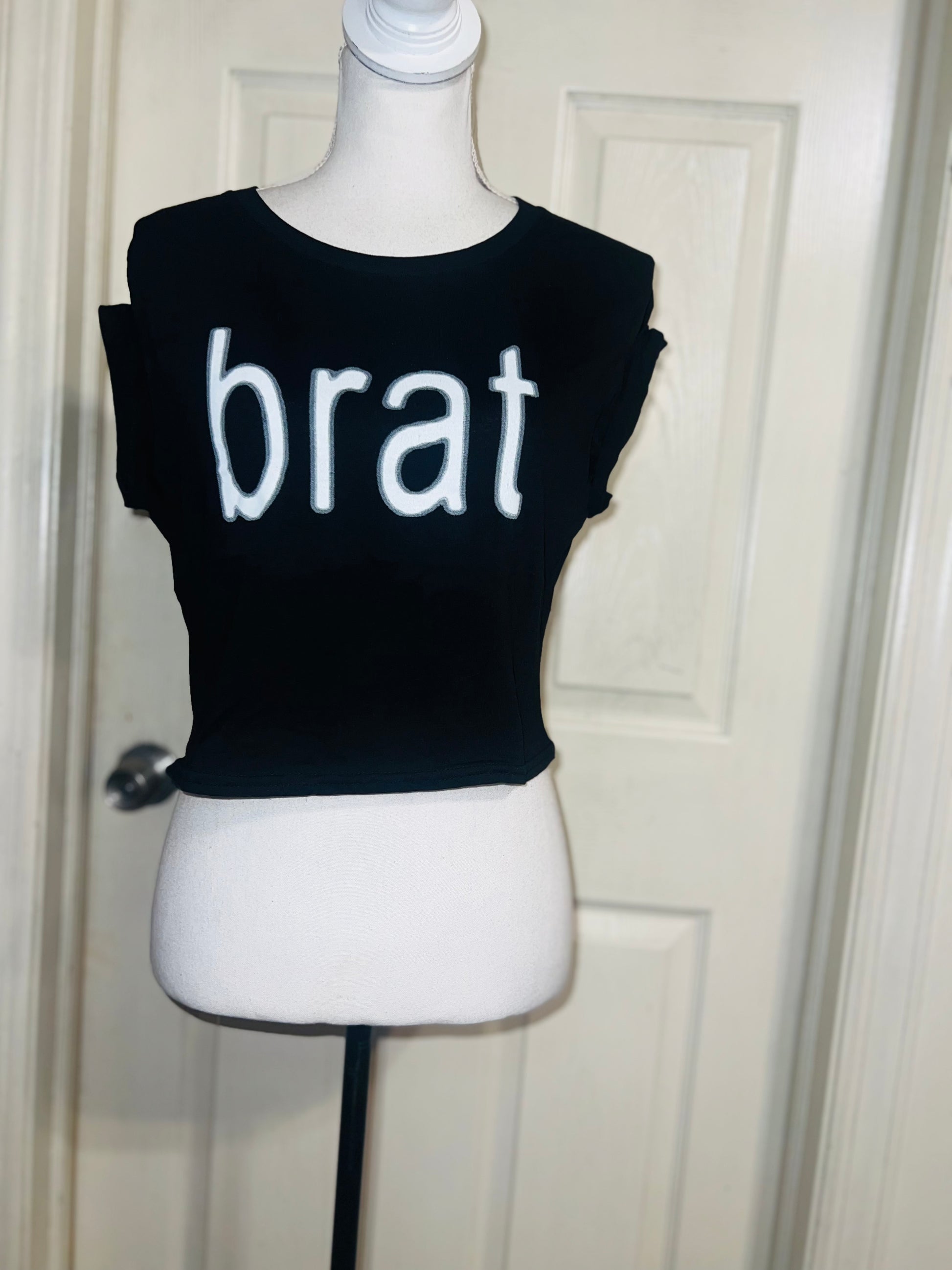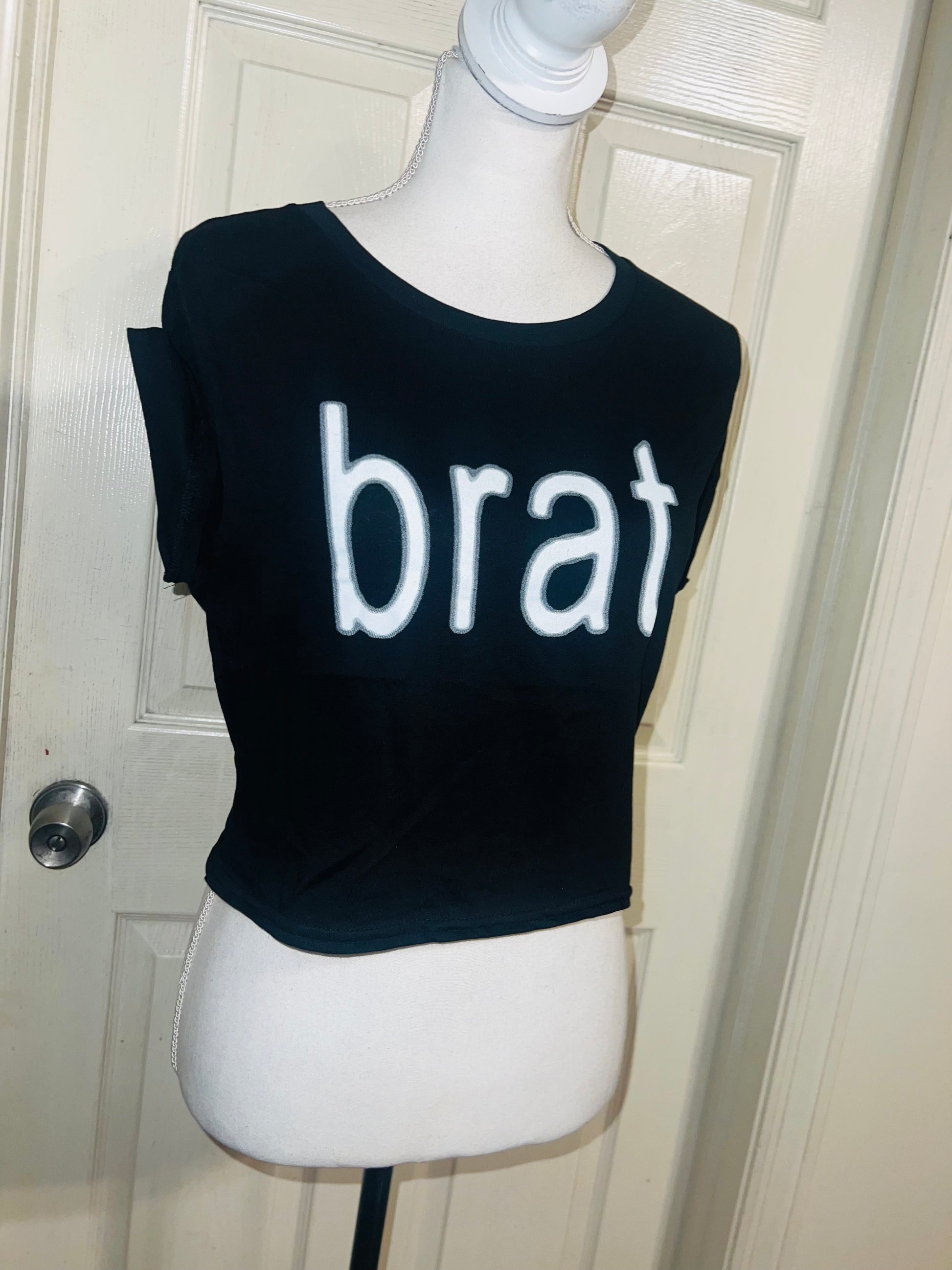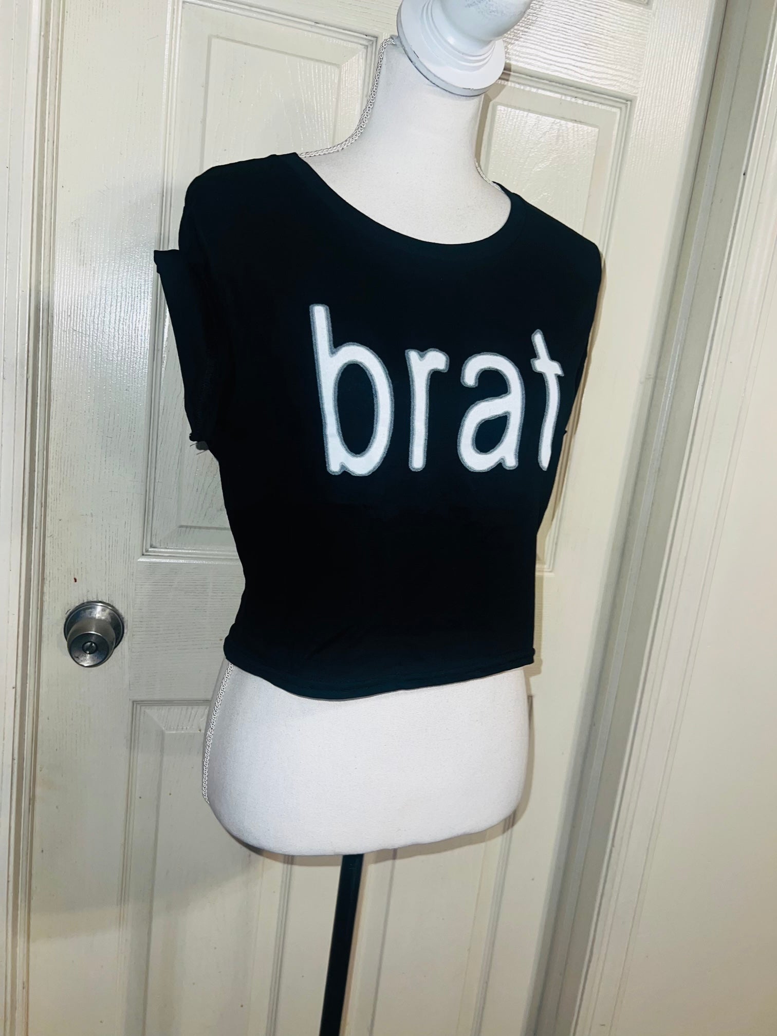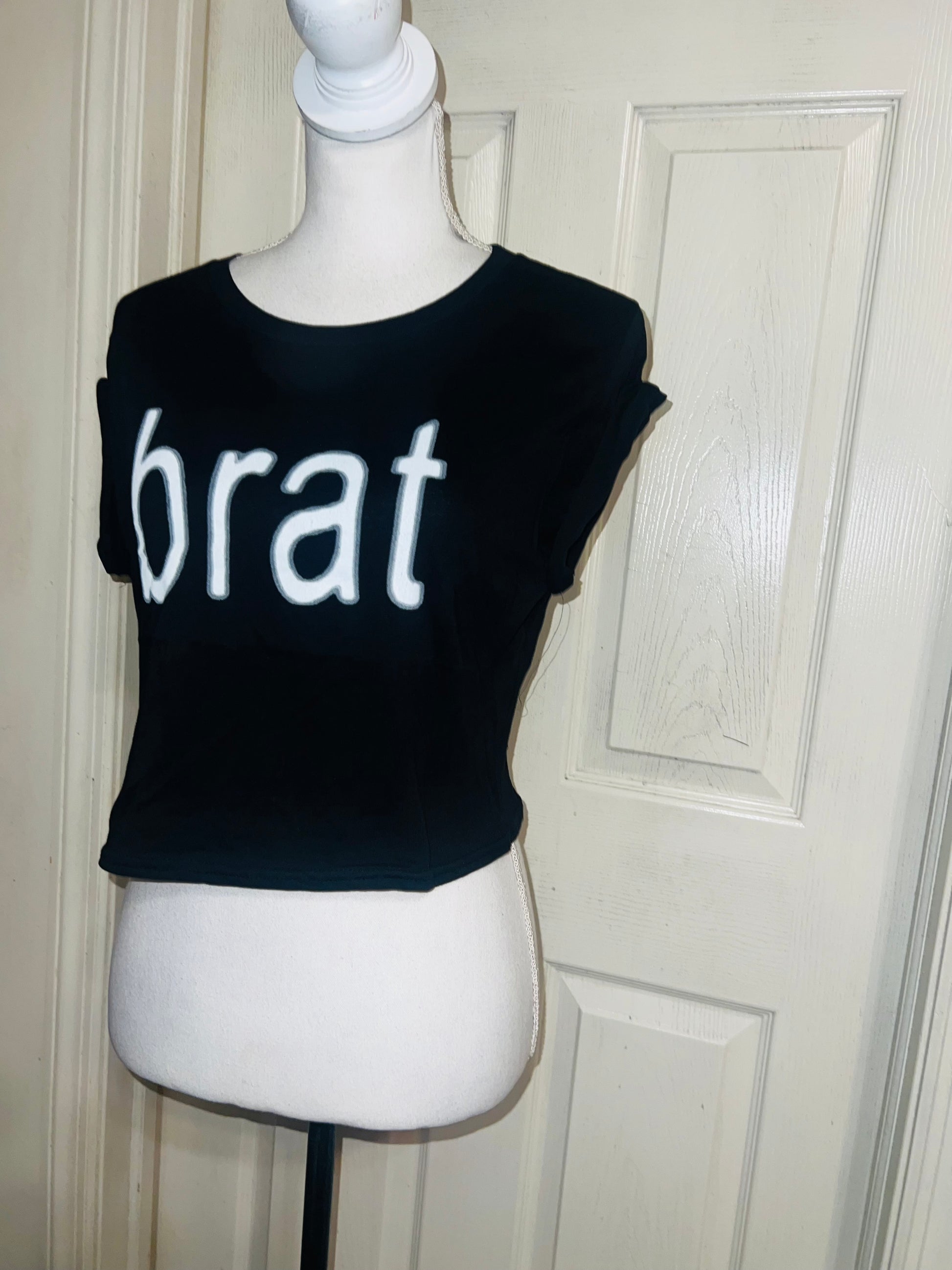 A black Charli XCX brat baby tee! Size medium, oversized.