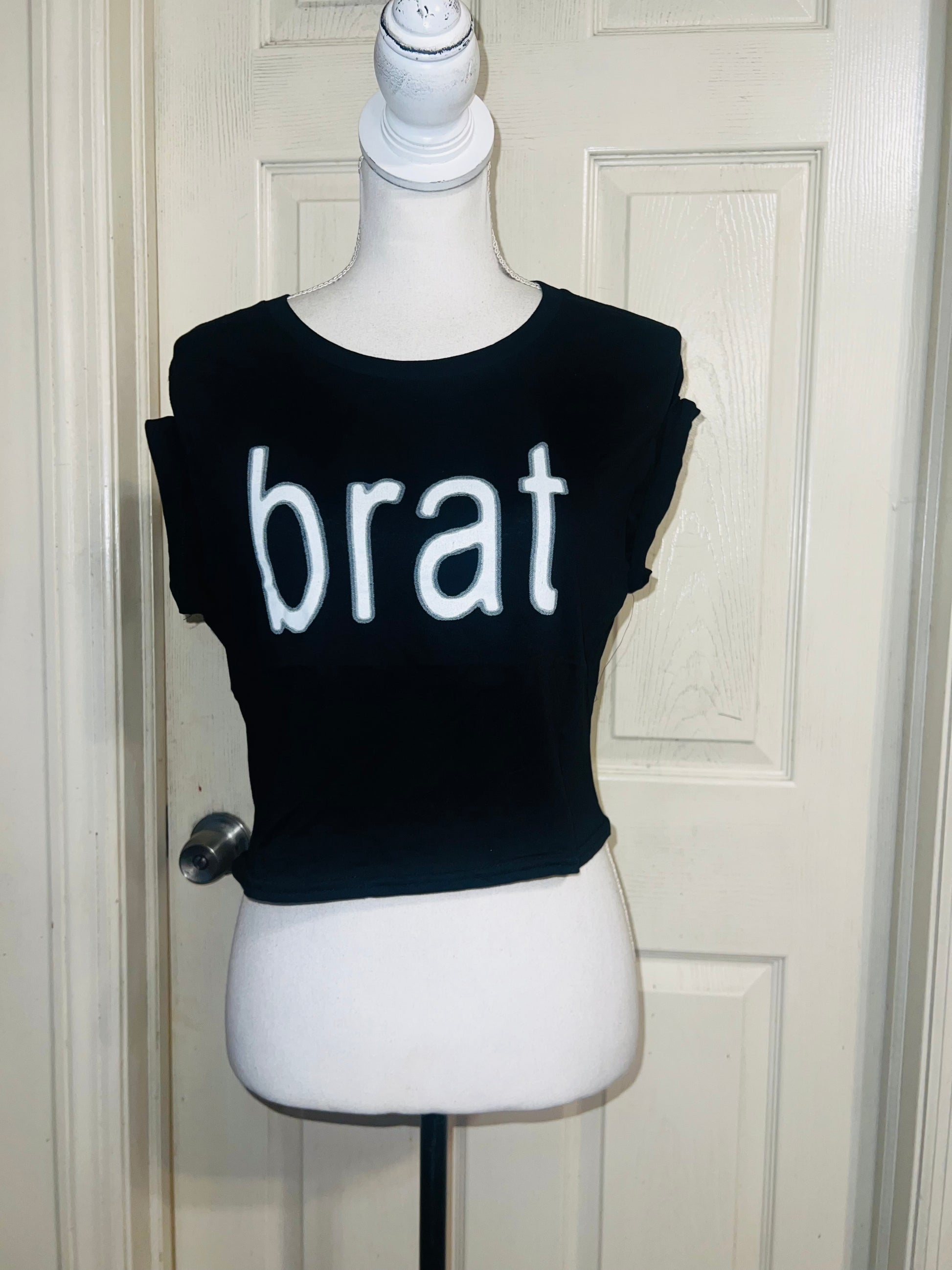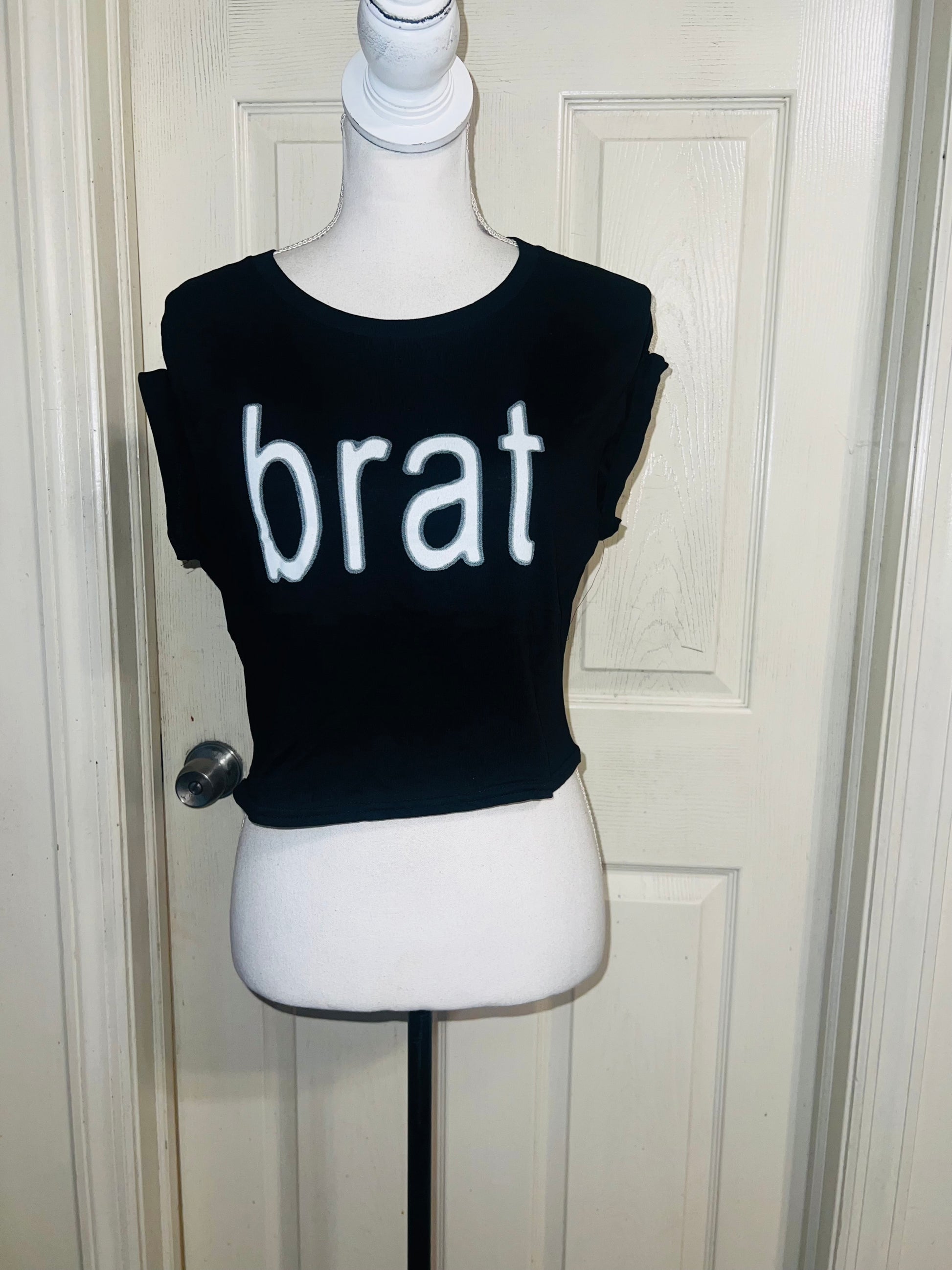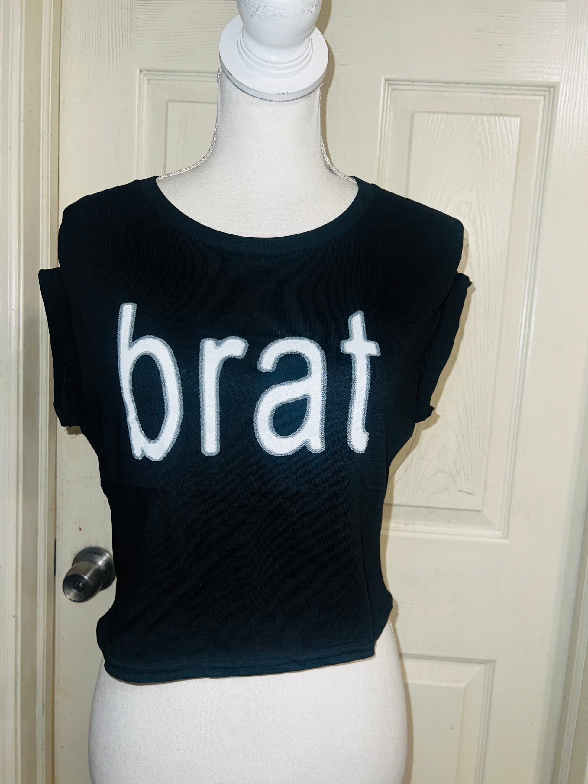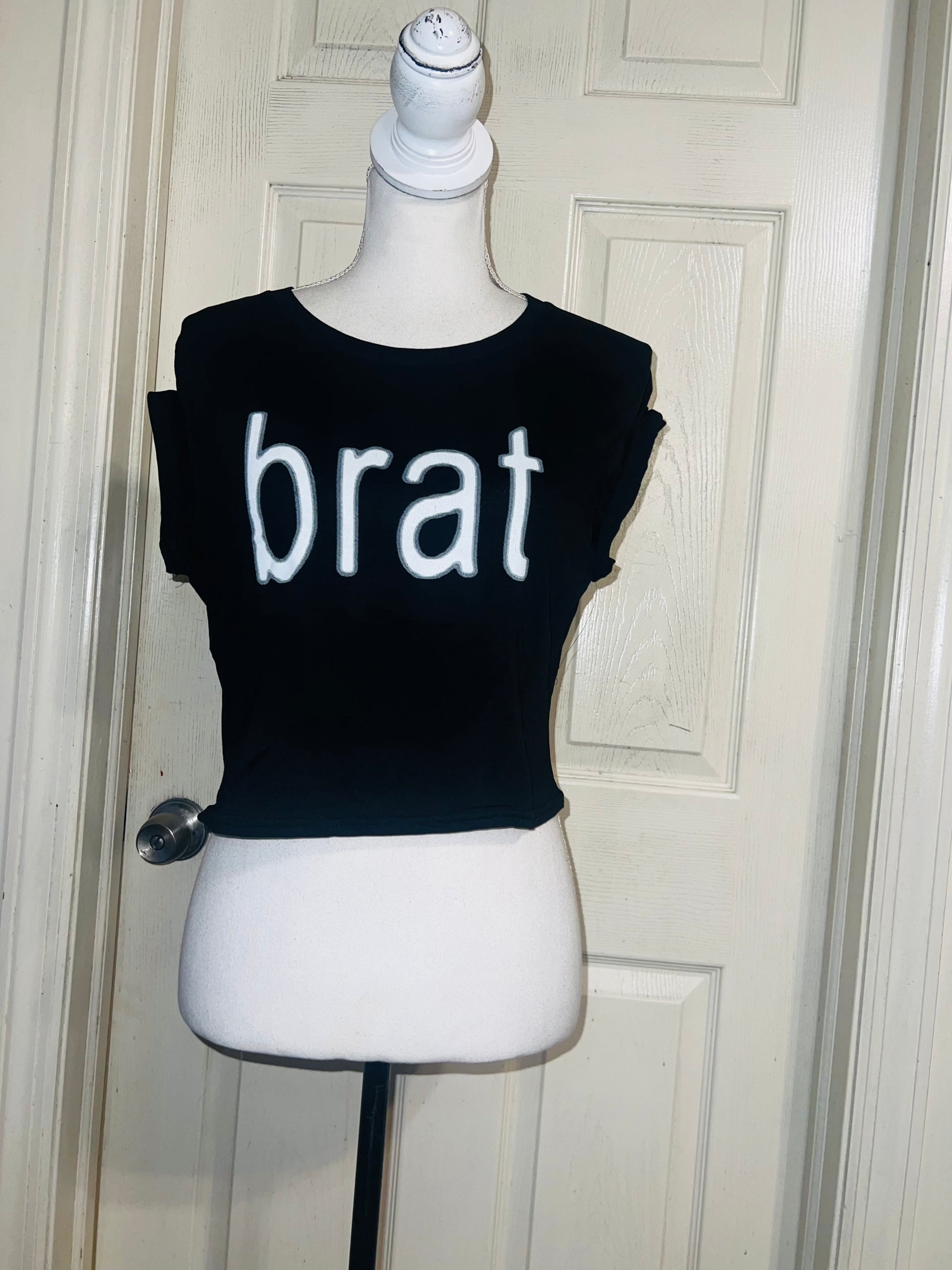 A black Charli XCX brat baby tee! Size medium, oversized.