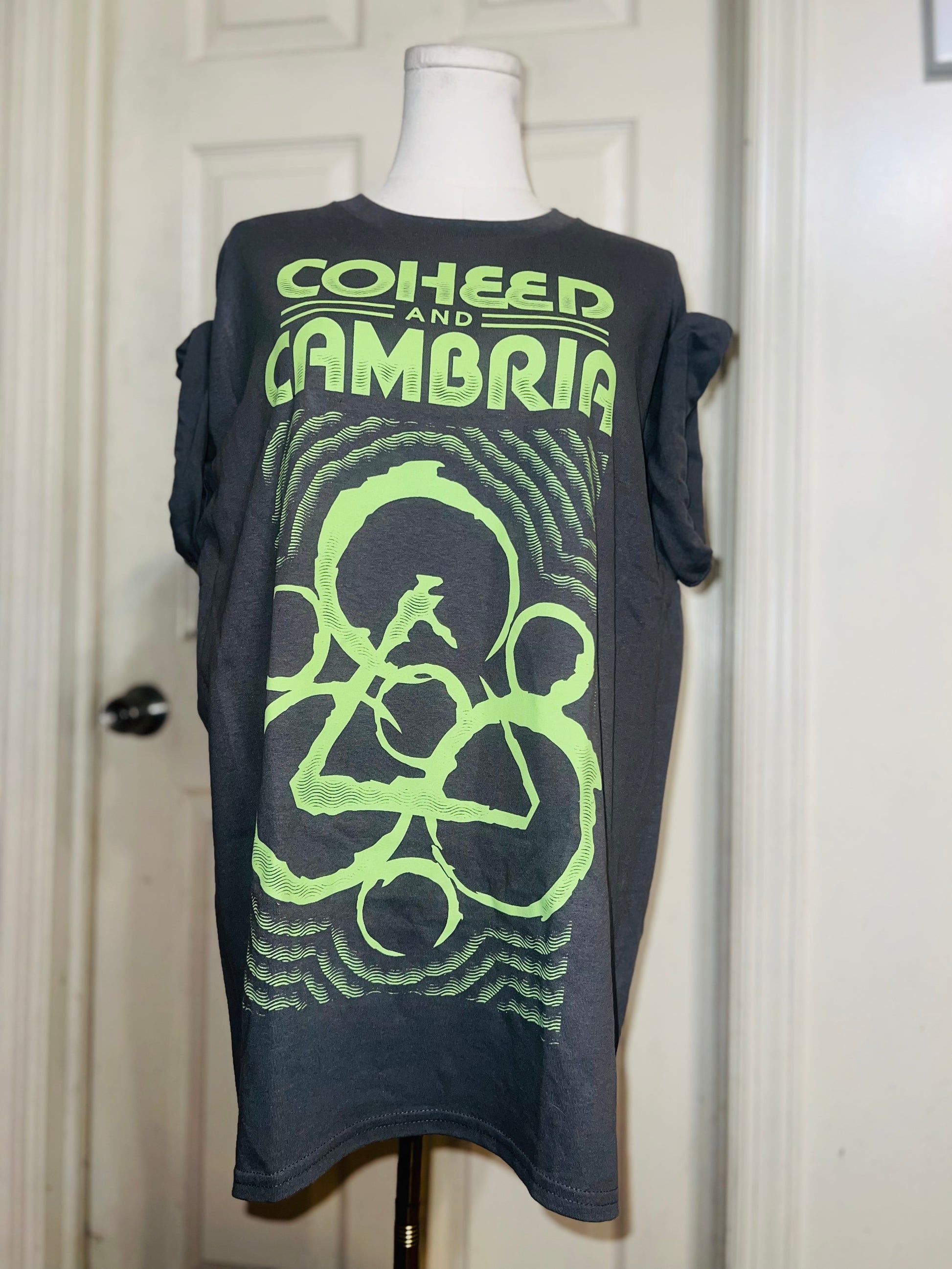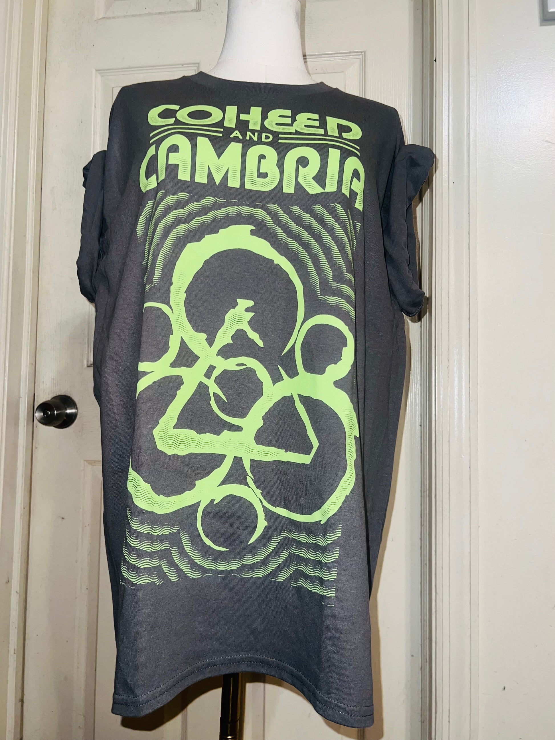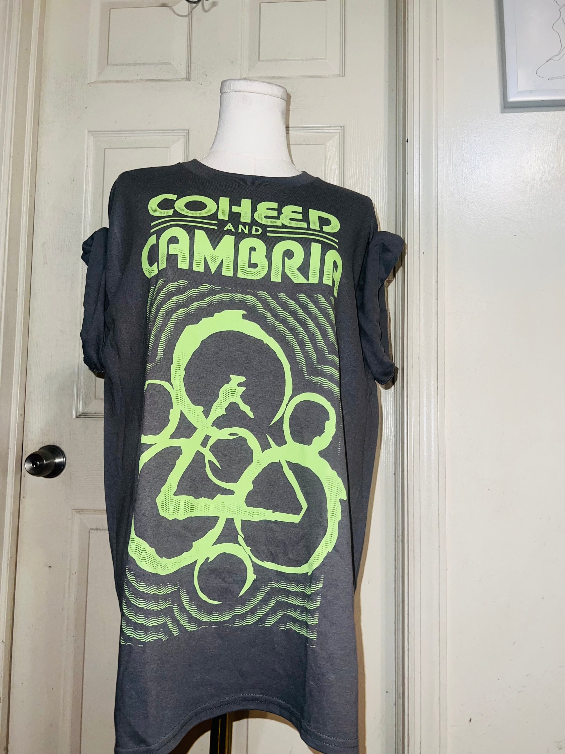 This is now a preorder. Please allow extra processing time. A dark grey Coheed and Cambria tee. This is my first Coheed shirt in 2.5 years I think!? It has a green graphic and is oversized. Size XL.