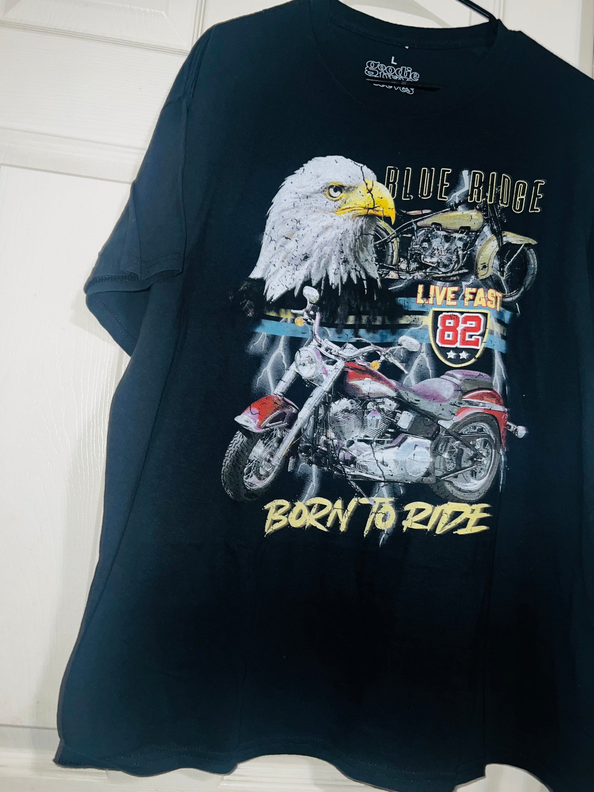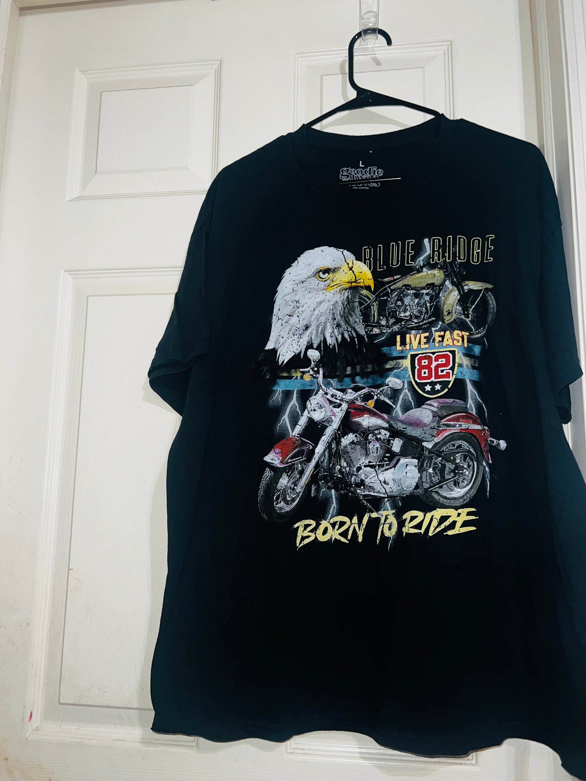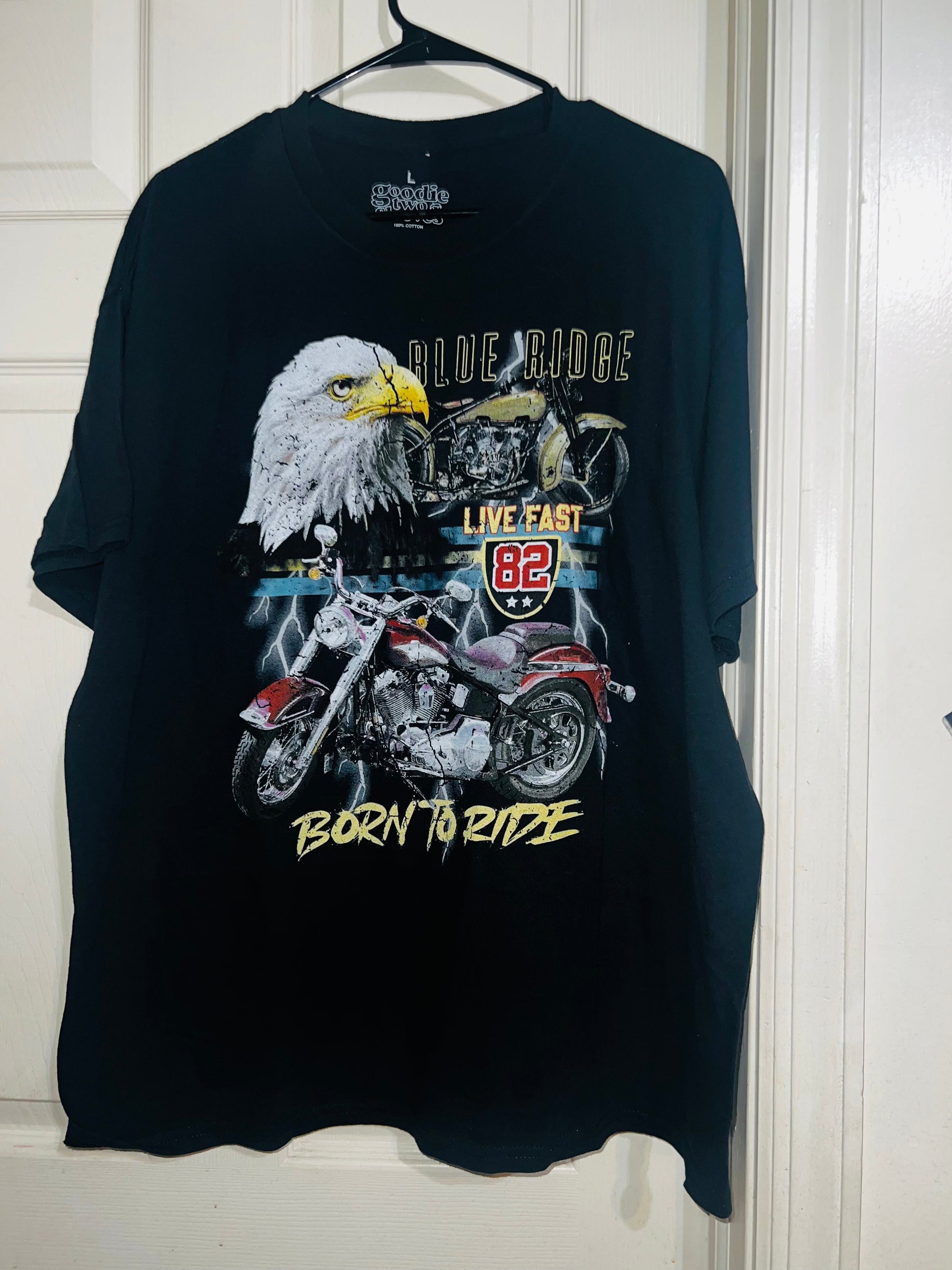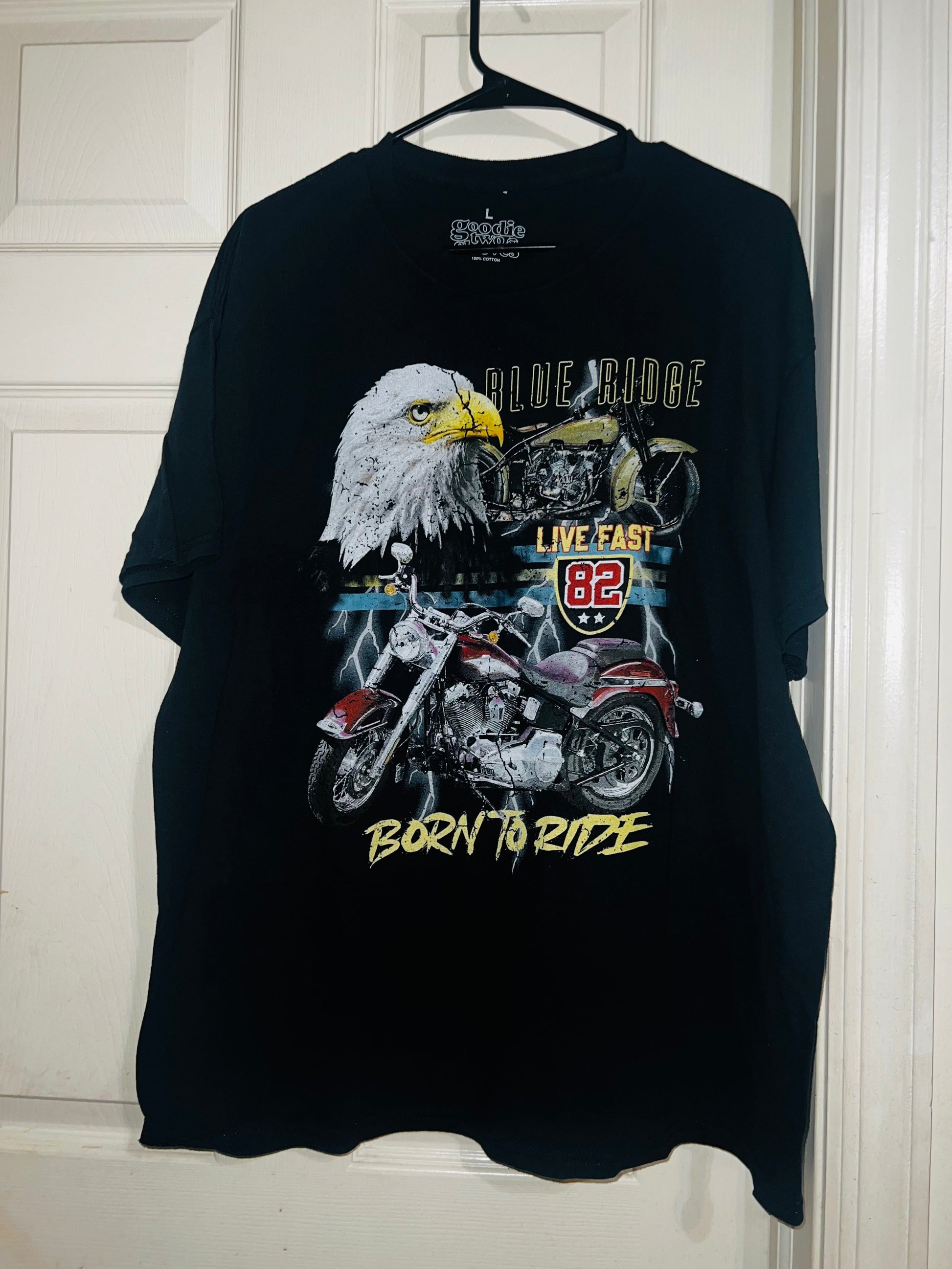 This is the coolest vintage looking shirt. A motorcycle and Eagle with the “born to ride” gives you the edgy vintage look that’s in this season! Size L/XL (oversized).