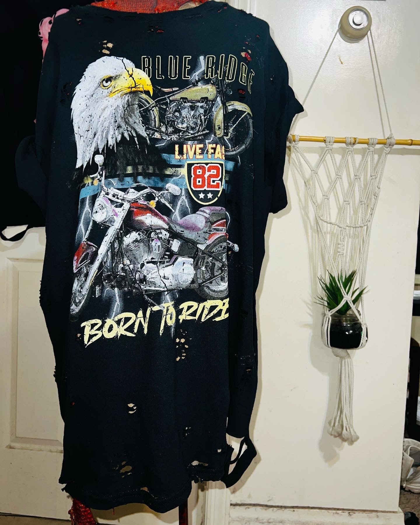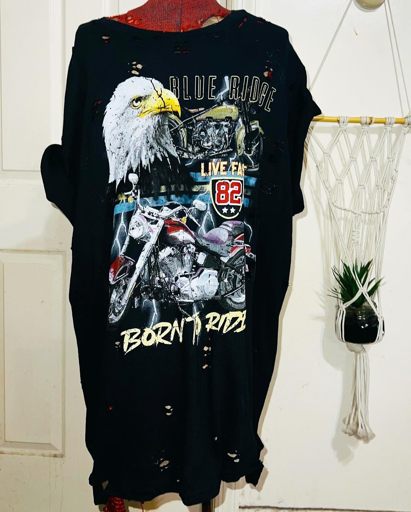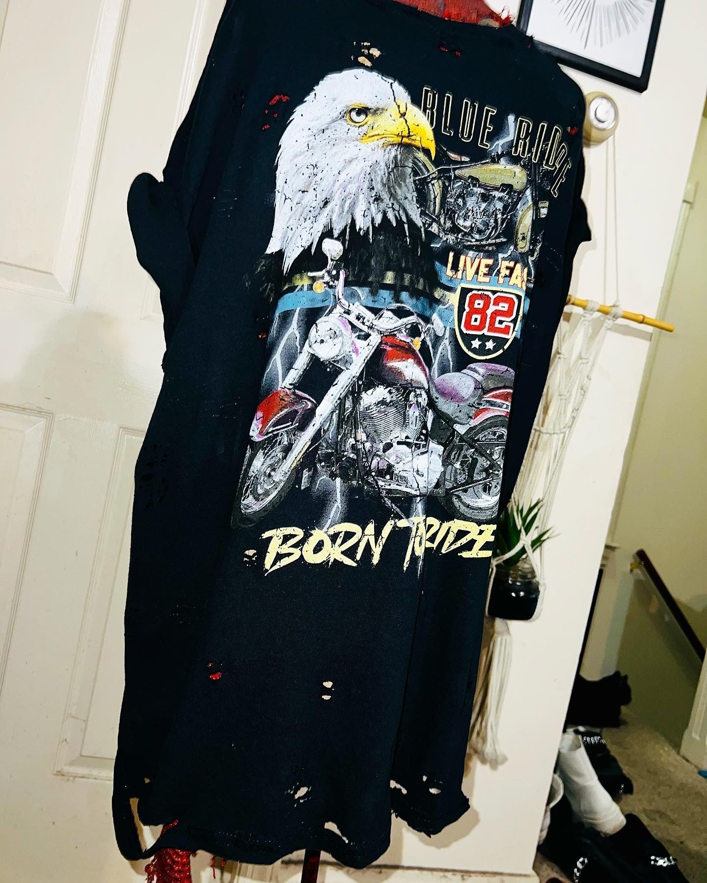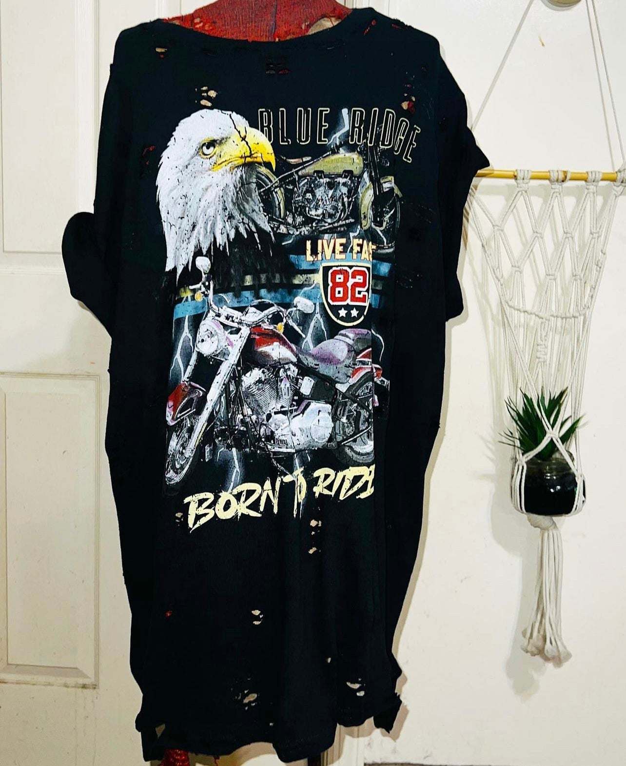 This is the coolest vintage looking shirt. A motorcycle and Eagle with the “born to ride” gives you the edgy vintage look that’s in this season! Size L/XL (oversized).