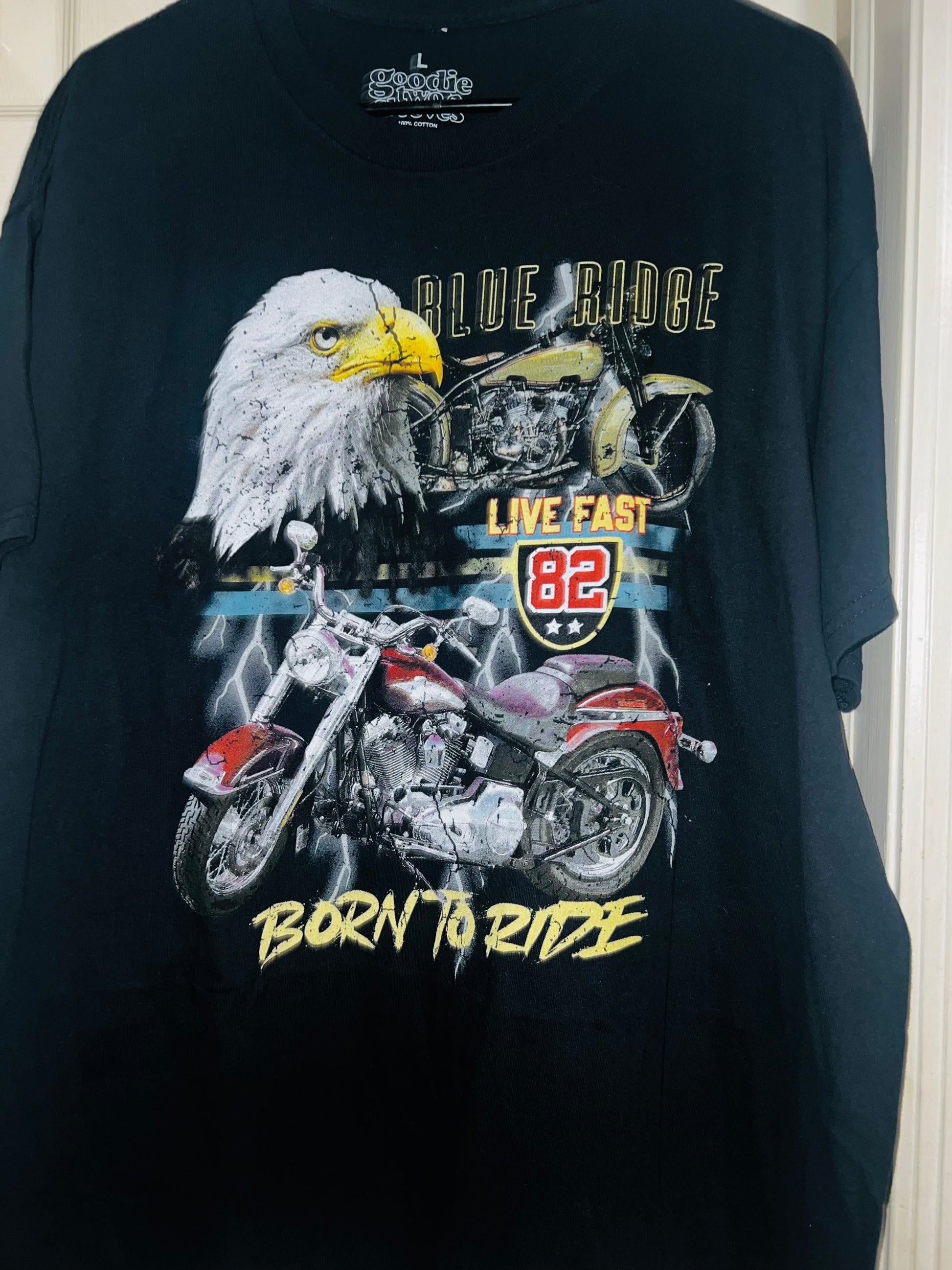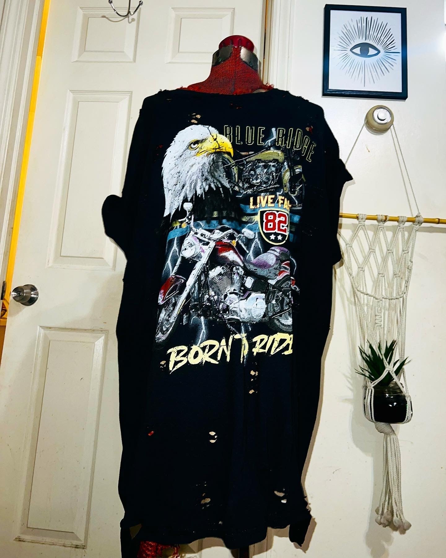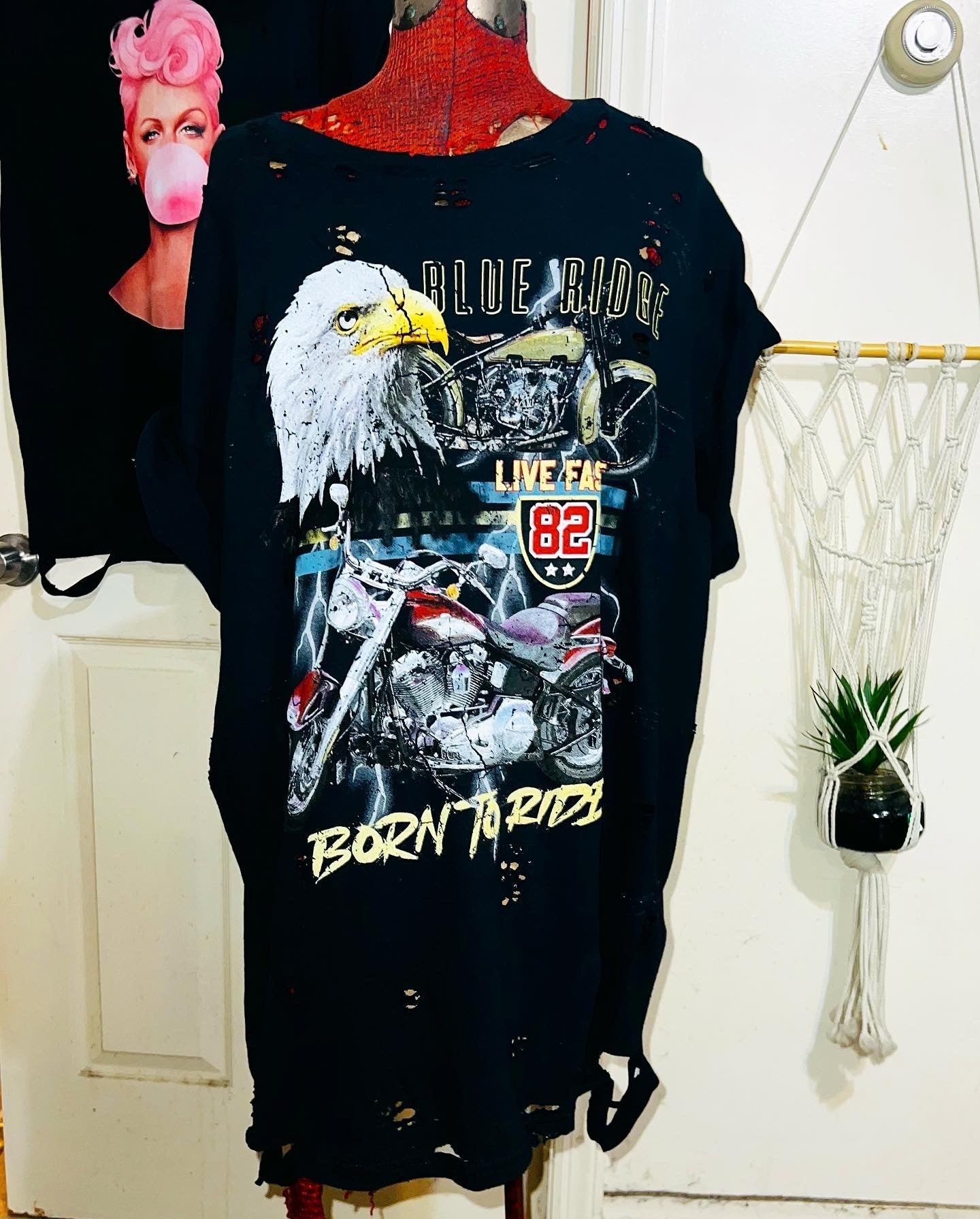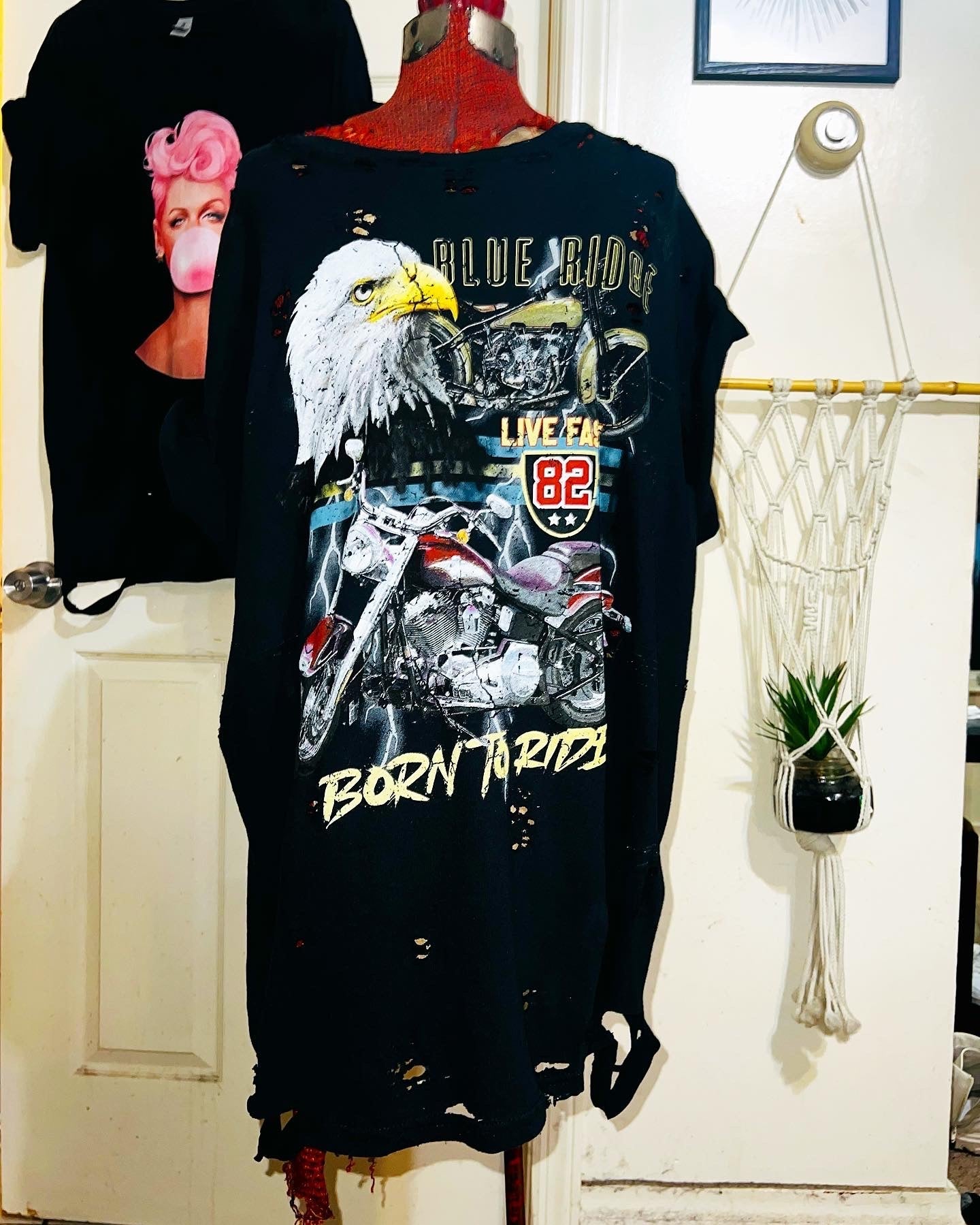 This is the coolest vintage looking shirt. A motorcycle and Eagle with the “born to ride” gives you the edgy vintage look that’s in this season! Size L/XL (oversized).