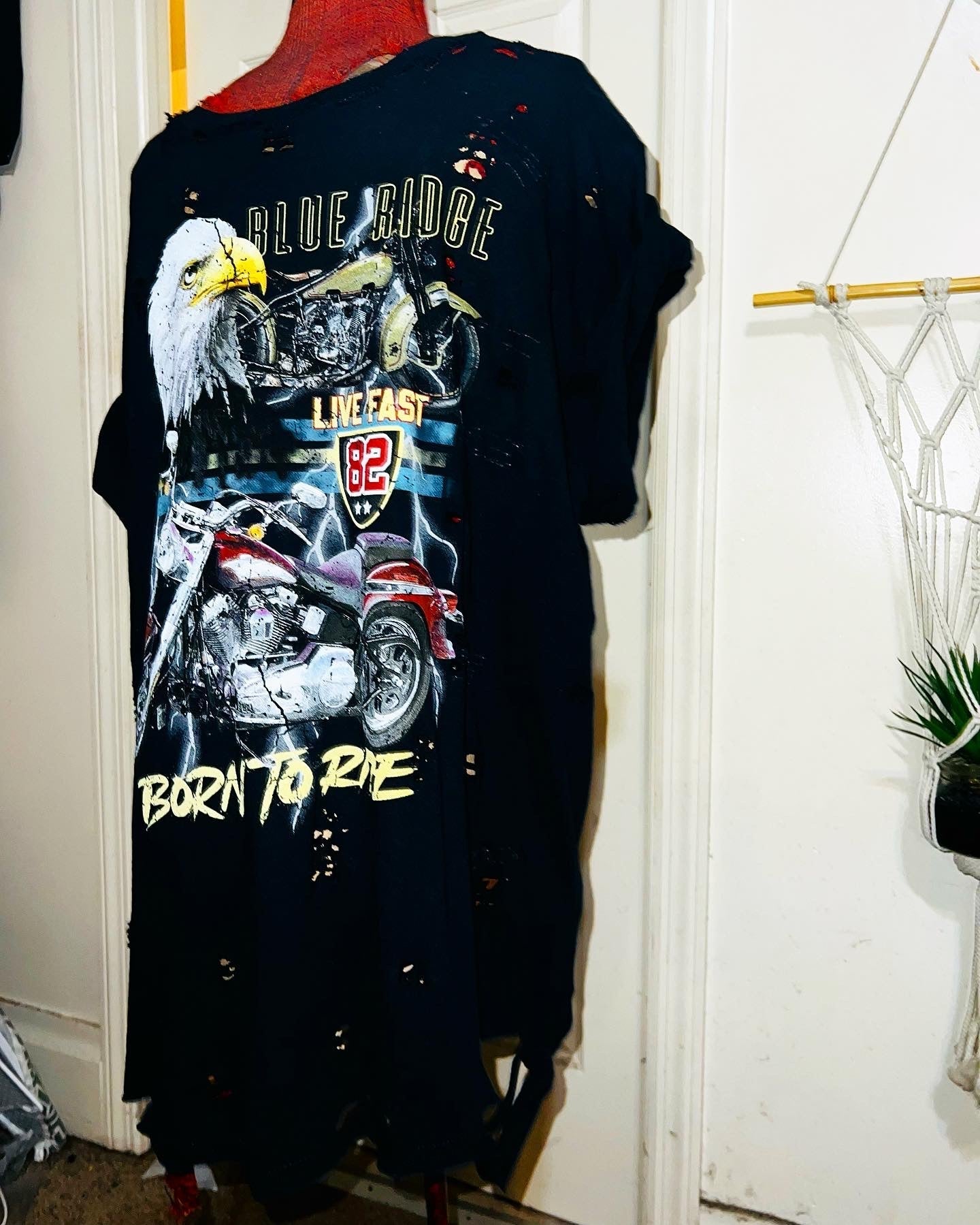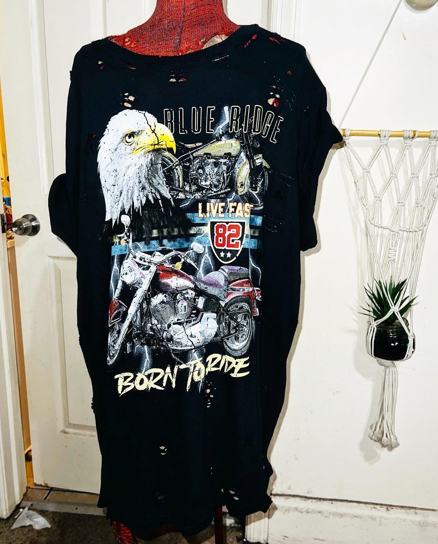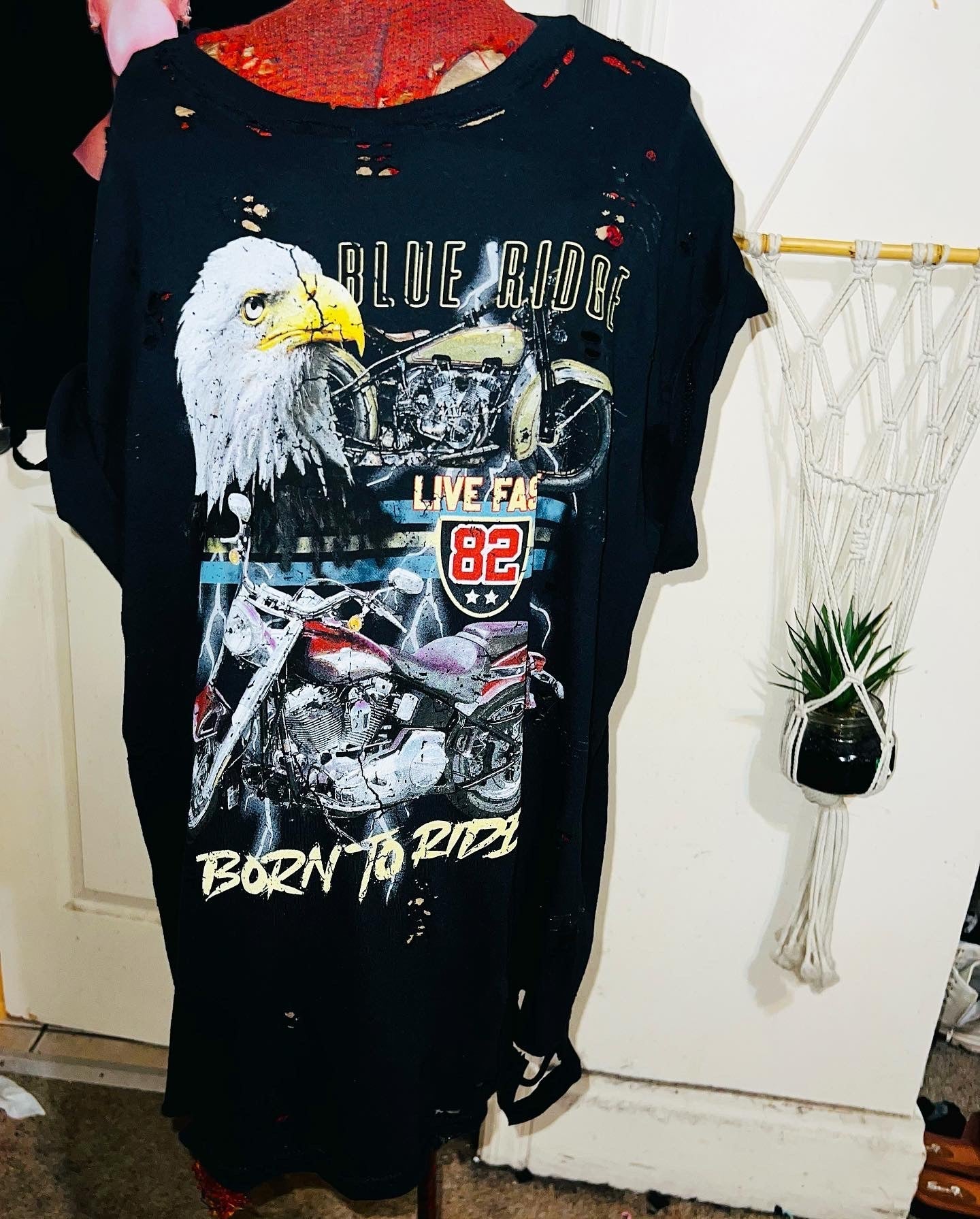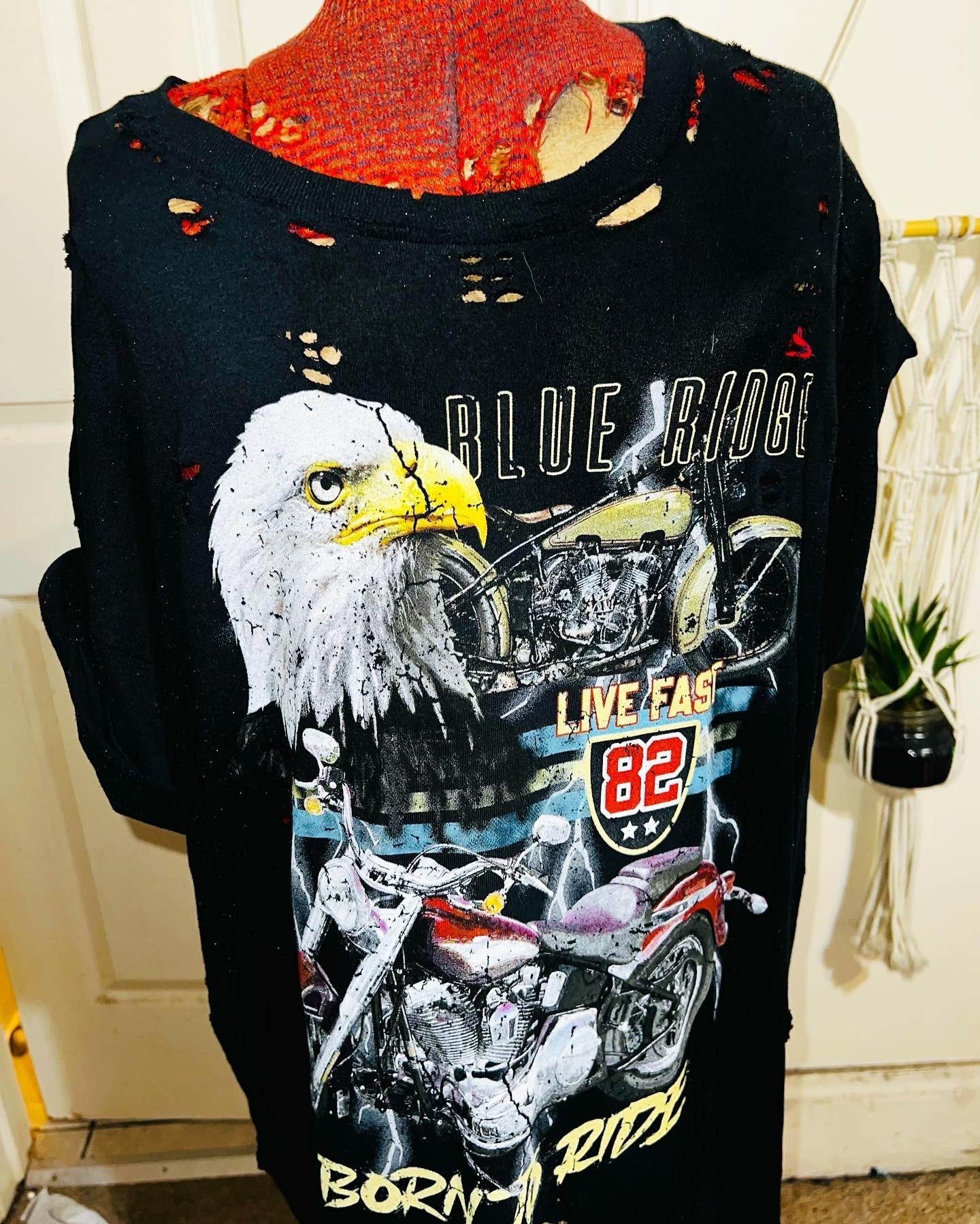This is the coolest vintage looking shirt. A motorcycle and Eagle with the “born to ride” gives you the edgy vintage look that’s in this season! Size L/XL (oversized).