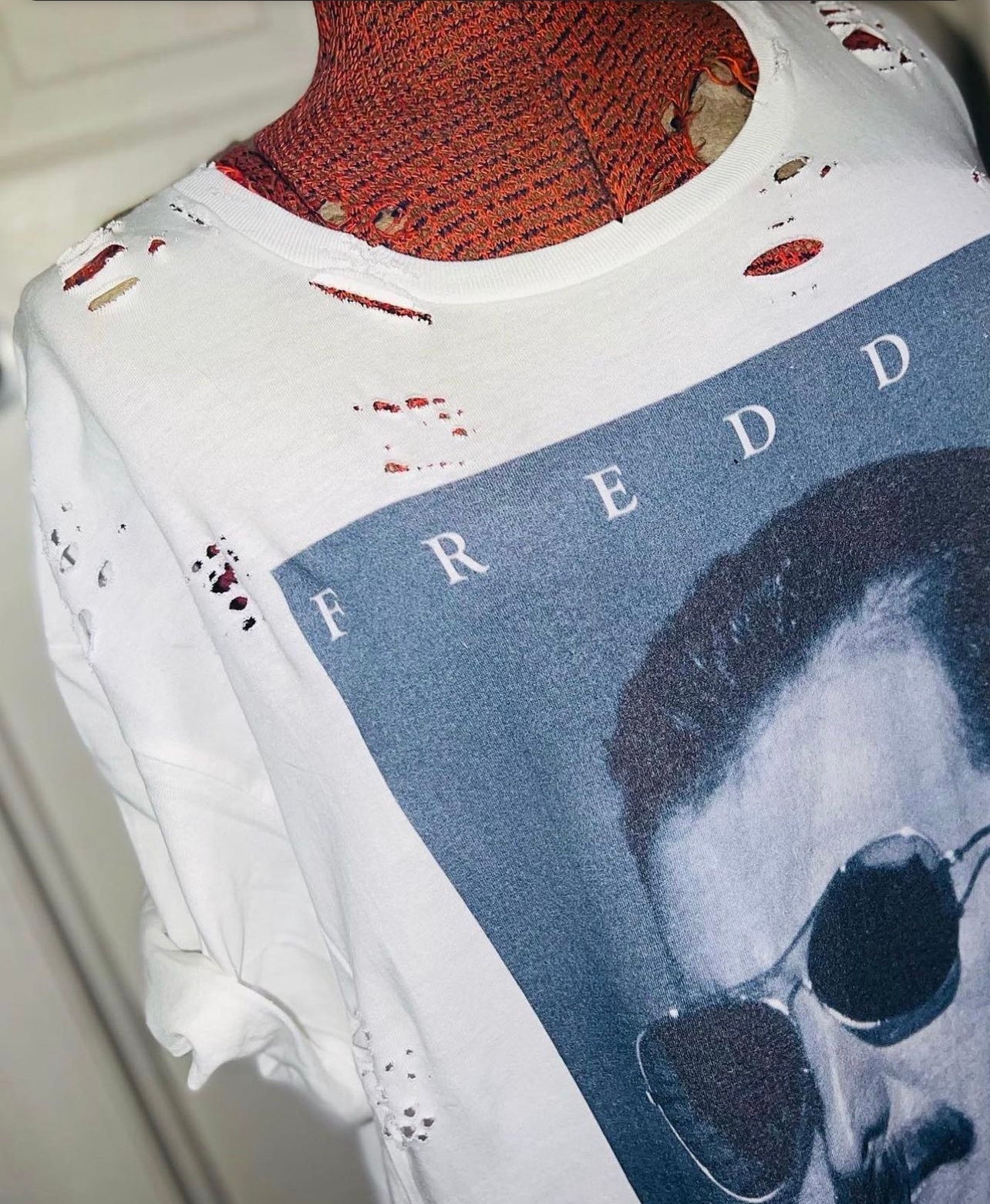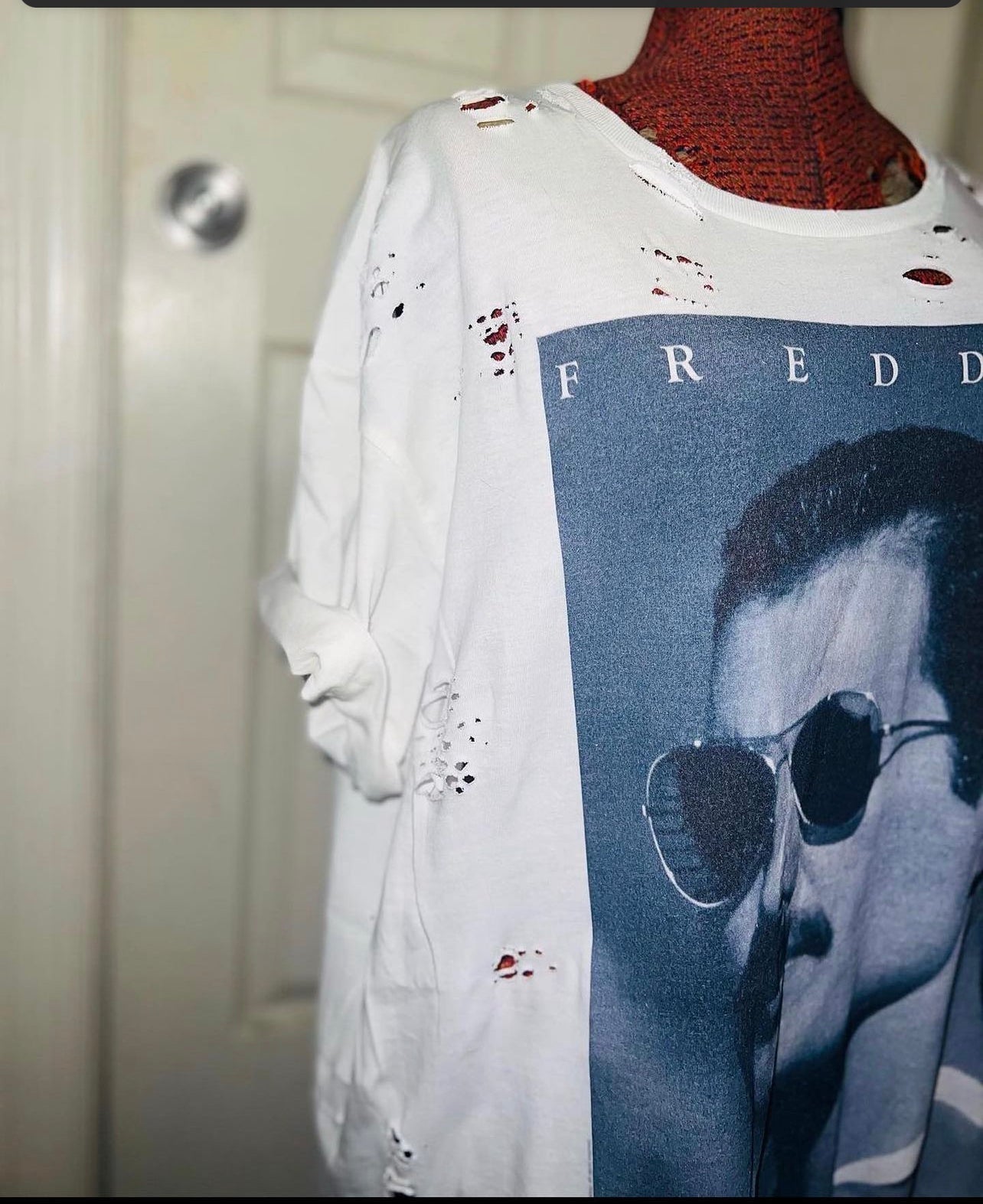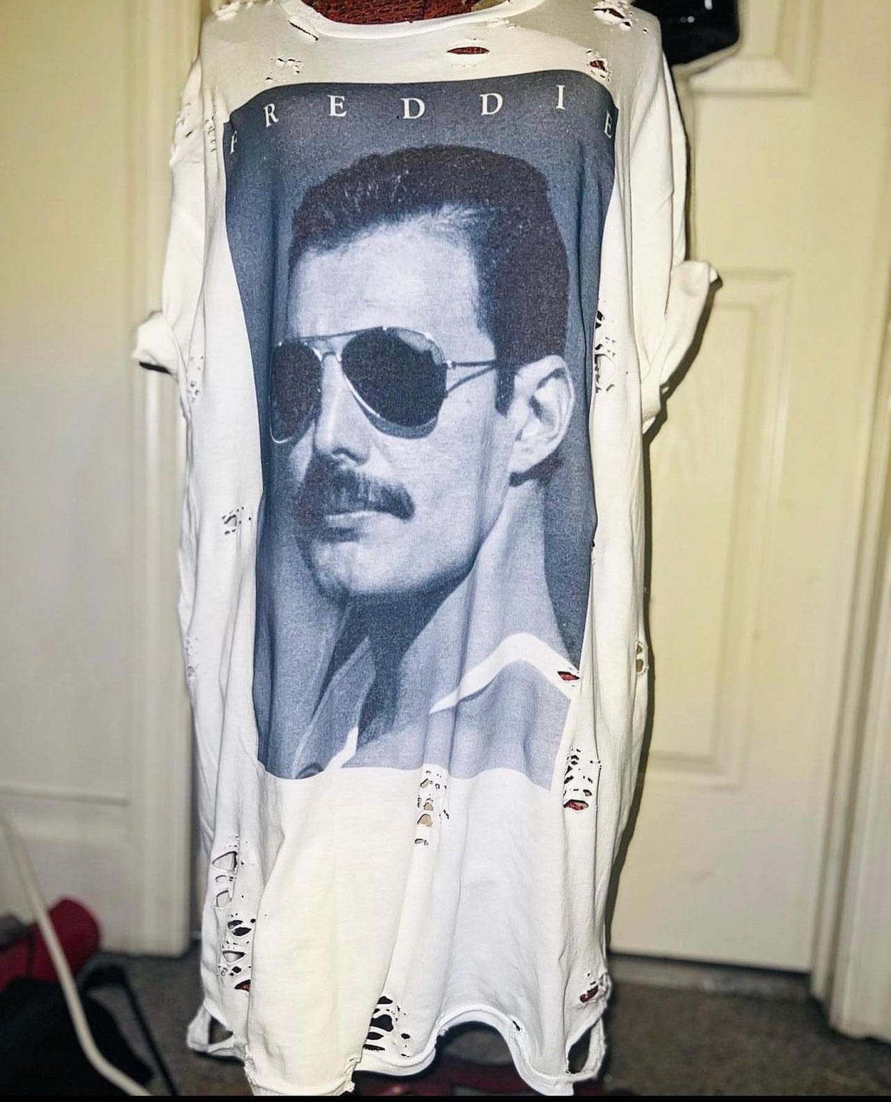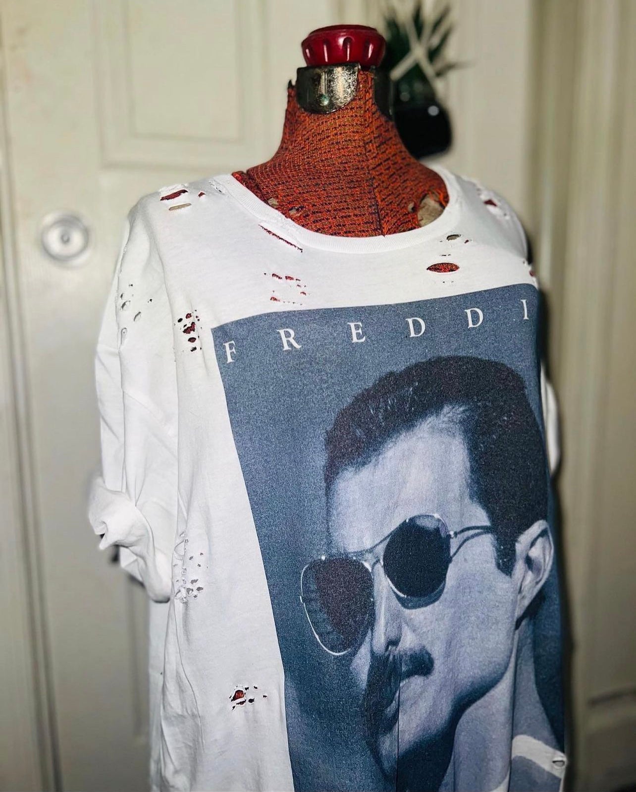 The legendary Freddie Mercury is front and center on this tee. Every time I get one, it sells so quick! So snag it quick! It’s not distressed yet and is an oversized XL, very comfortable.