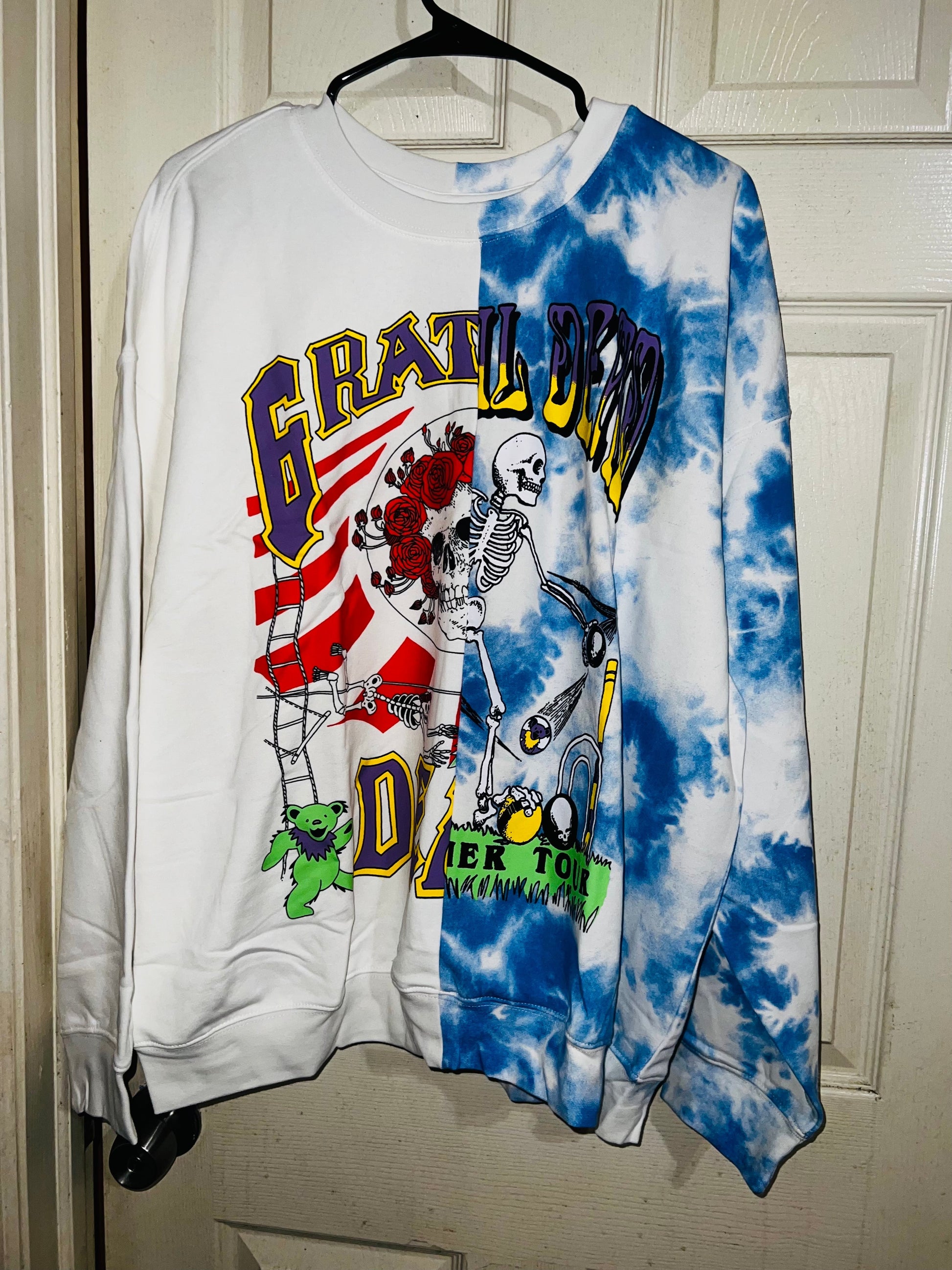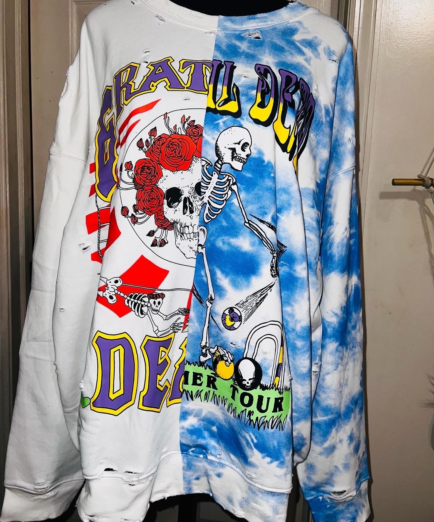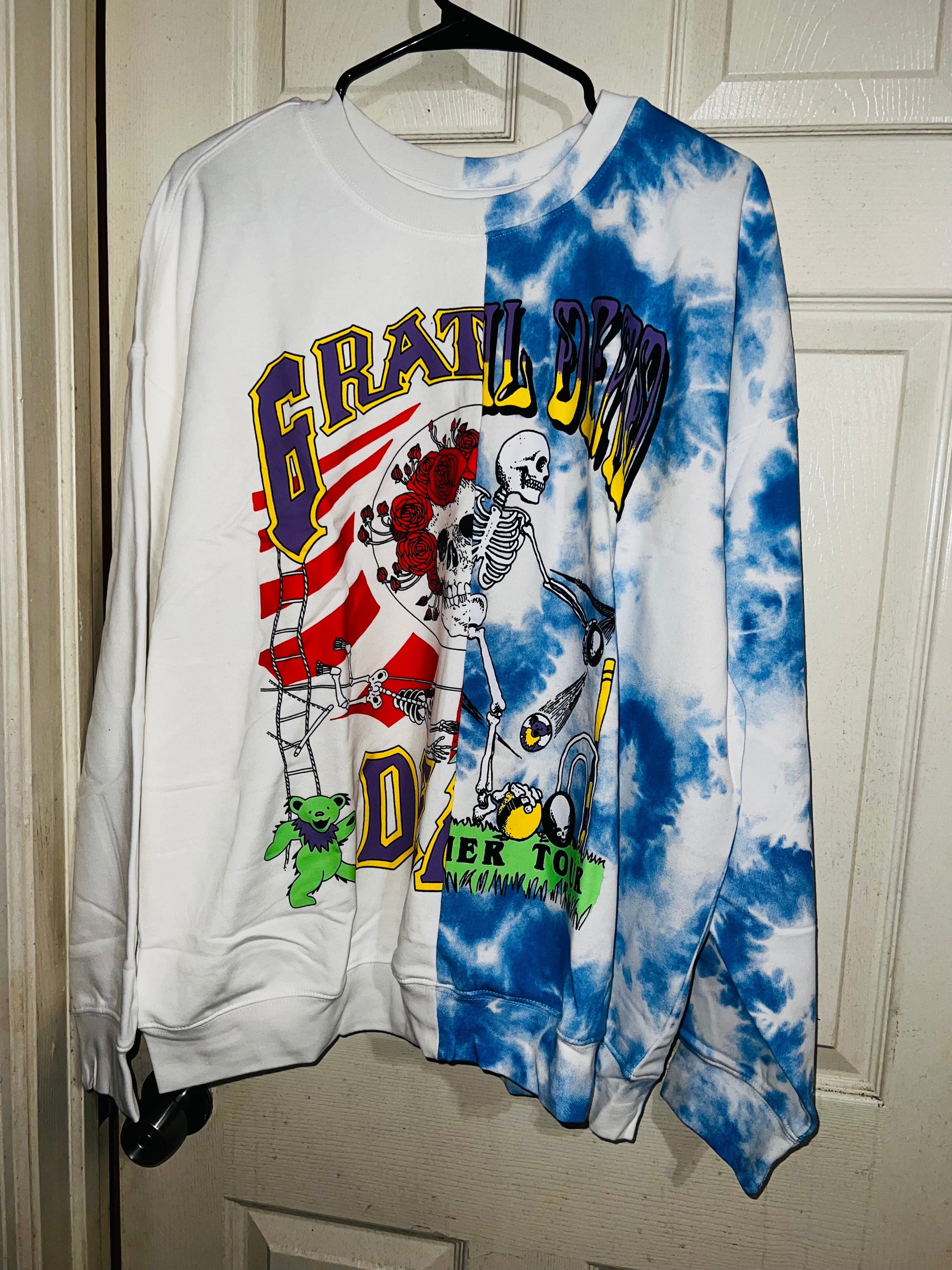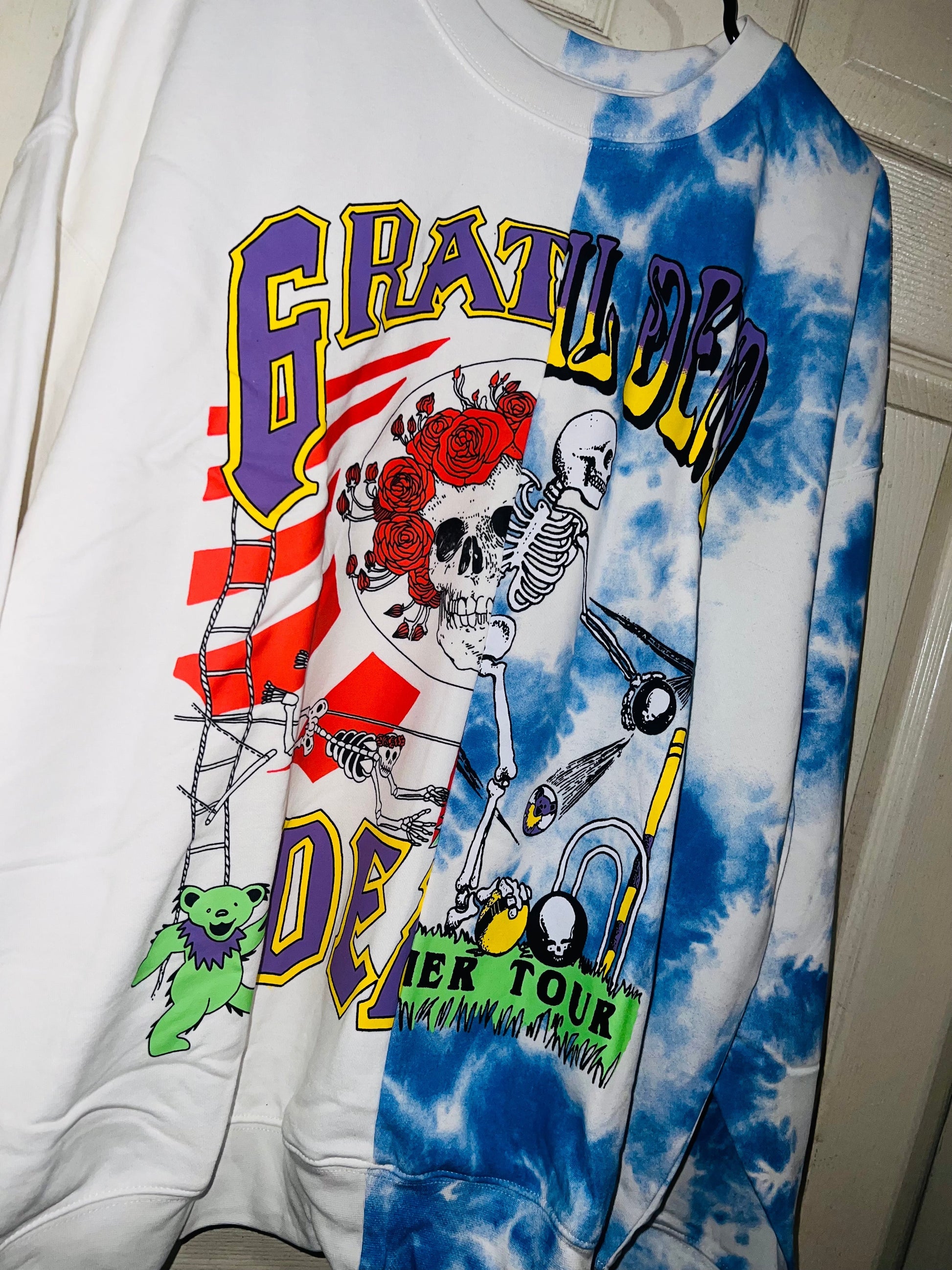 This is a preorder. Please allow extra processing time for shipping. I’m obsessed with this. A split Grateful Dead sweatshirt with basically all their iconic symbols in one. The roses skeleton, bears, bocce ball everything! Oversized. I have two available, some of the last around! L/XL. So comfy and pretty.