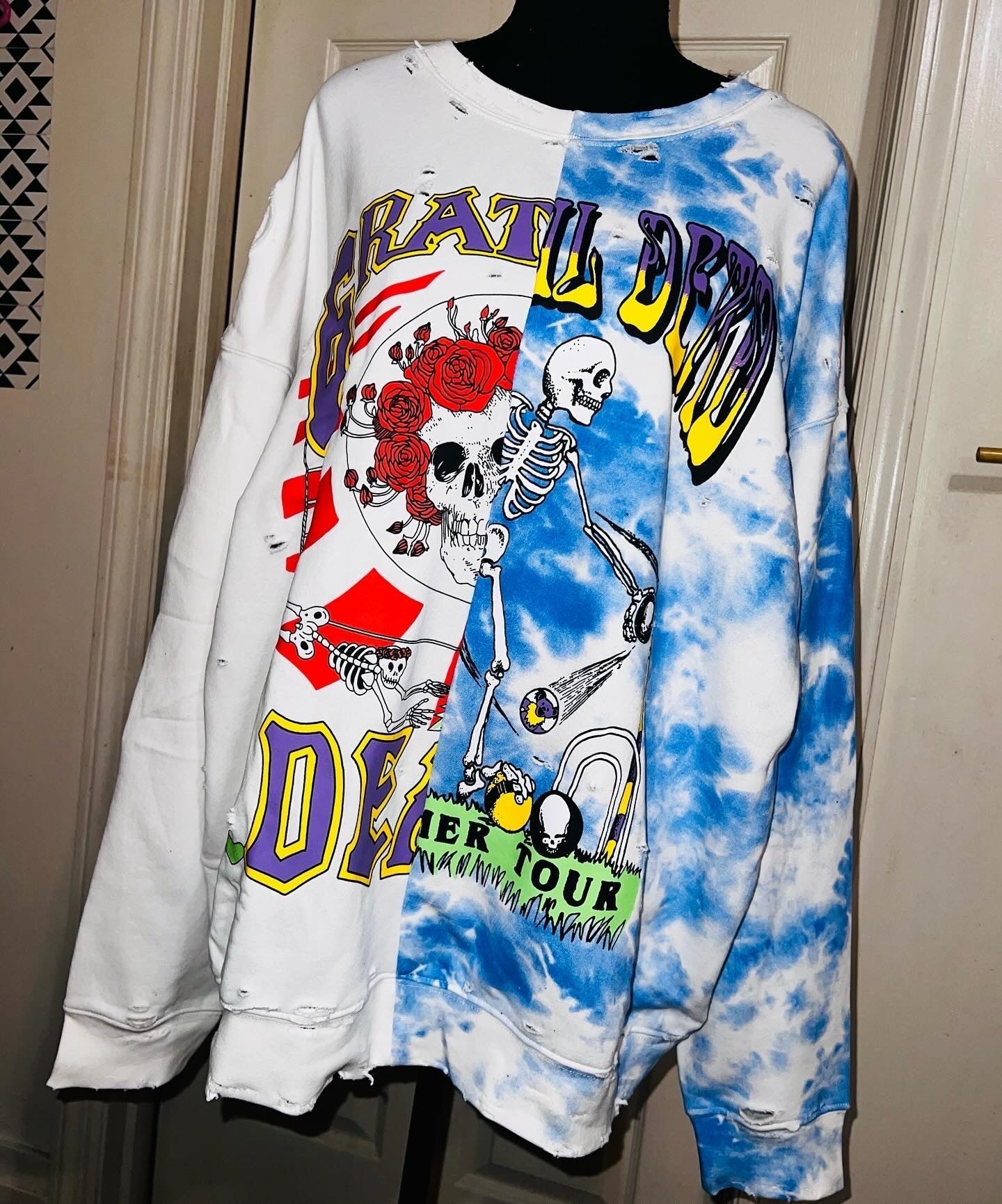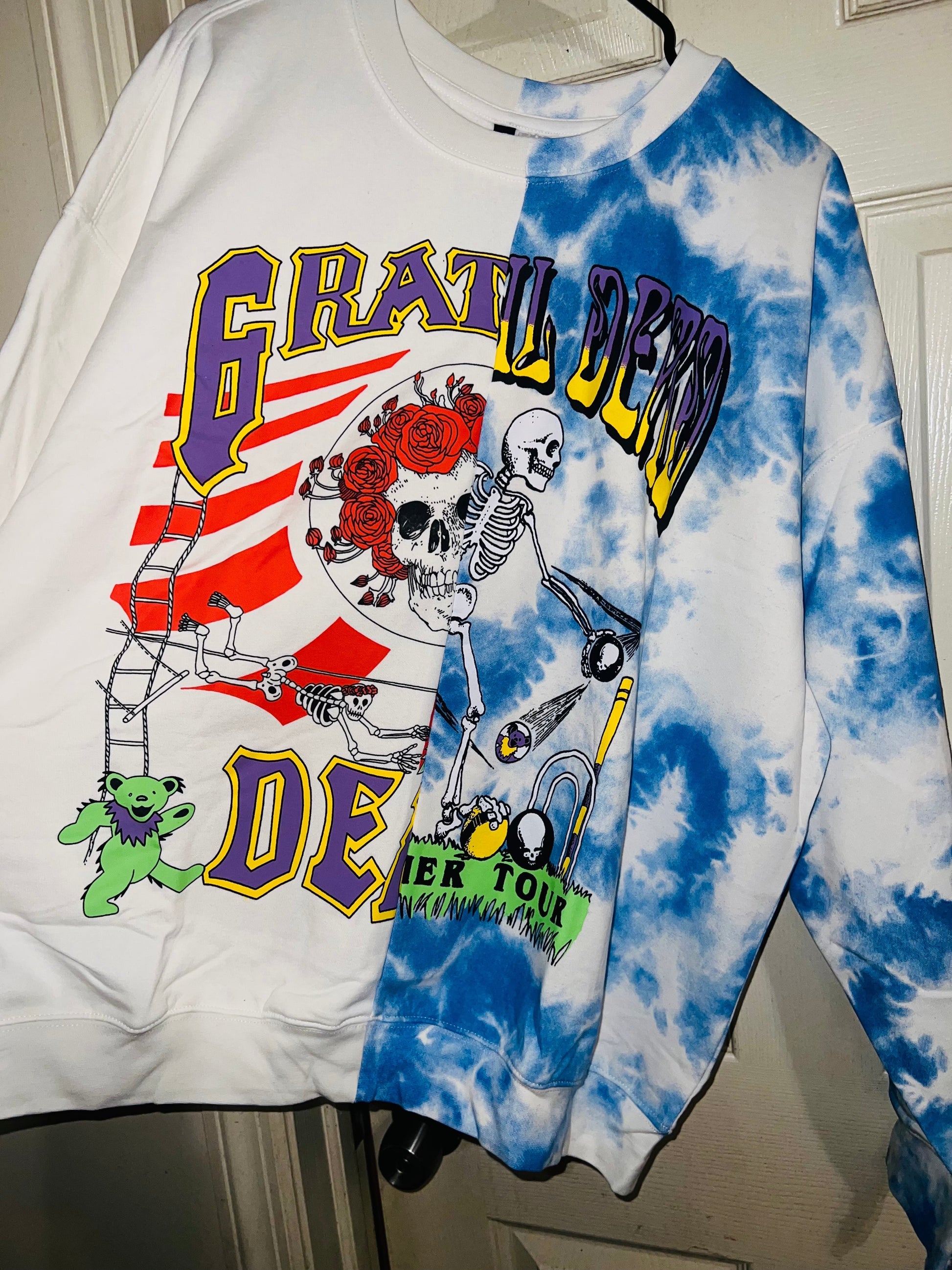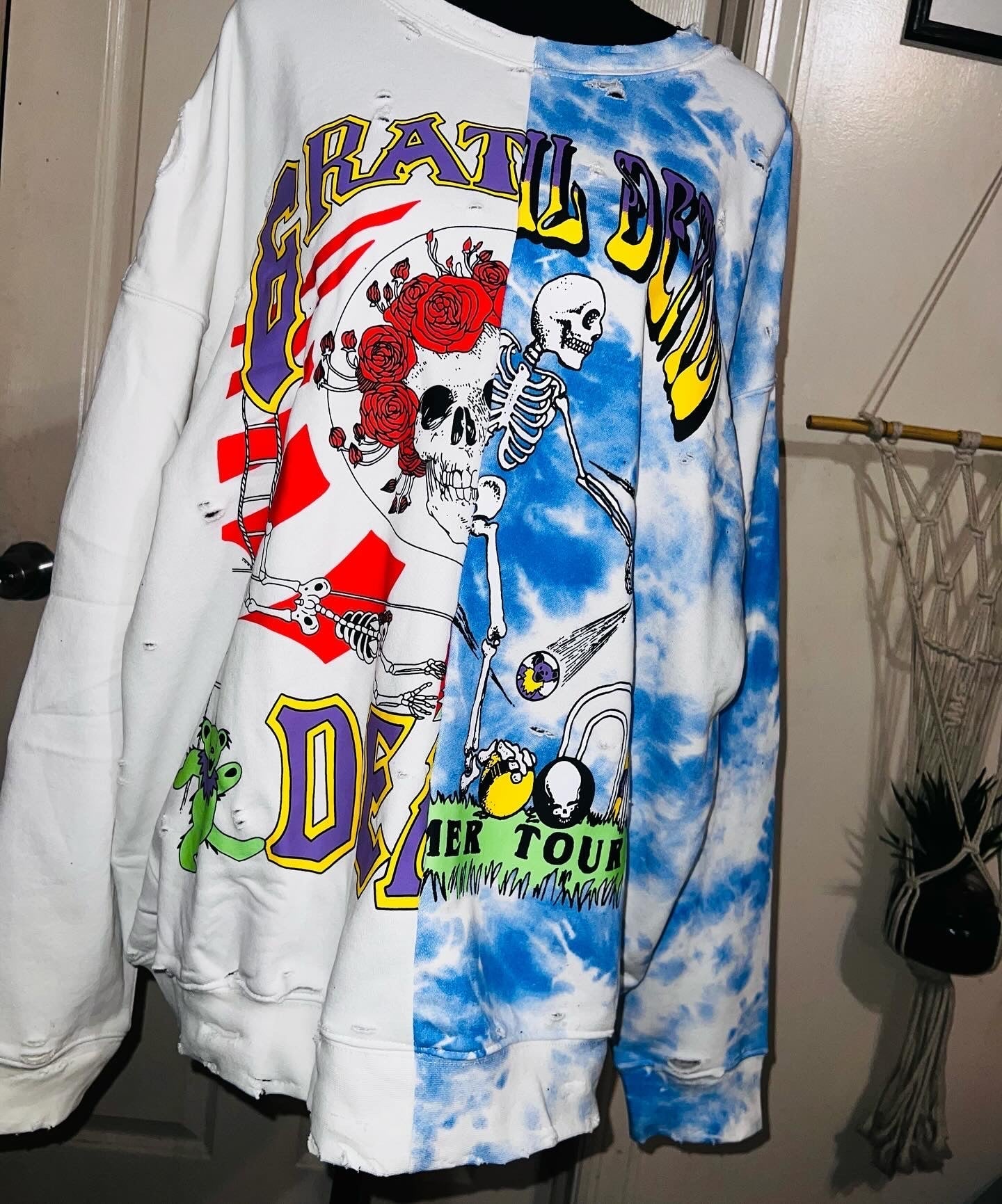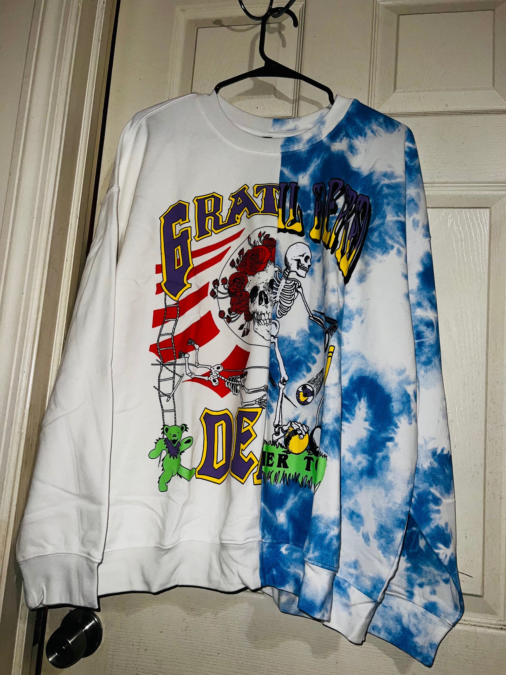 This is a preorder. Please allow extra processing time for shipping. I’m obsessed with this. A split Grateful Dead sweatshirt with basically all their iconic symbols in one. The roses skeleton, bears, bocce ball everything! Oversized. I have two available, some of the last around! L/XL. So comfy and pretty.
