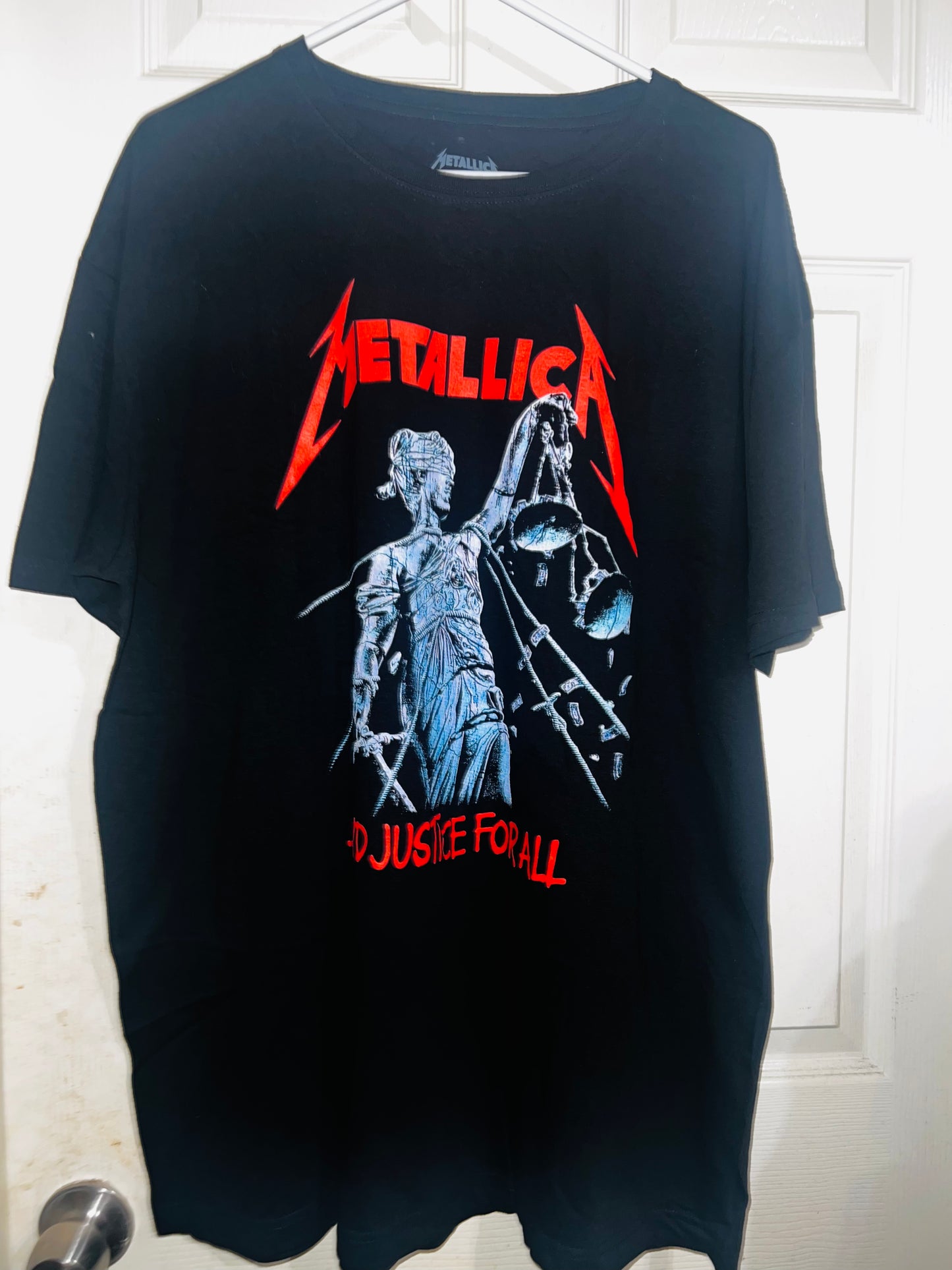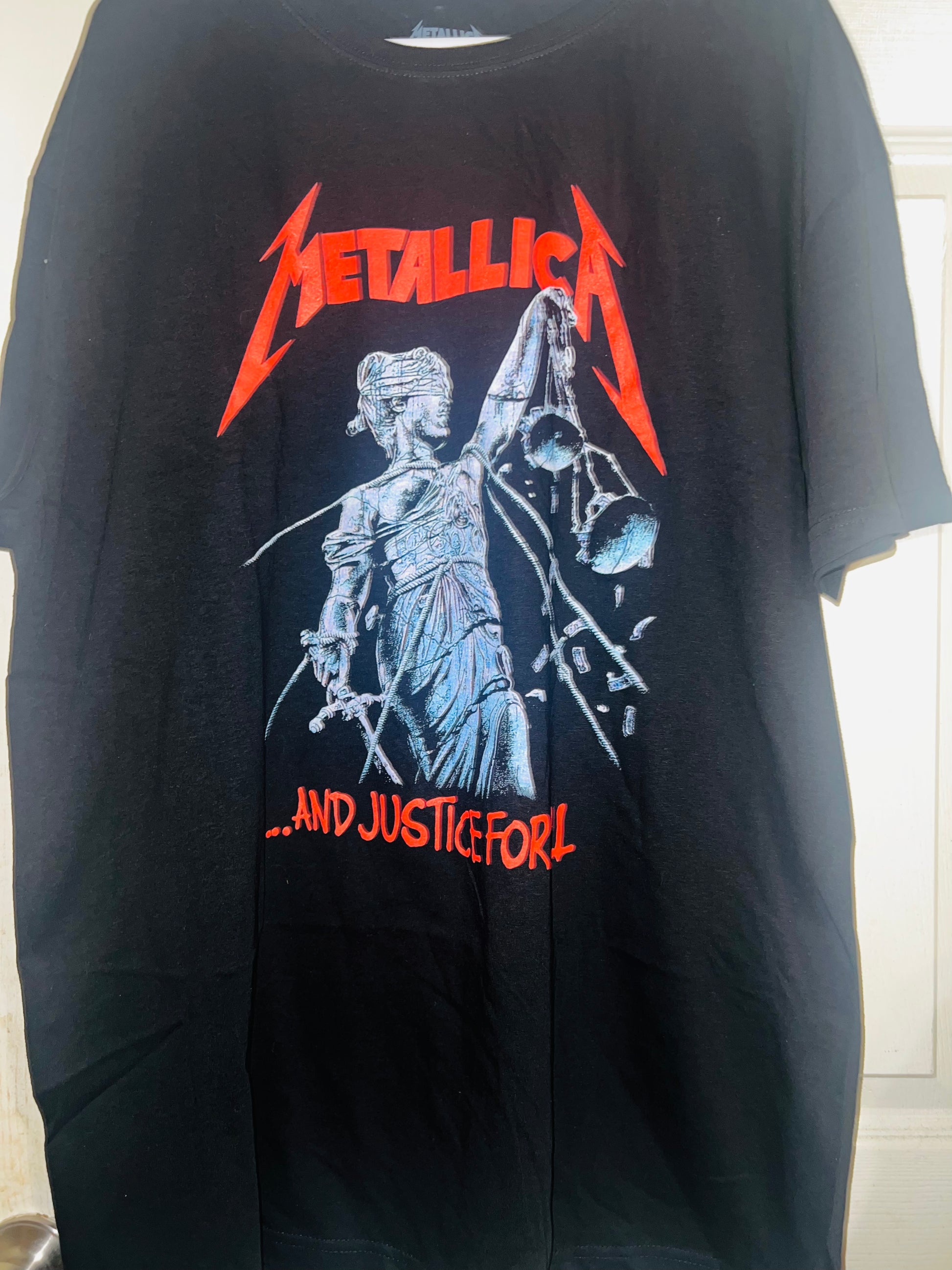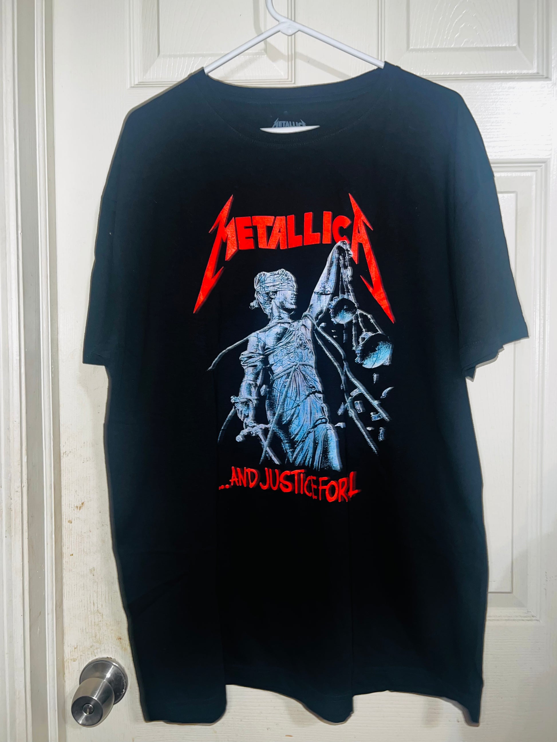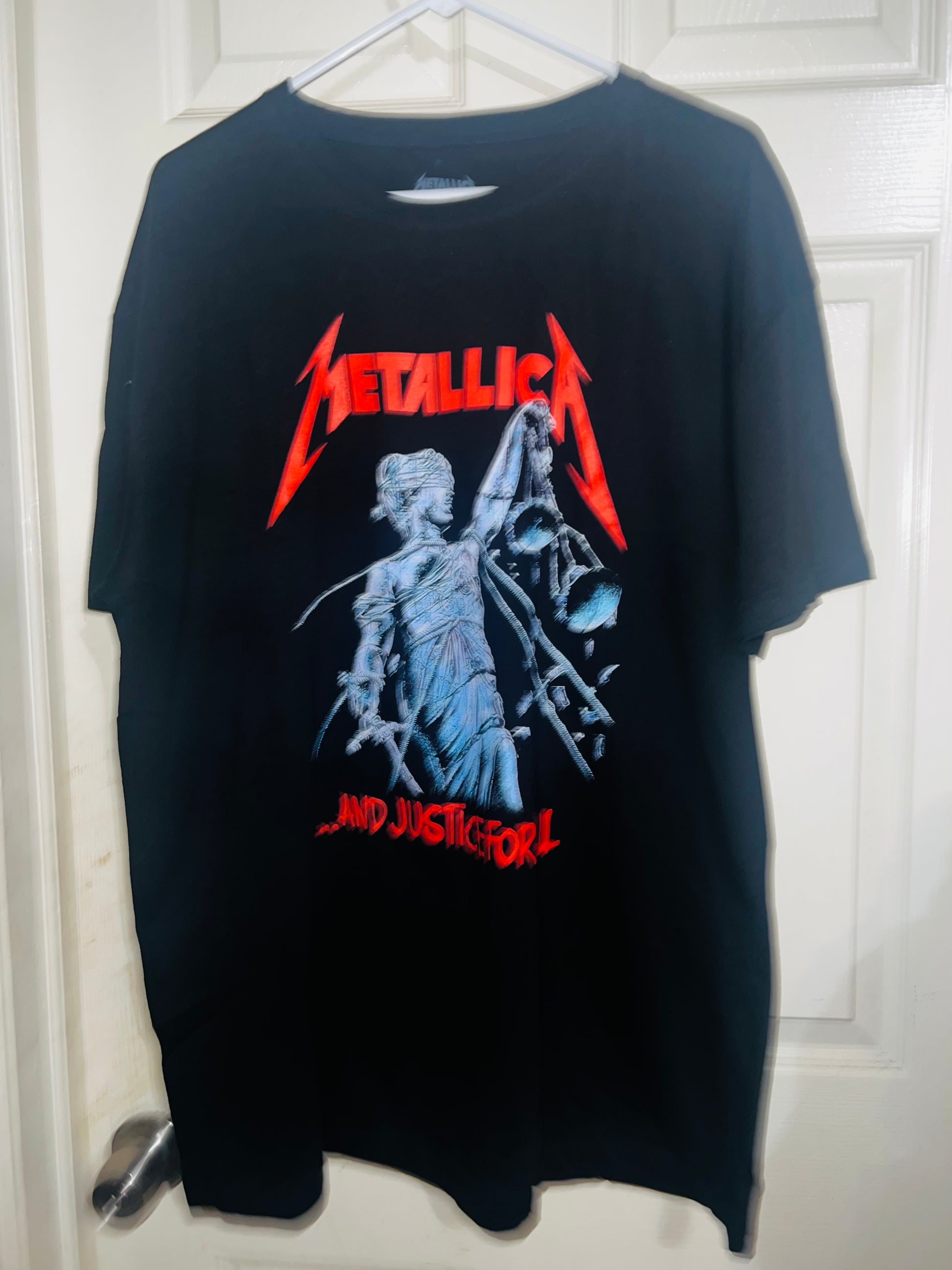 …And Justin for all! black Metallica t-shirt with red accents to pop! Always my favorite Metallica graphic. Size XL but can get most sizes!