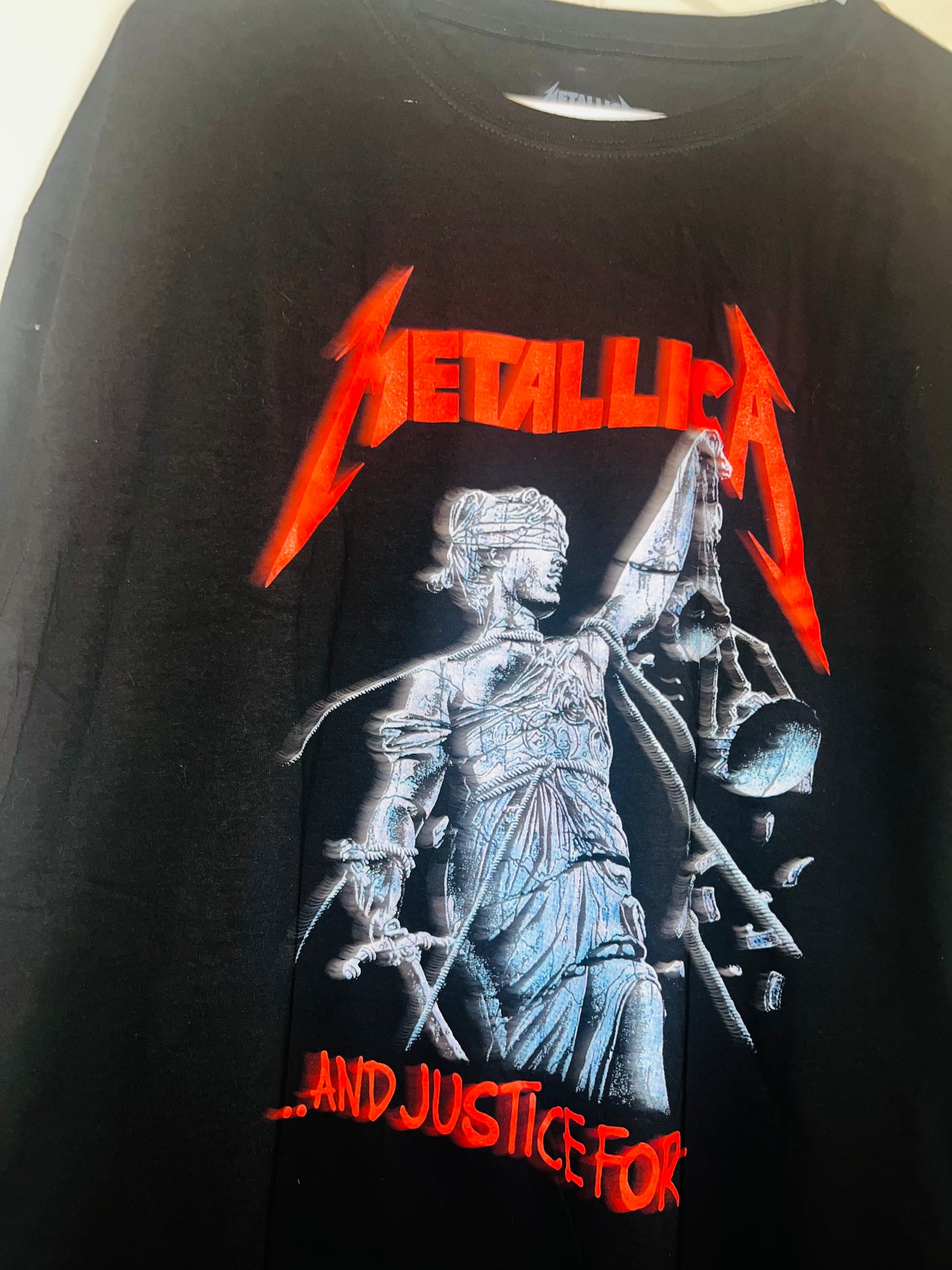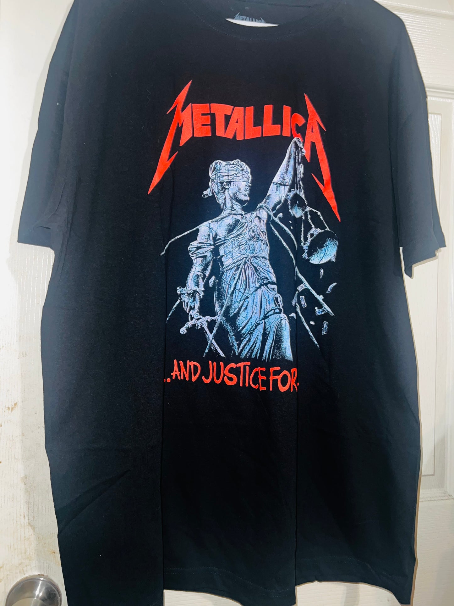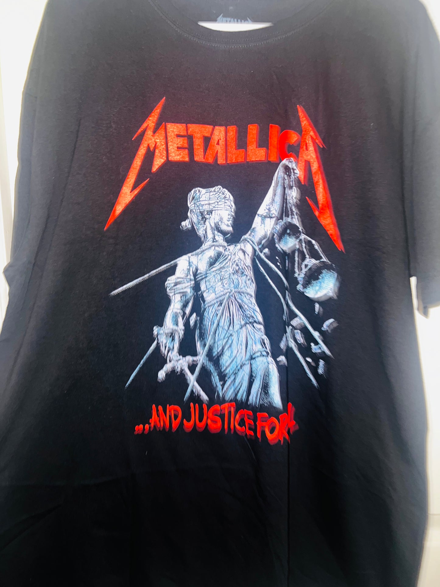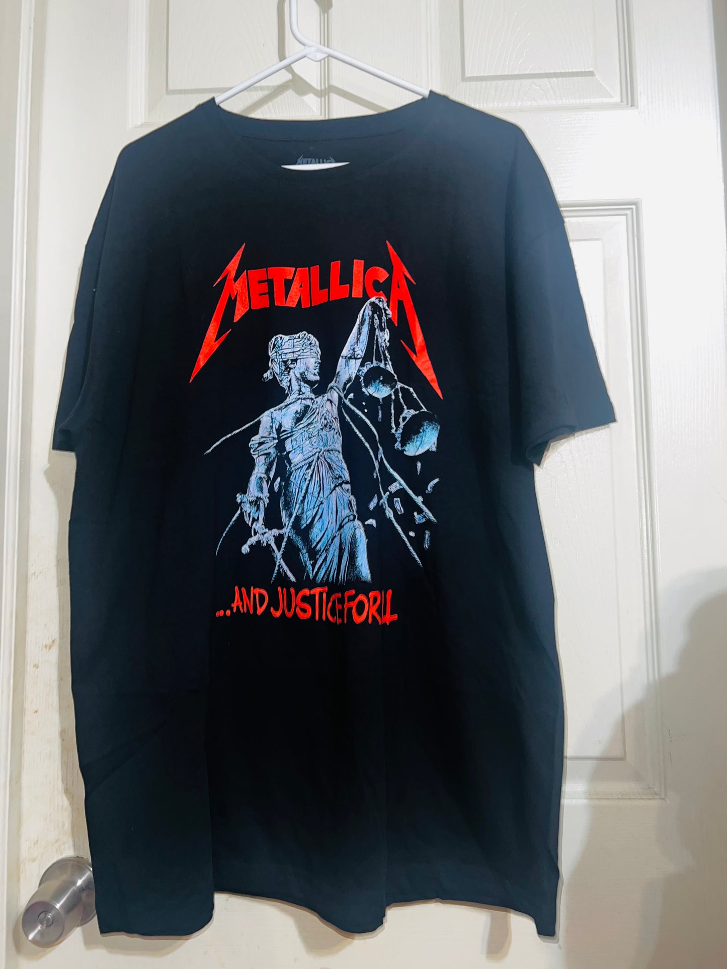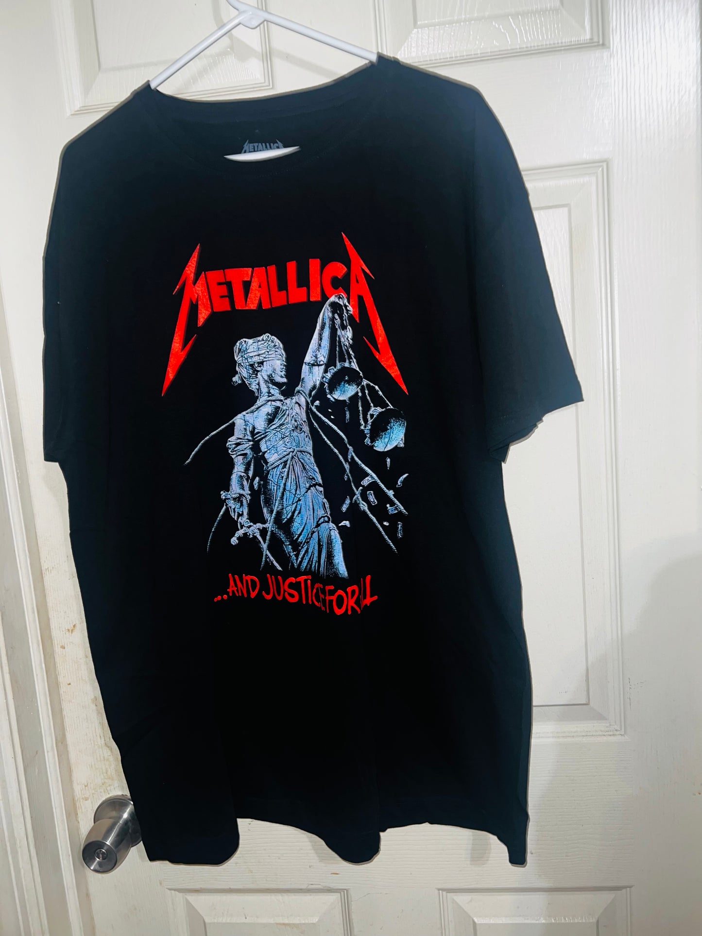 …And Justin for all! black Metallica t-shirt with red accents to pop! Always my favorite Metallica graphic. Size XL but can get most sizes!