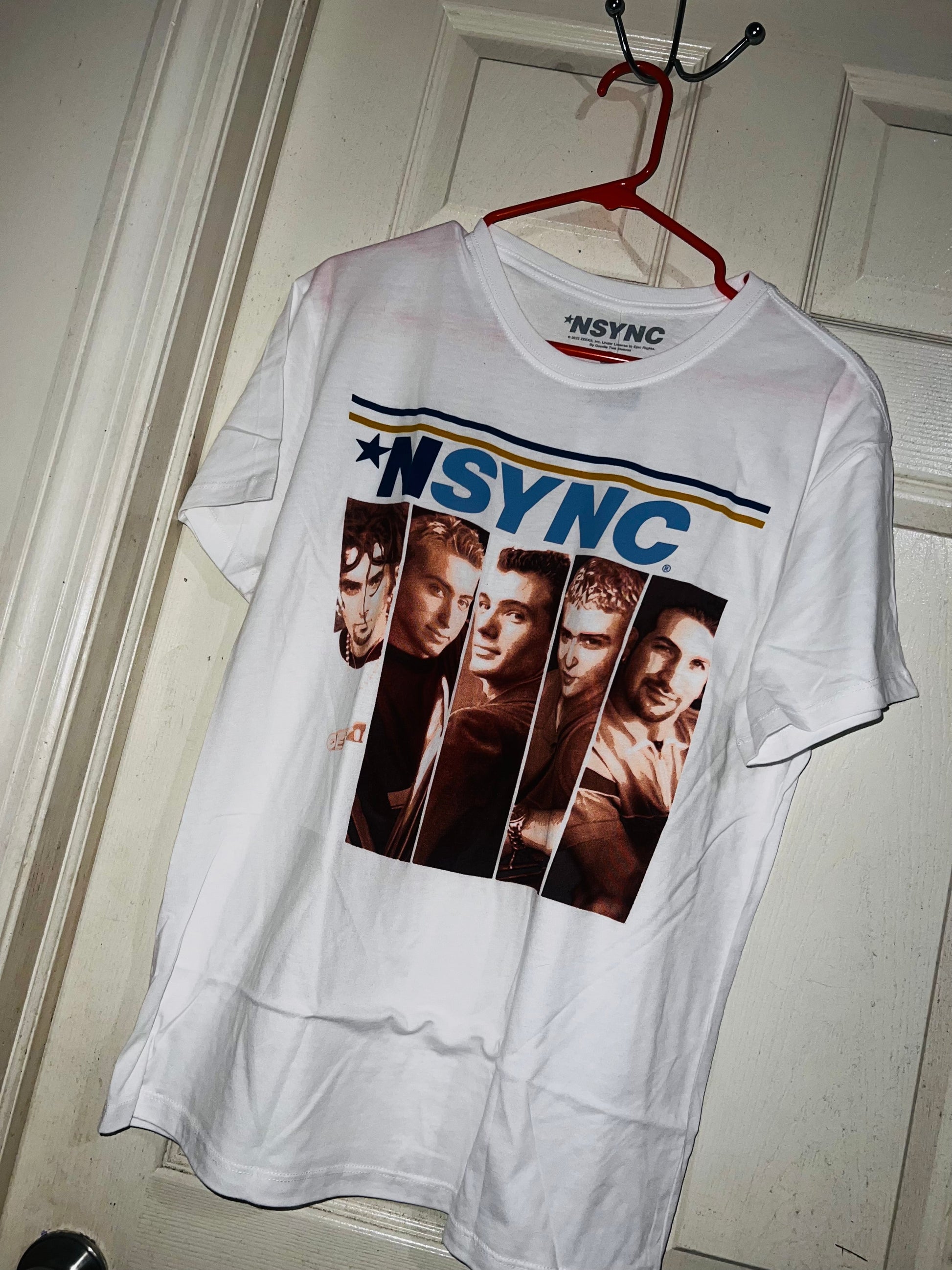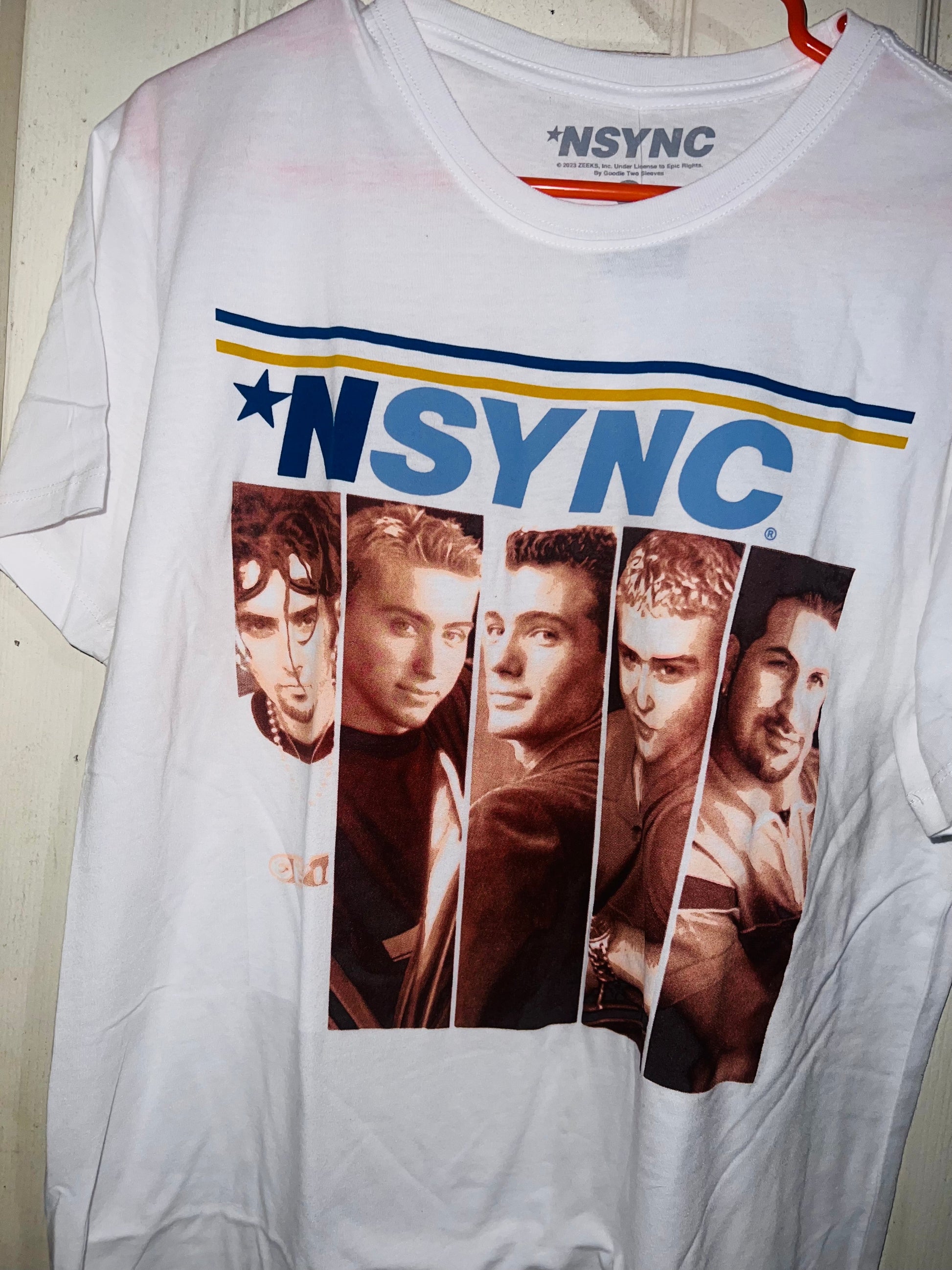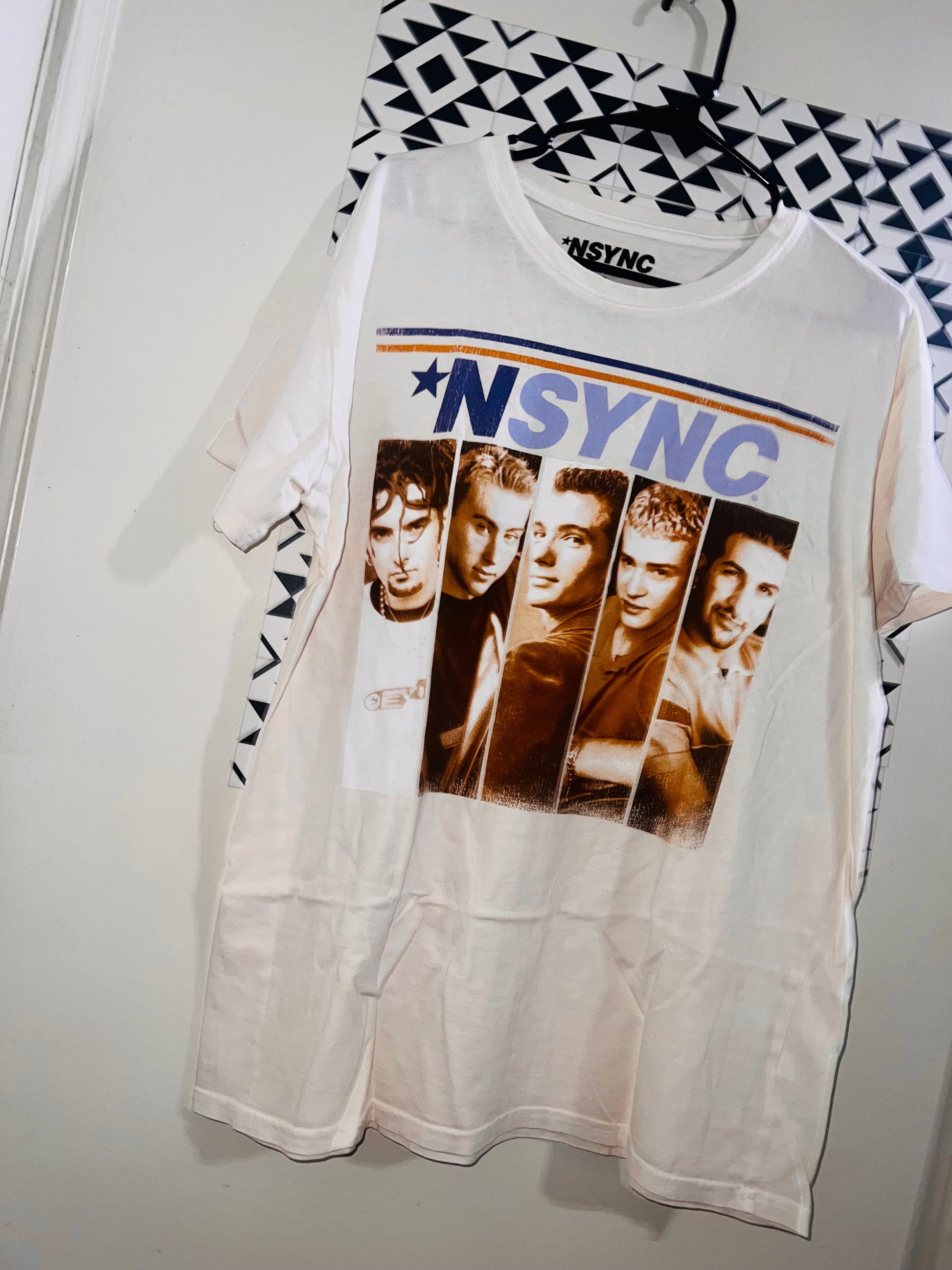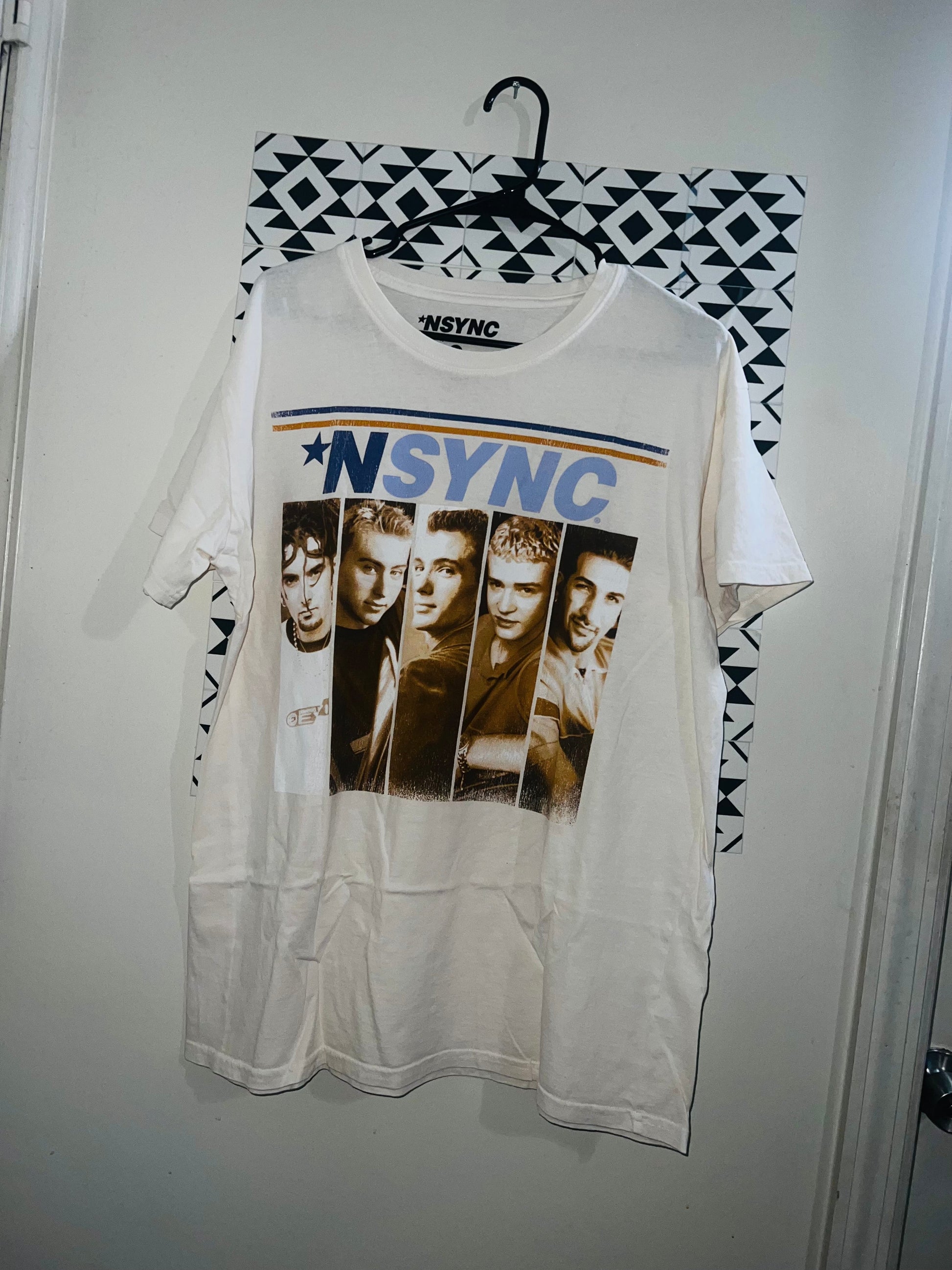An off white NSYNC original album graphic, nostalgia is coming back to me! Super soft, oversized and L/XL! You’re bound to get compliments on this.