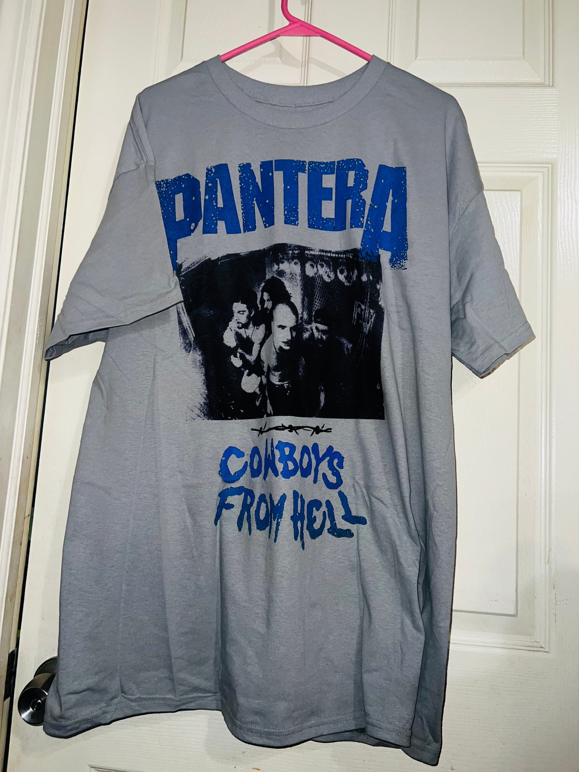 This is a preorder, please allow extra shipping and processing time if purchased. Pantera “Cowboys from Hell” oversized grey/blue t-shirt. Pantera always sells super fast, and I loved this design! Size L/XL.