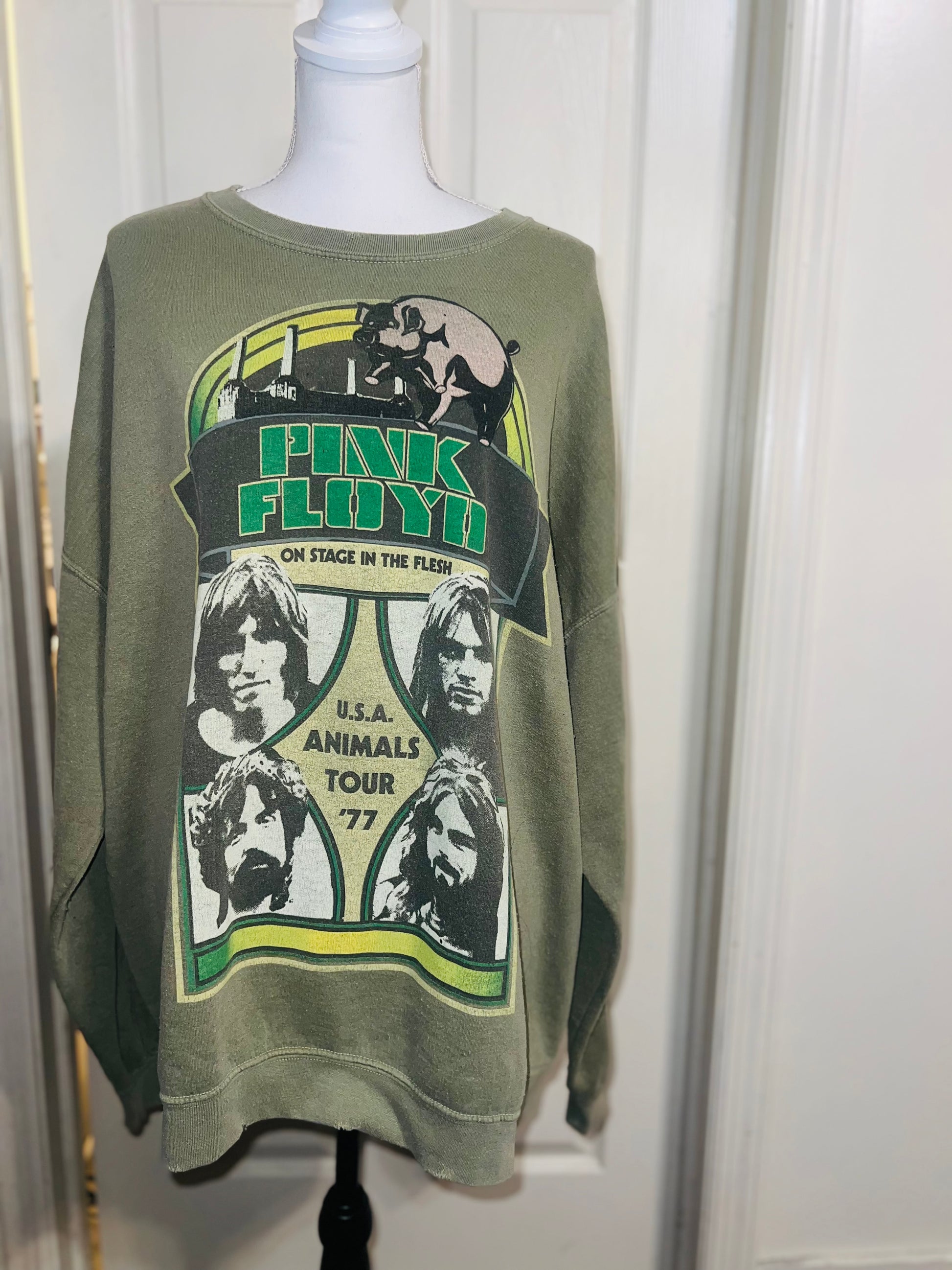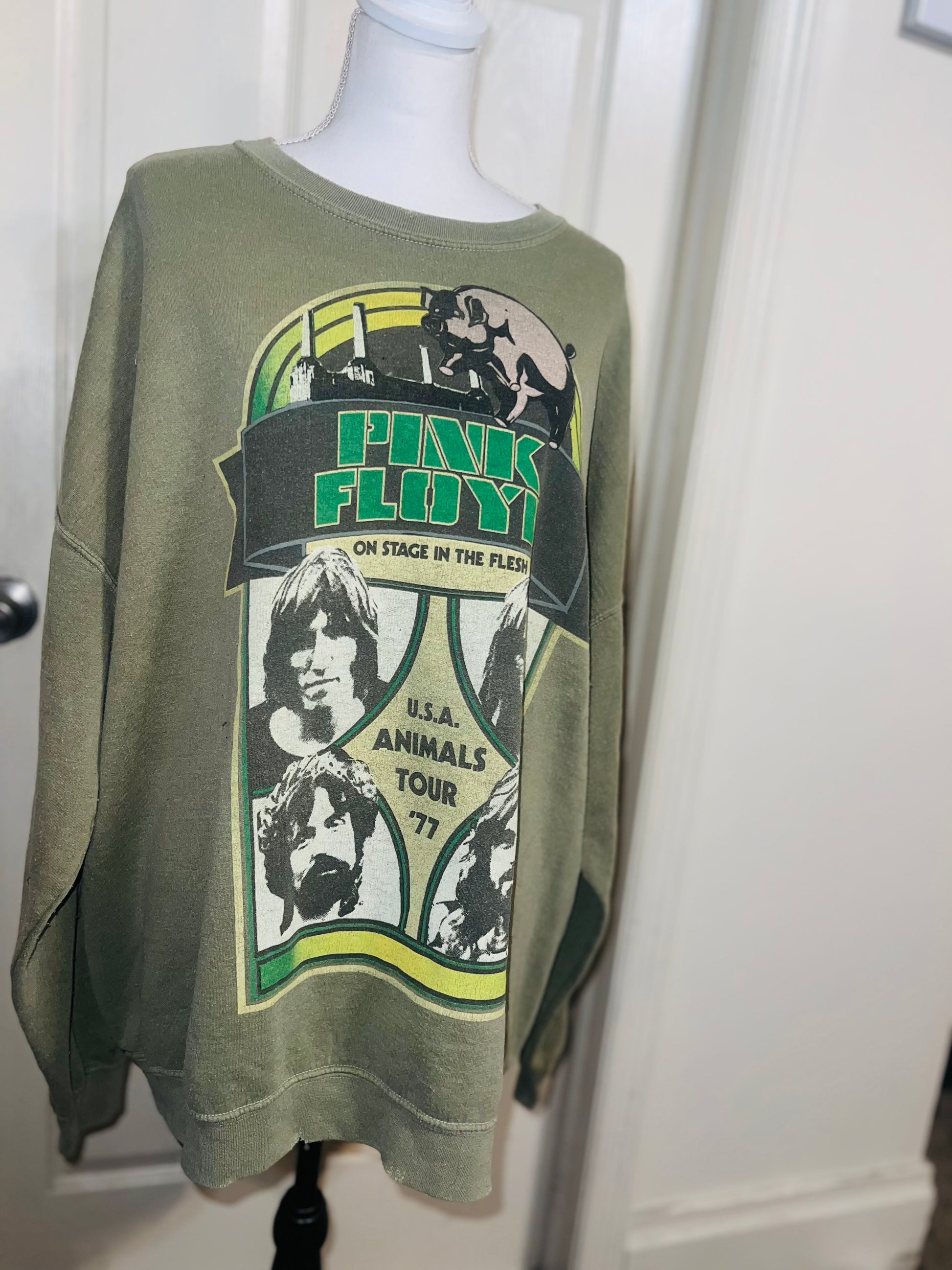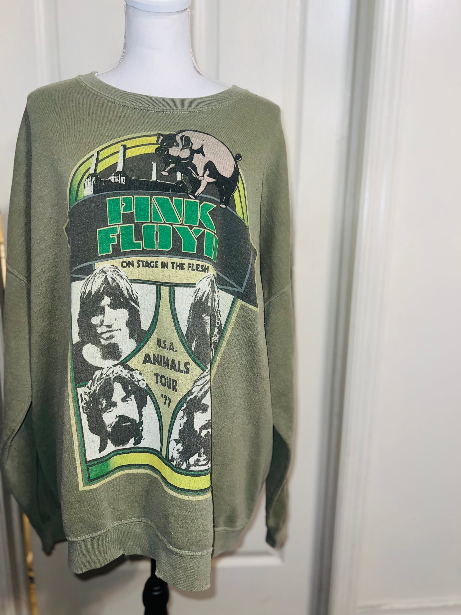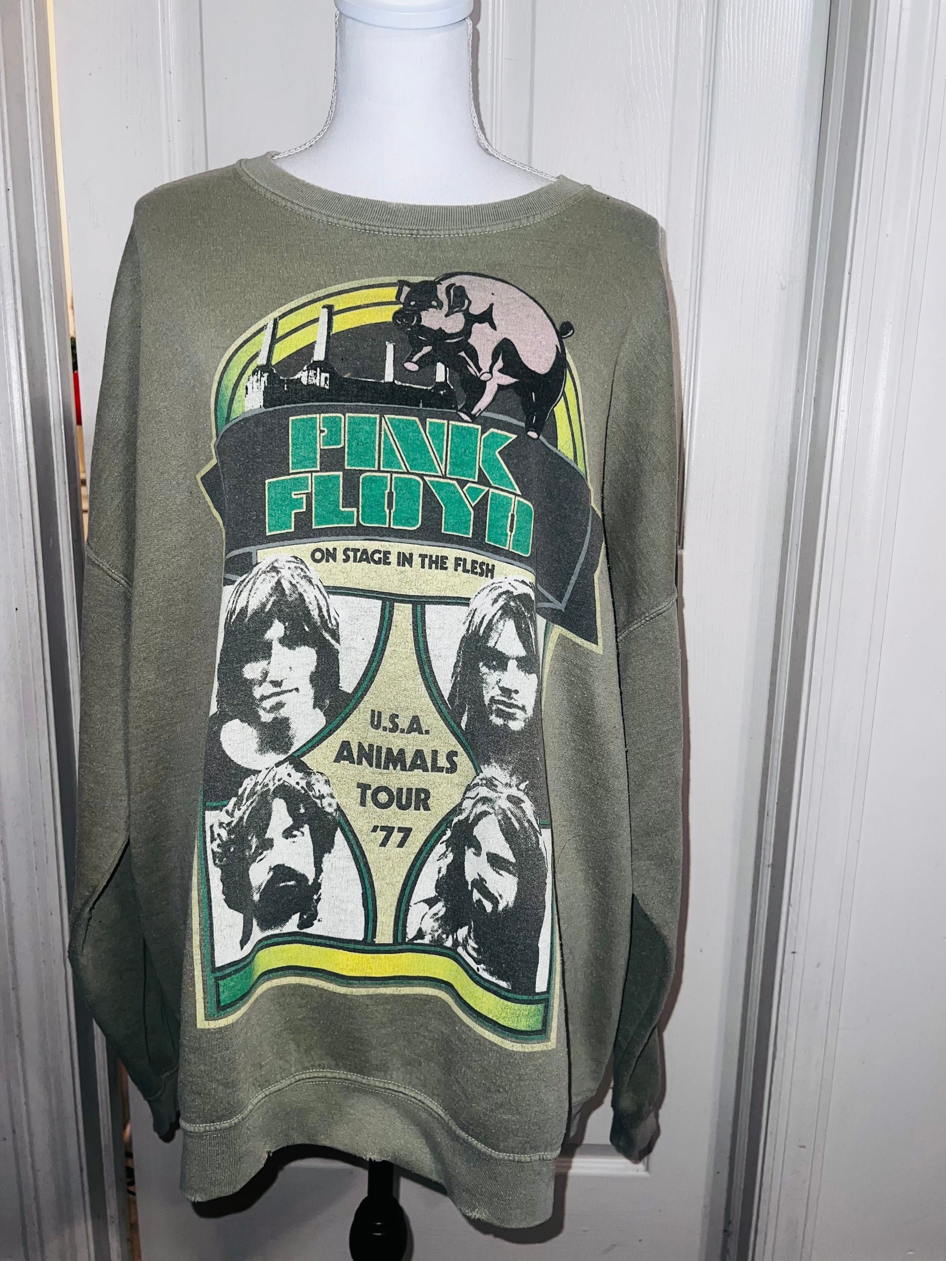 This is a preorder. Please allow extra processing time for shipping. A green Pink Floyd Animals North American 1977 Tour sweatshirt. Oversized, OS.
