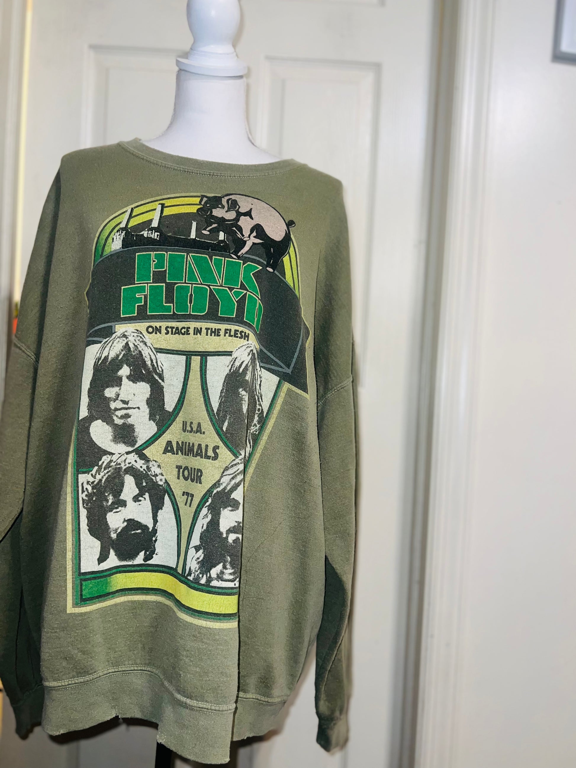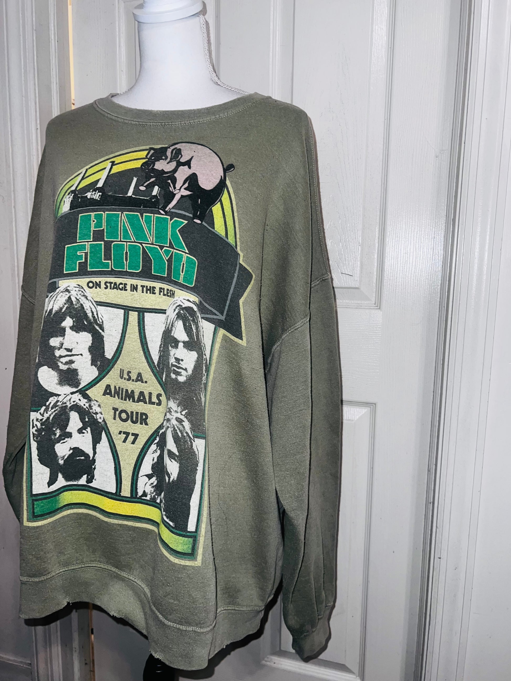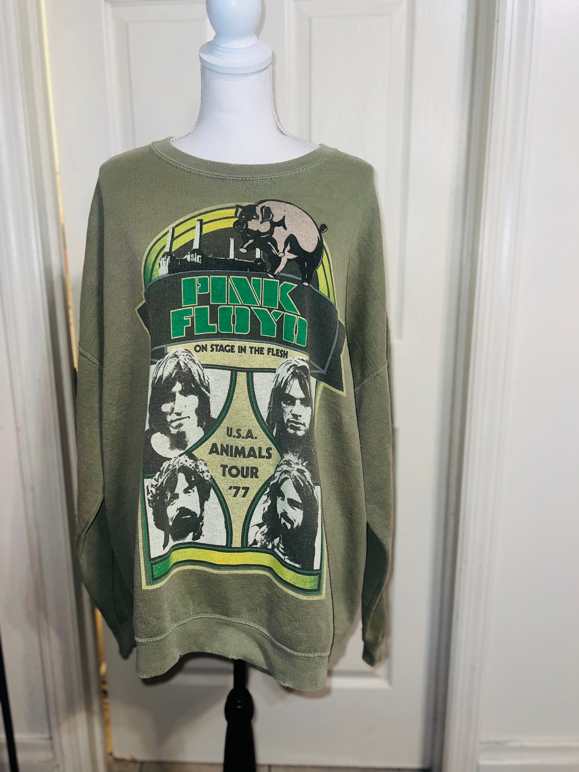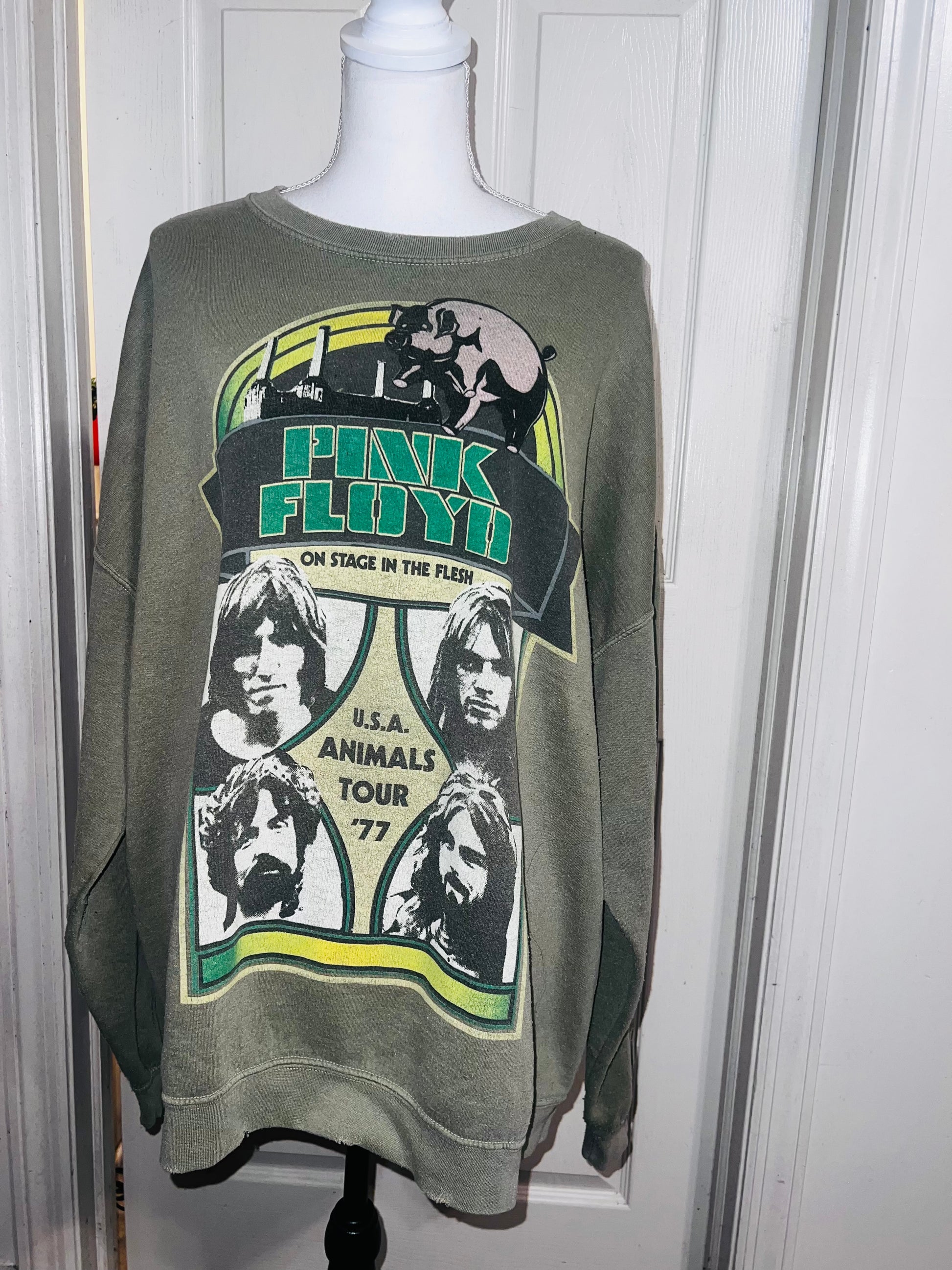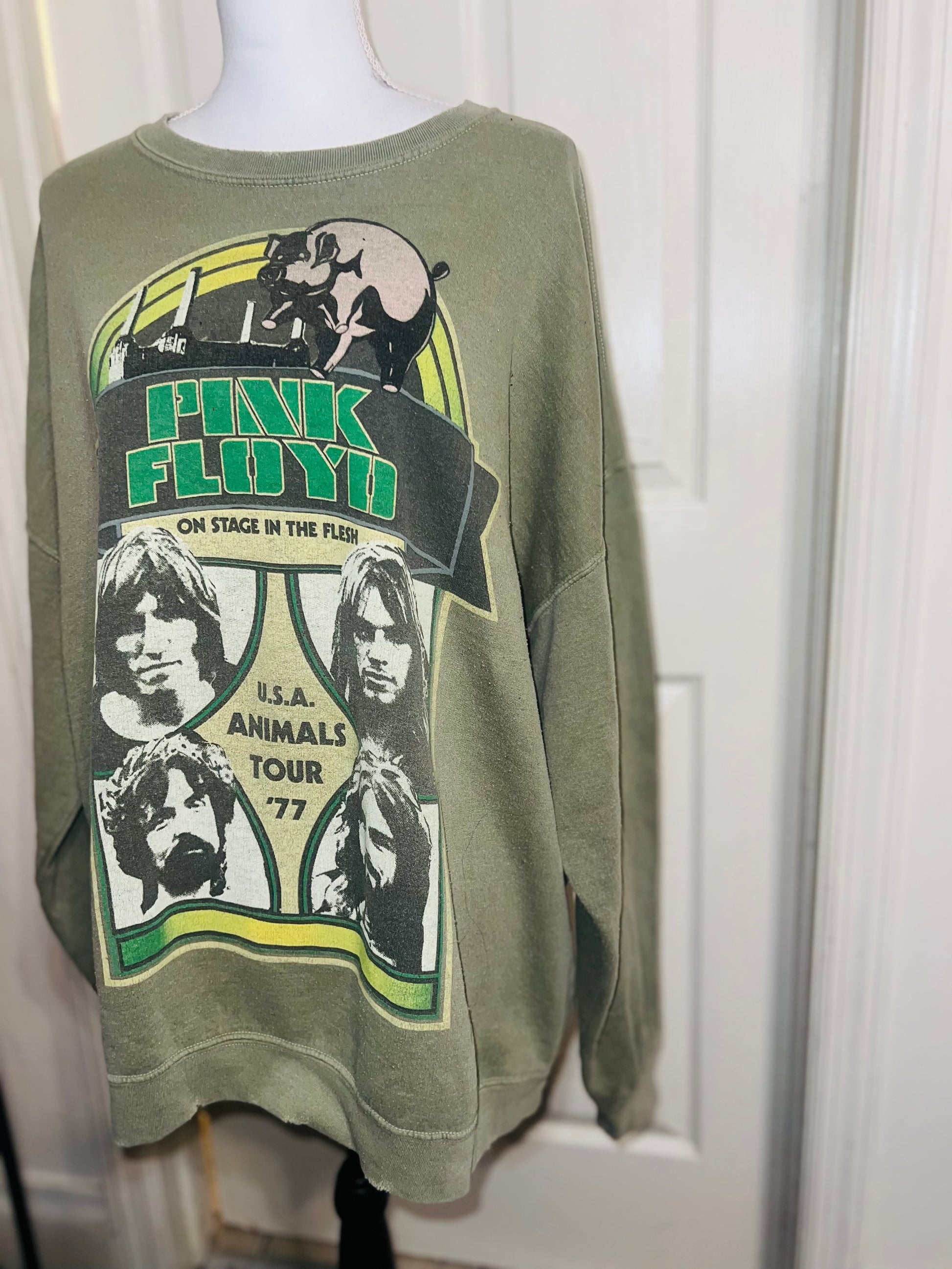 This is a preorder. Please allow extra processing time for shipping. A green Pink Floyd Animals North American 1977 Tour sweatshirt. Oversized, OS.