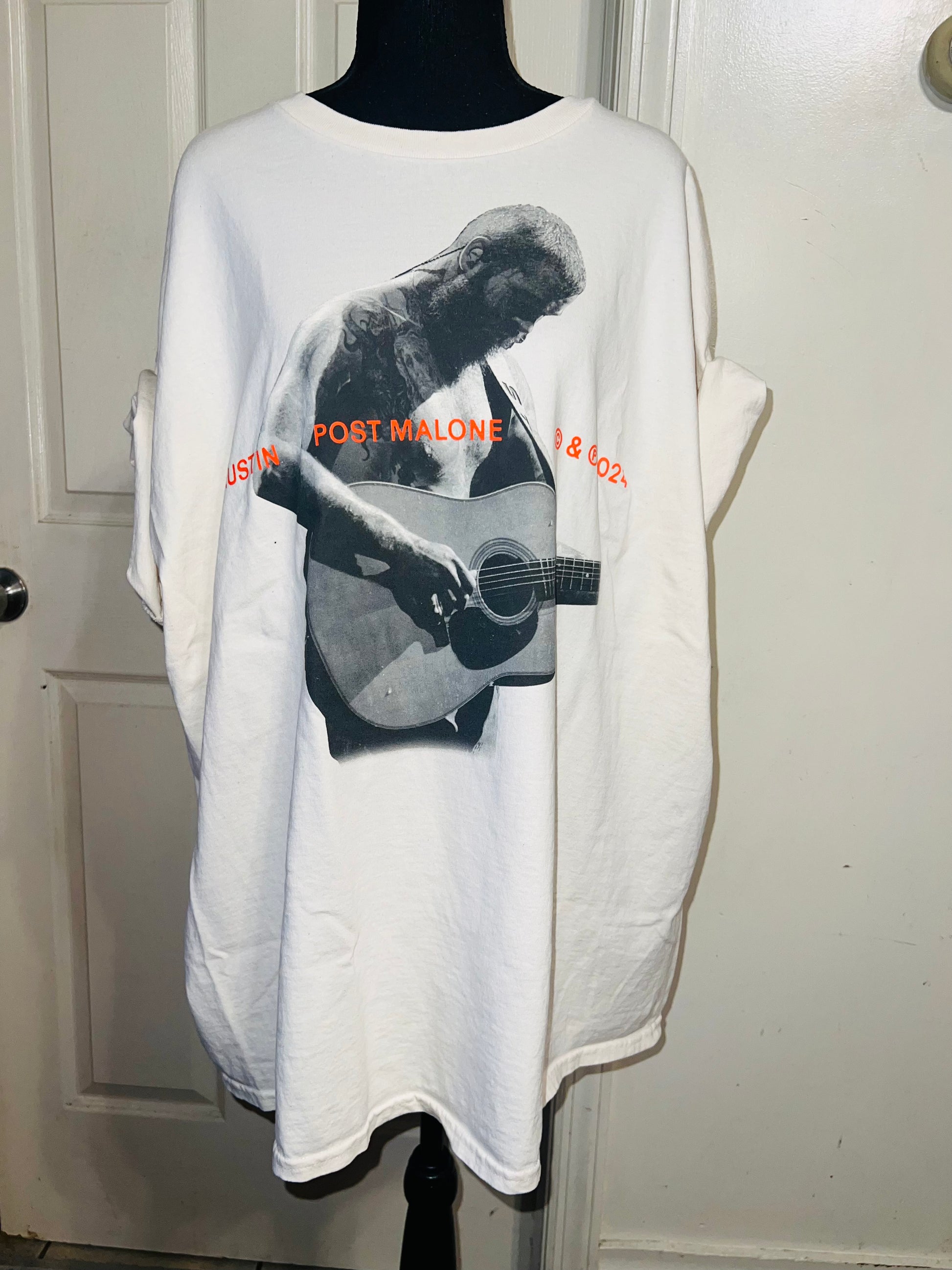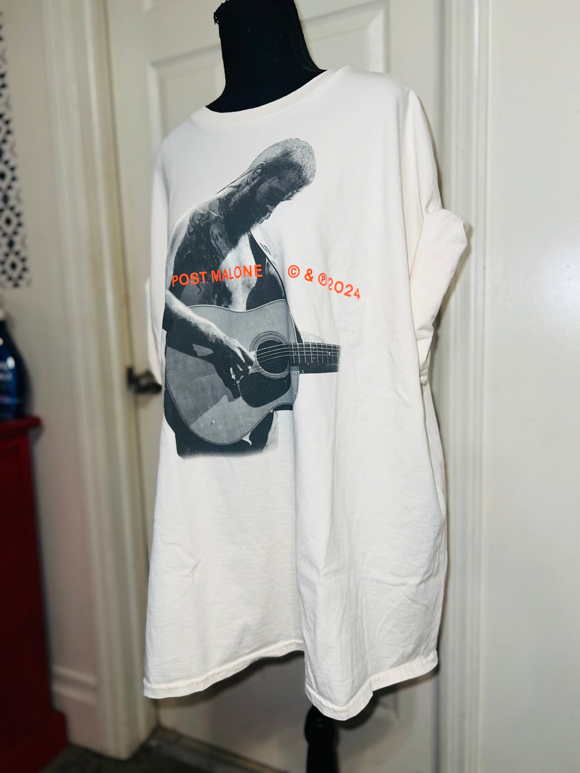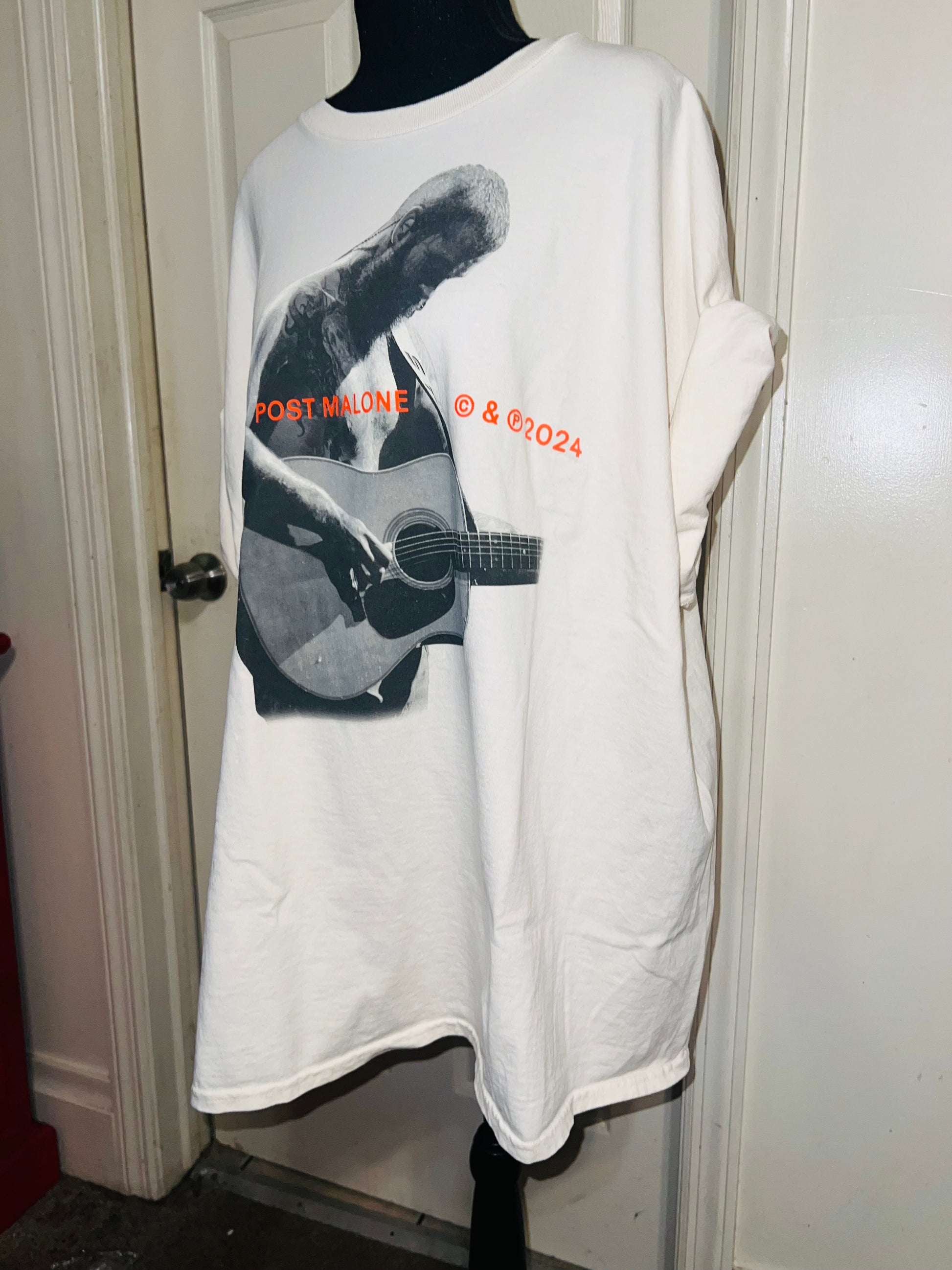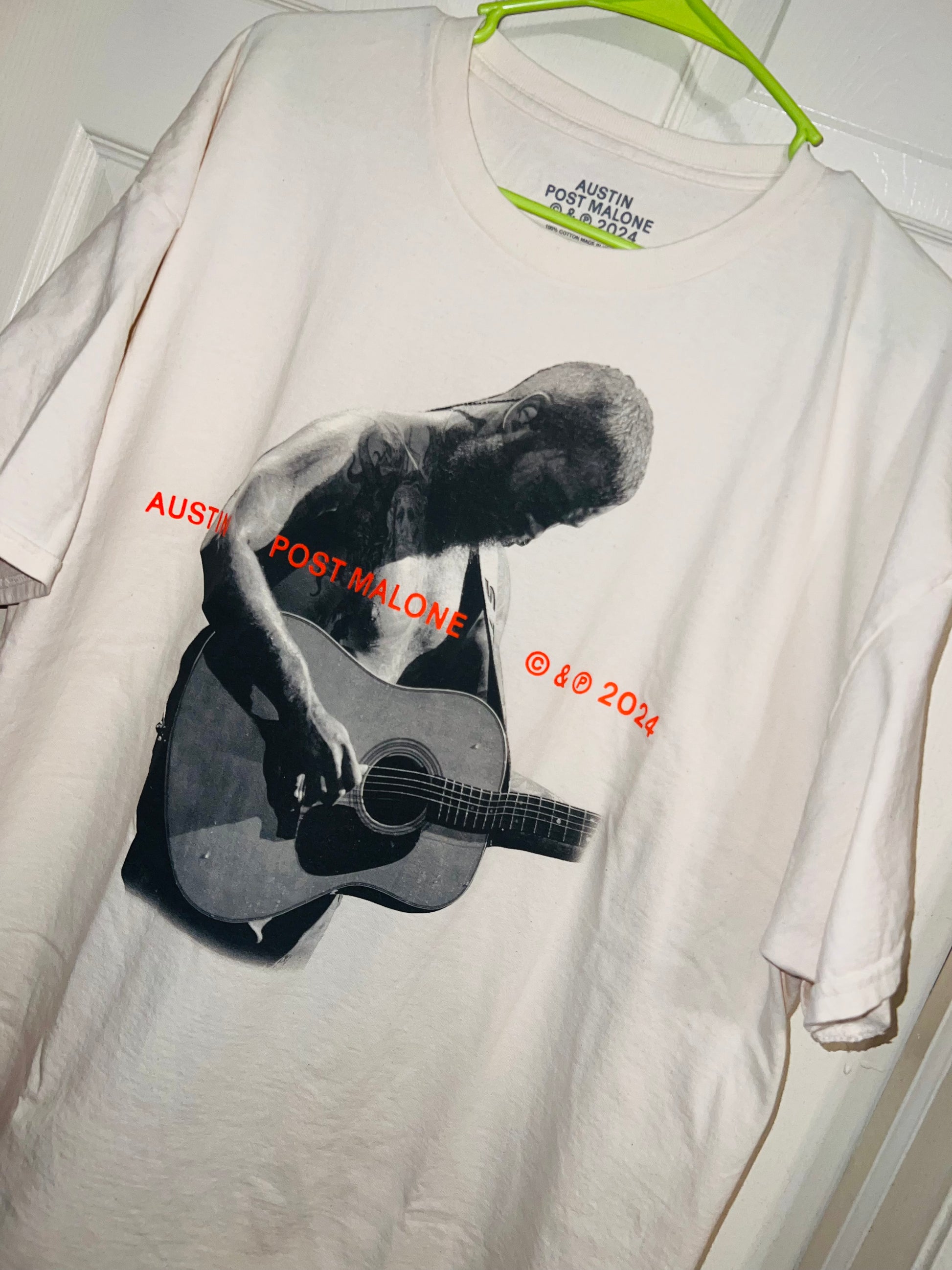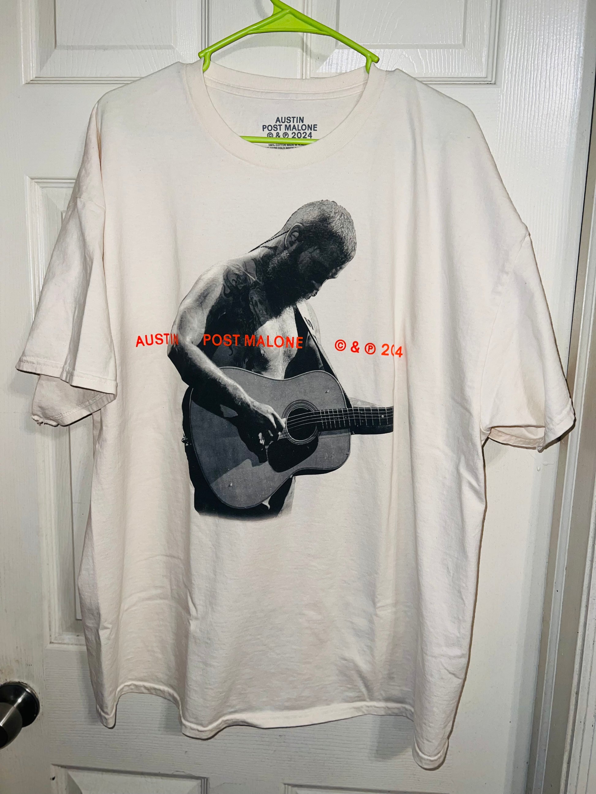 This is a preorder. Please allow extra processing time. An off white “natural” Post Malone tee with a photo of him playing the guitar on the front. Austin, 2024. One for this year! Size XL, oversized.