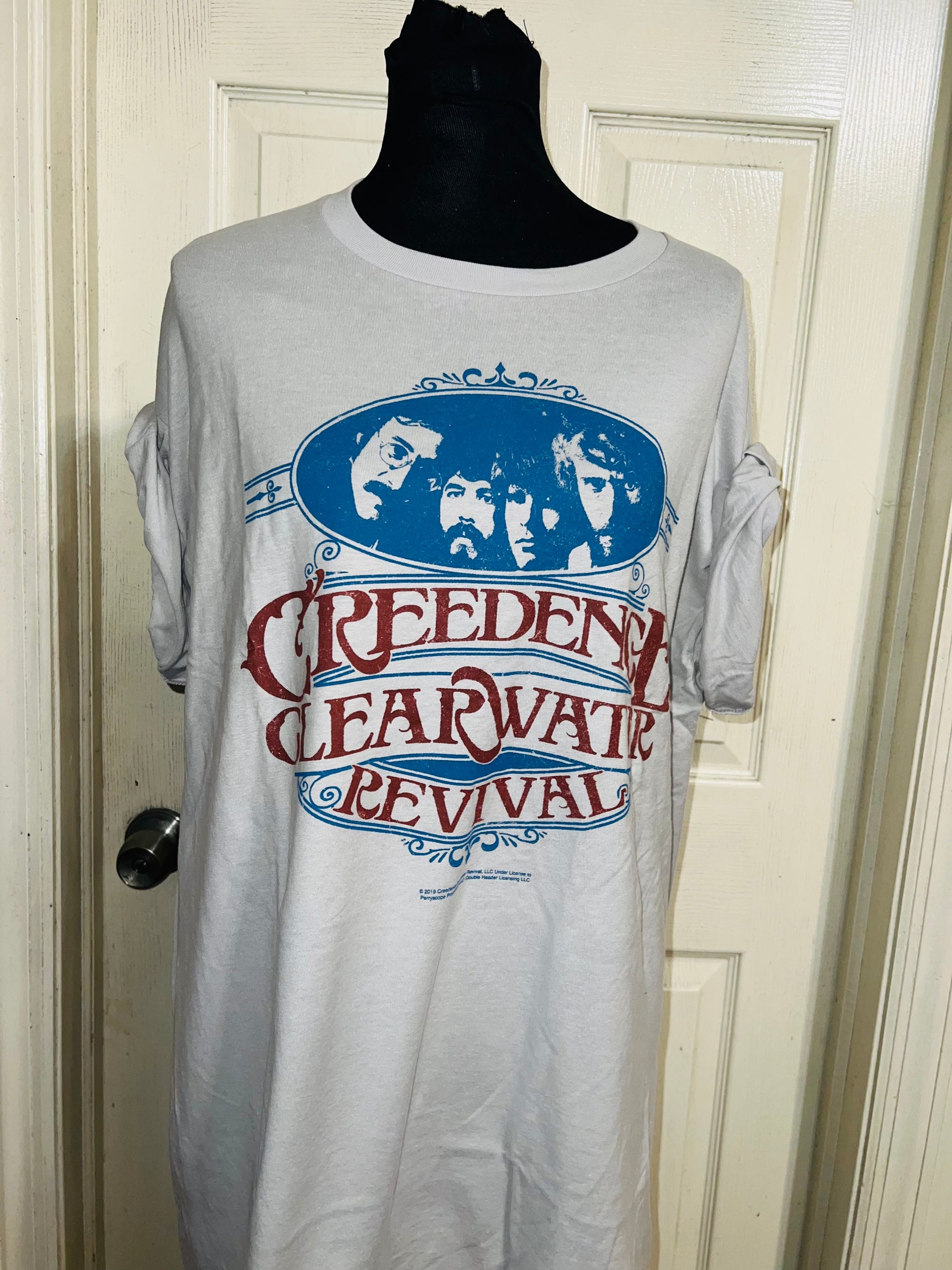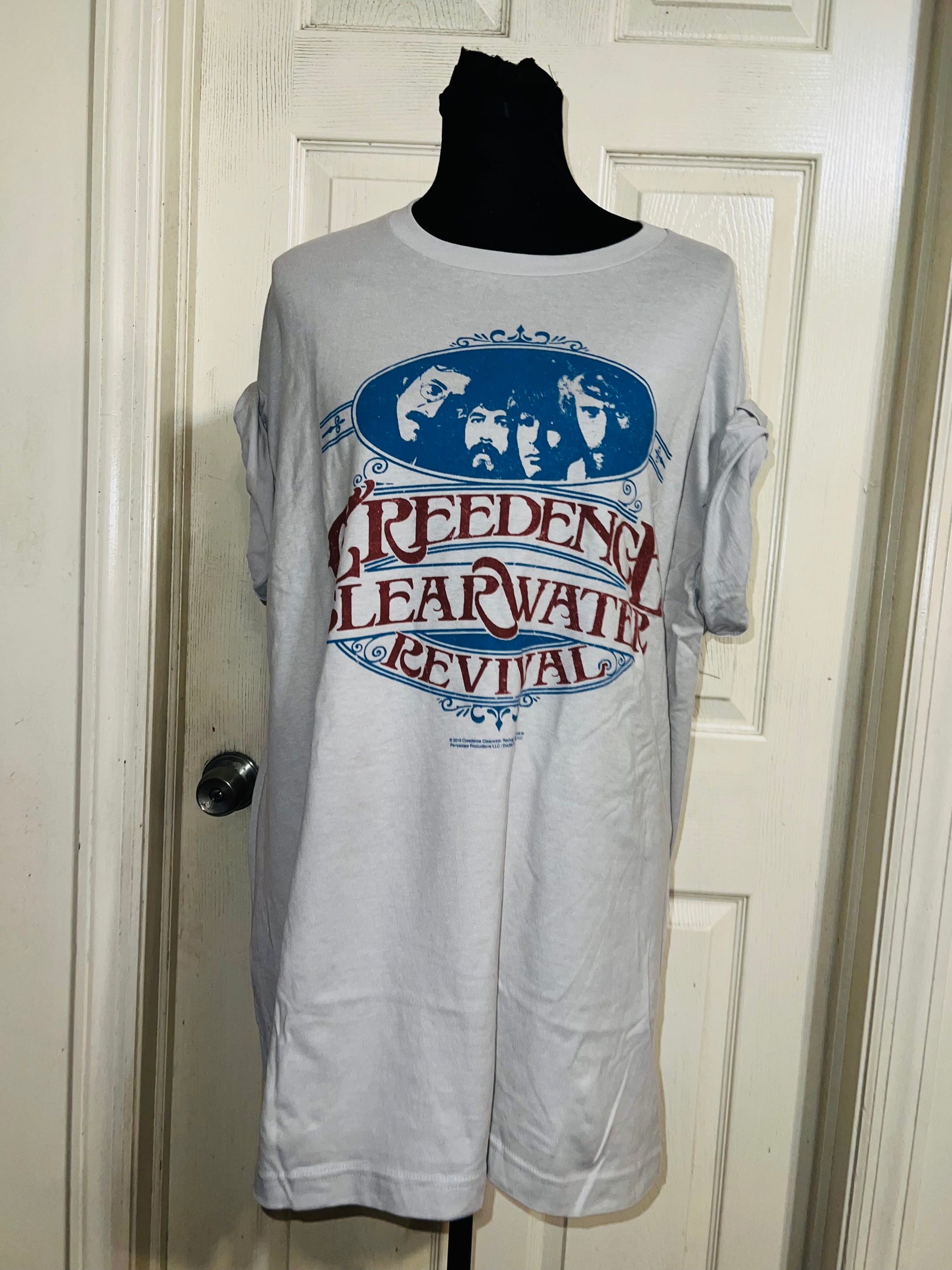 This is now a preorder. Please allow extra processing time. A grey Creedence Clearwater Revival tee with the band on the front in their signature logo. Size L/XL, oversized.