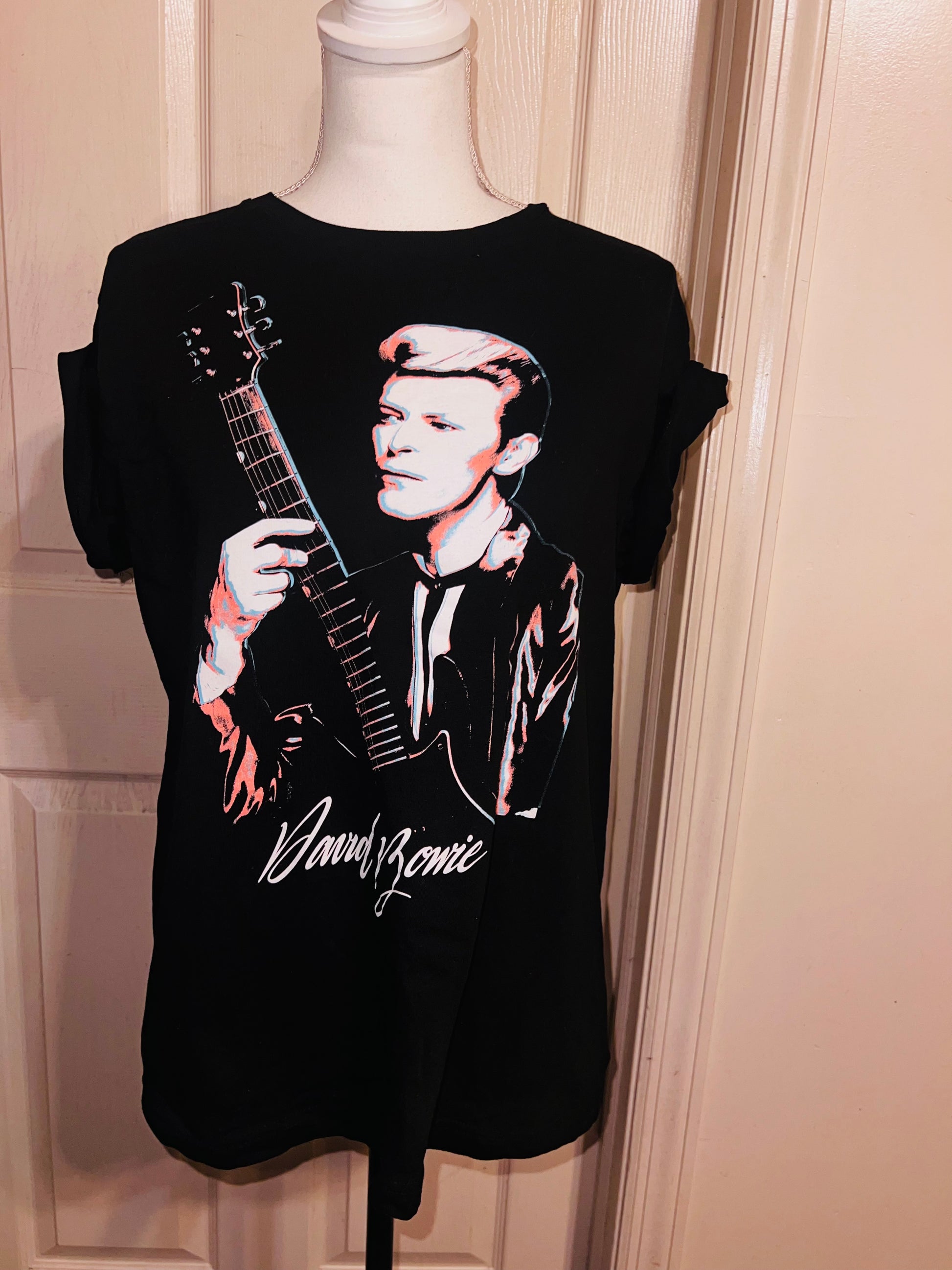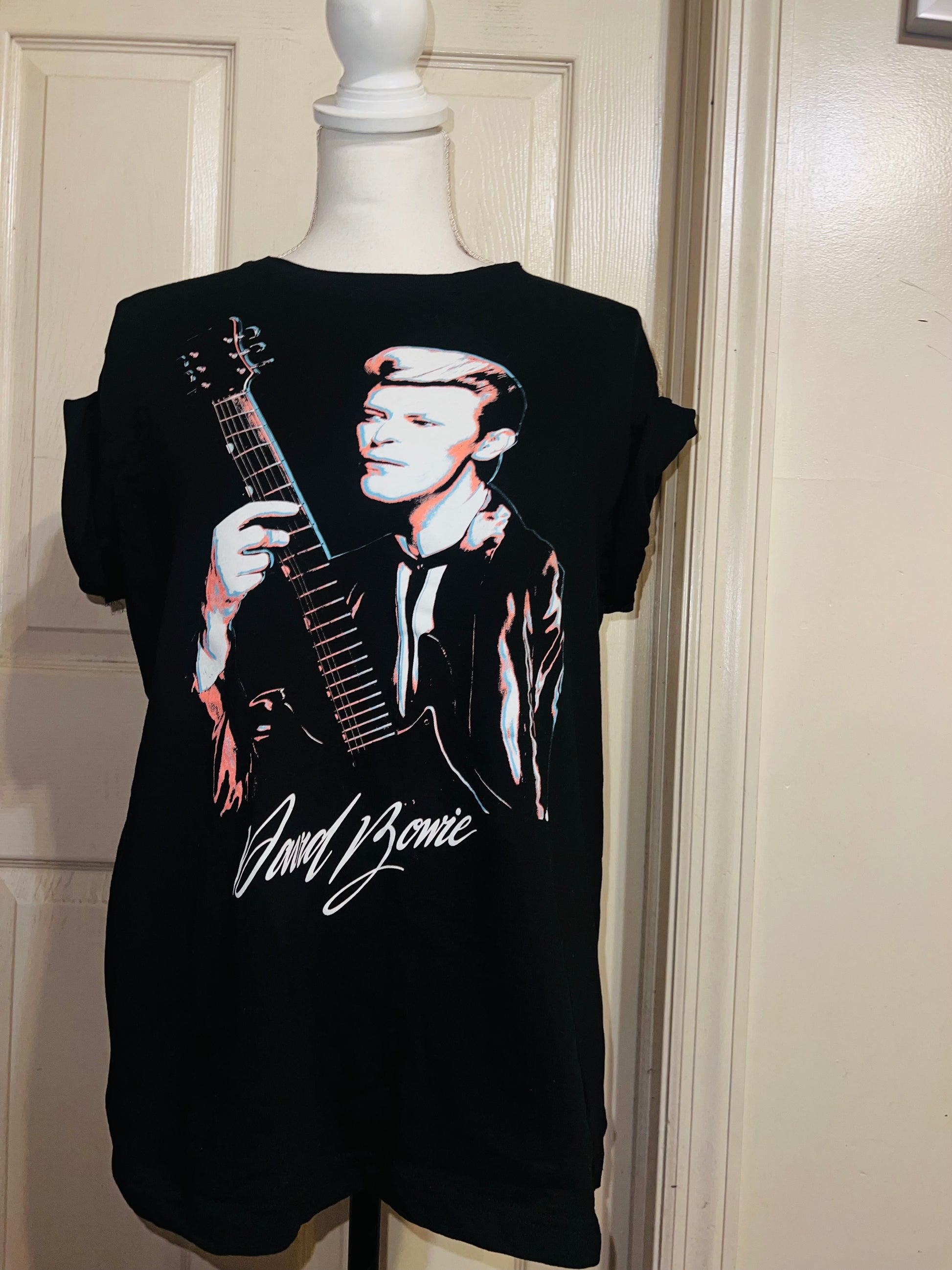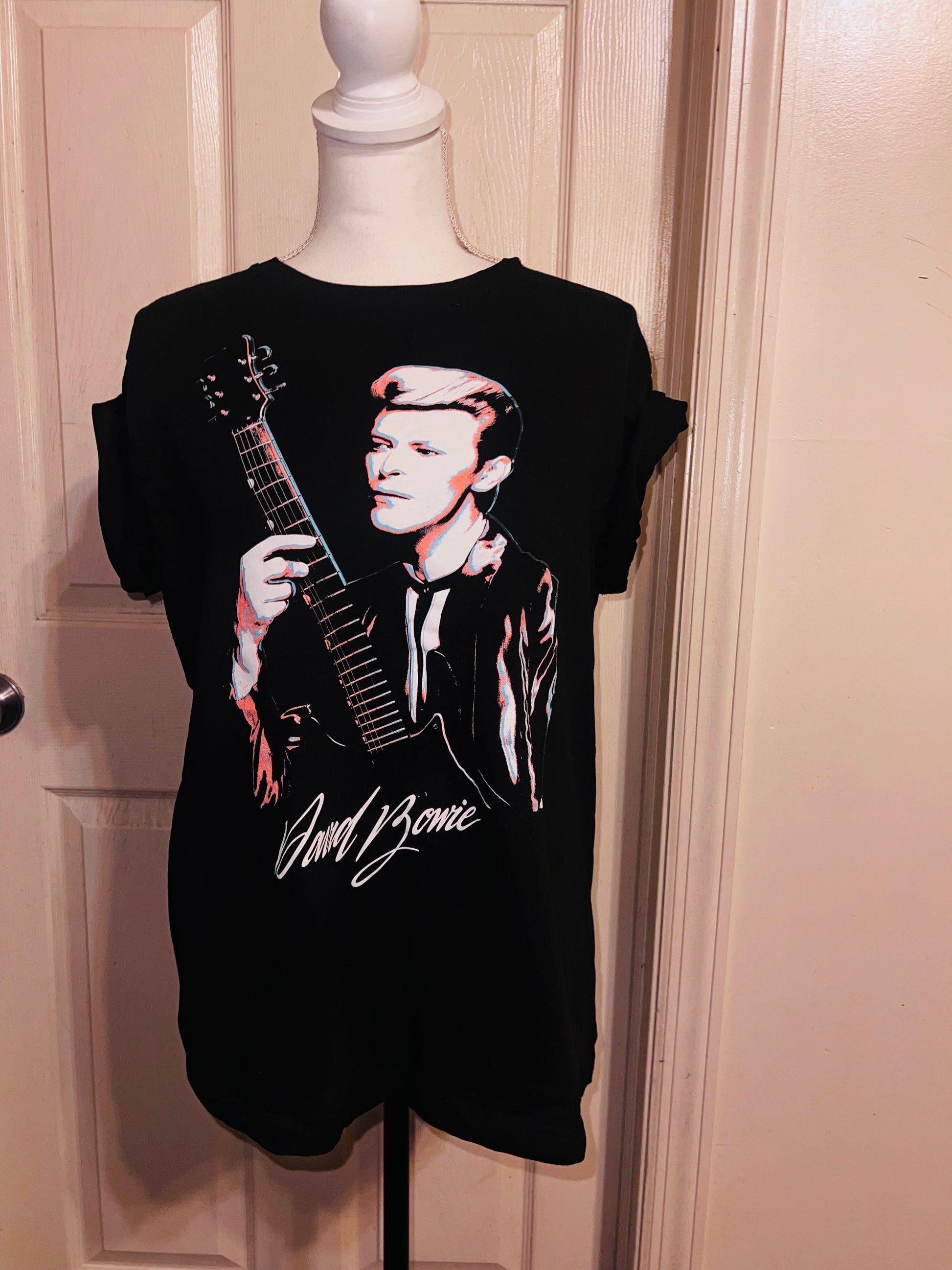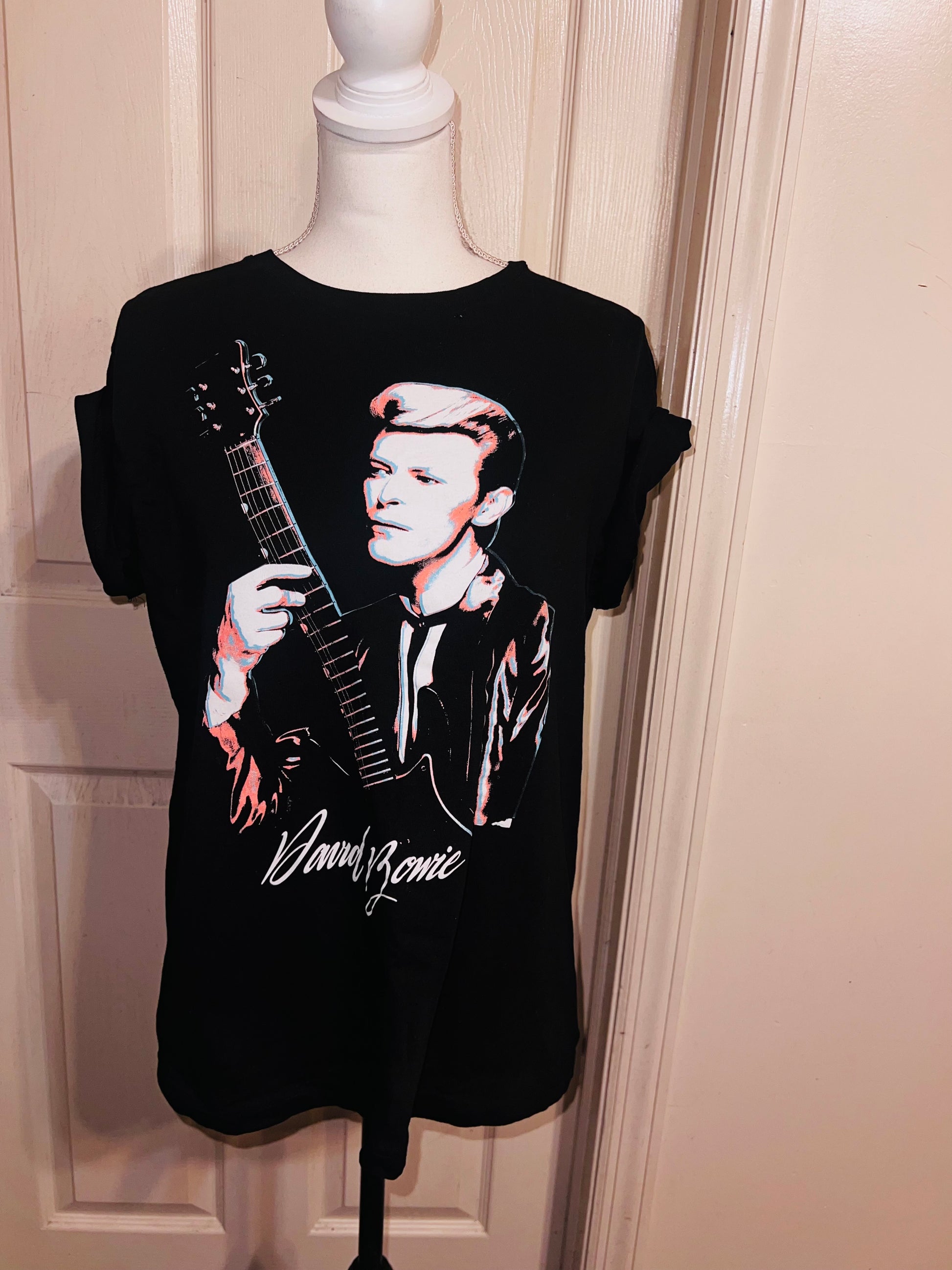 A black David Bowie tee, marked medium- fits a bit shorter and more like a small.