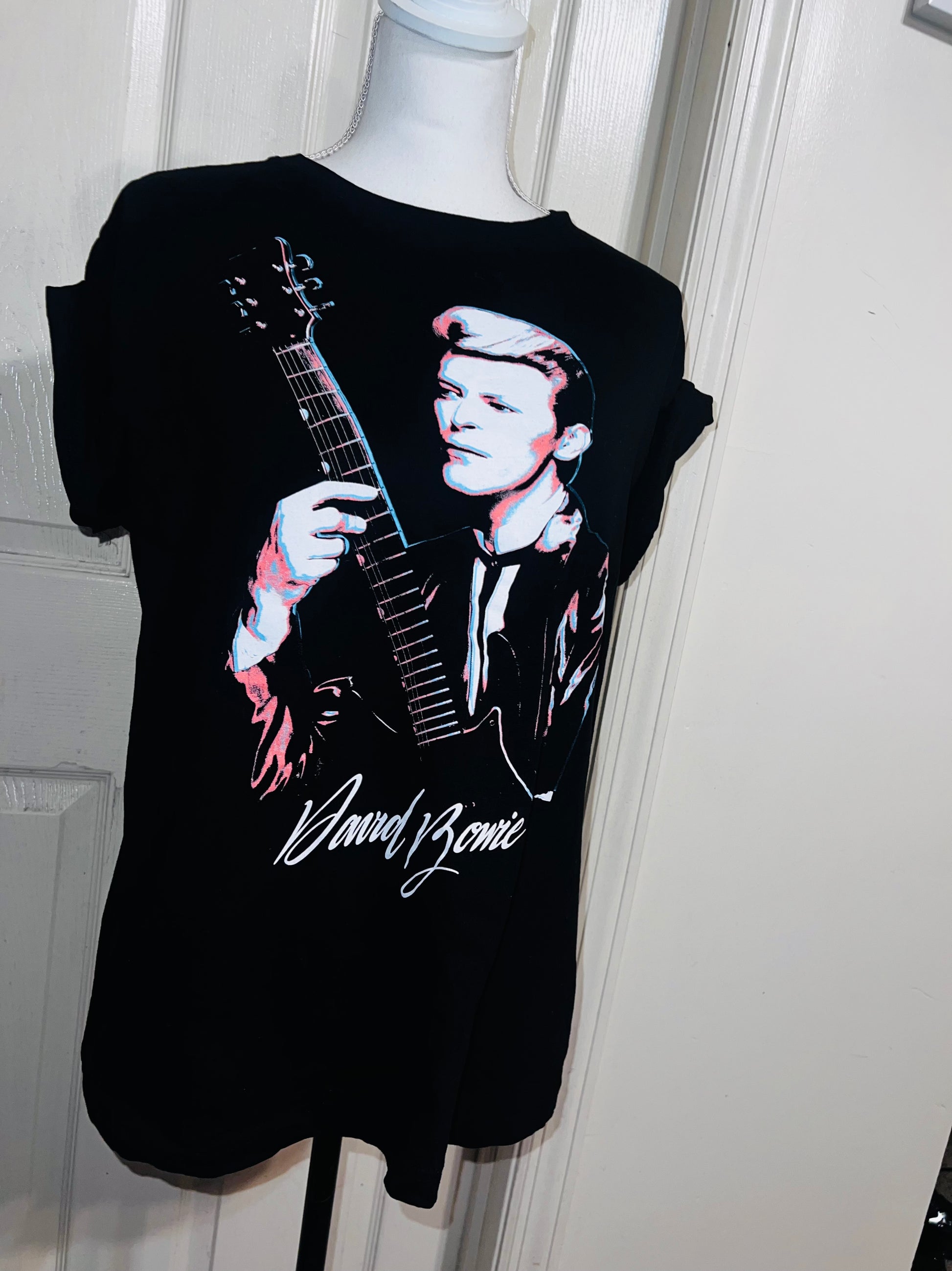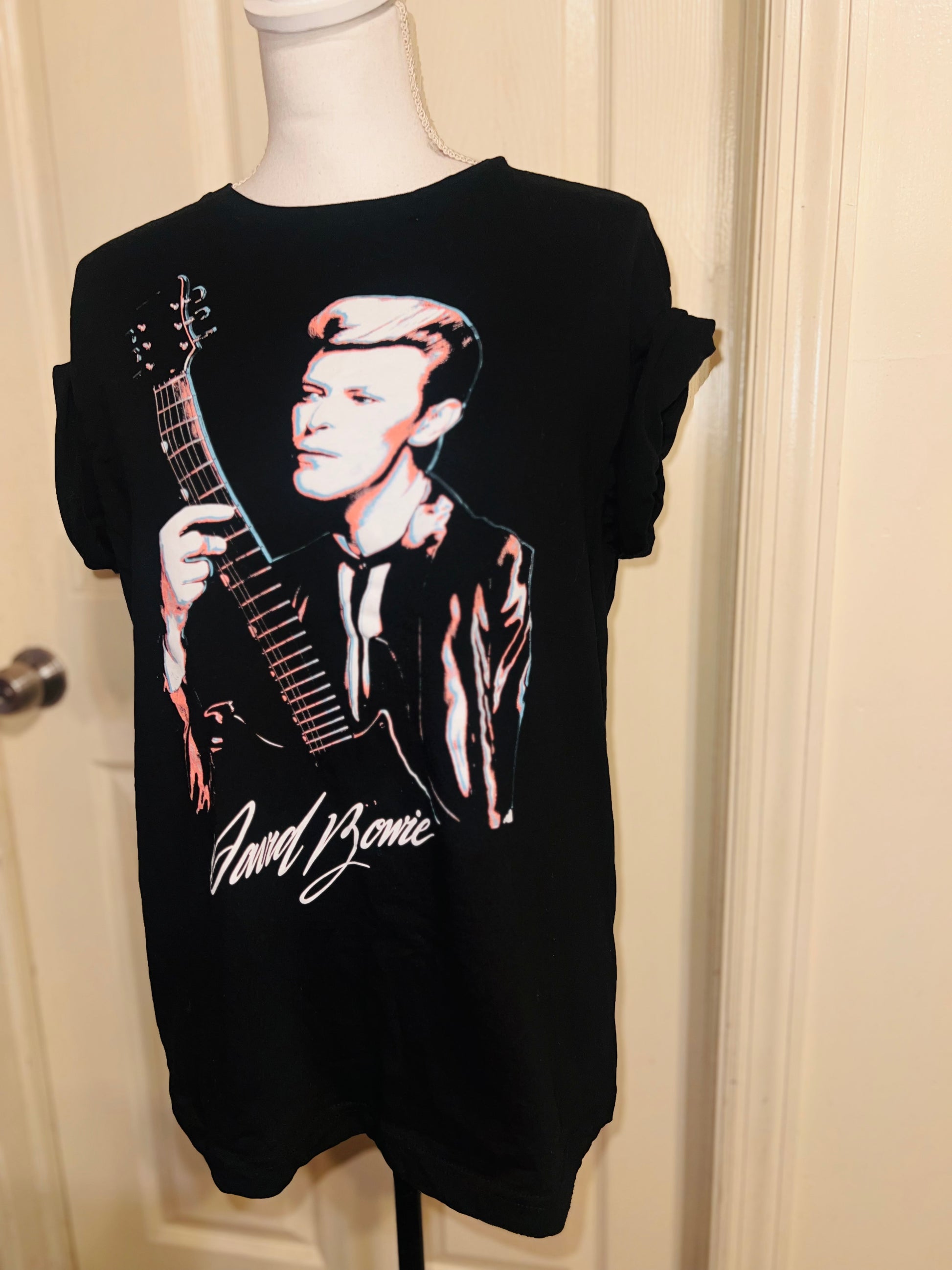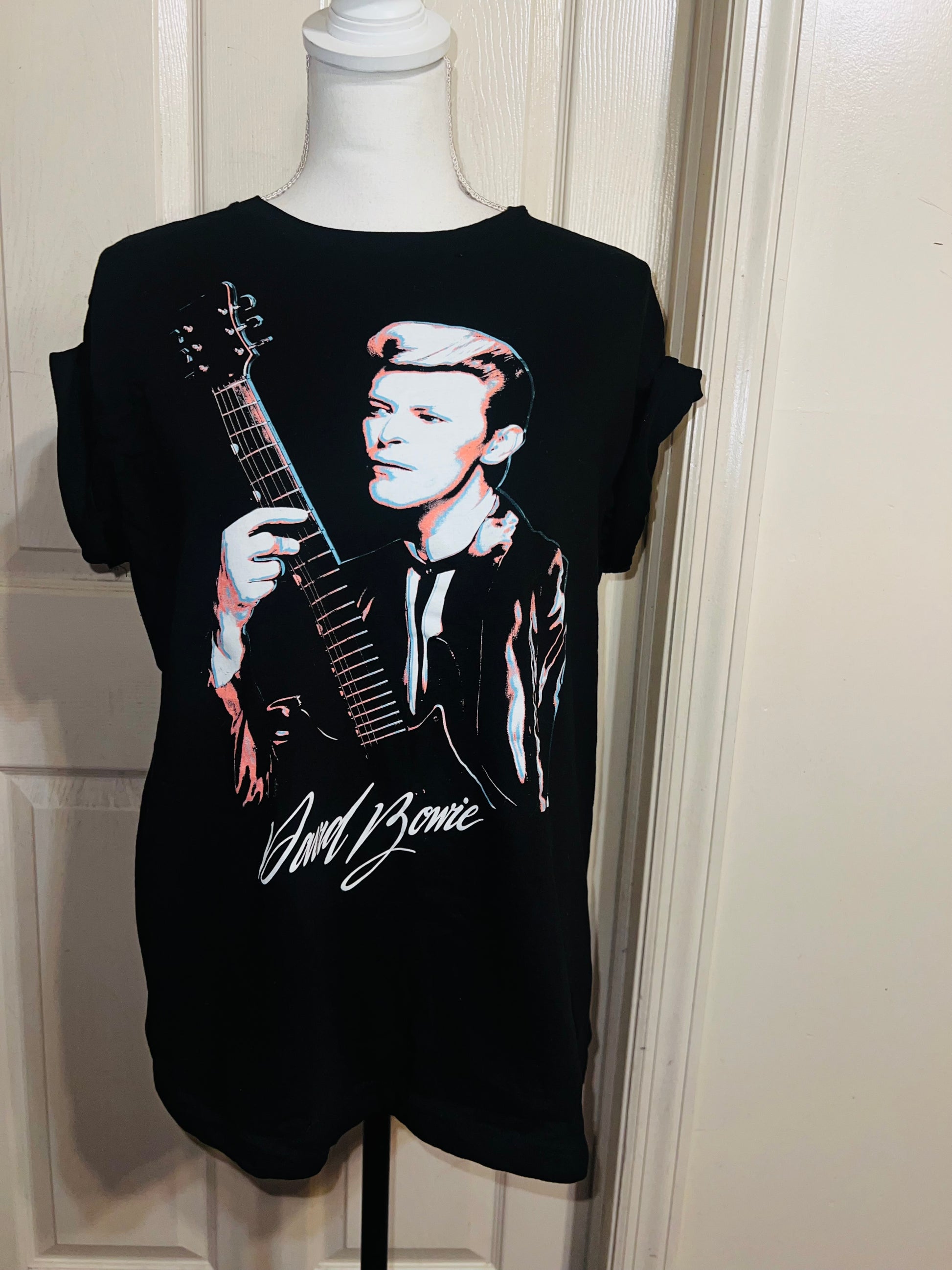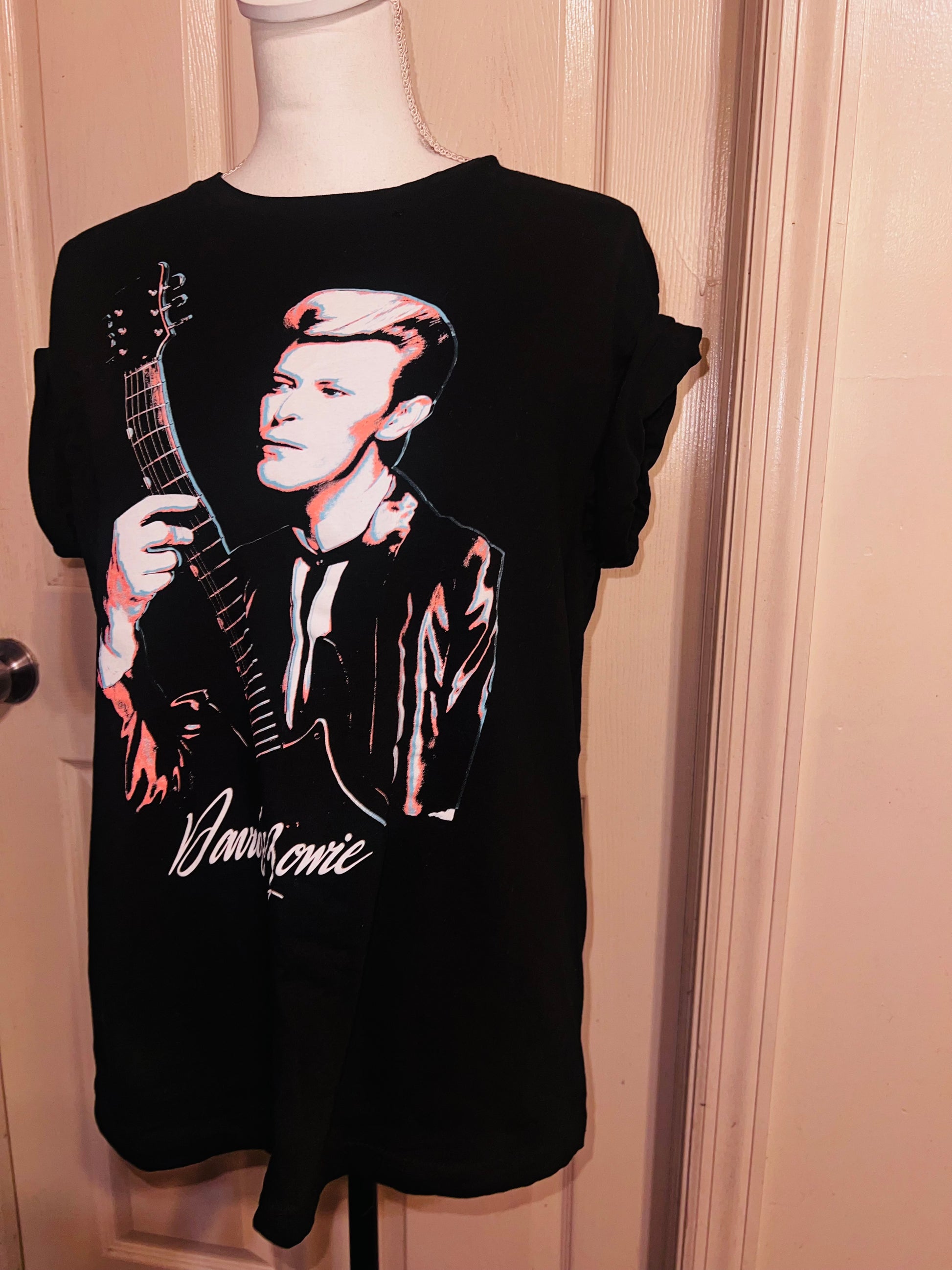 A black David Bowie tee, marked medium- fits a bit shorter and more like a small.