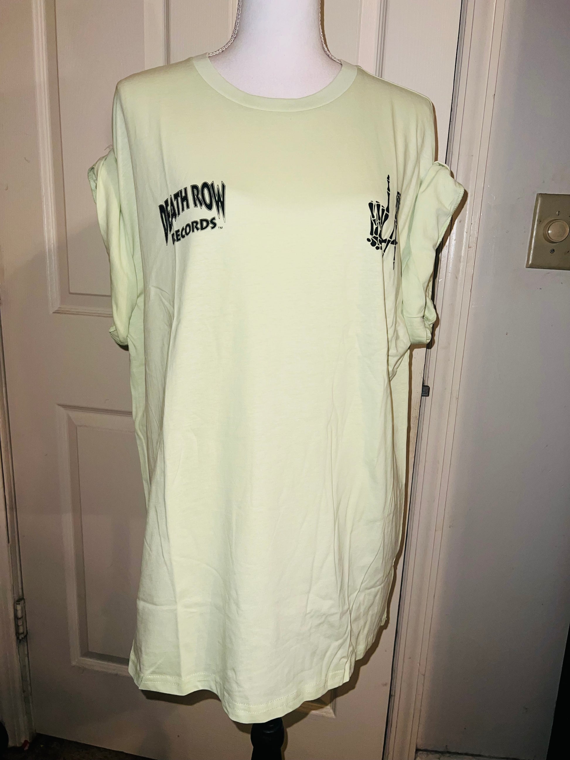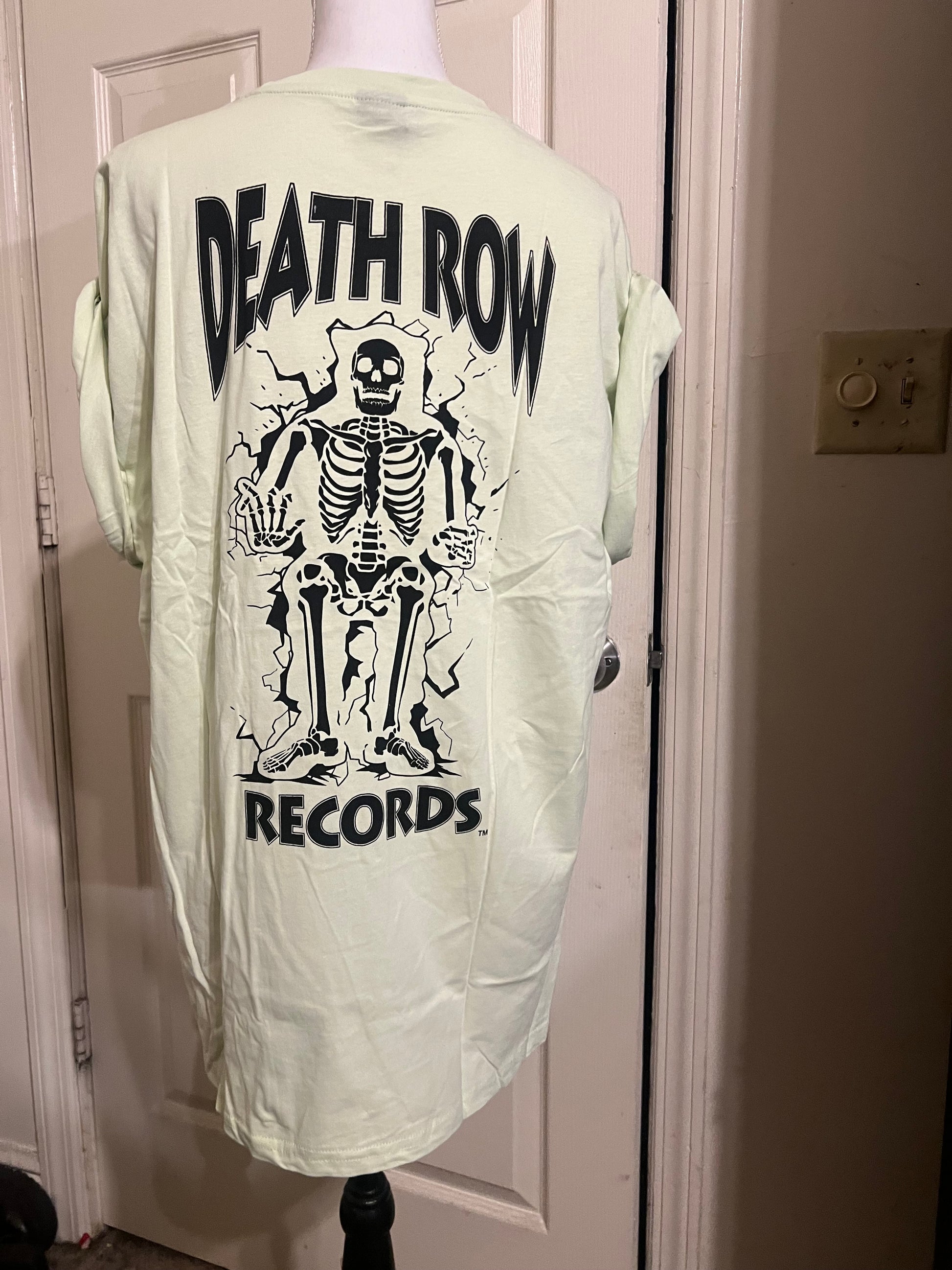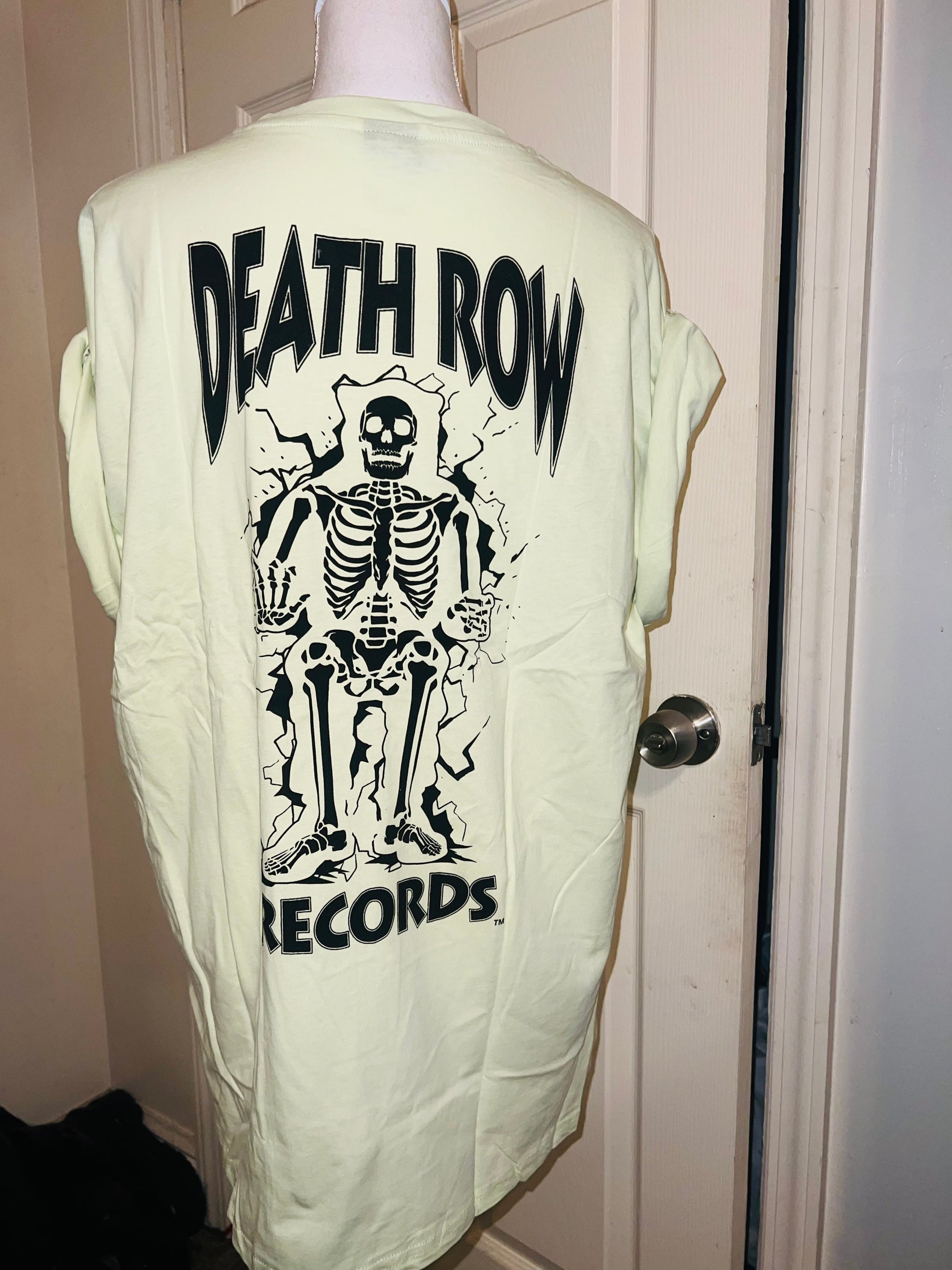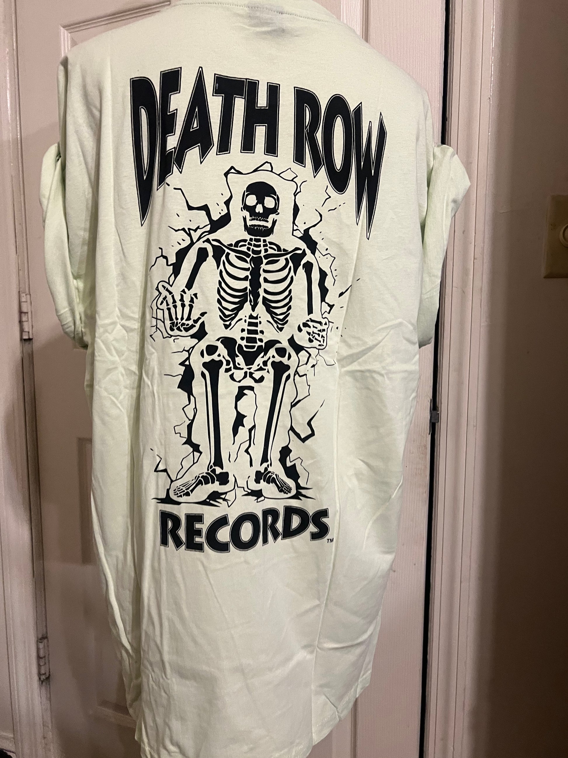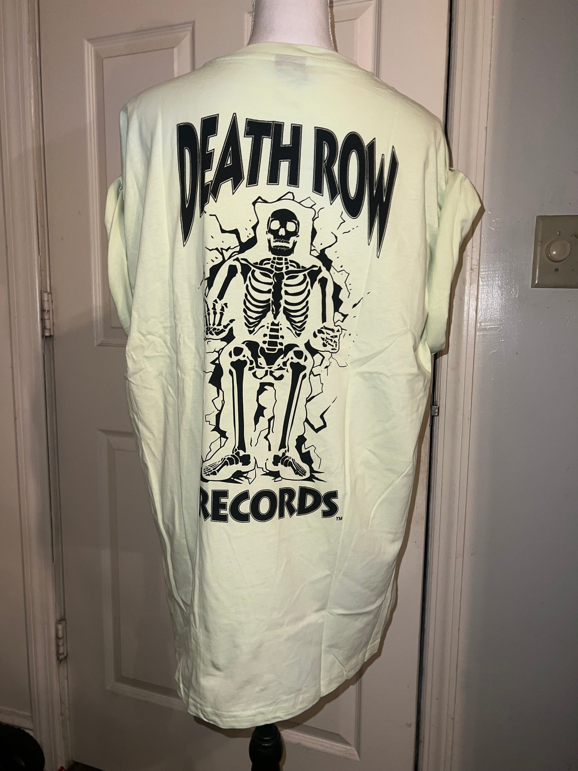 This sold super quick, it is now a pre-order. Please allow extra time for processing. A pretty pale green (it’s brighter in person) double sided Death Roe Records tee. Size L oversized.