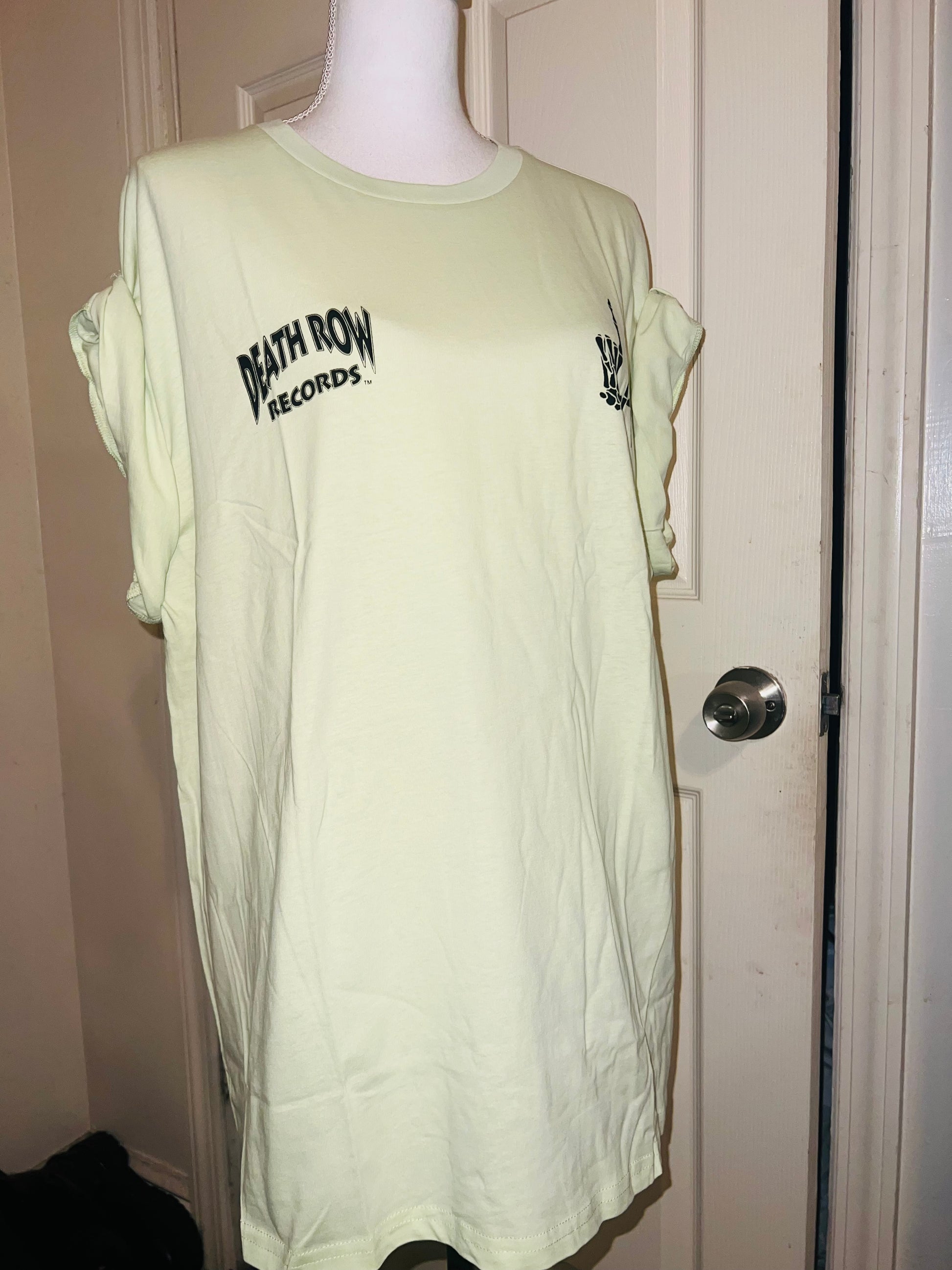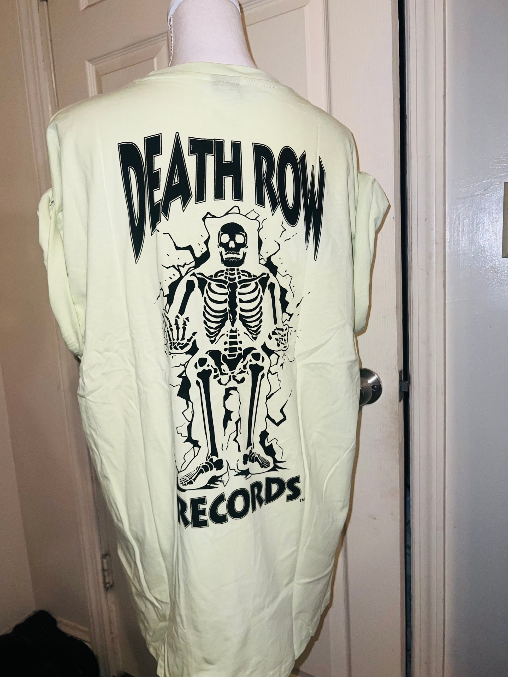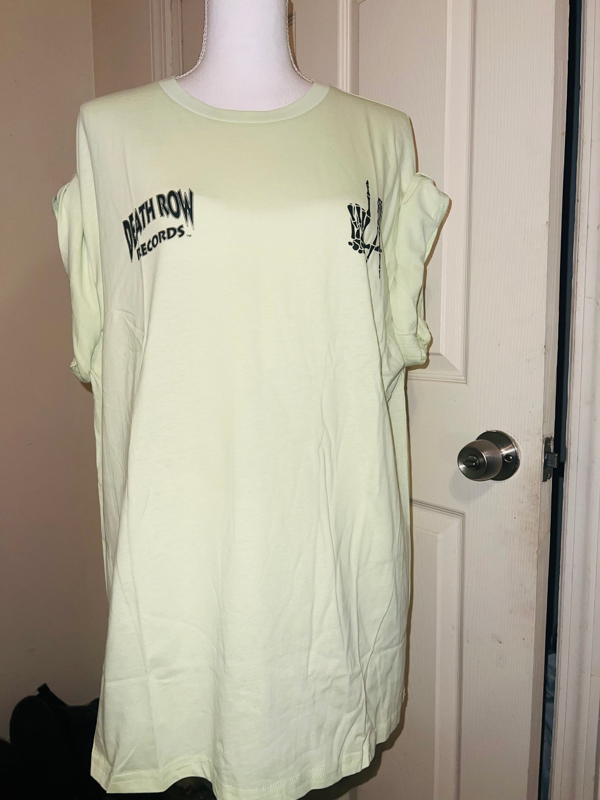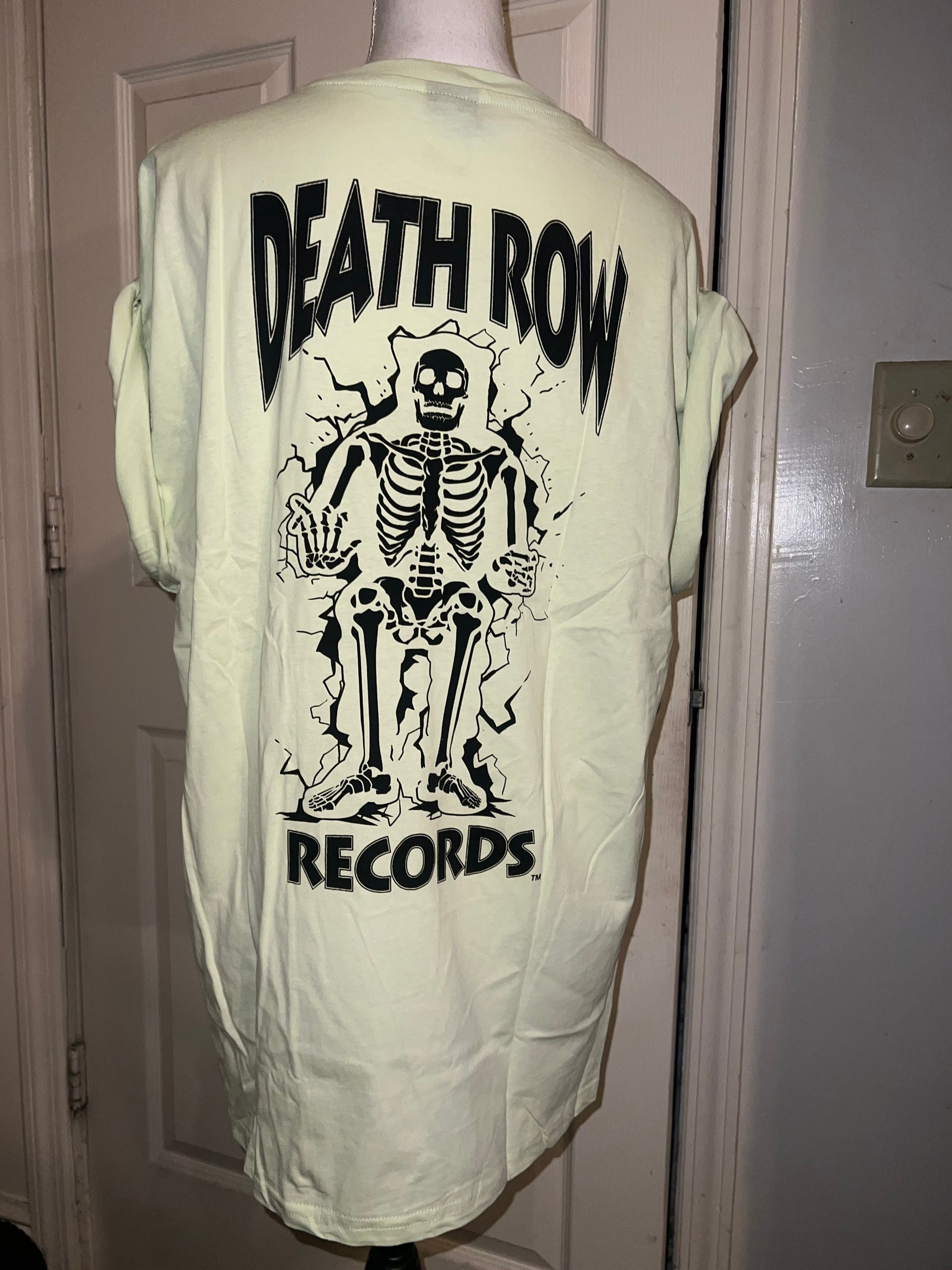 This sold super quick, it is now a pre-order. Please allow extra time for processing. A pretty pale green (it’s brighter in person) double sided Death Roe Records tee. Size L oversized.