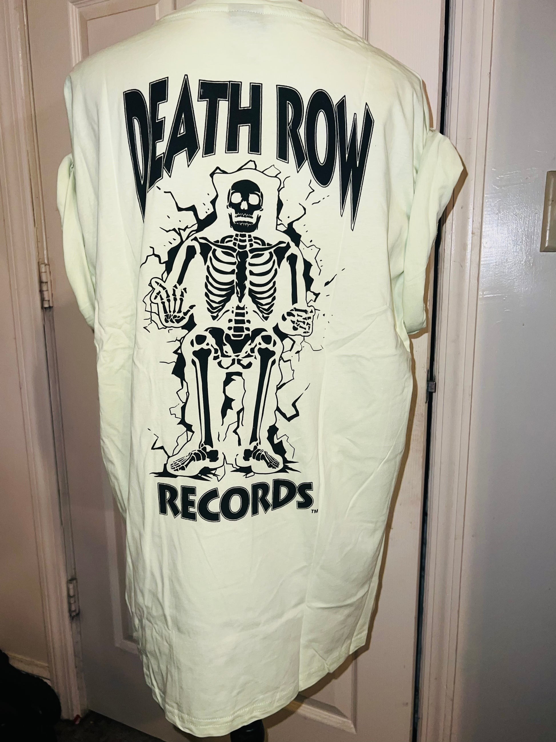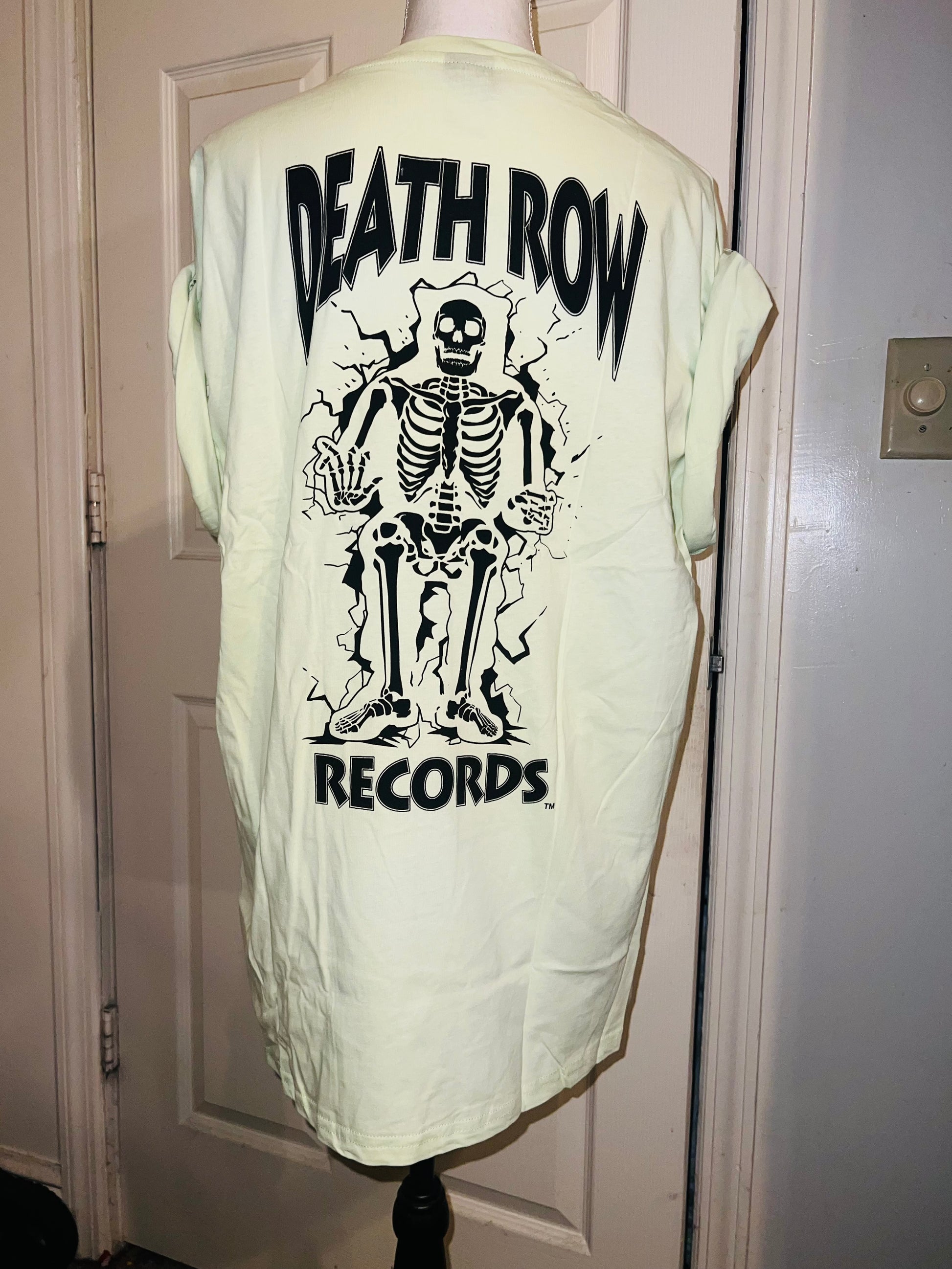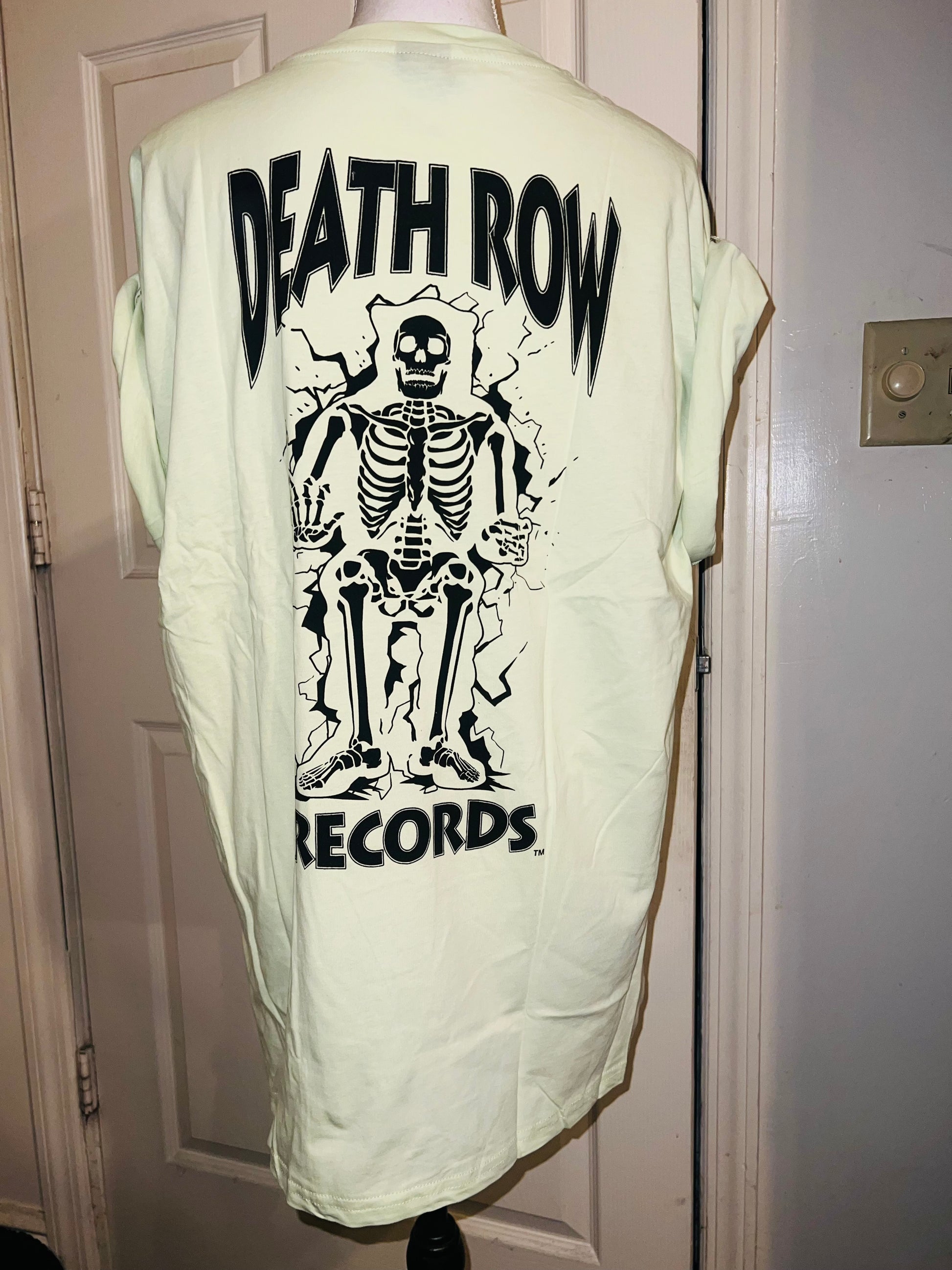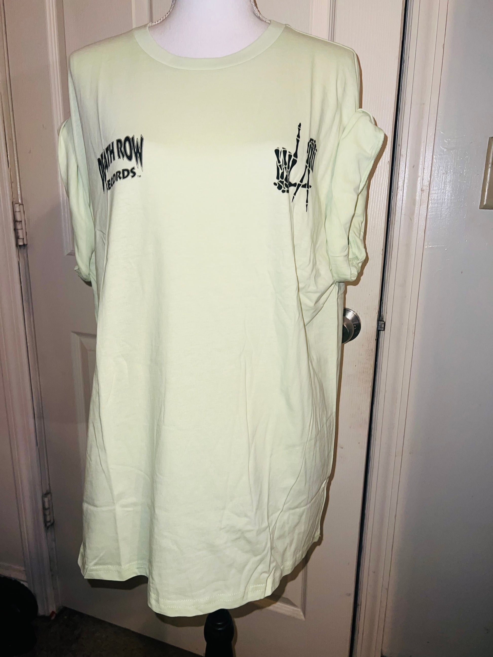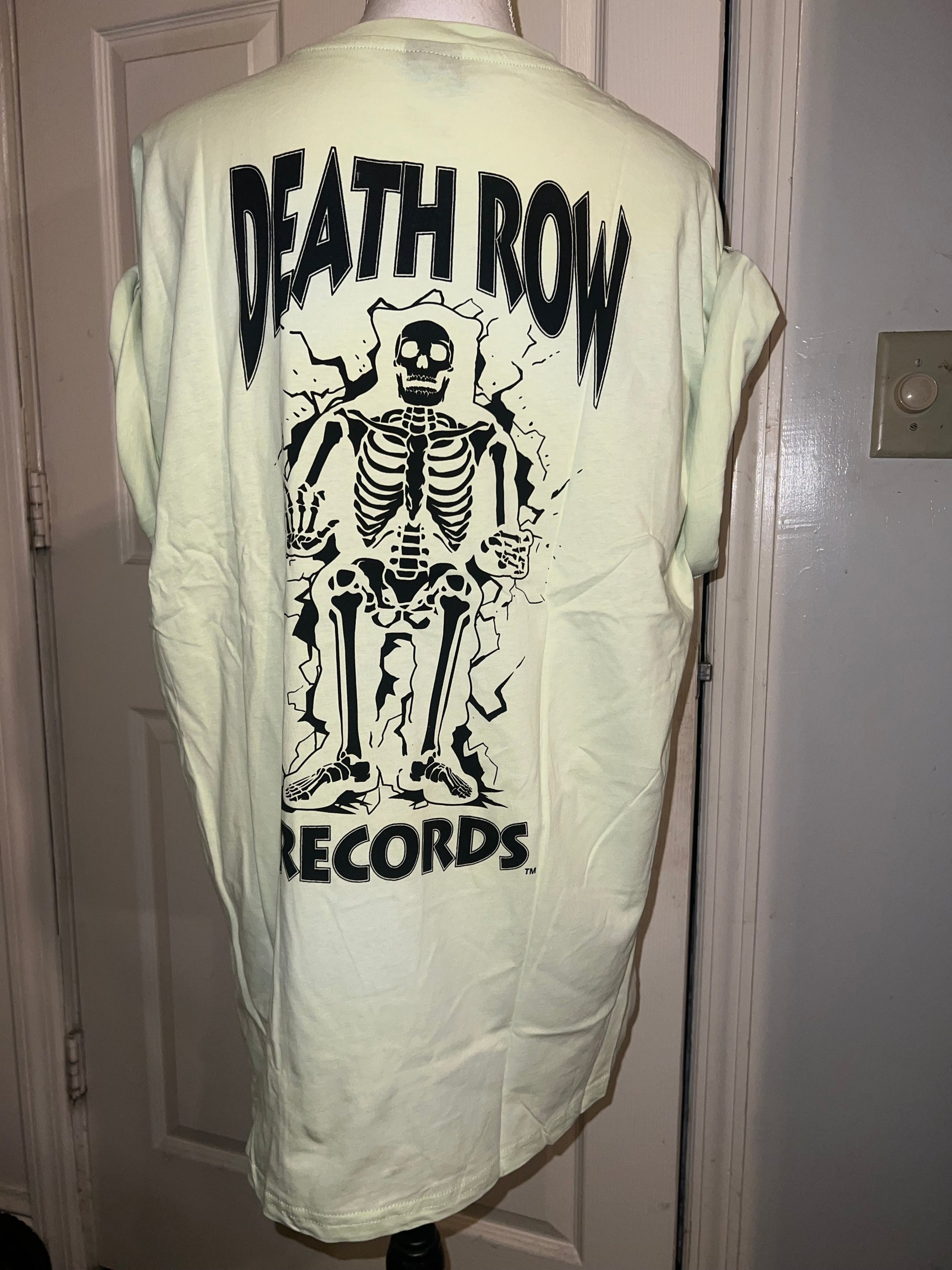 This sold super quick, it is now a pre-order. Please allow extra time for processing. A pretty pale green (it’s brighter in person) double sided Death Roe Records tee. Size L oversized.