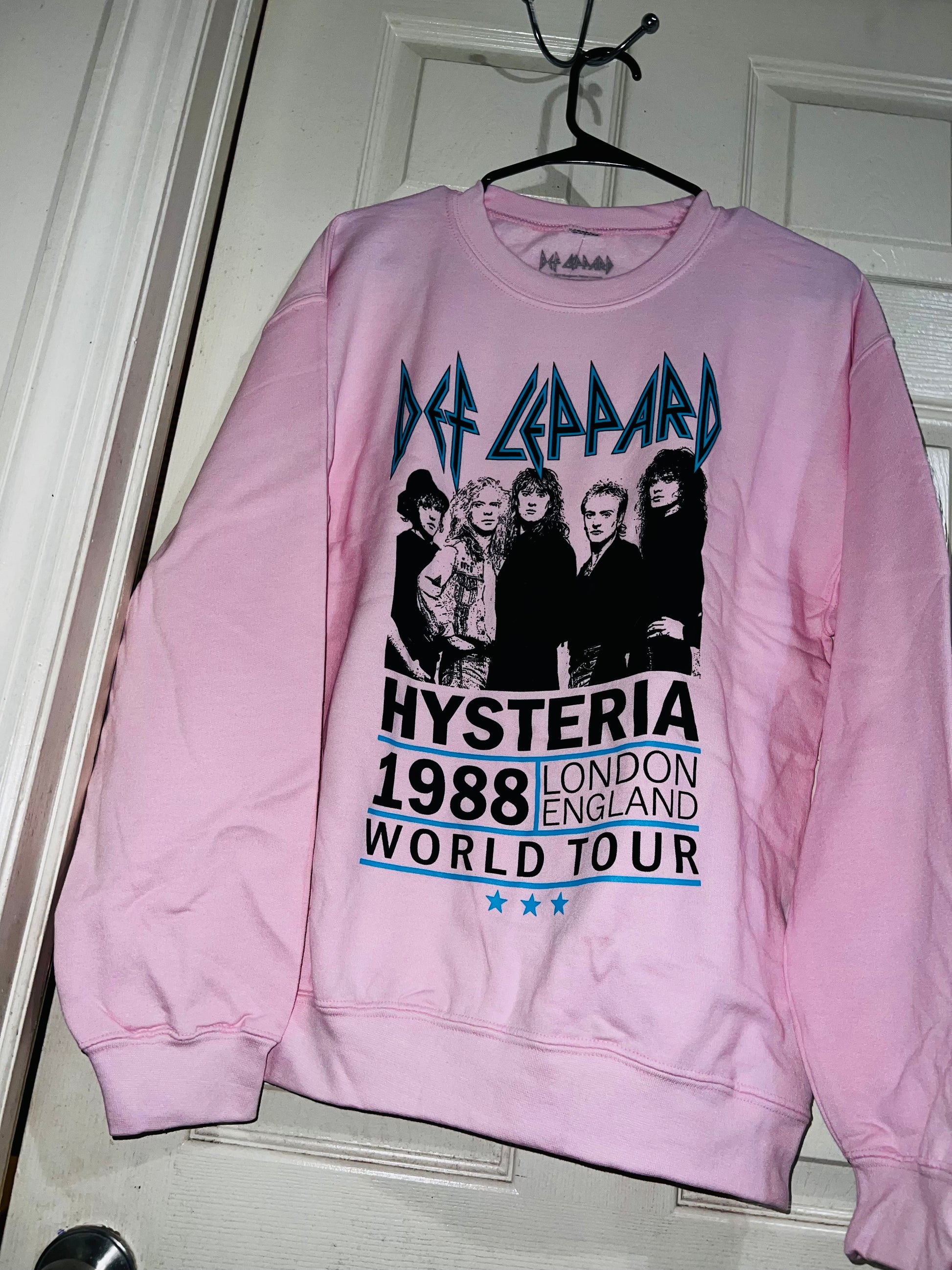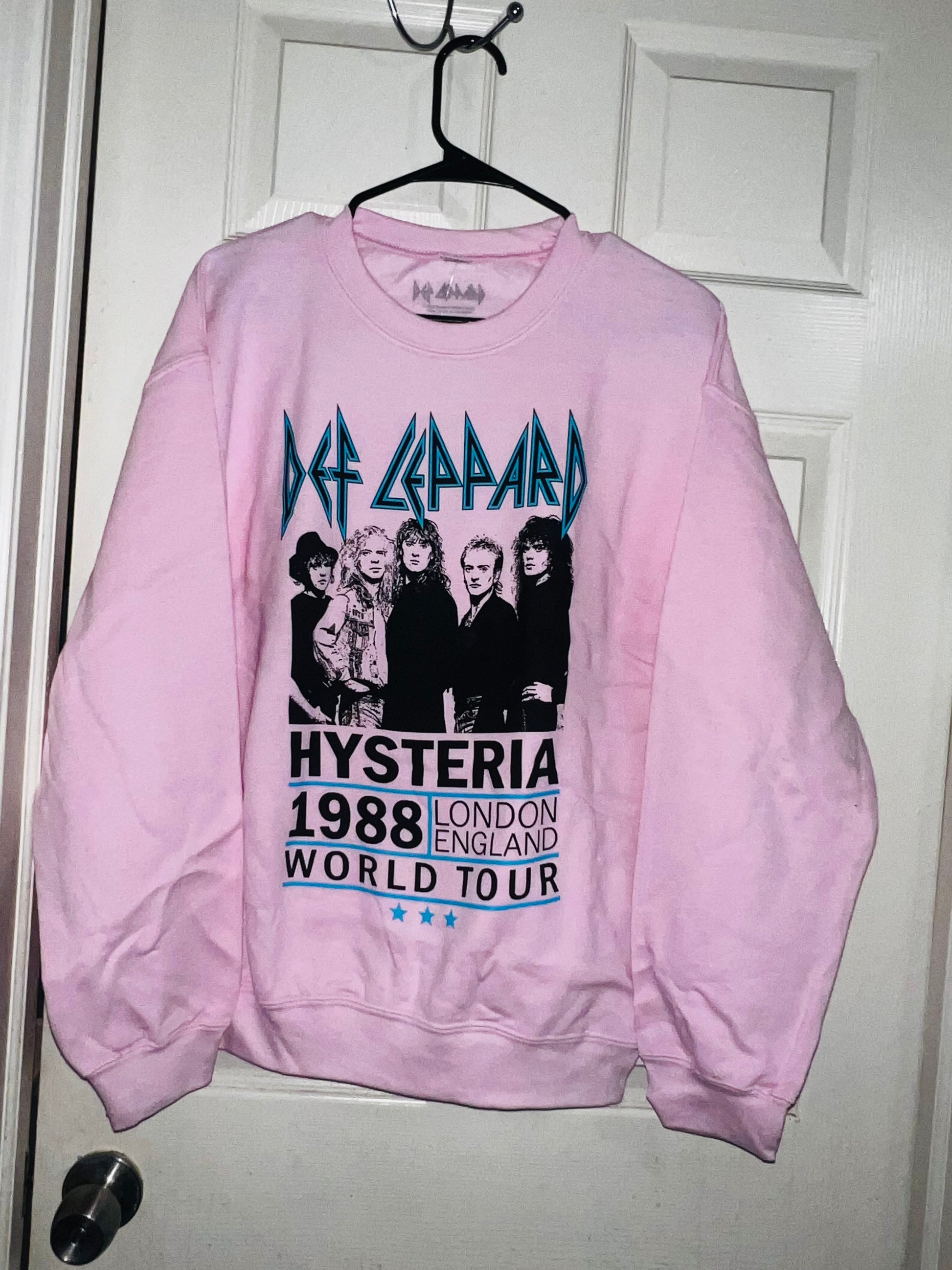 A super pale light pink Def Leppard sweatshirt. Hysteria Tour 1988 in London, England with the band on the front! Oversized and super soft/warm. Size L/XL.