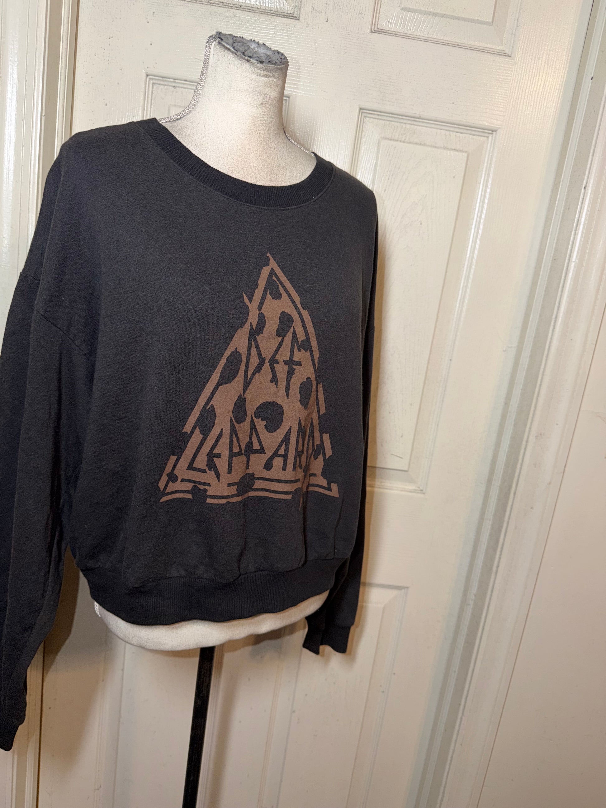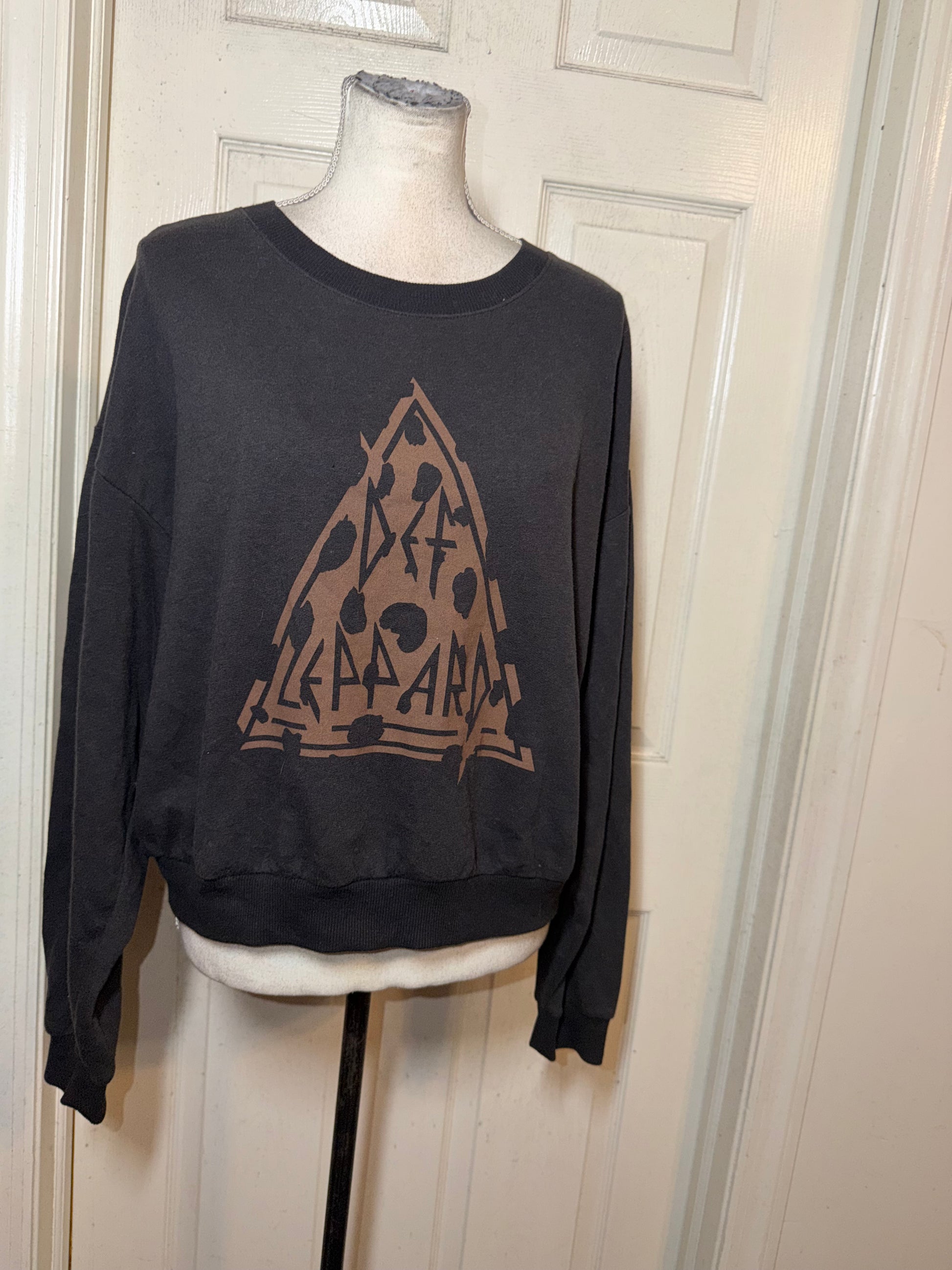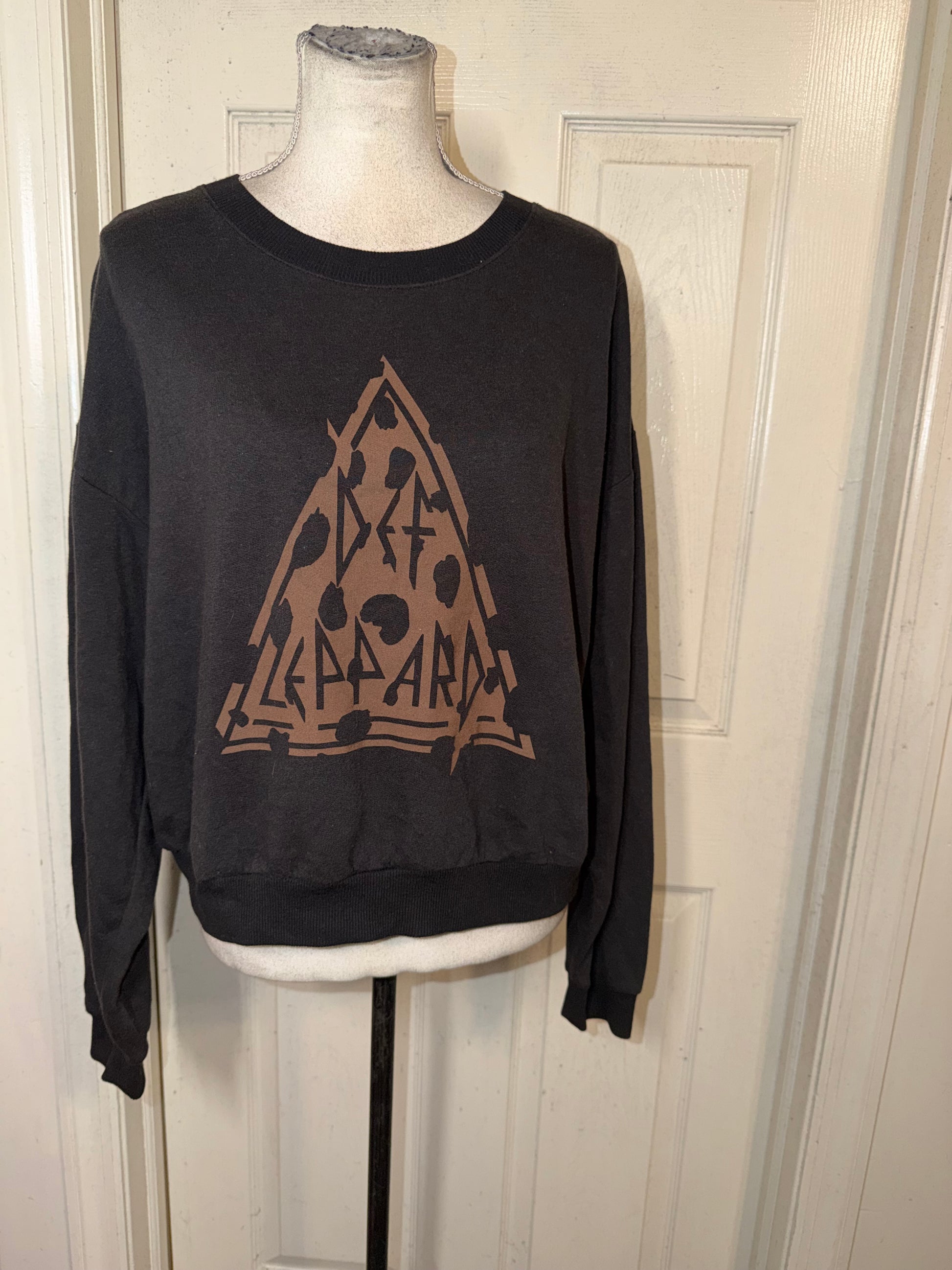 A black Def Leppard sweatshirt, it’s a shorter sorta cropped length! Oversized.