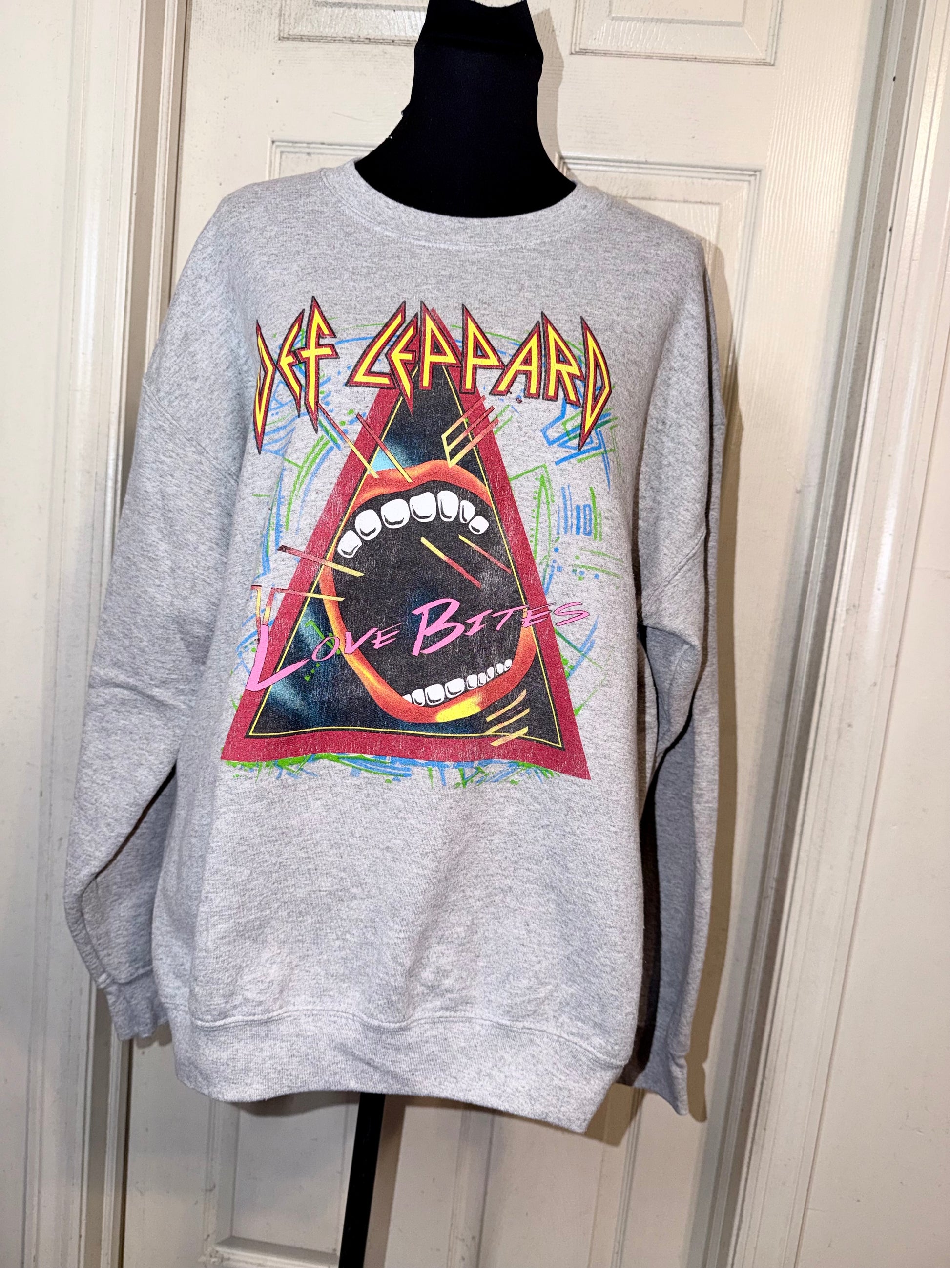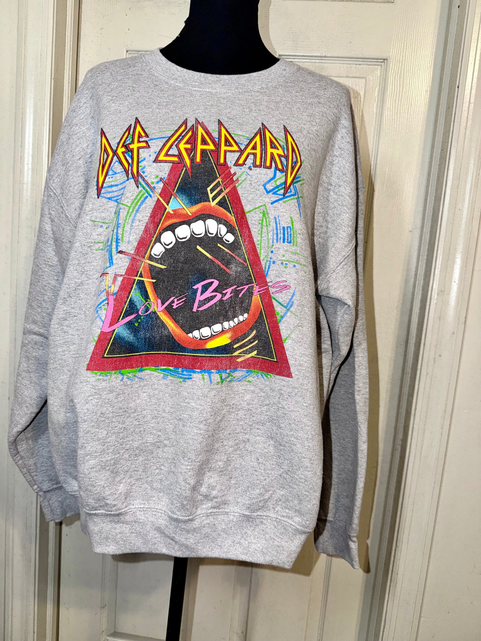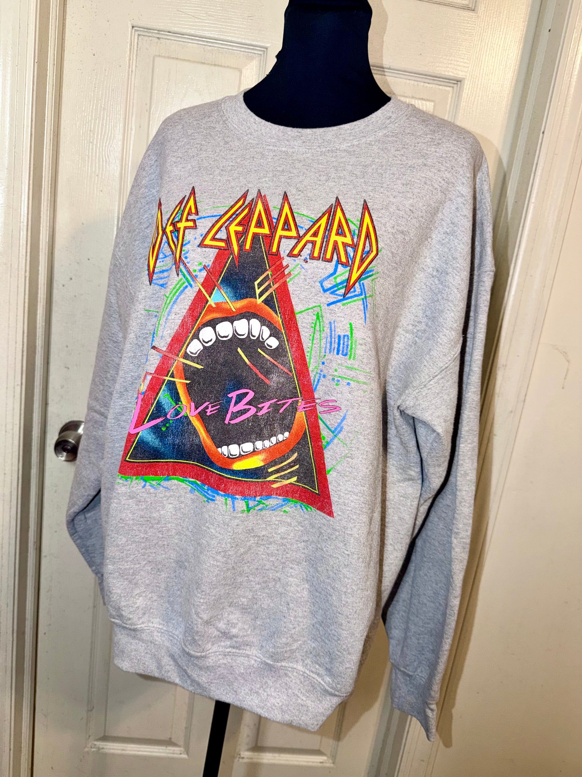 A light grey Def Leppard Love Bites sweatshirt. Oversized.