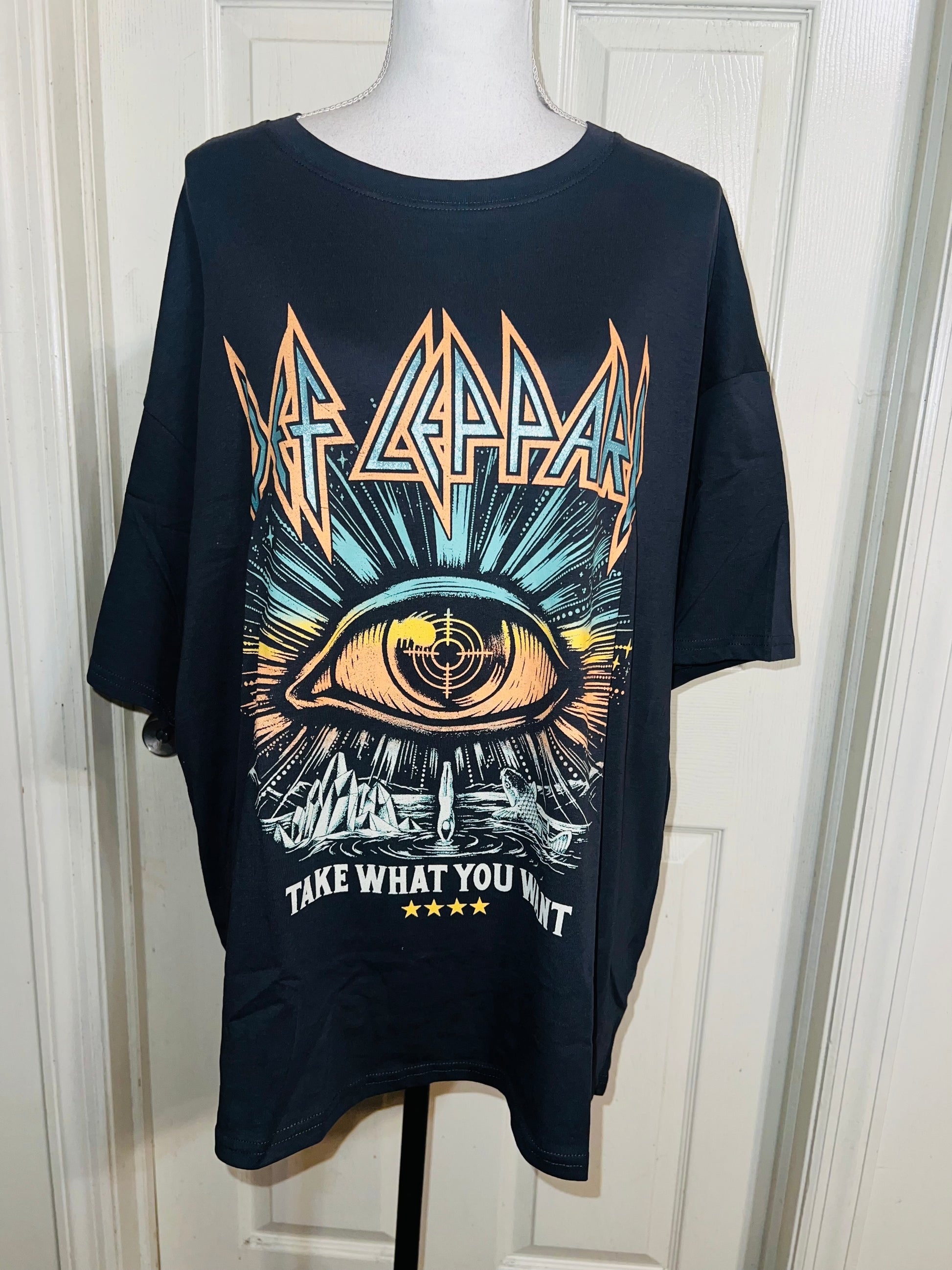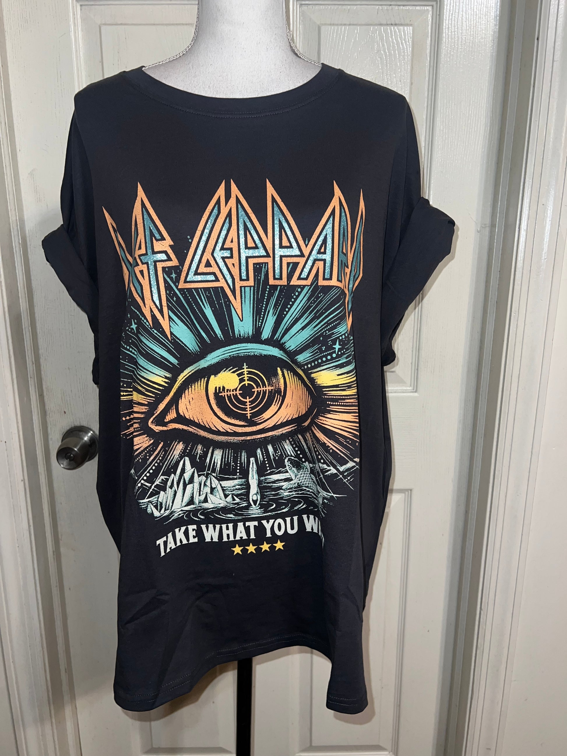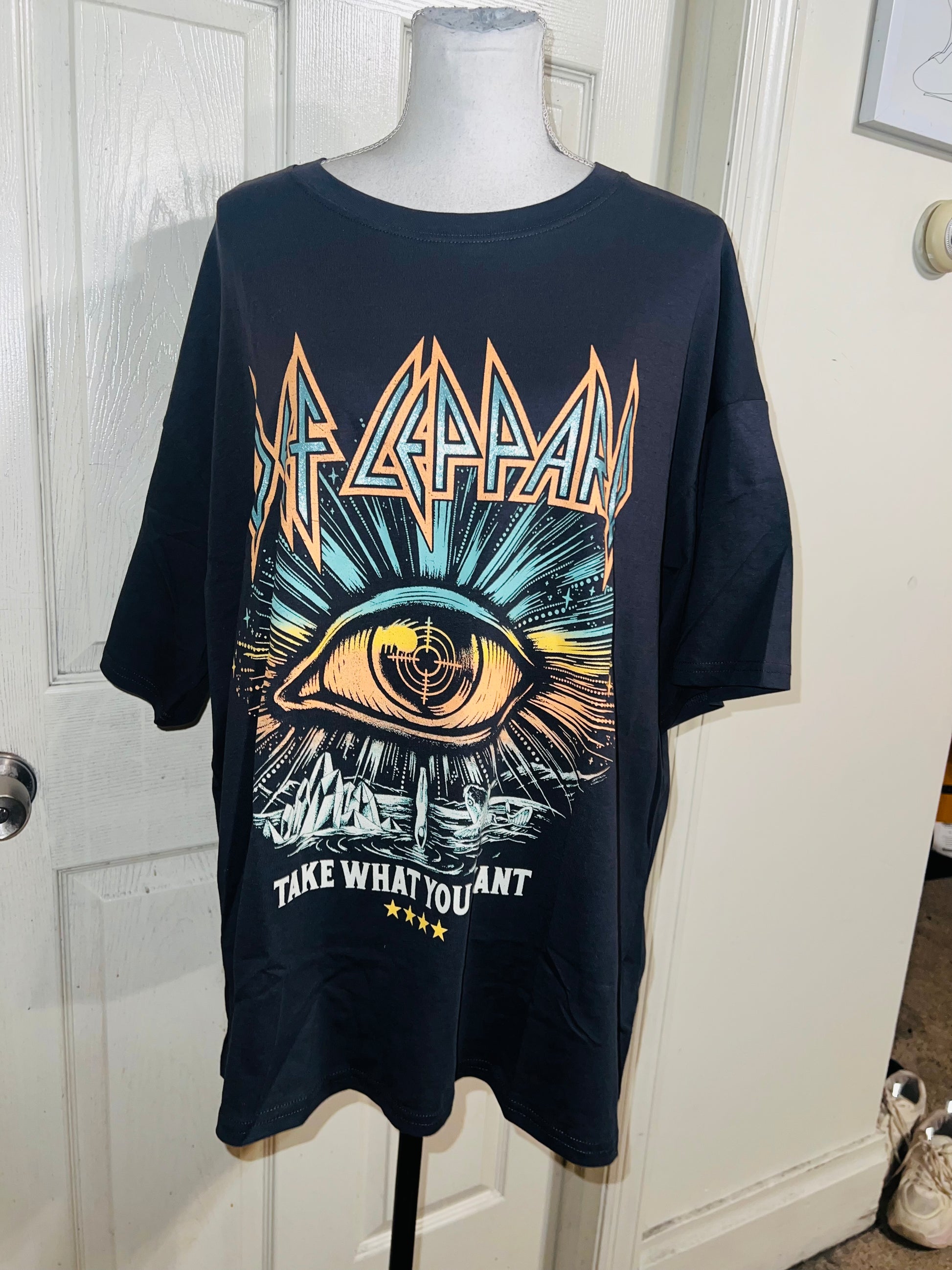 This is now a sold. I can get a very similar graphic, just DM me. Please allow extra processing time if ordered. A dark charcoal grey/black Def Leppard “Take What You Want” tee. Size XL, oversized.