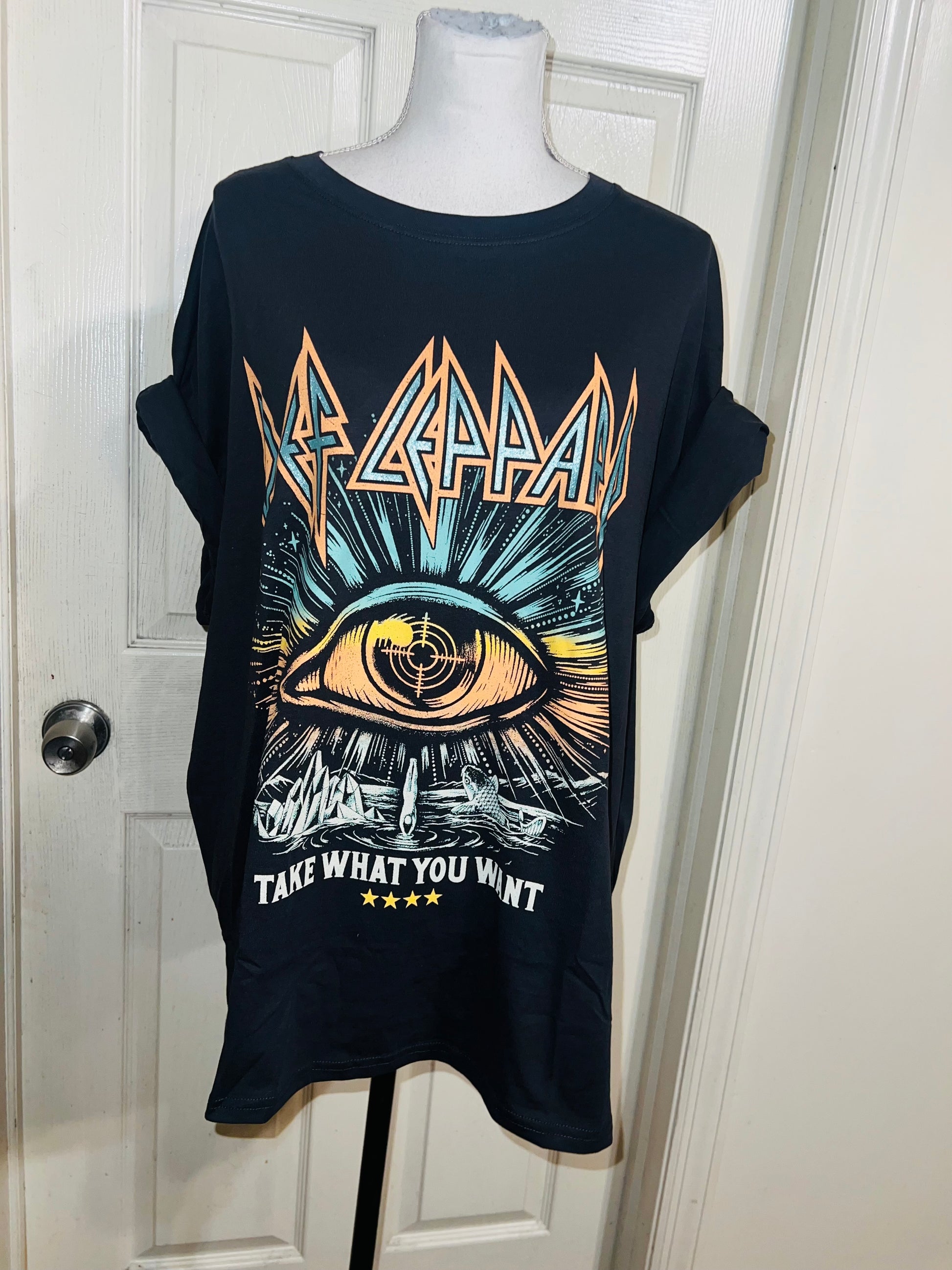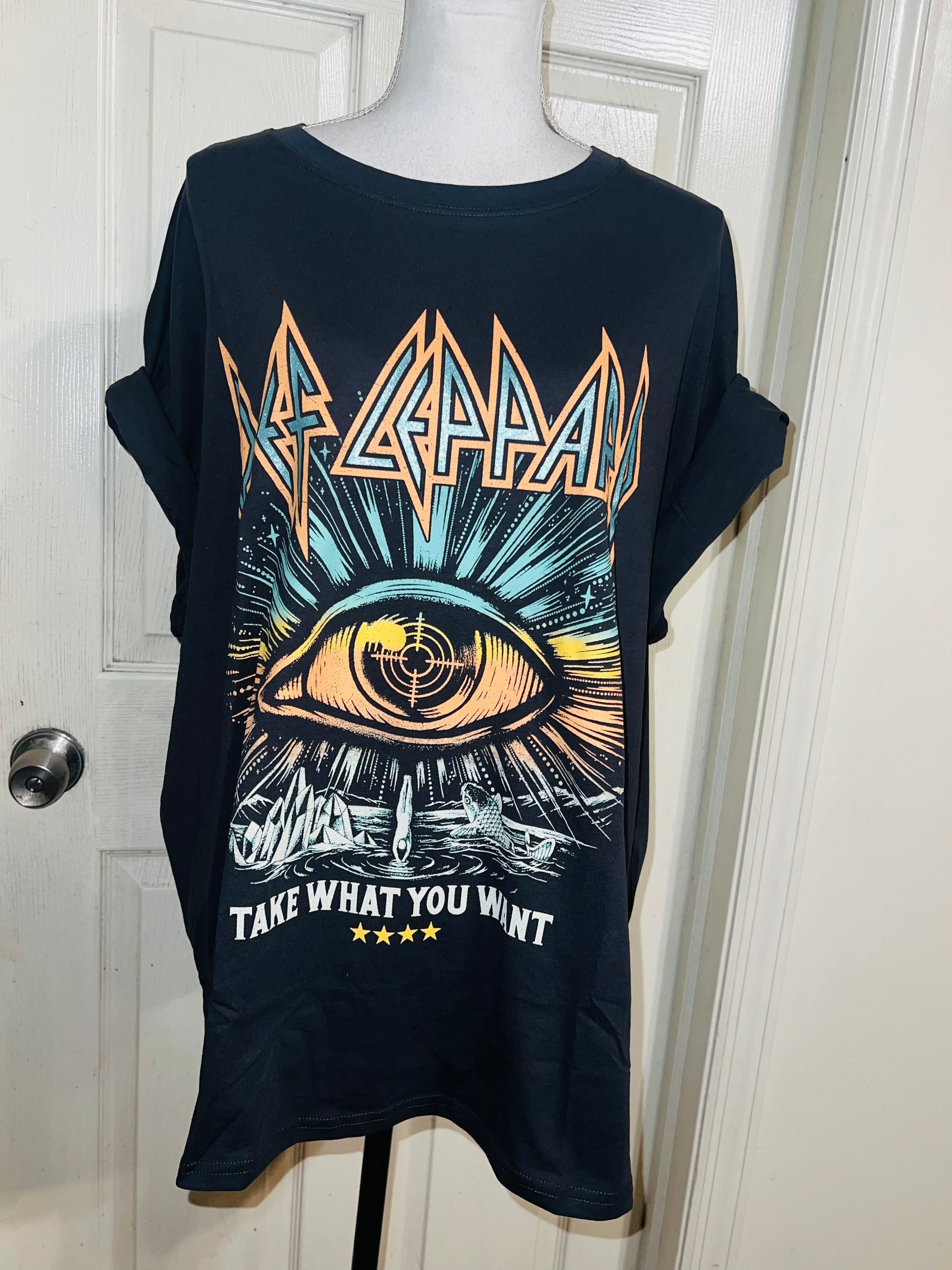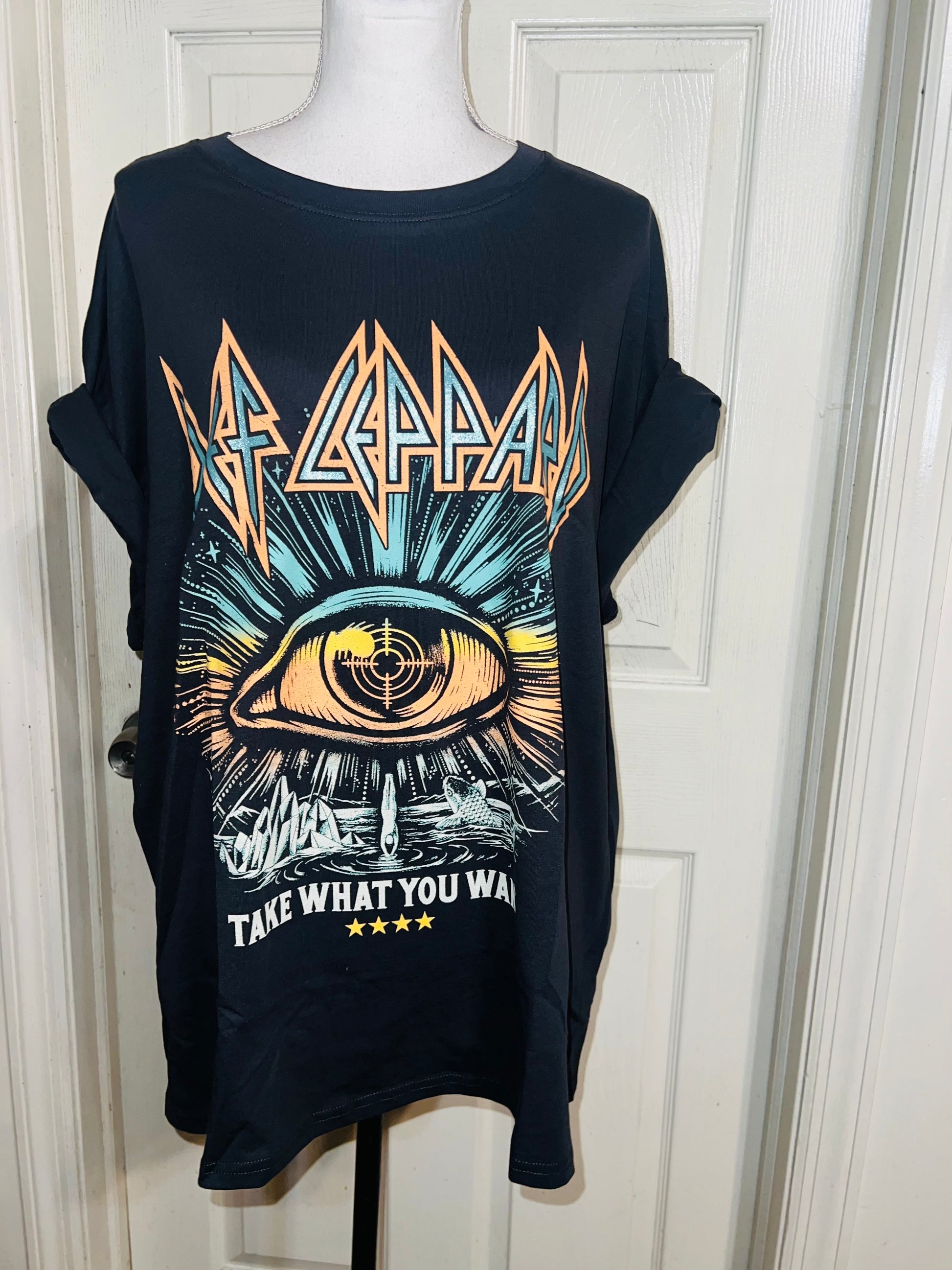 This is now a sold. I can get a very similar graphic, just DM me. Please allow extra processing time if ordered. A dark charcoal grey/black Def Leppard “Take What You Want” tee. Size XL, oversized.