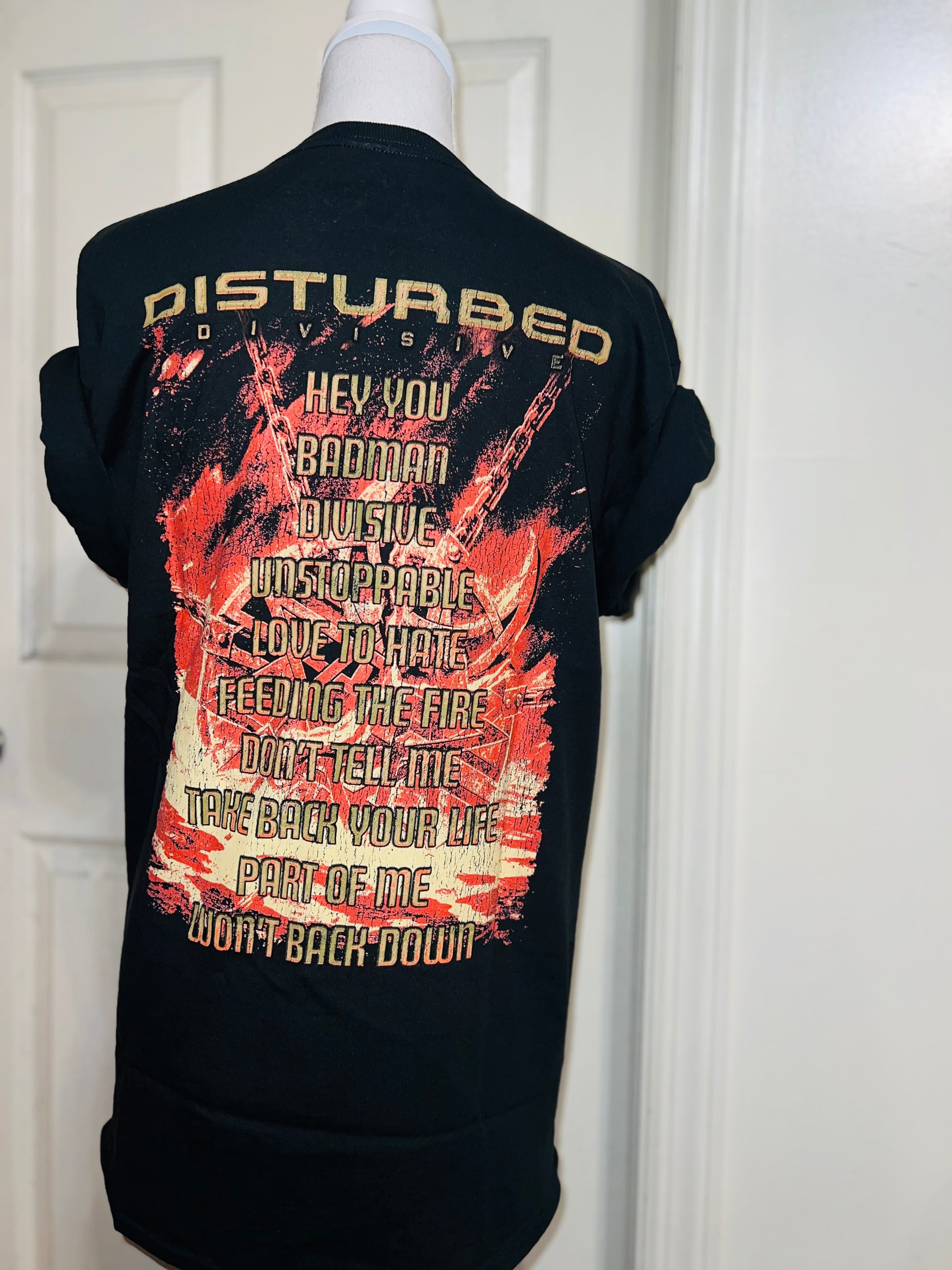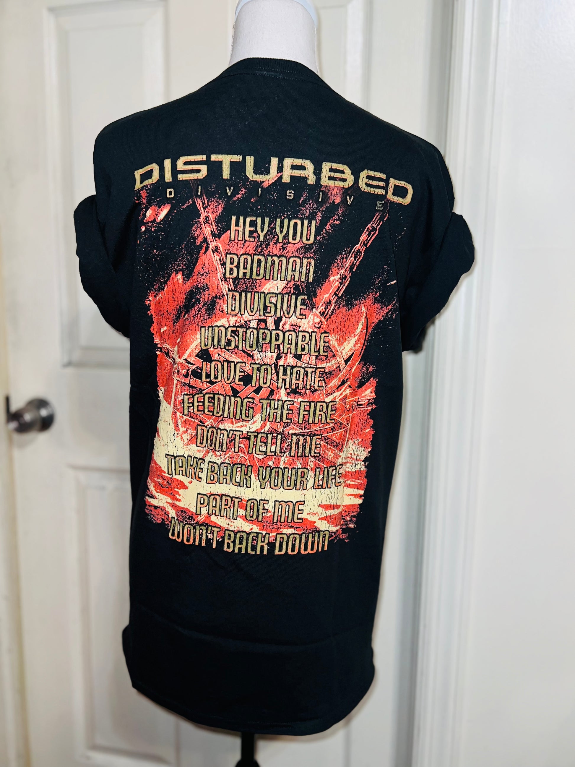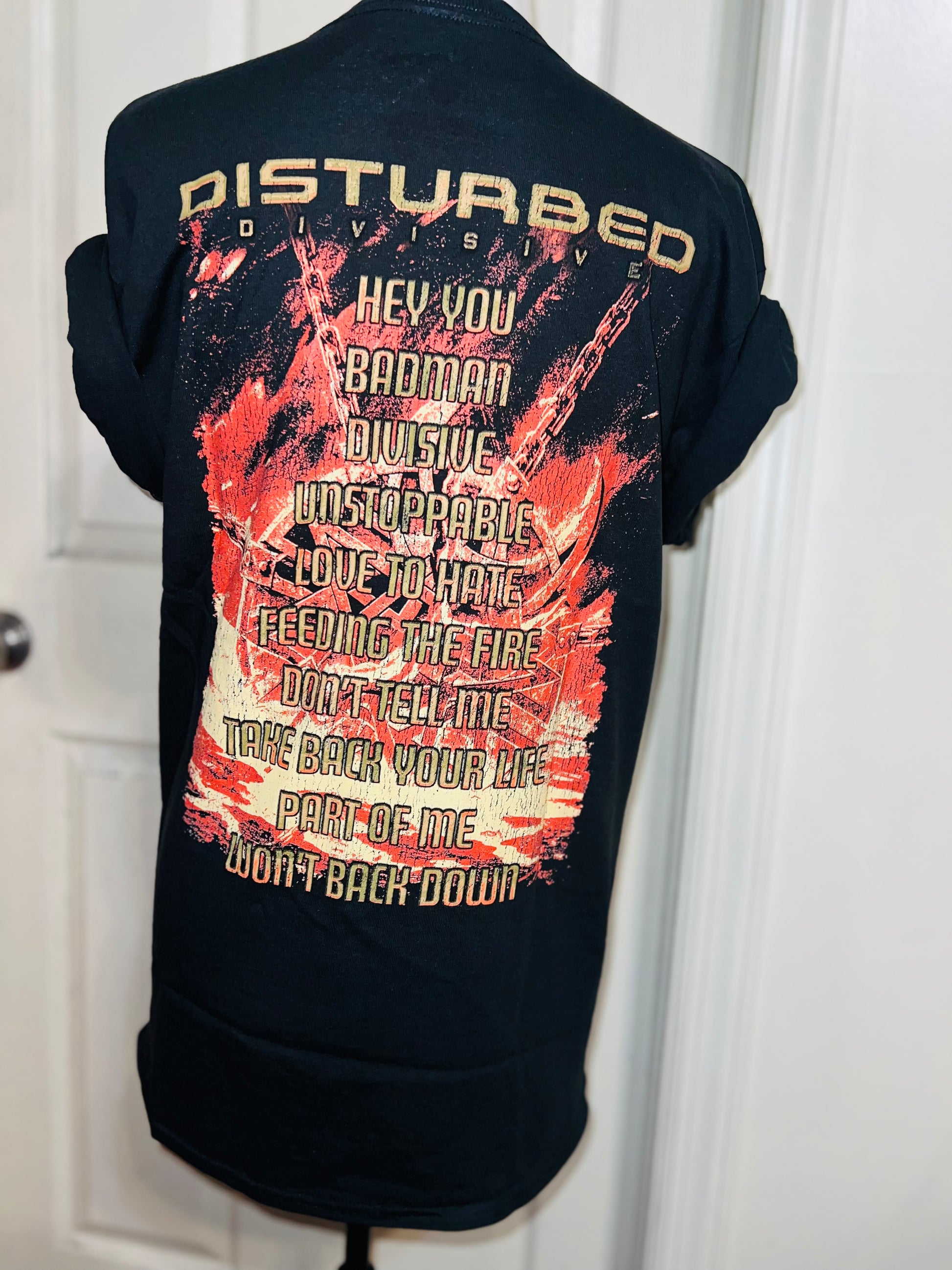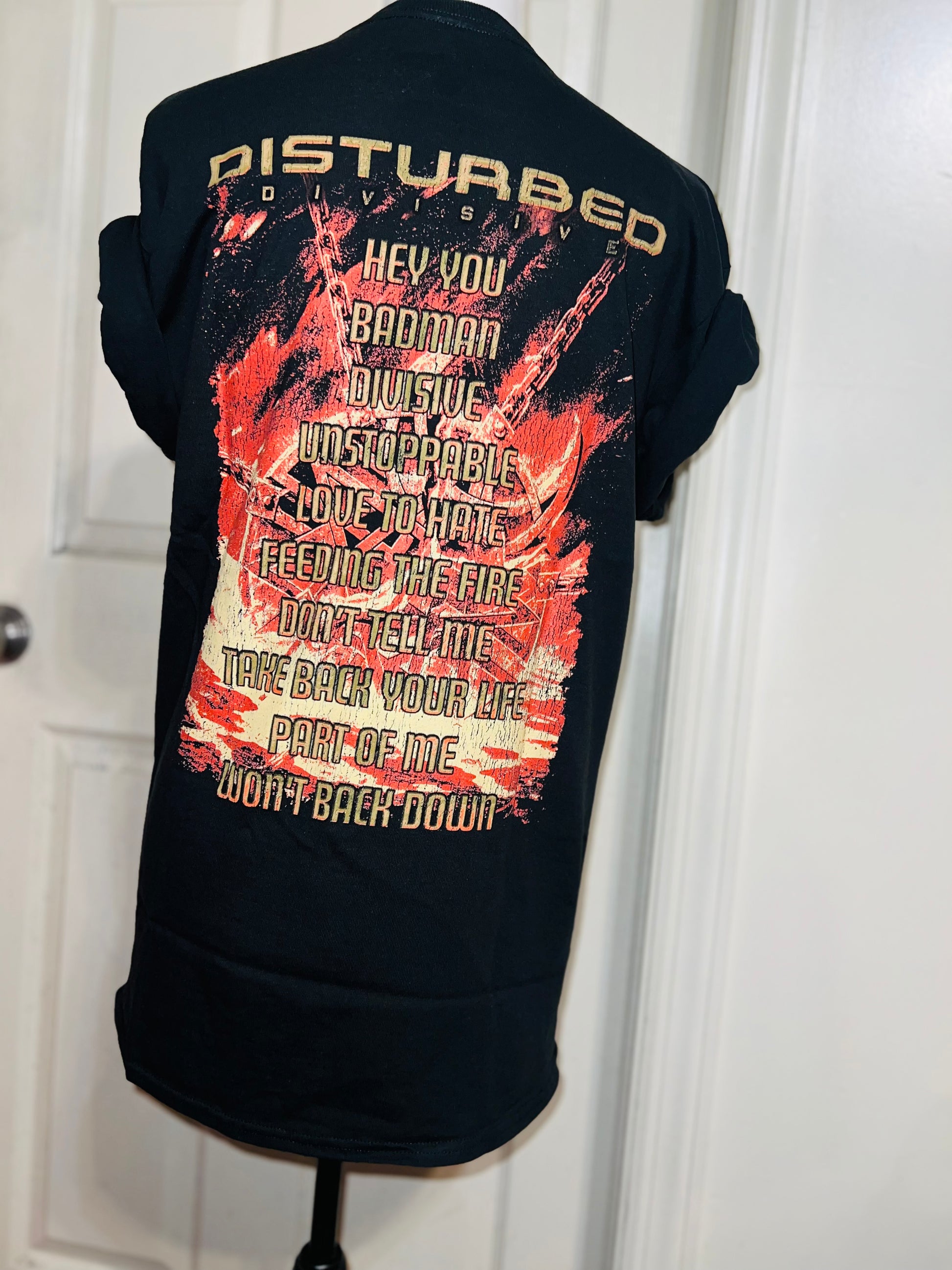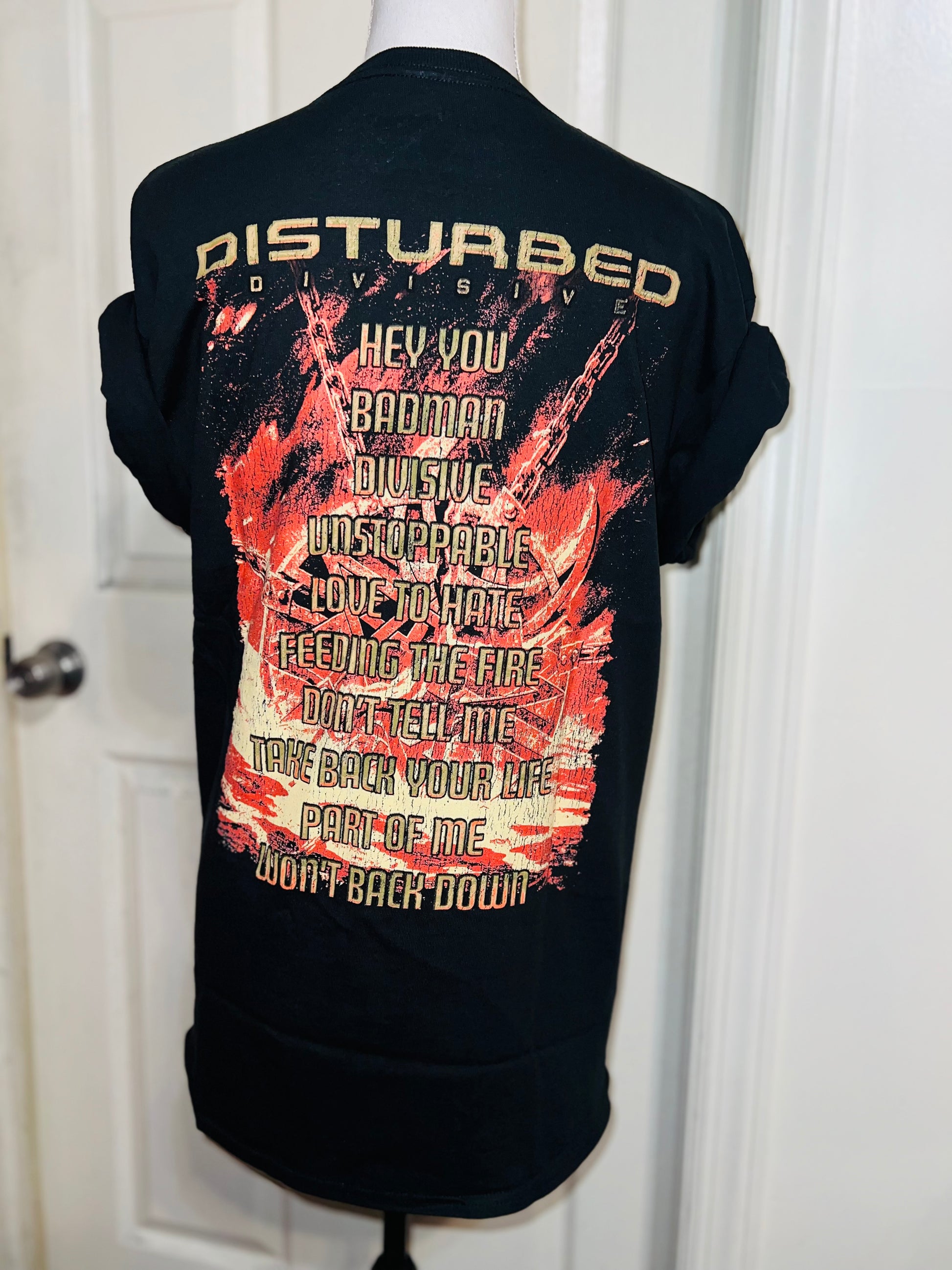 A black Disturbed Division double sided tee with the track list on the back. Size M/L, oversized.