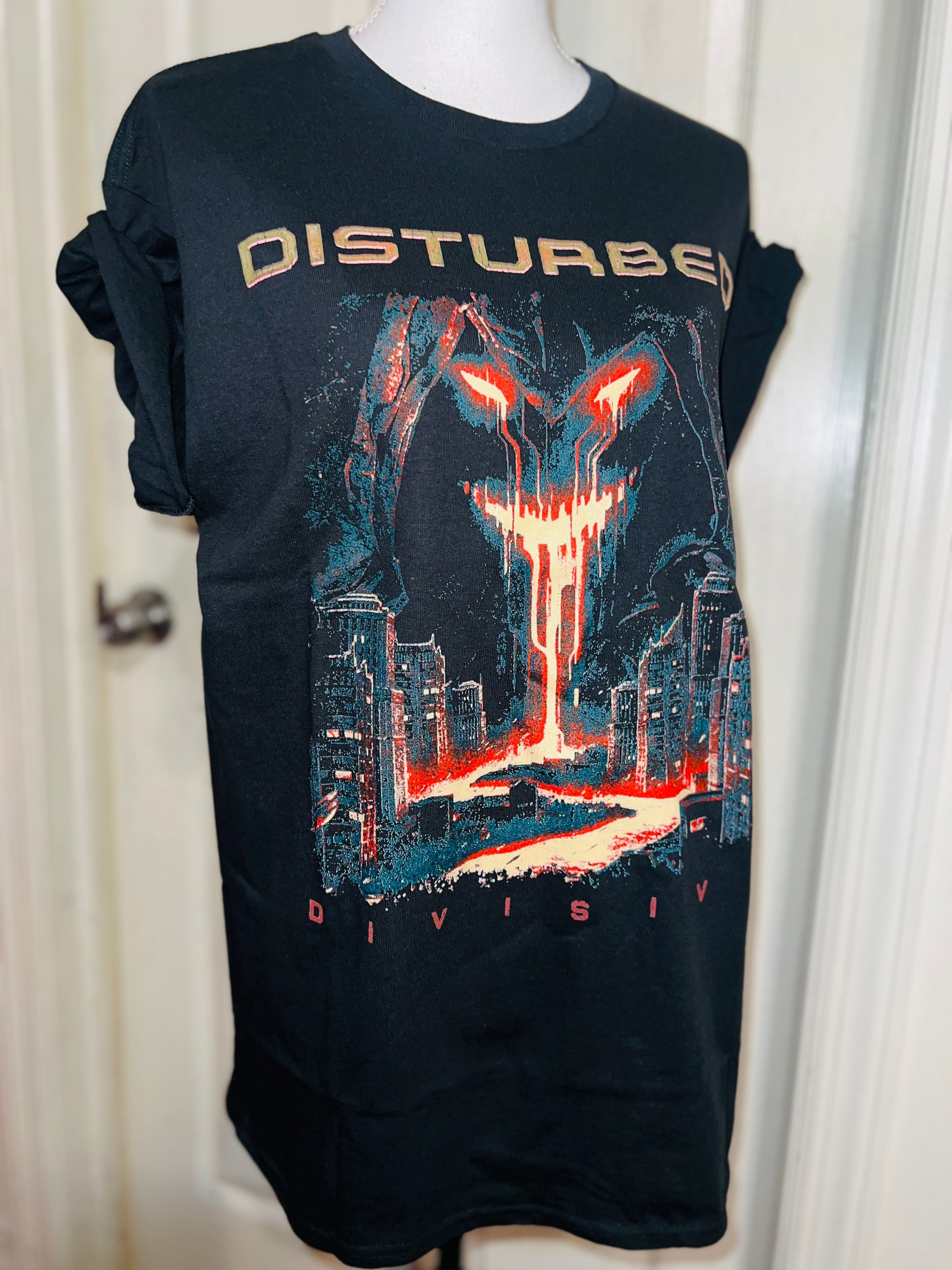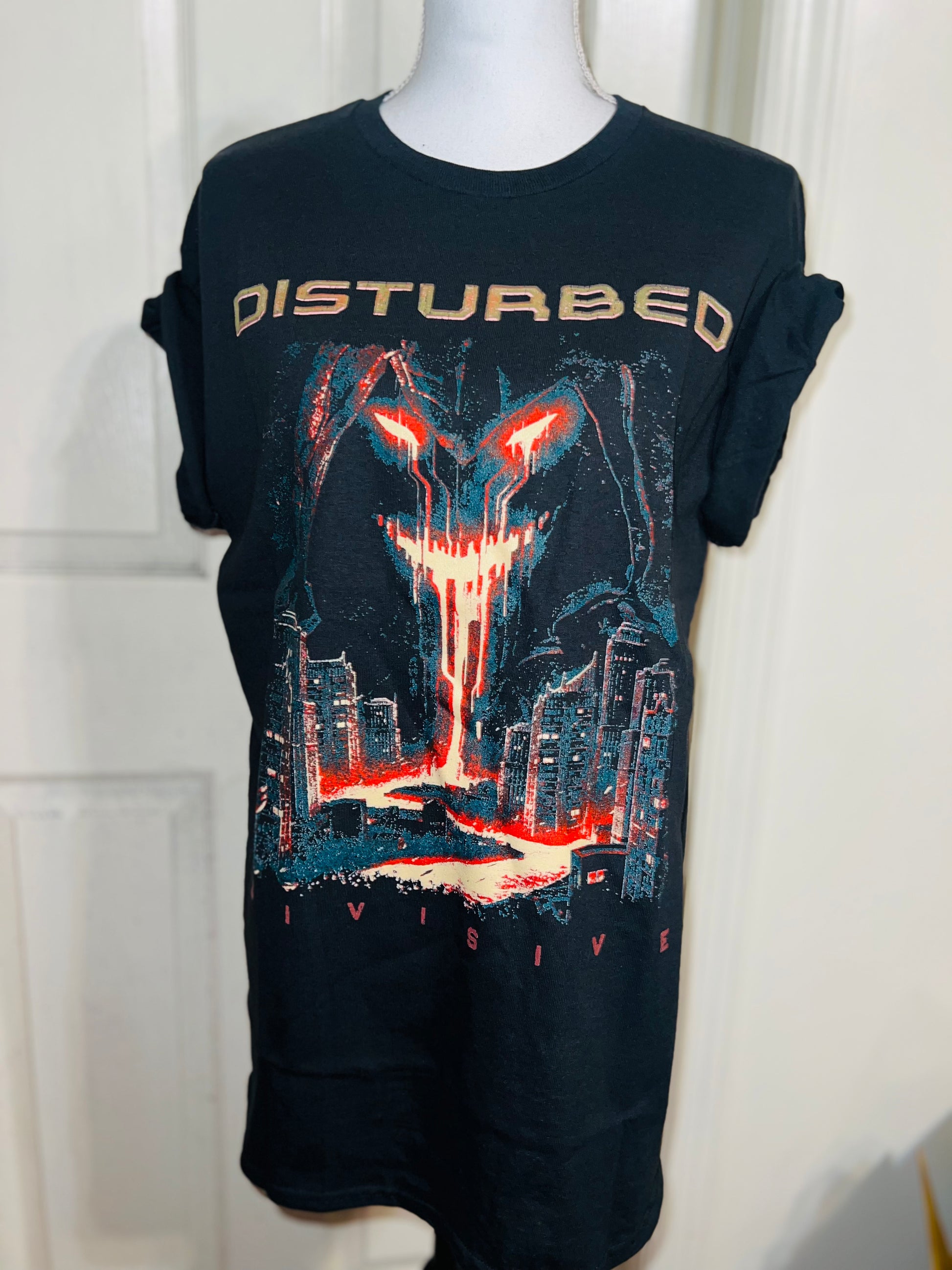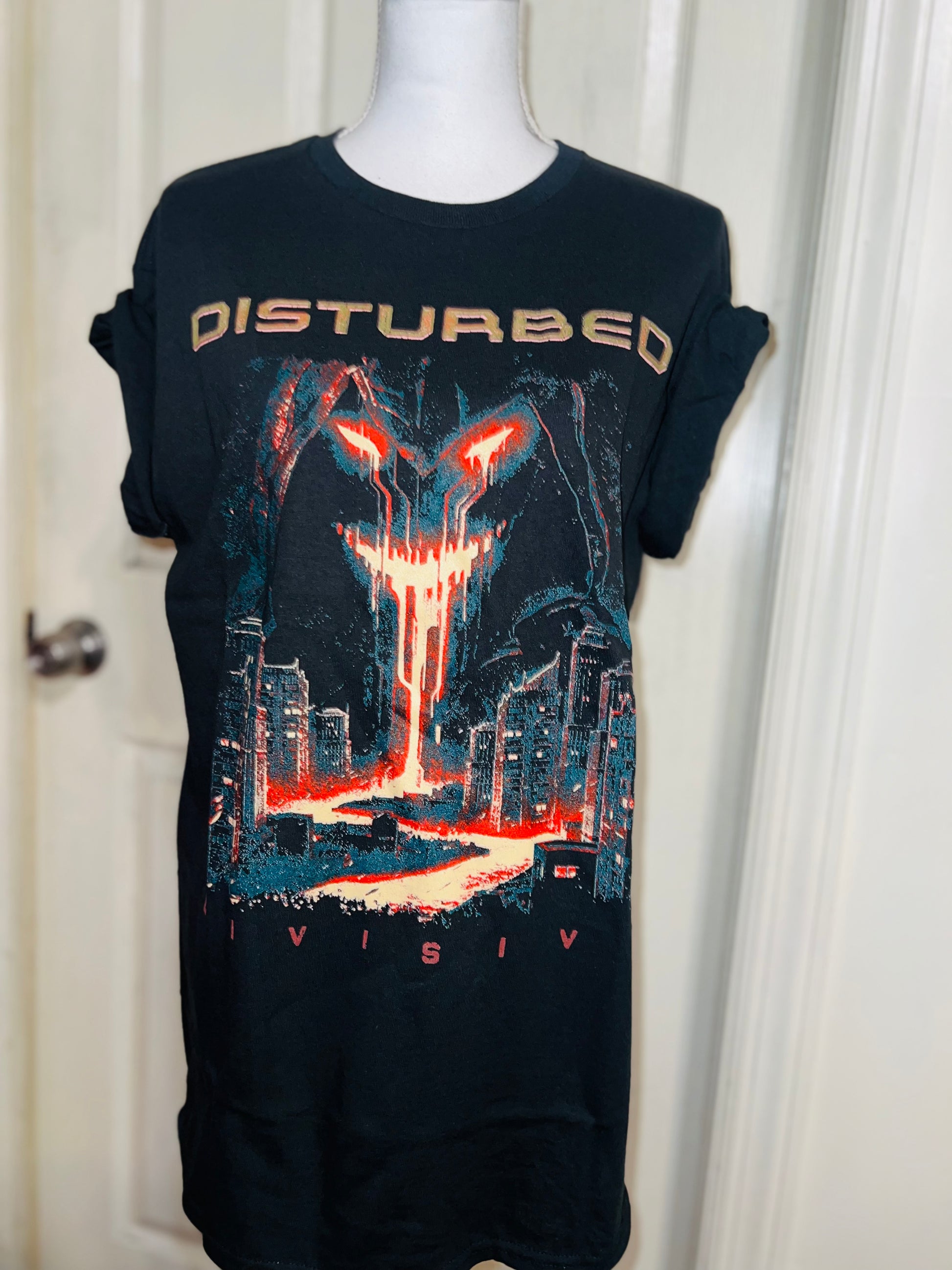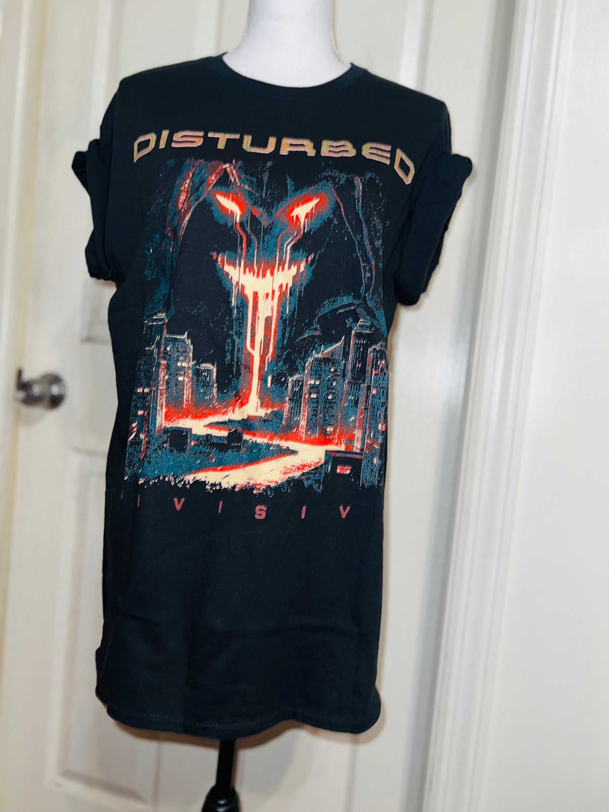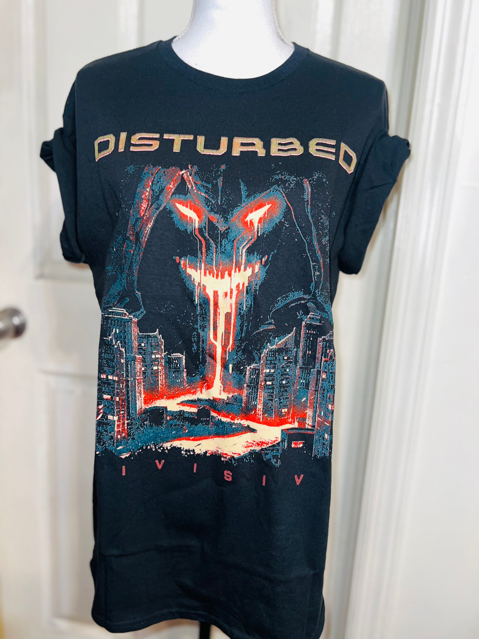 A black Disturbed Division double sided tee with the track list on the back. Size M/L, oversized.