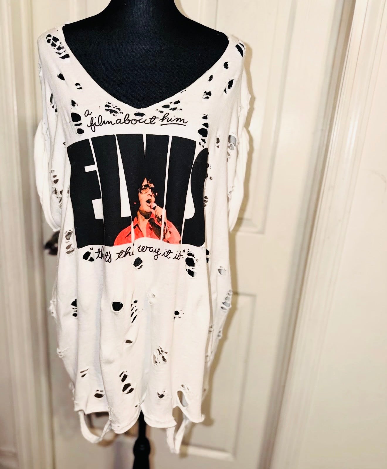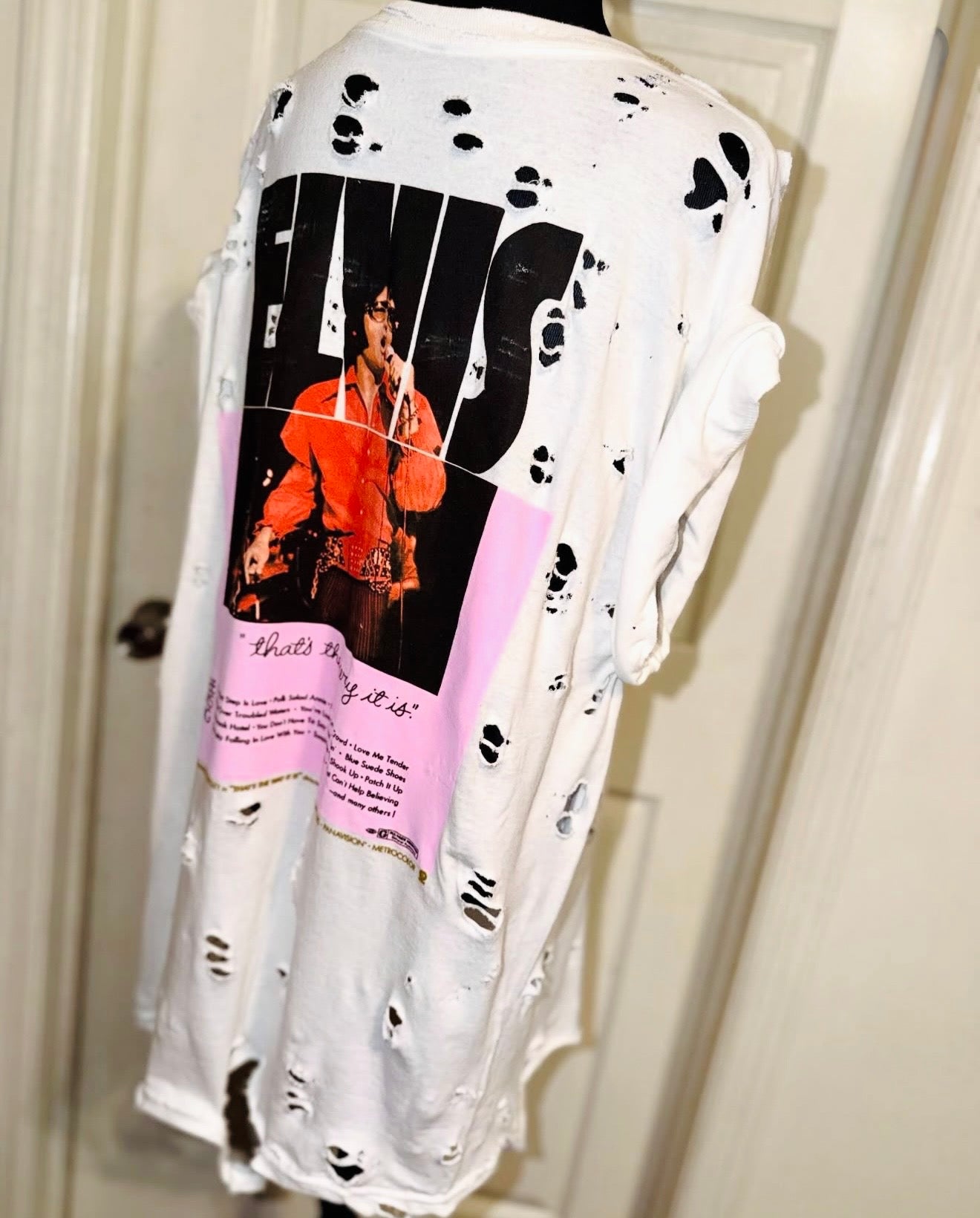 A white double sided Elvis shirt - I have a similar one but this is a bit different with lyrics and a tracklist. Oversized.