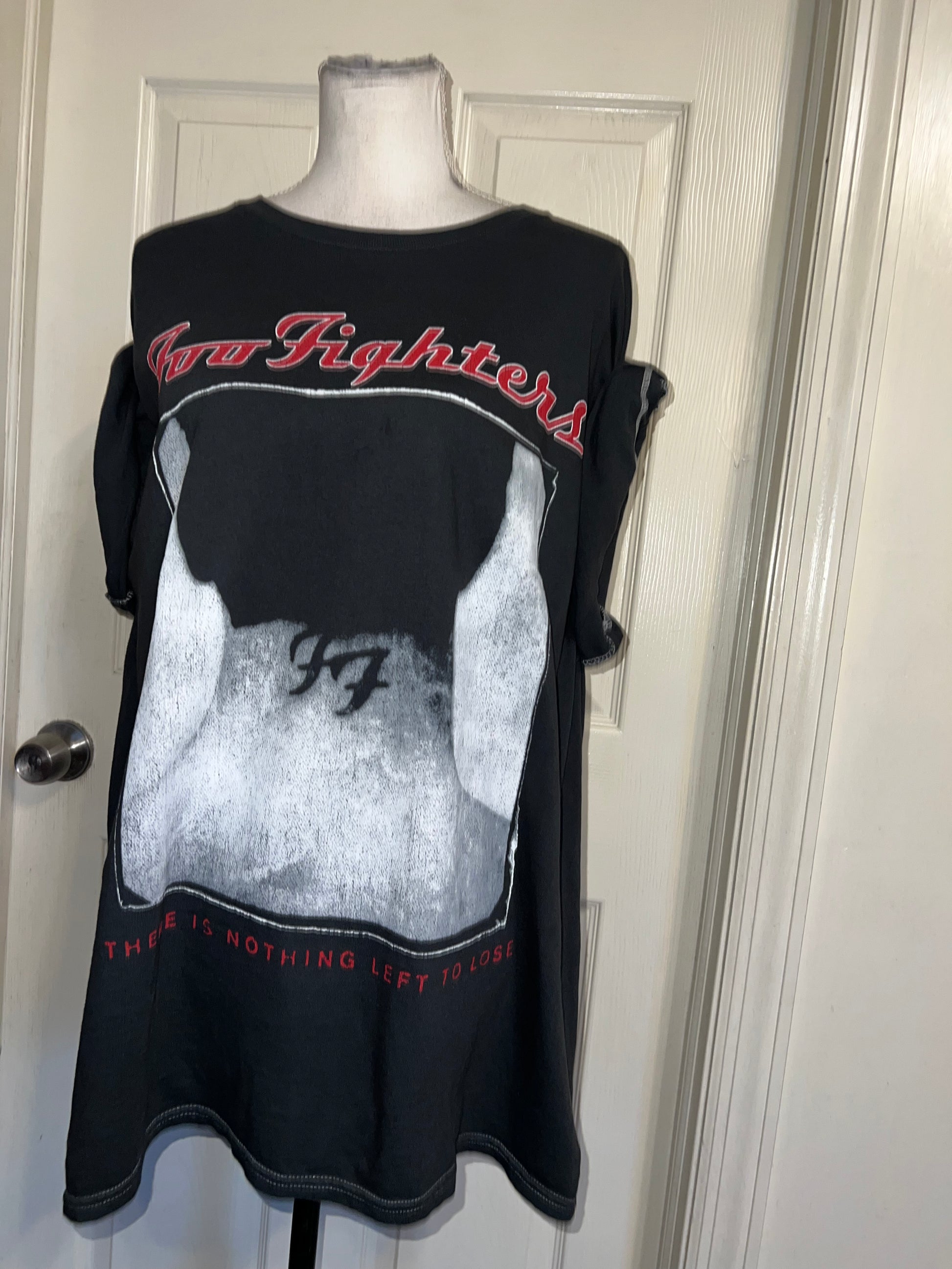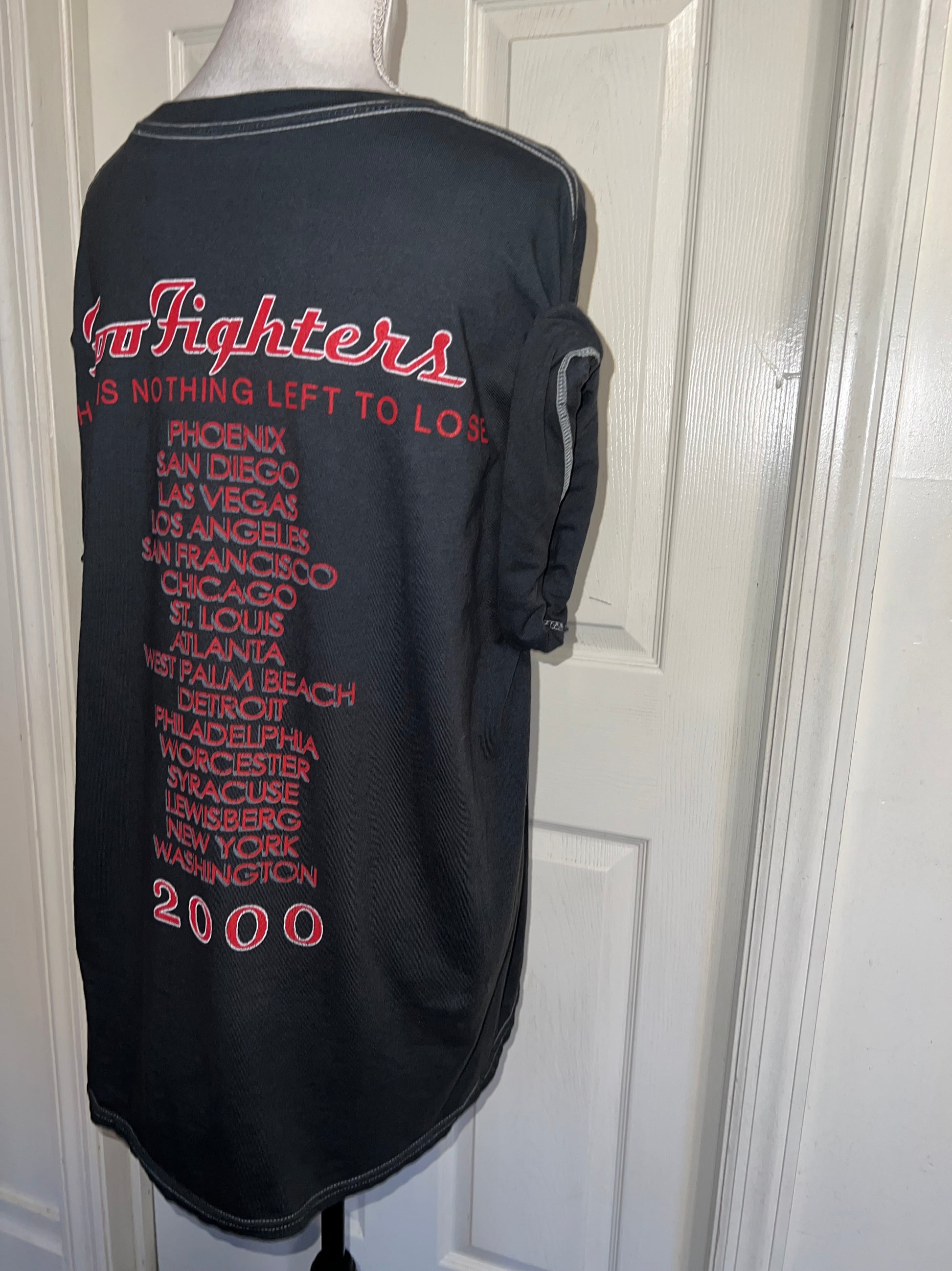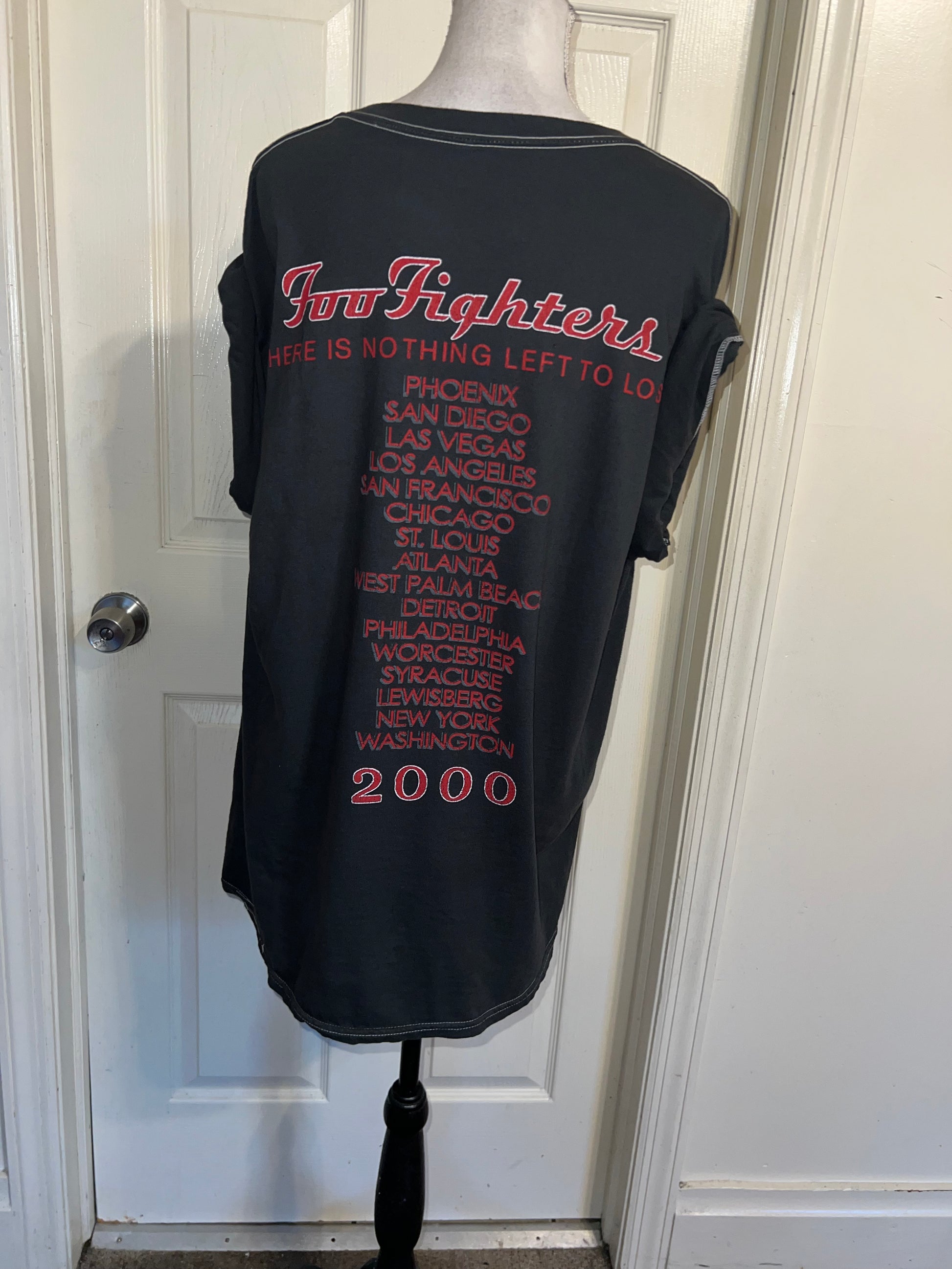 A black/dark grey Foo Fighters double sided tee “There is Nothing Left to Lose” 2000 Tour with the cities and on the back. Size L/XL, oversized.