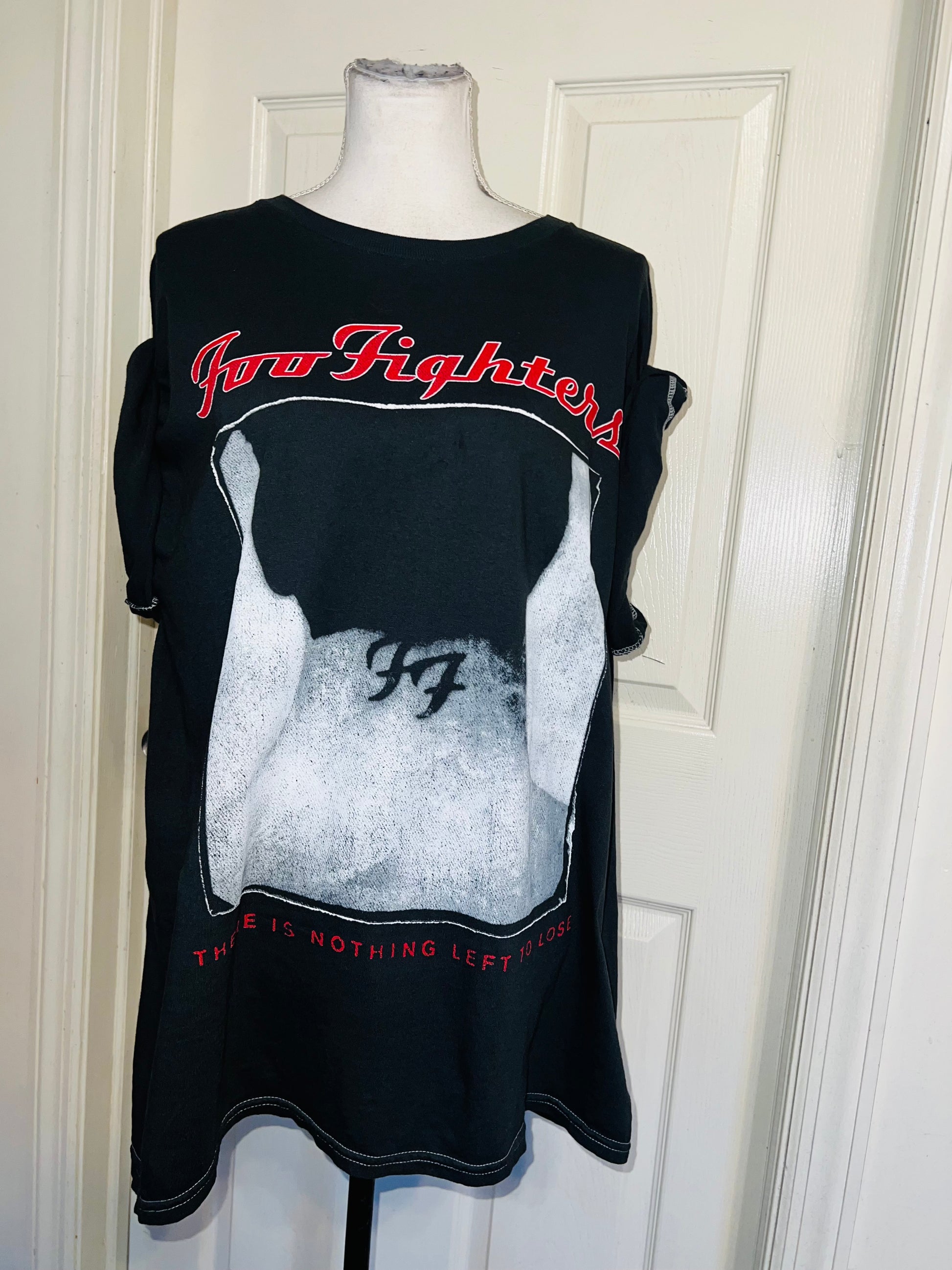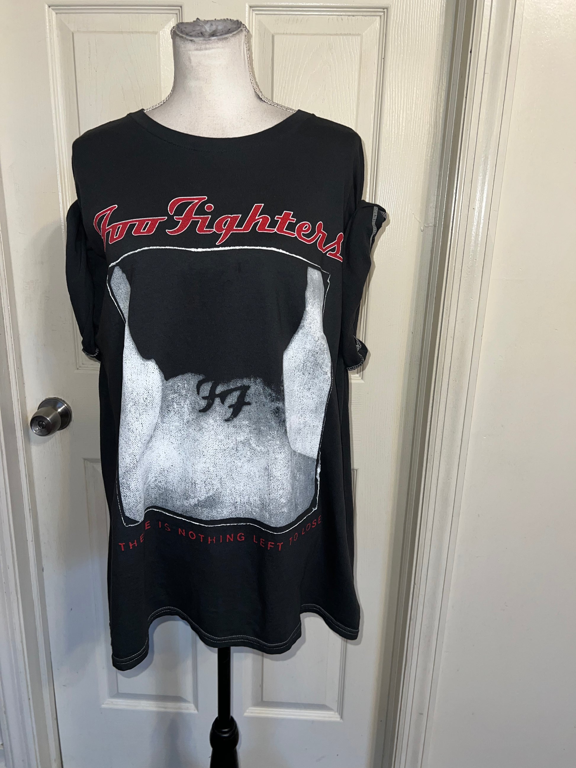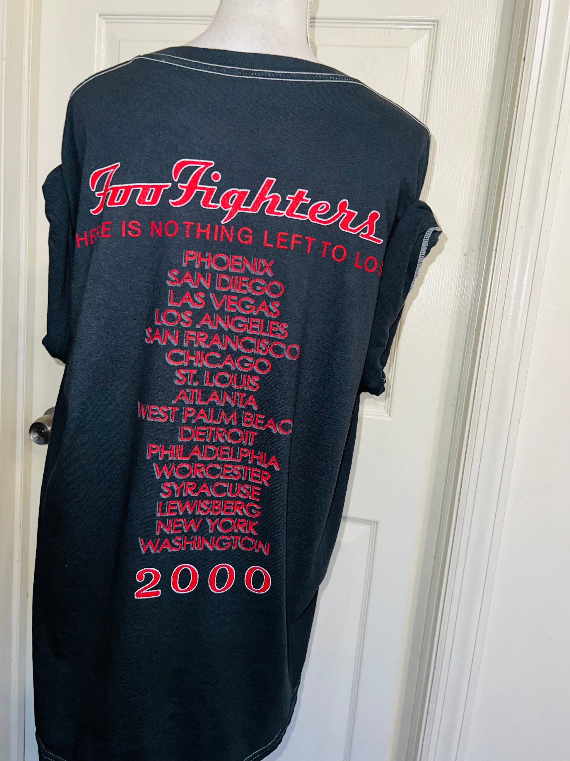 A black/dark grey Foo Fighters double sided tee “There is Nothing Left to Lose” 2000 Tour with the cities and on the back. Size L/XL, oversized.