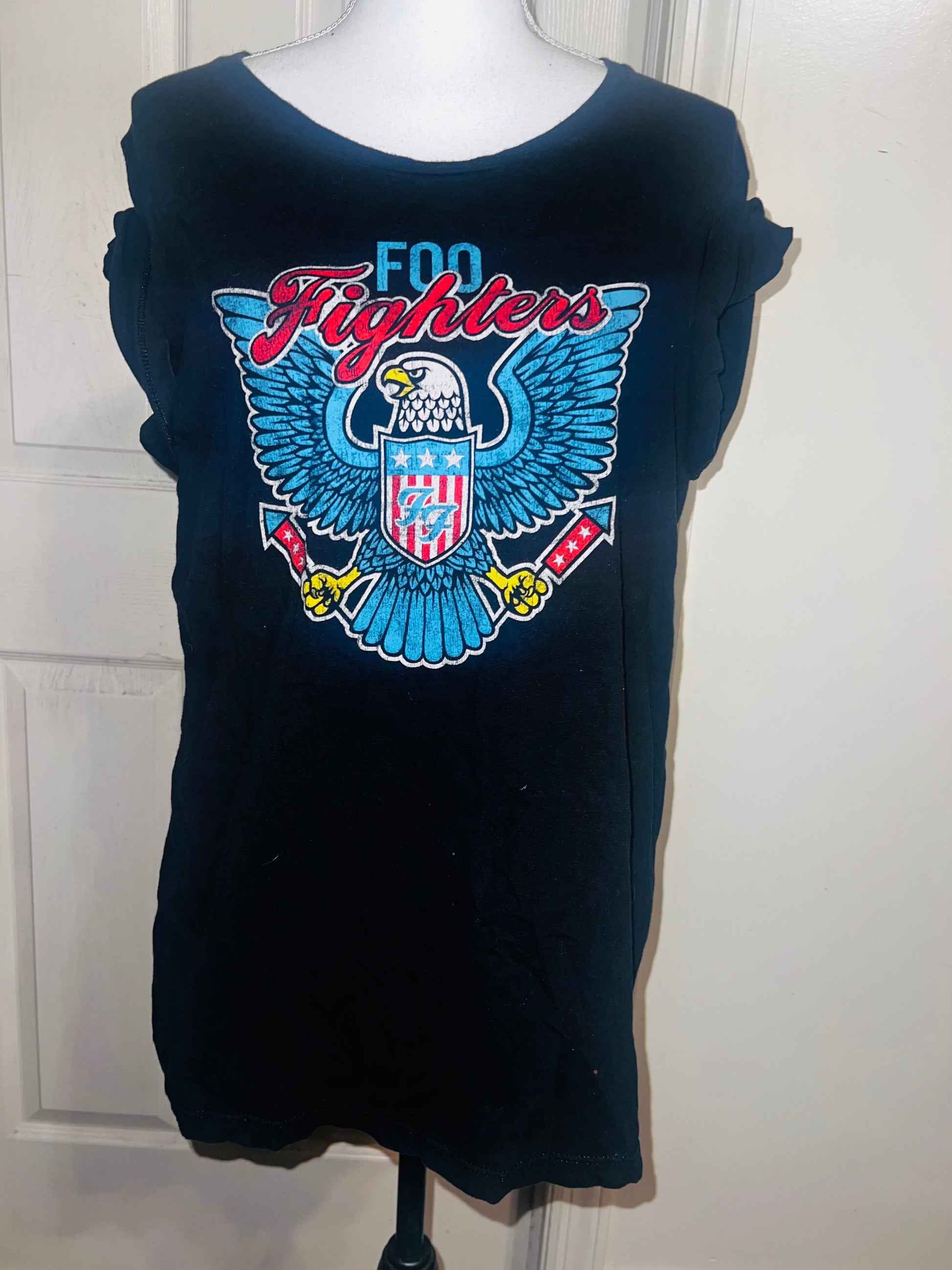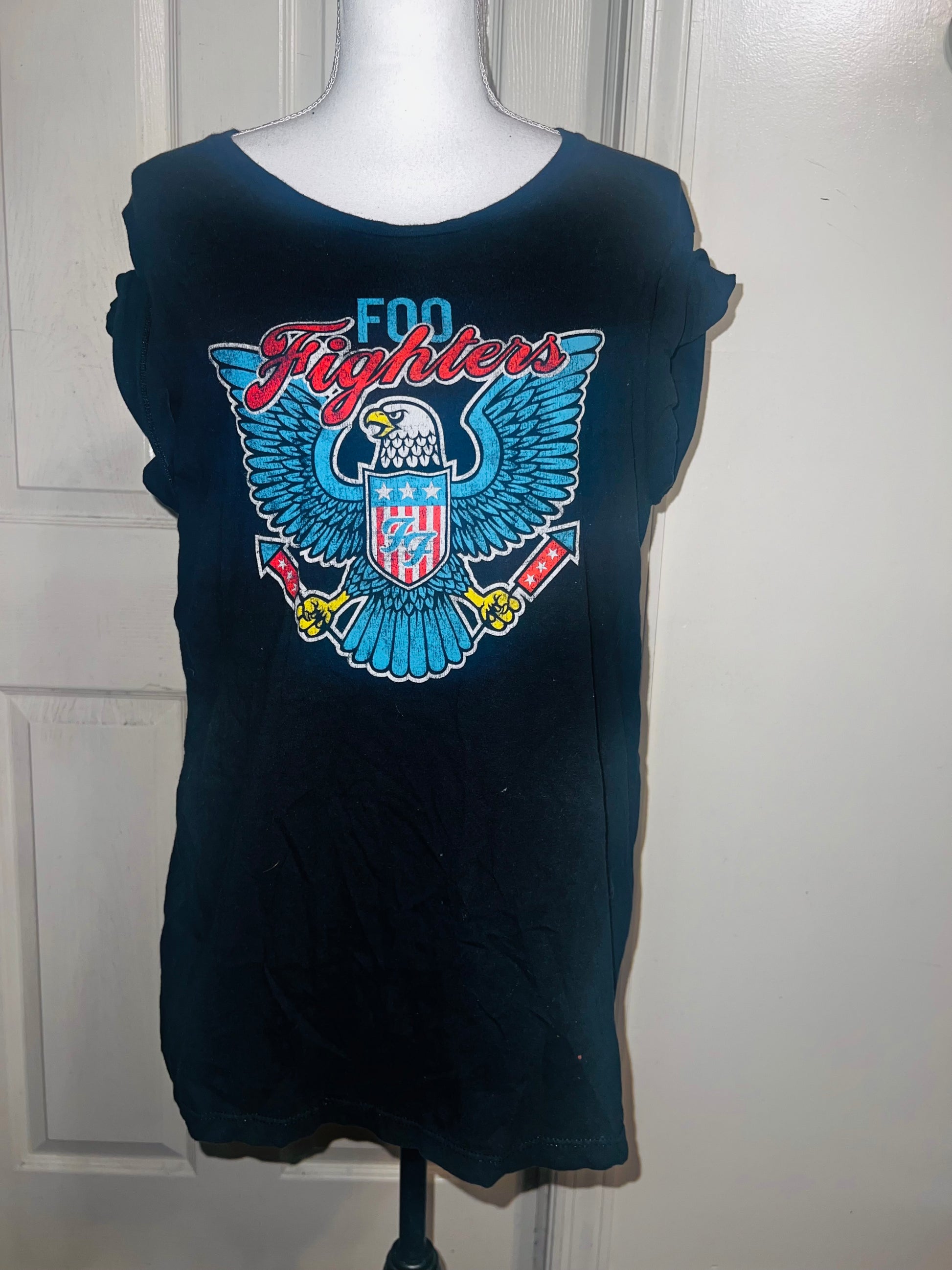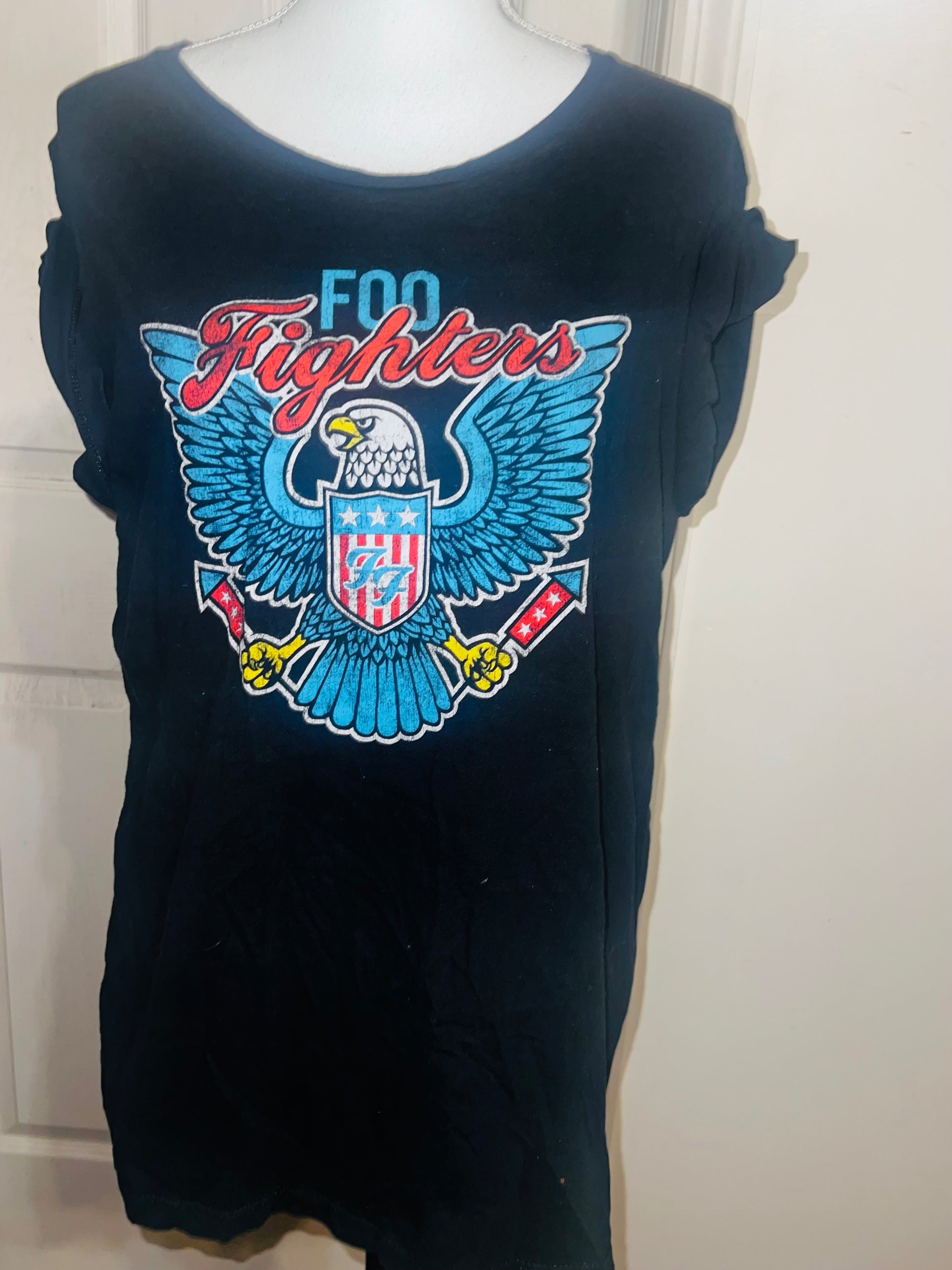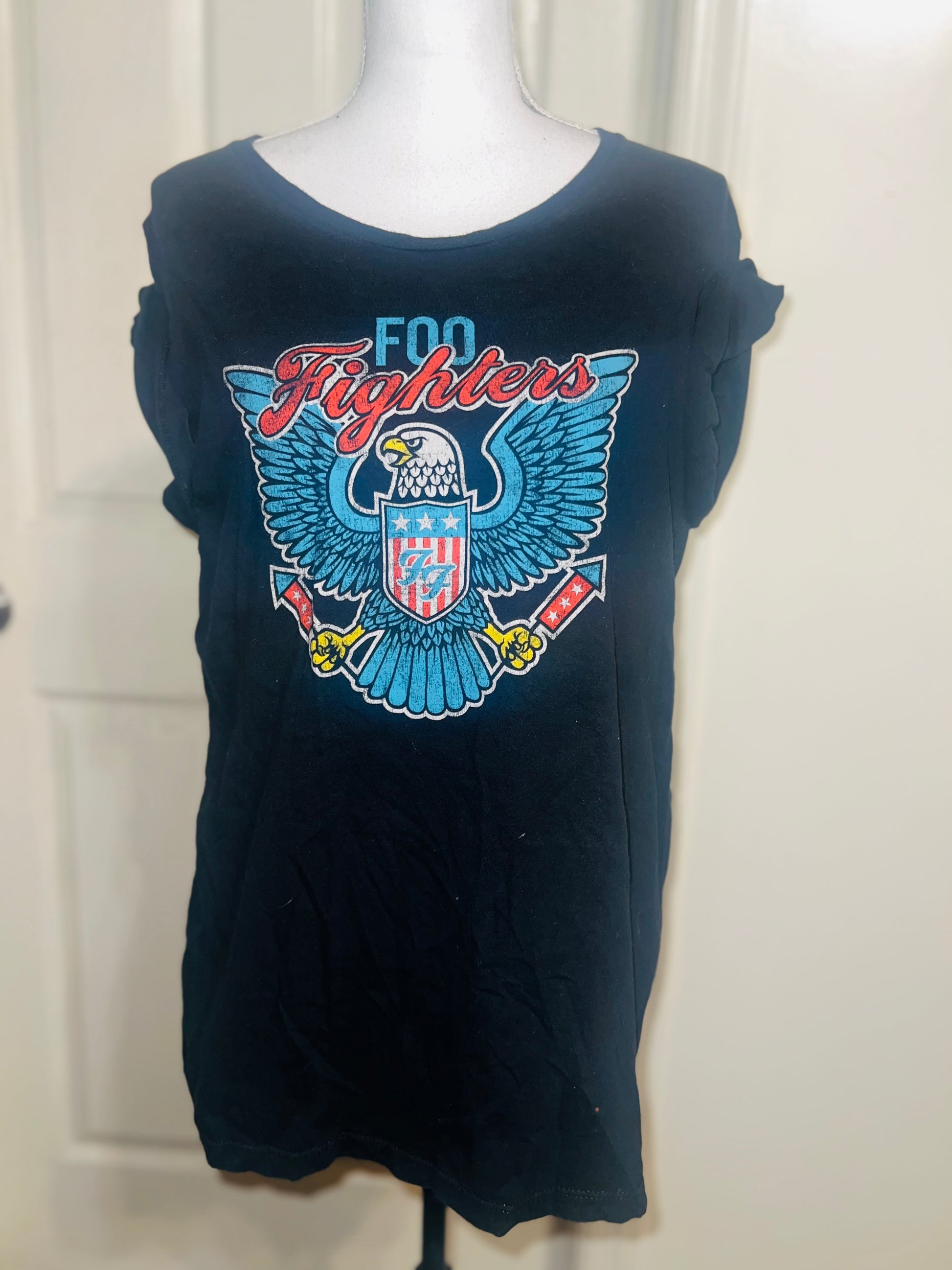 A black Foo Fighters tee with the Eagle logo on the front, size large.